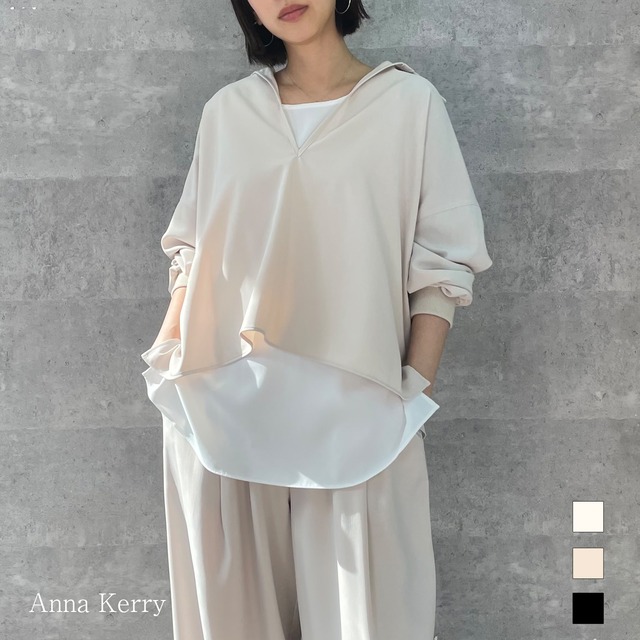 【EC事業部おすすめセットアップ】 スキッパータイプのシャツブラウス オーバーサイズで袖口はリブ素材で切り替えており 今らしいバランスに仕上げたシルエットになっています カジュアルからきれいめまで幅広いスタイリングにマッチするアイテムです 同素材のセットアップでの着用もおすすめです。 ホームケアOK 【関連商品】 アムンゼンランニング https://annakerry.thebase.in/items/105421901 レースヘムアシンメトリーキャミソール https://annakerry.thebase.in/items/126586001 Size(Free) 身丈 60cm 身幅 68cm 裾幅 68cm 肩幅 66cm 裄丈 77cm 袖幅 21cm AH 22cm モデル162cm Quality (本体) ポリエステル 100% (リブ) 綿 93% ポリウレタン 7%