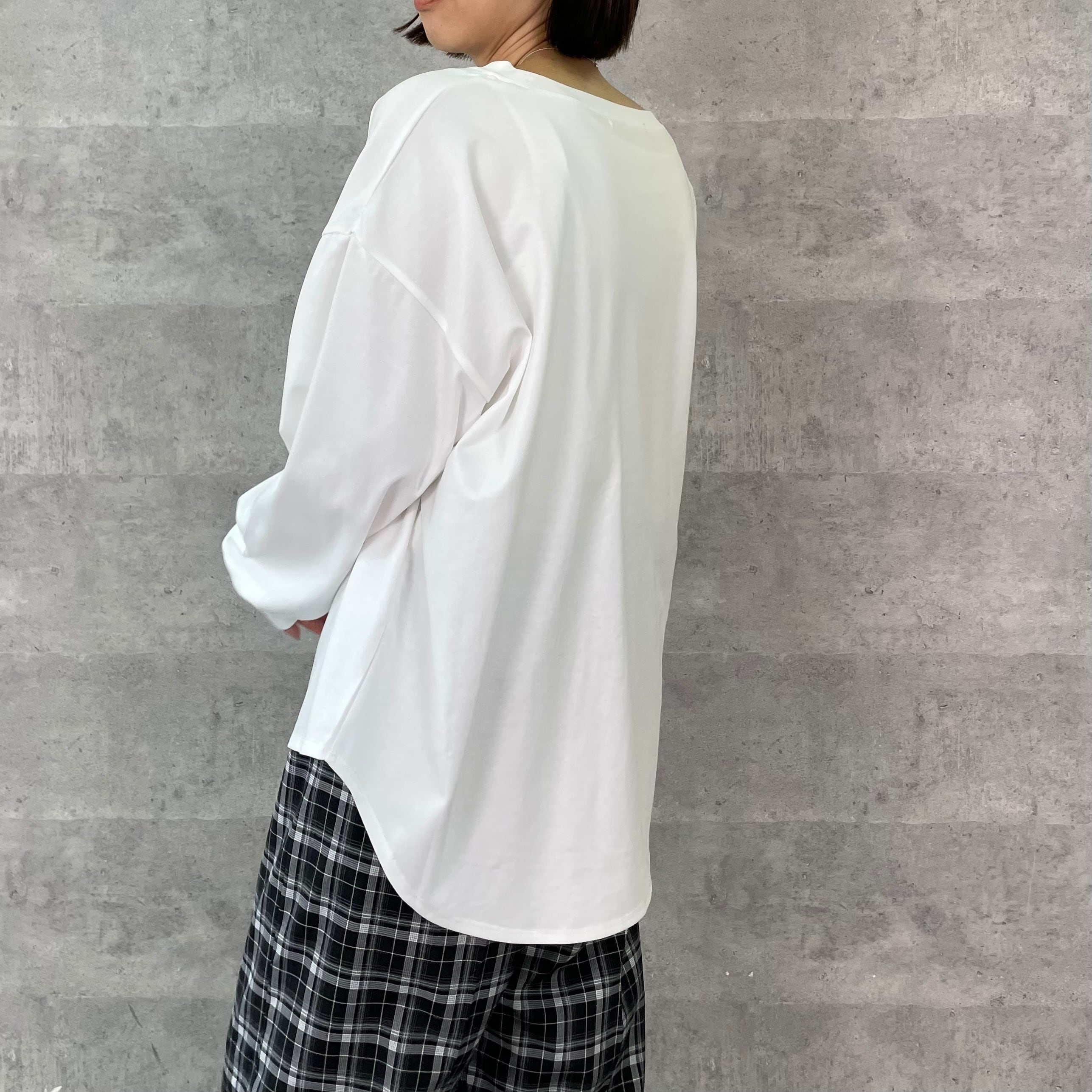 オーバーサイズ&ラウンドヘムのデザインで幅広い方が着こなしやすくデイリー使いにオススメのロンTです。