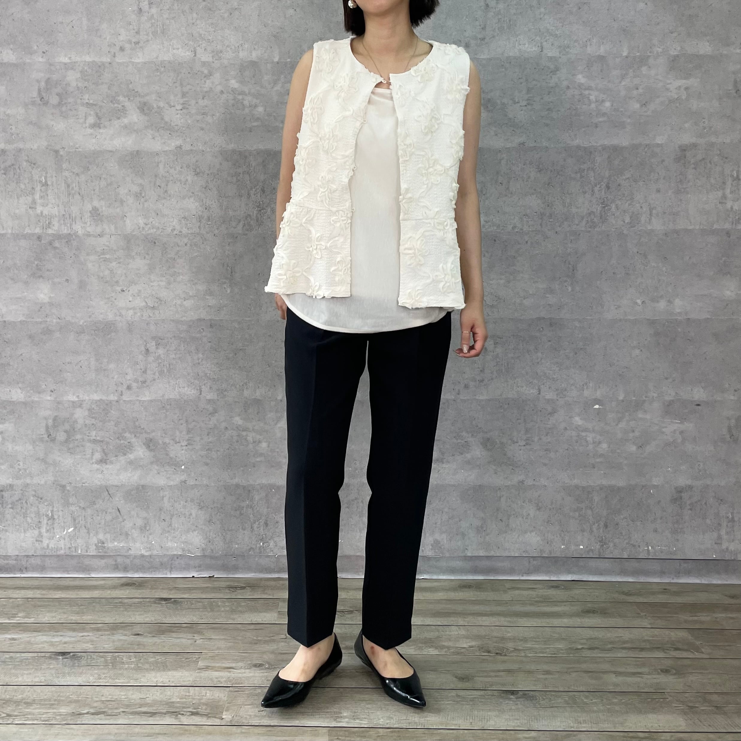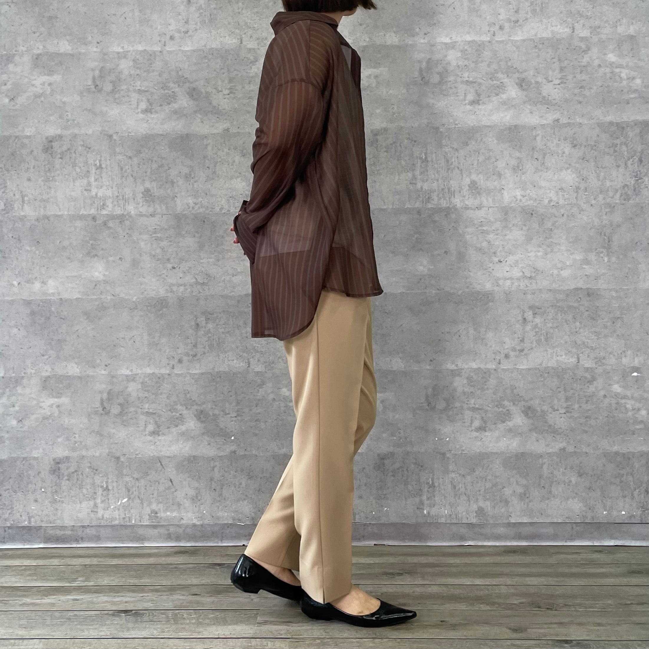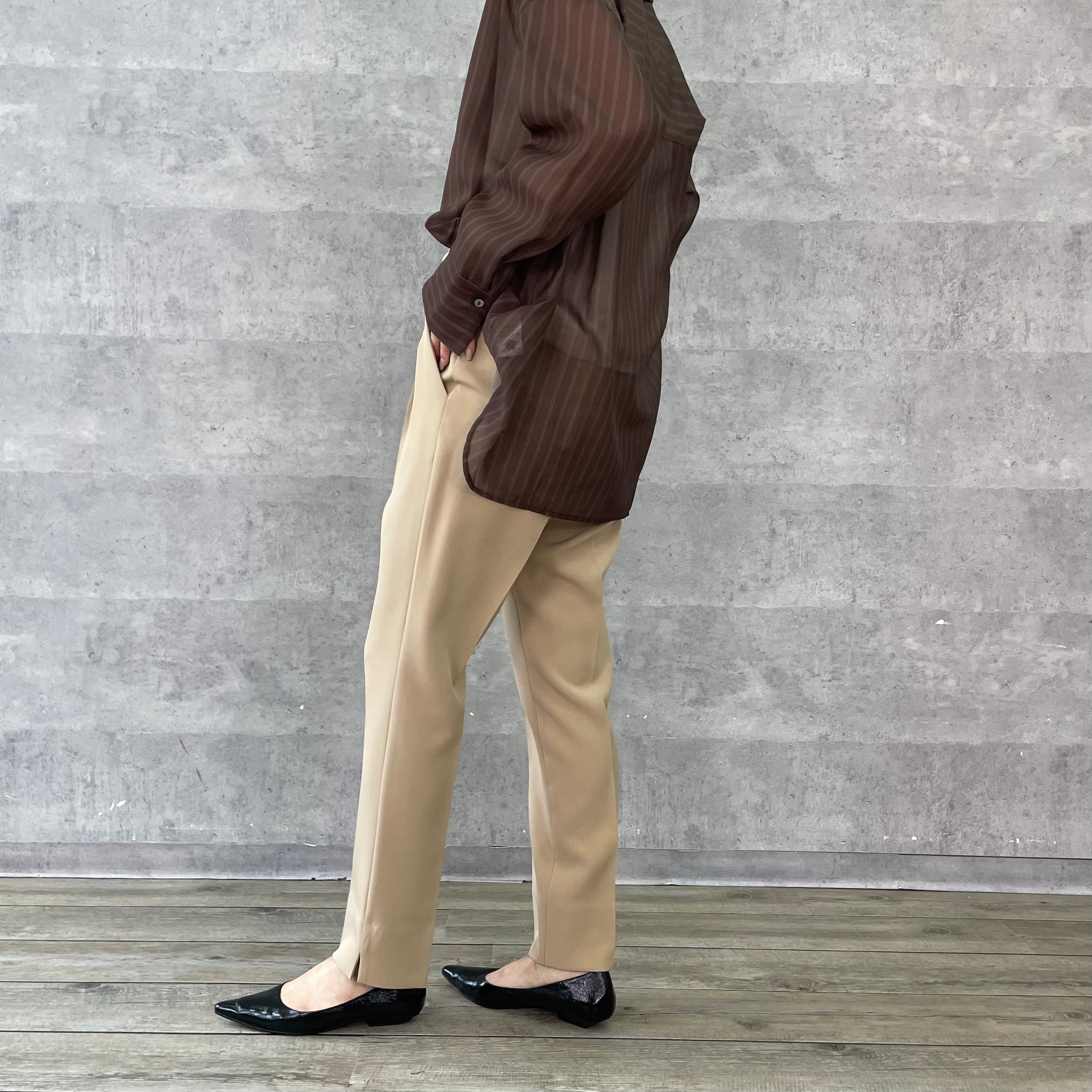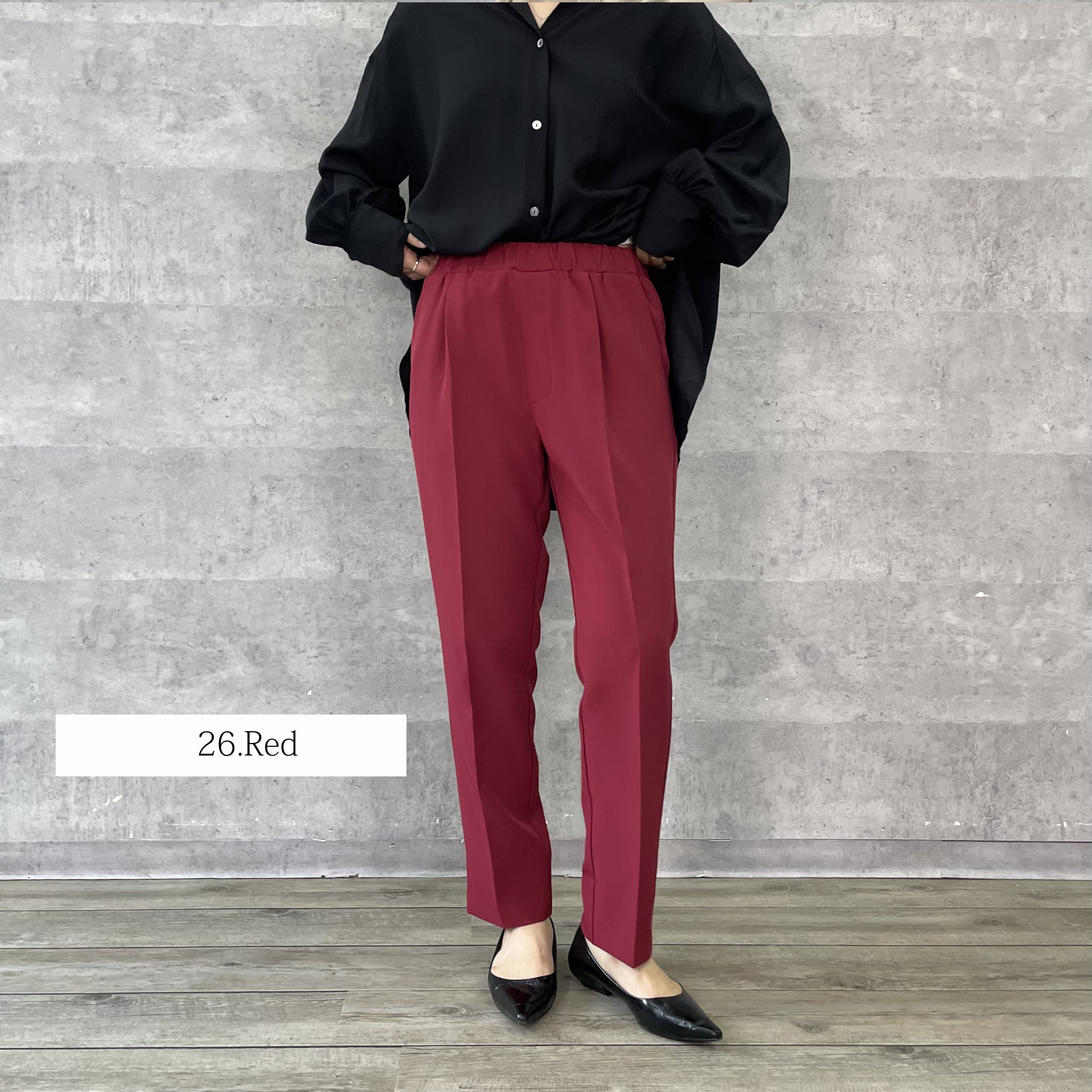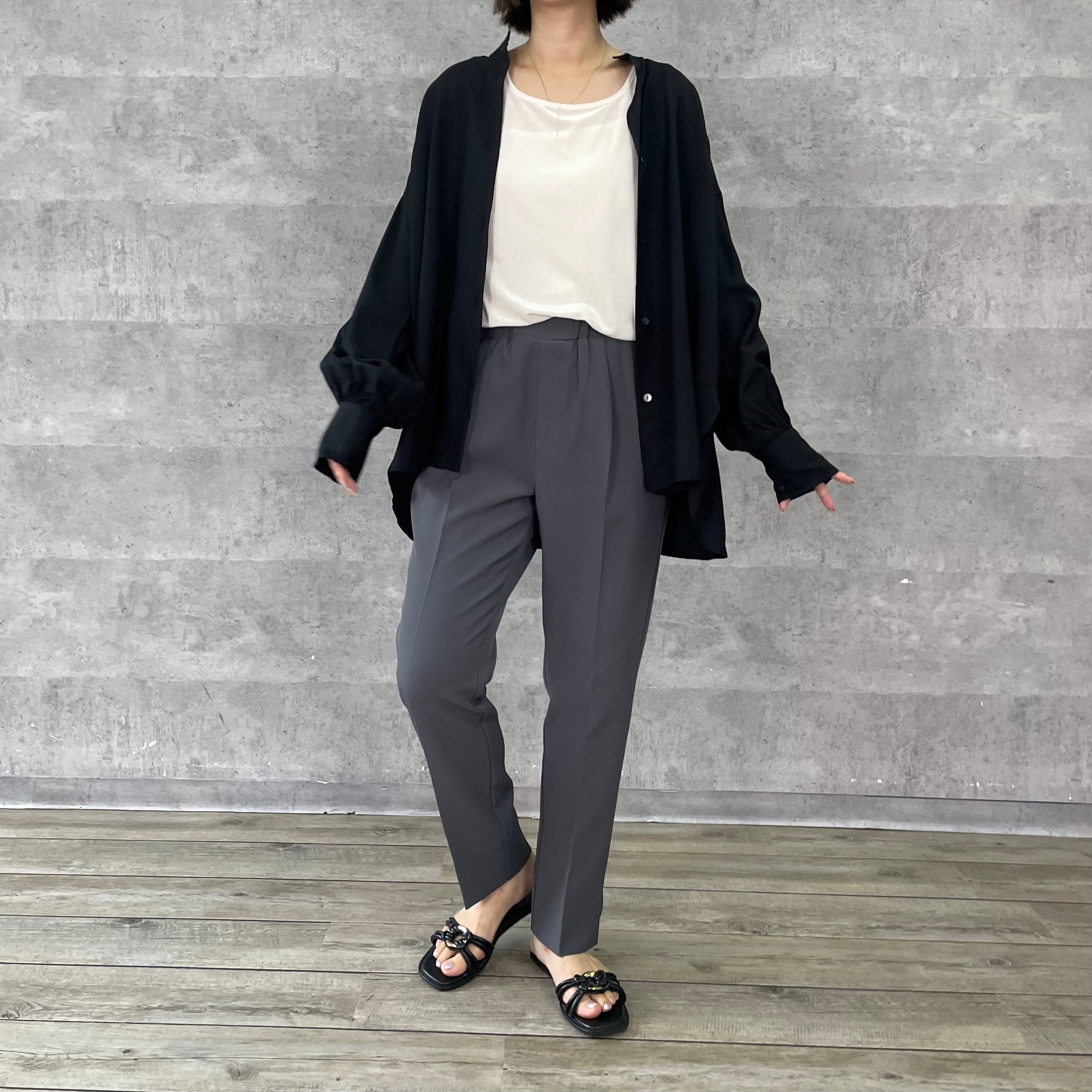 シワになりにくいストレッチのある素材のテーパードパンツ