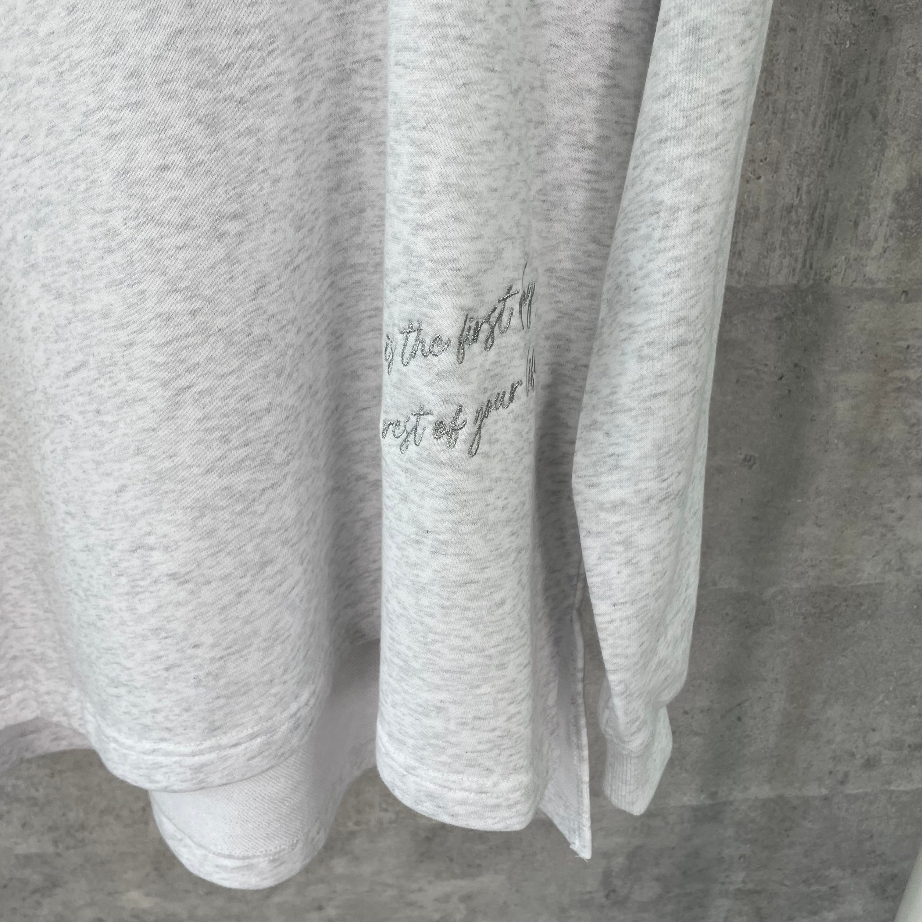 シルバーのロゴ刺繍がトレーナーを大人っぽくしてくれます