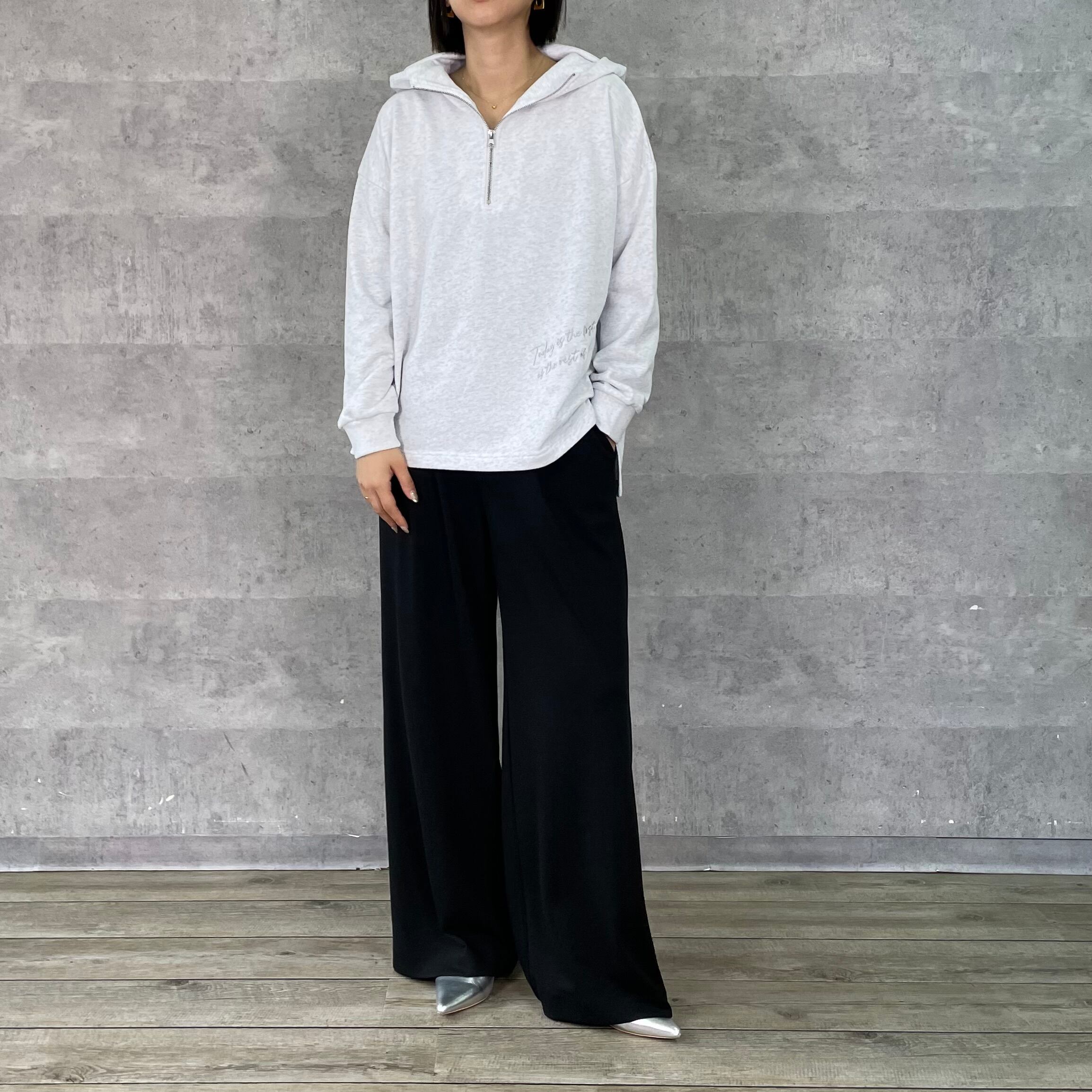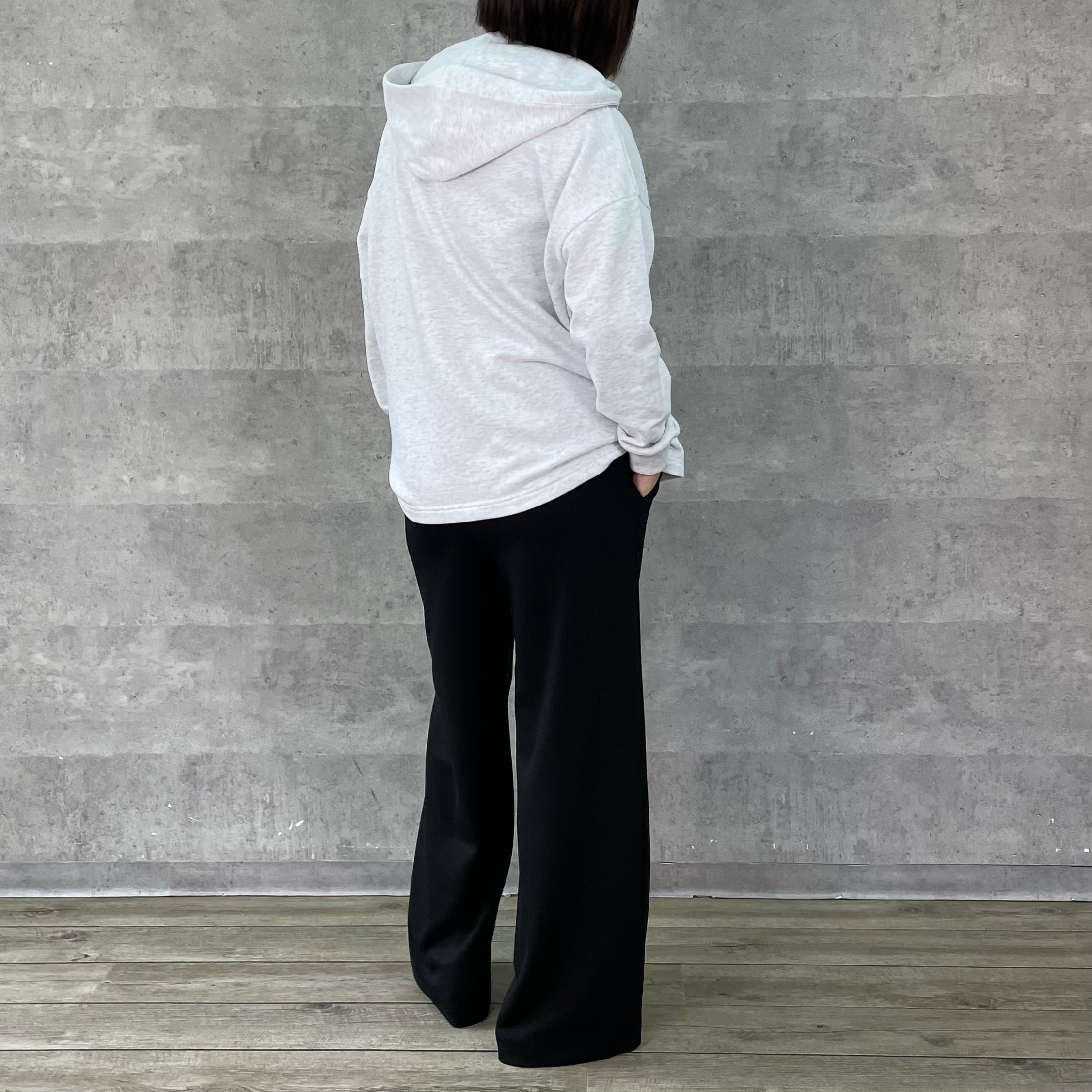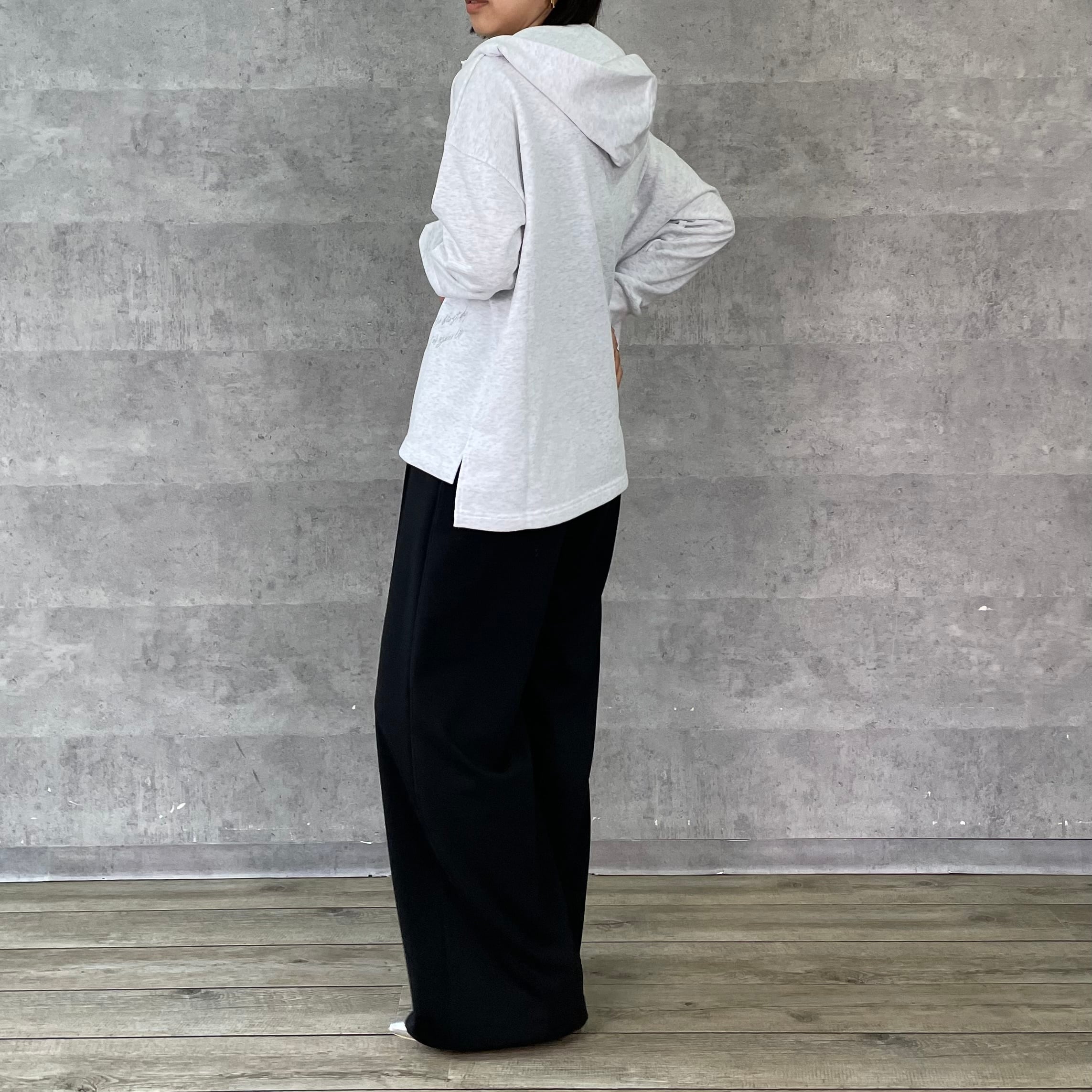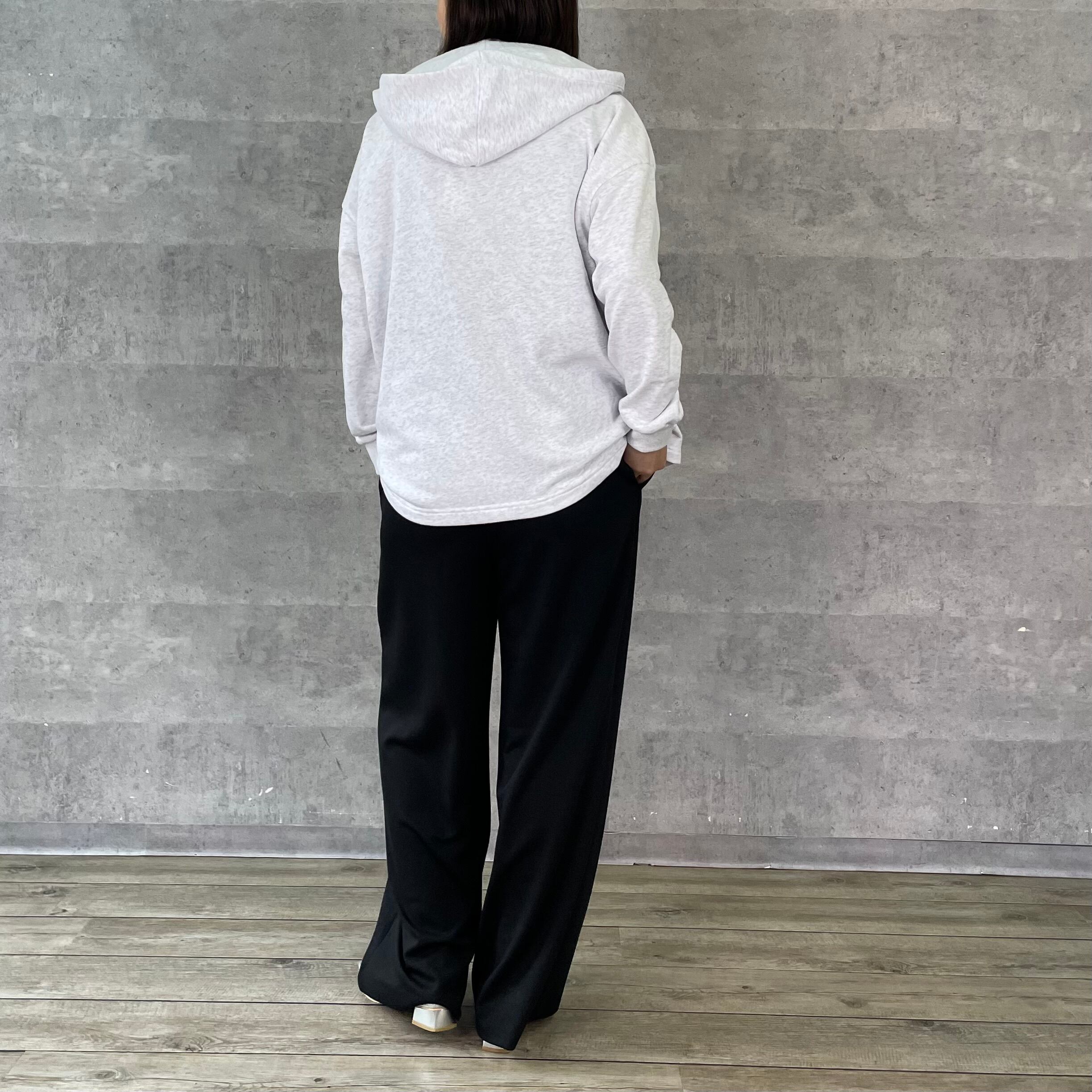 ファスナーを開けて抜け感を作っていただくと大人っぽくパーカーを着こなして頂けます