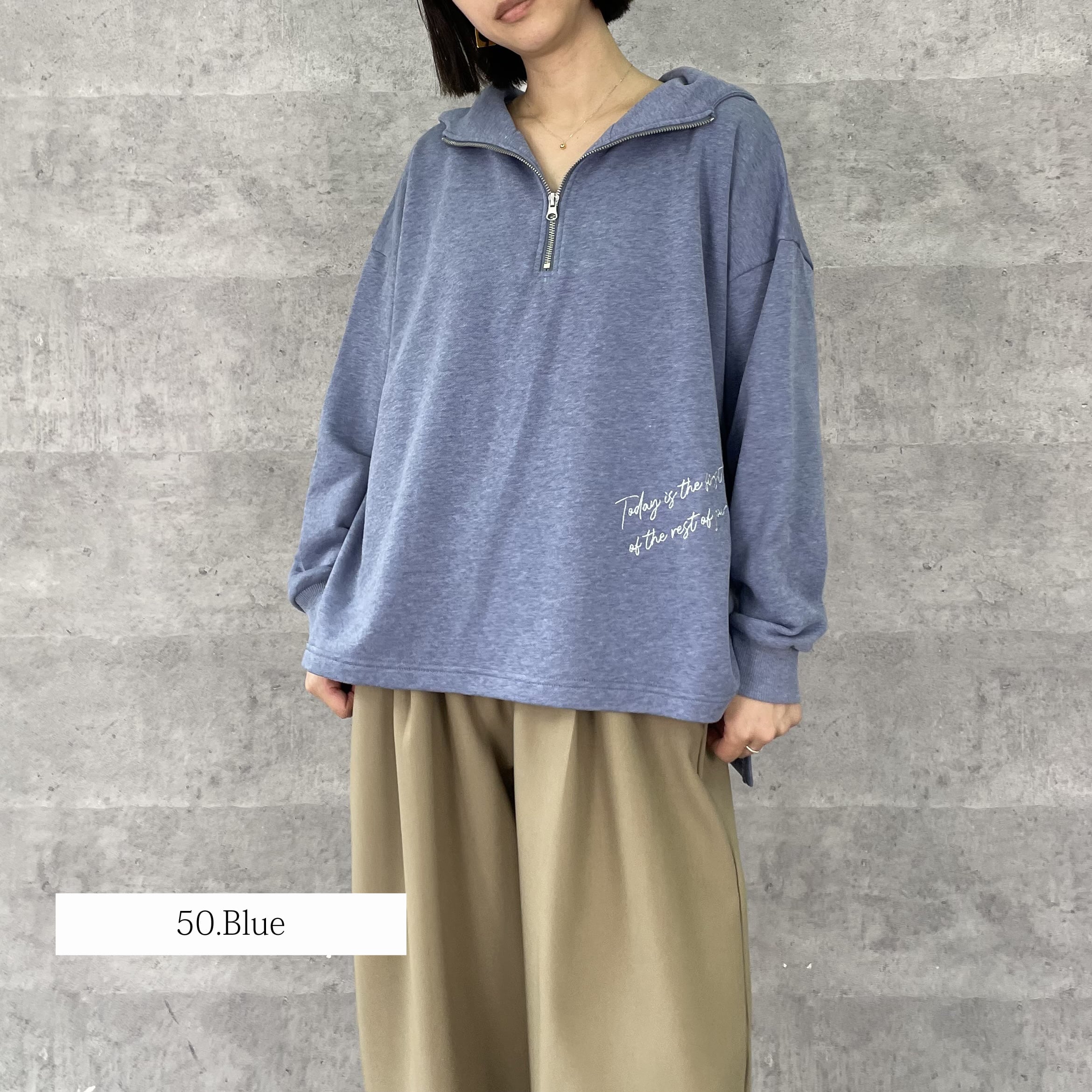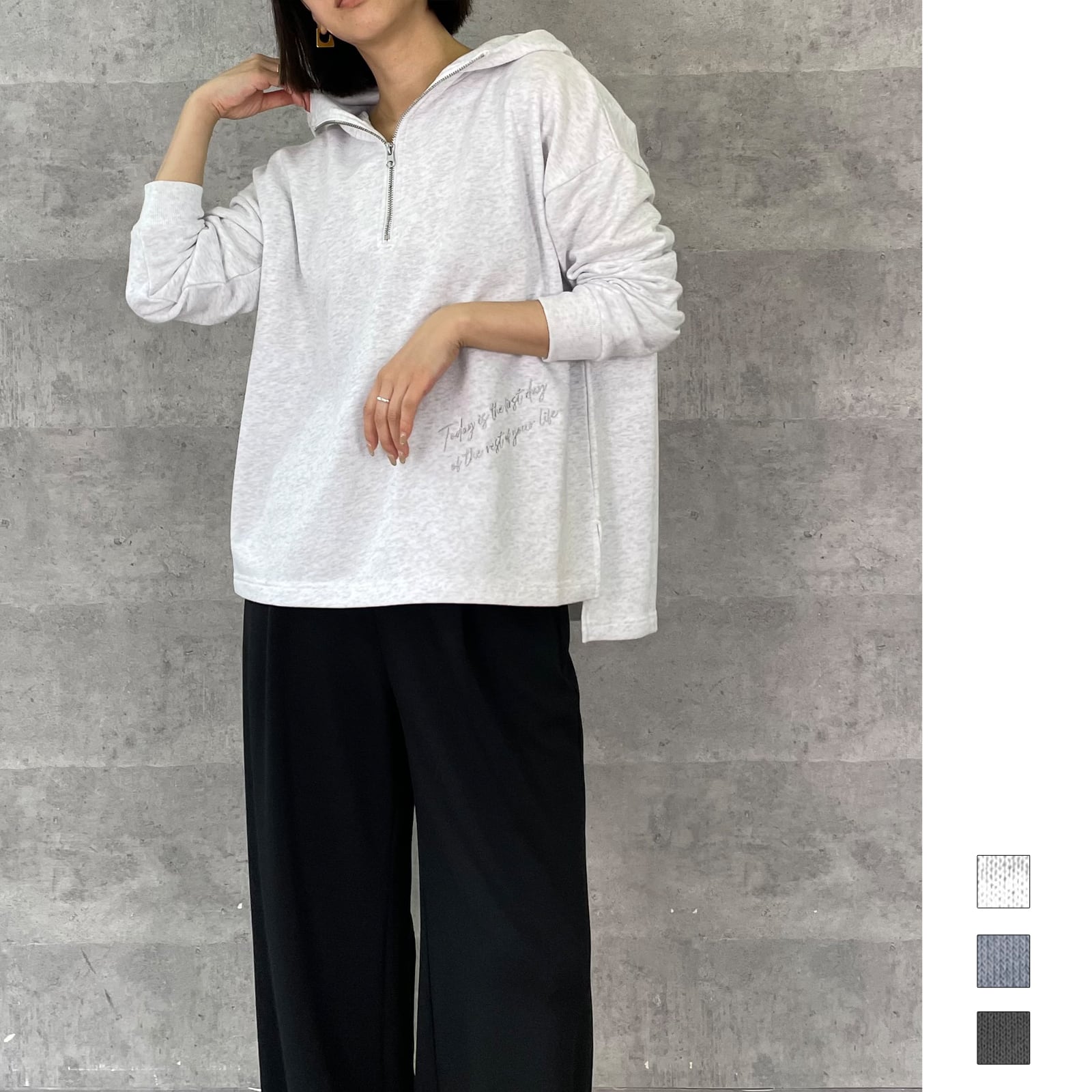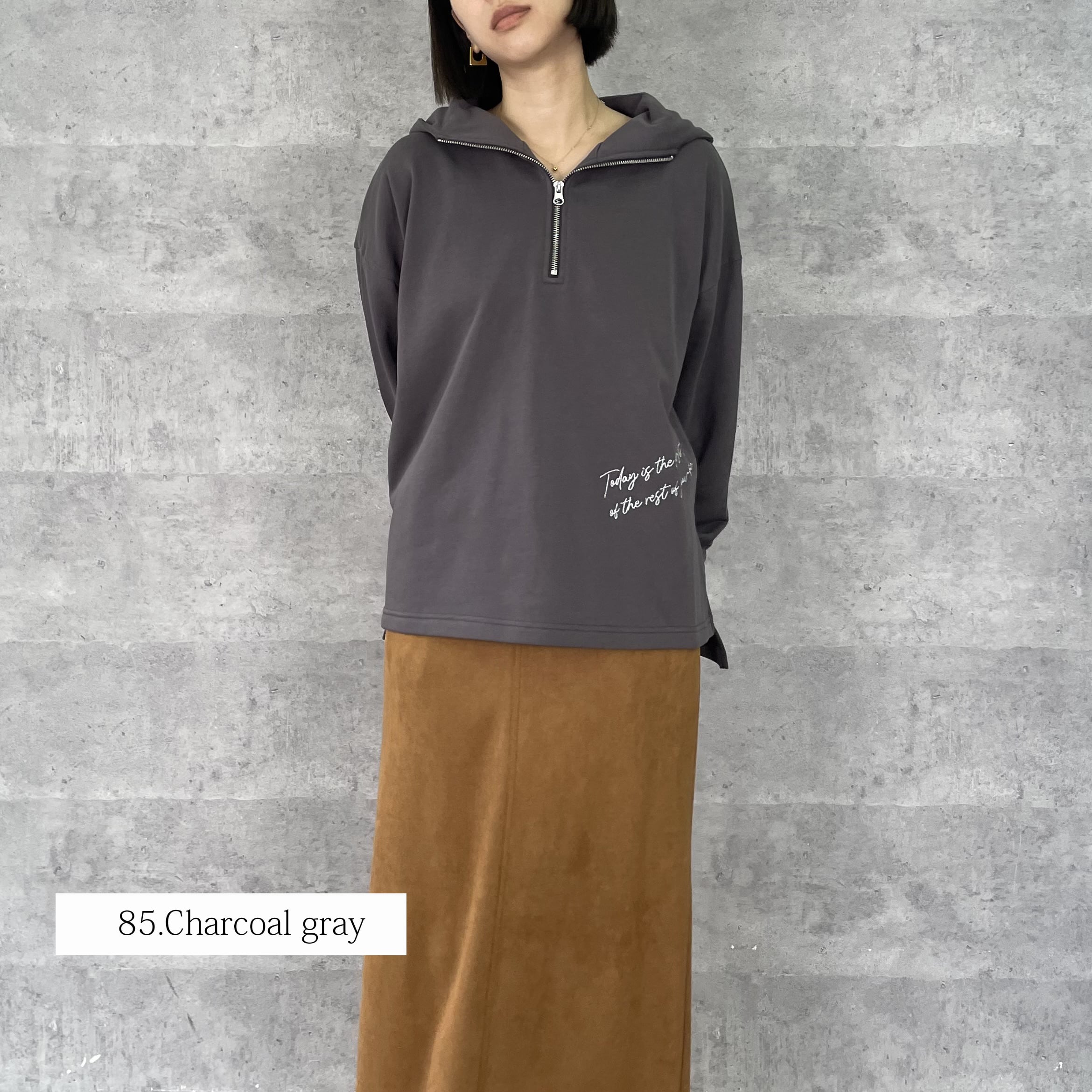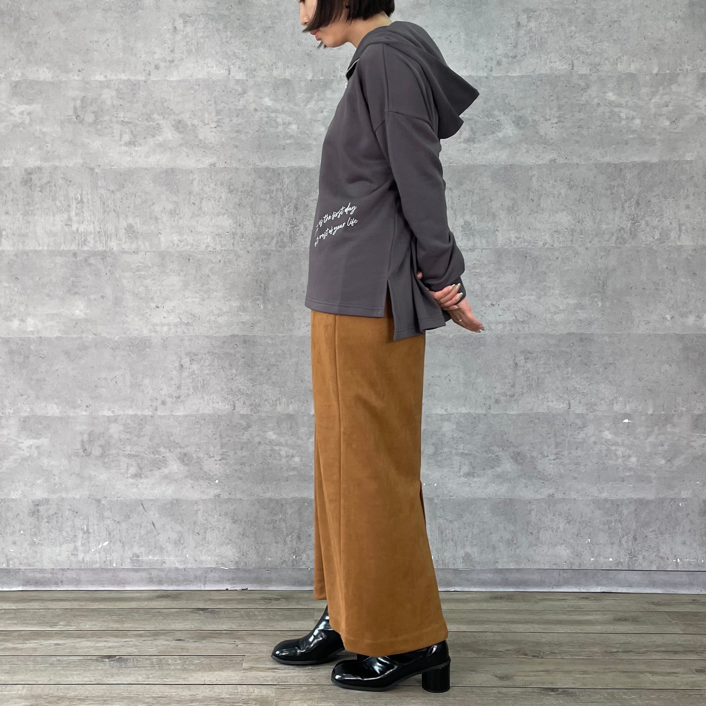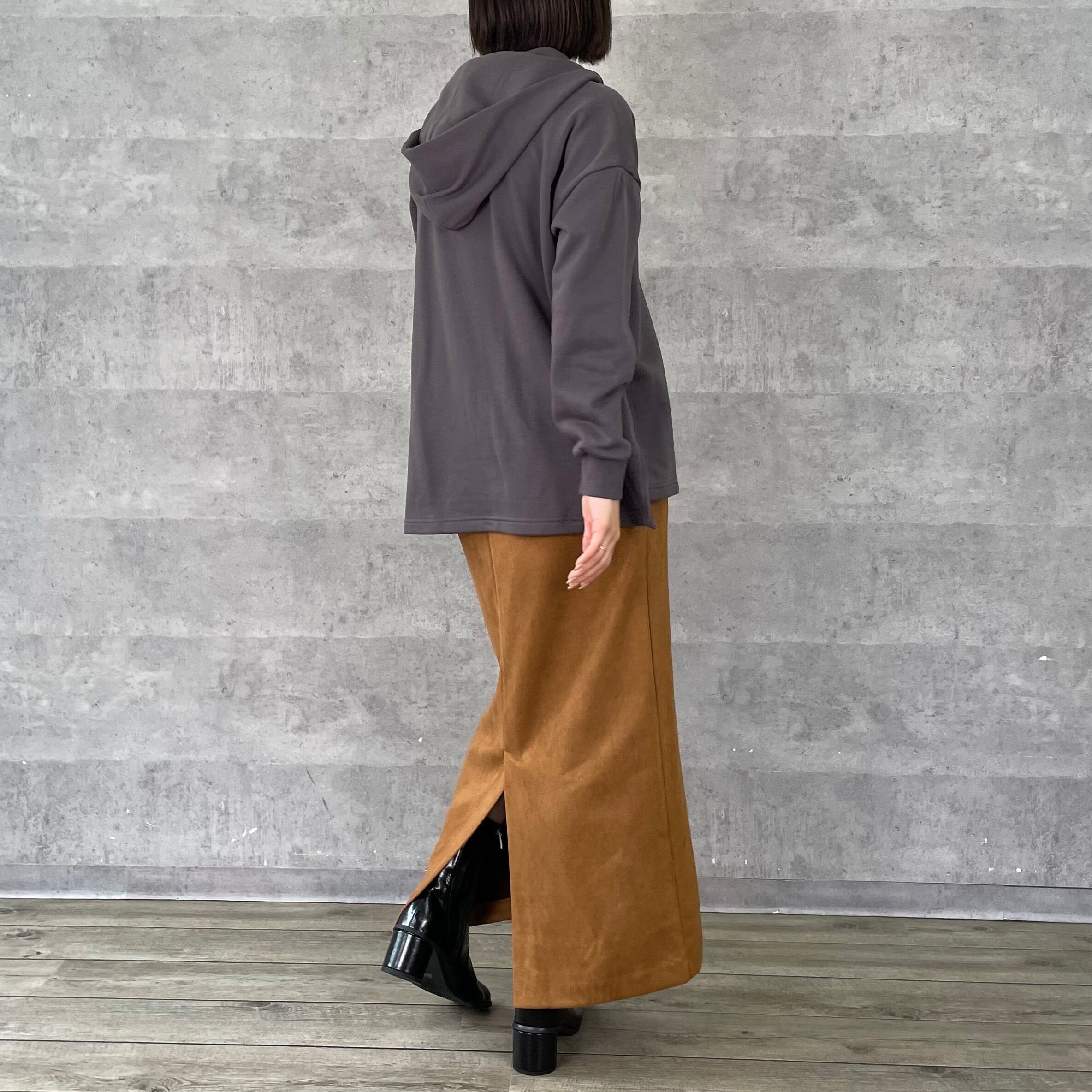 ファスナーを開けて抜け感を作っていただくと大人っぽくパーカーを着こなして頂けます