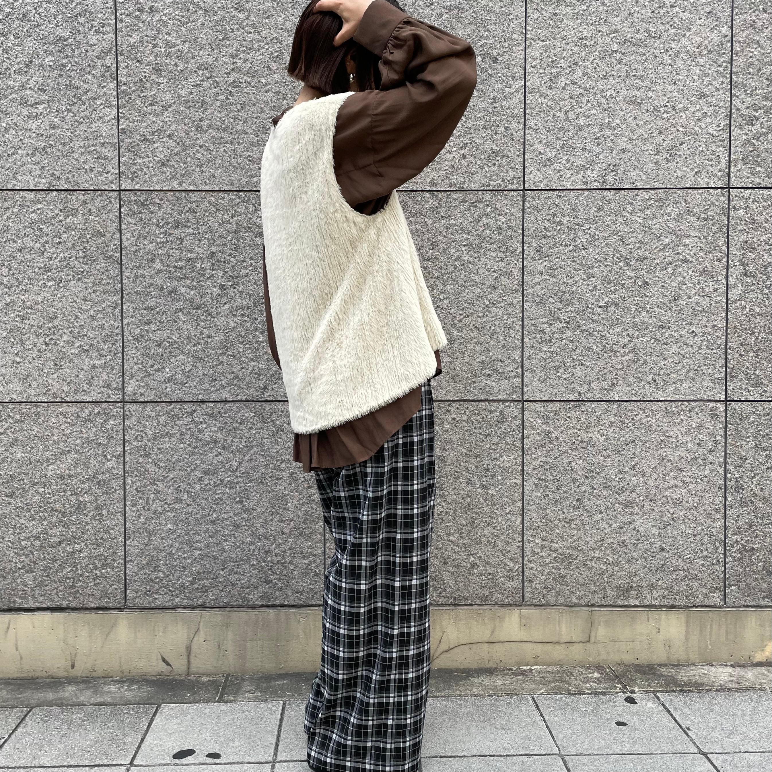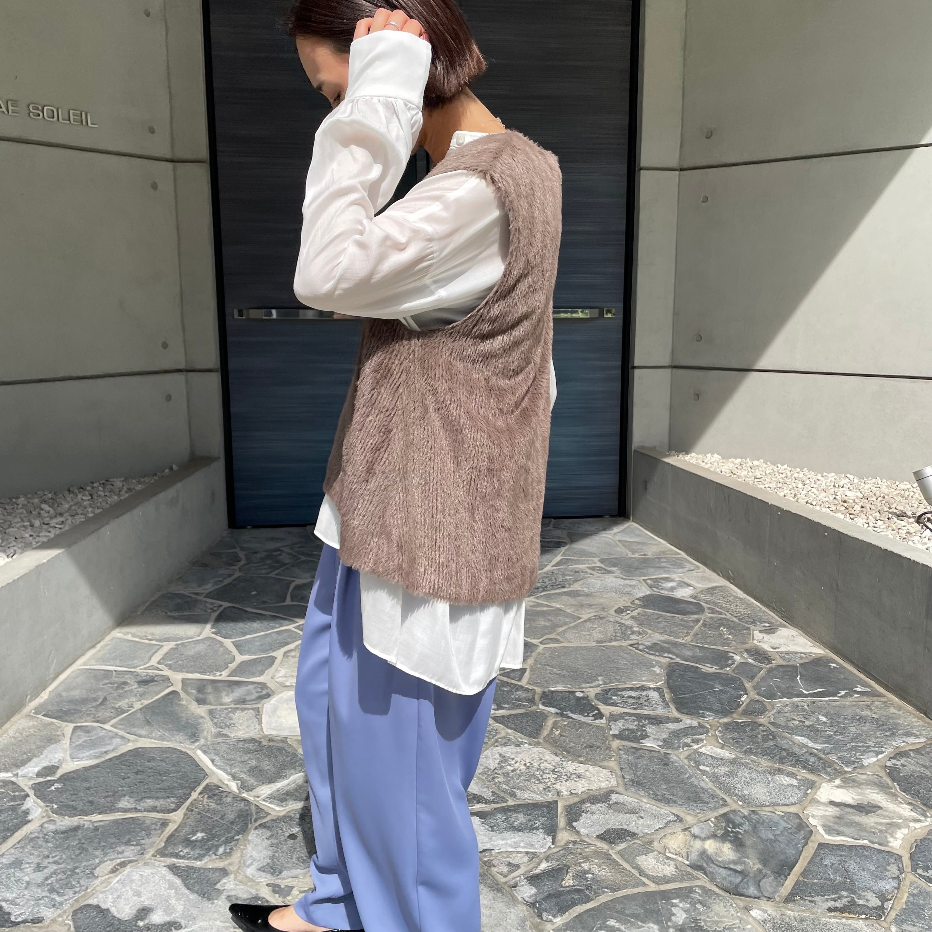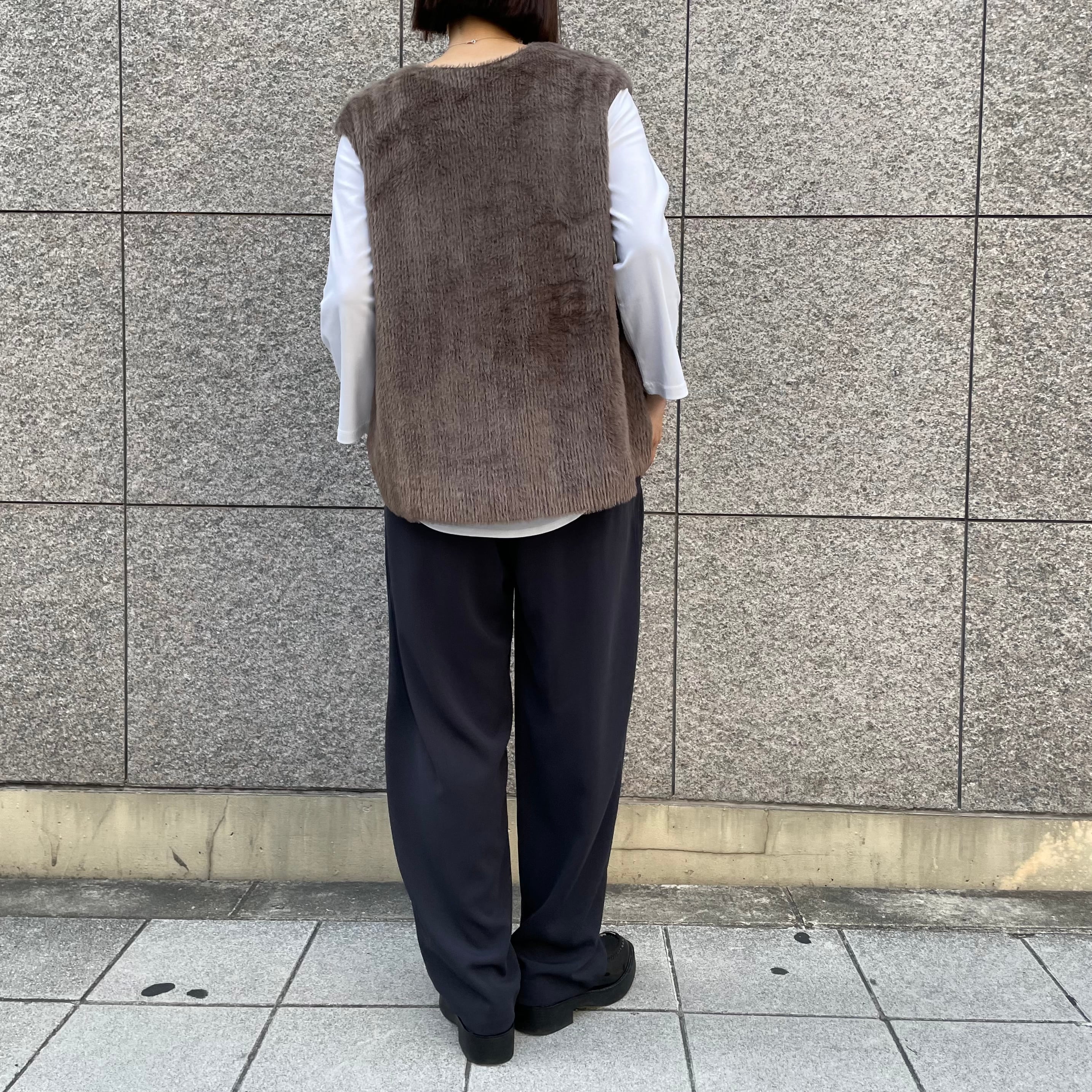 ストレッチの効いたファー素材でゆったりとした着用感が魅力のフレアベスト。