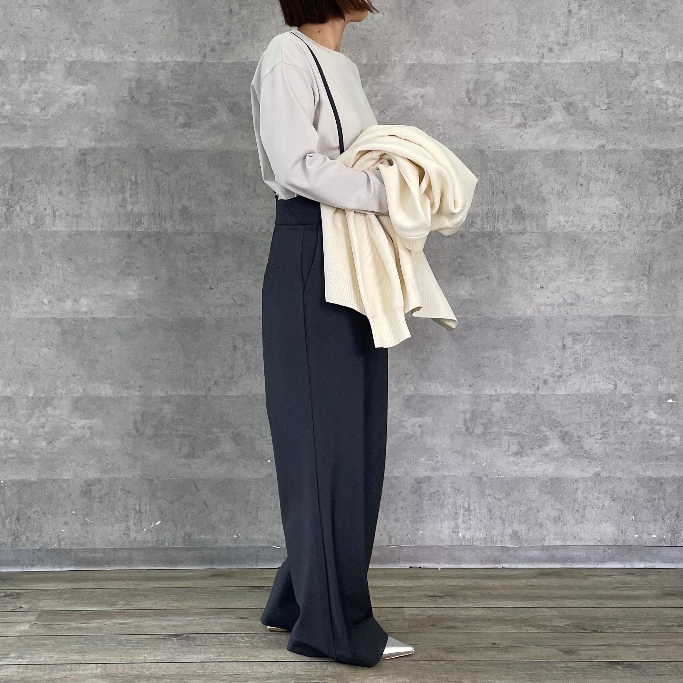 スニーカー合わせでもカジュアル過ぎず大人っぽいスタイリングに仕上がります。