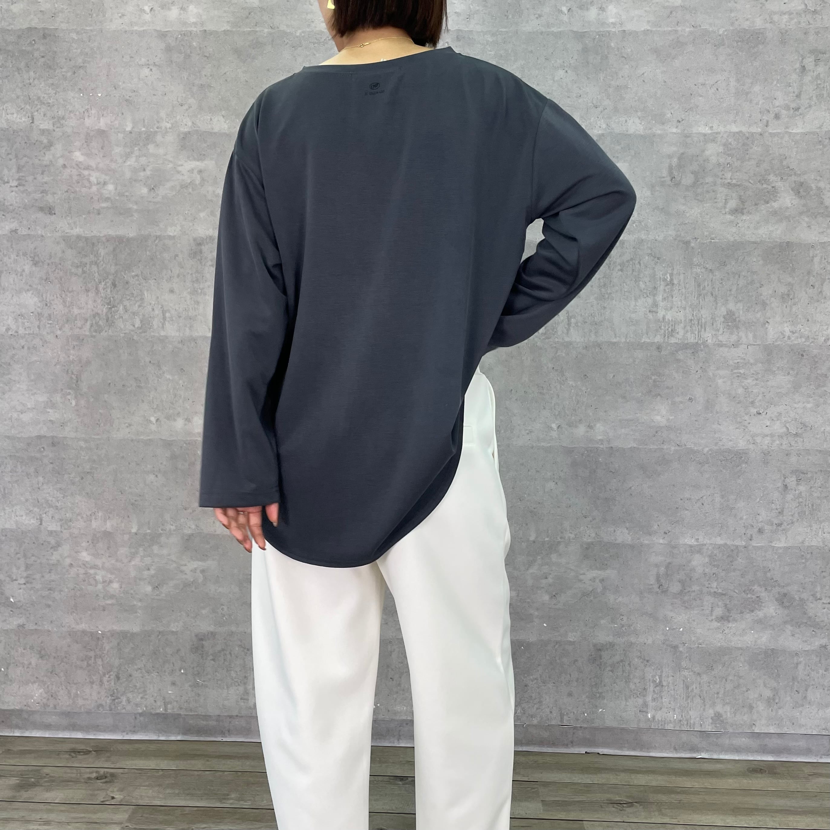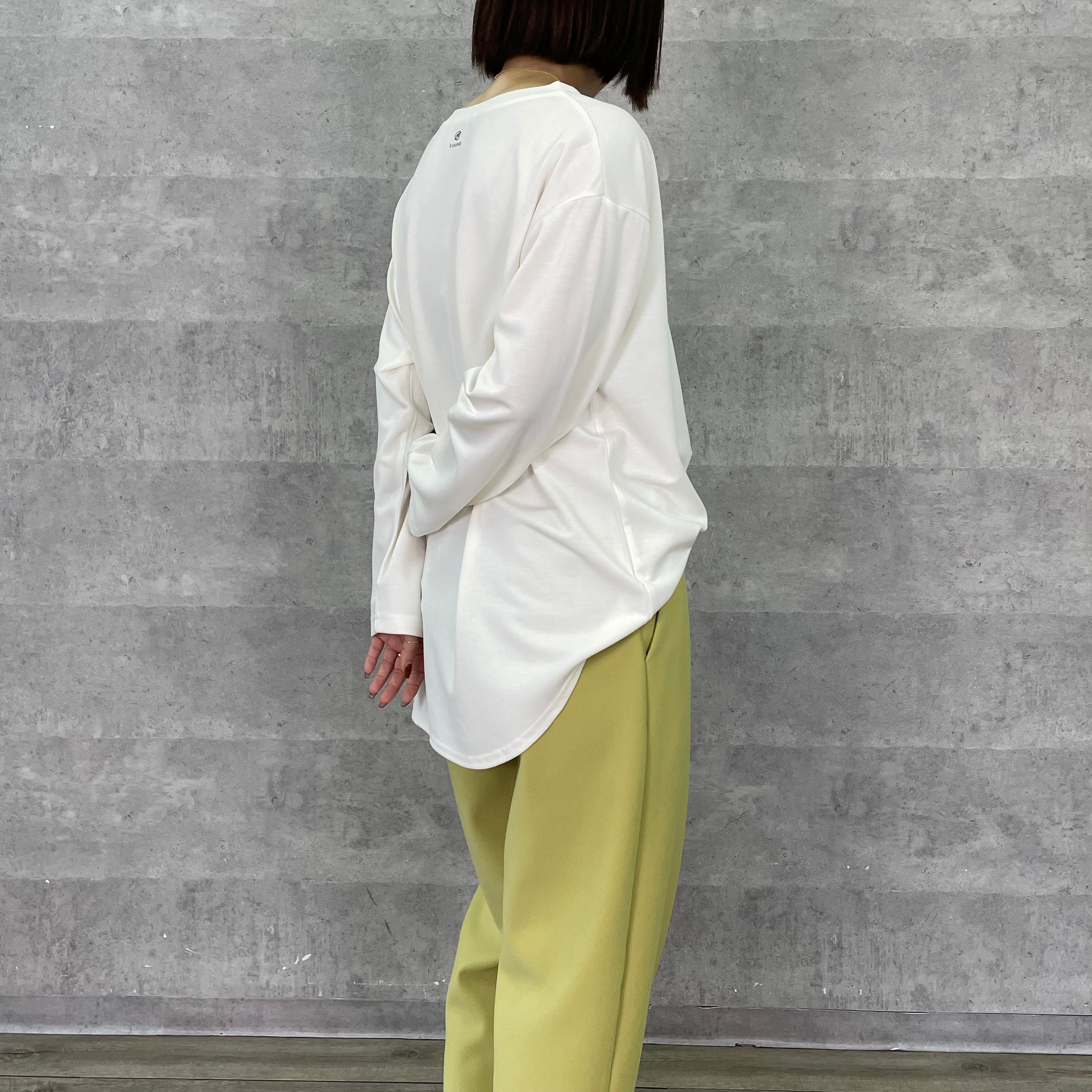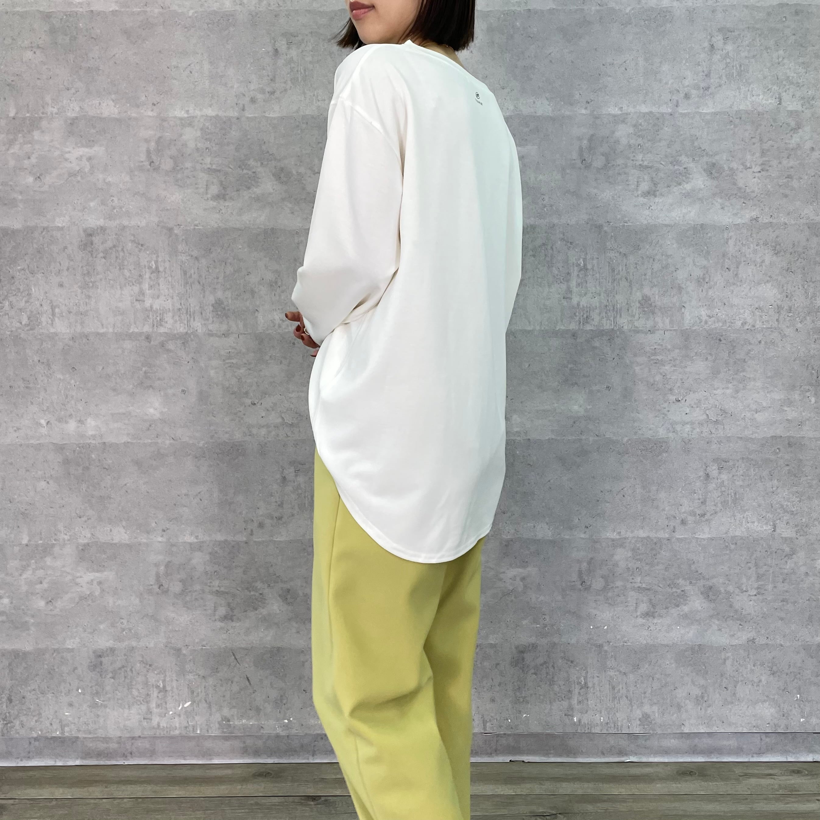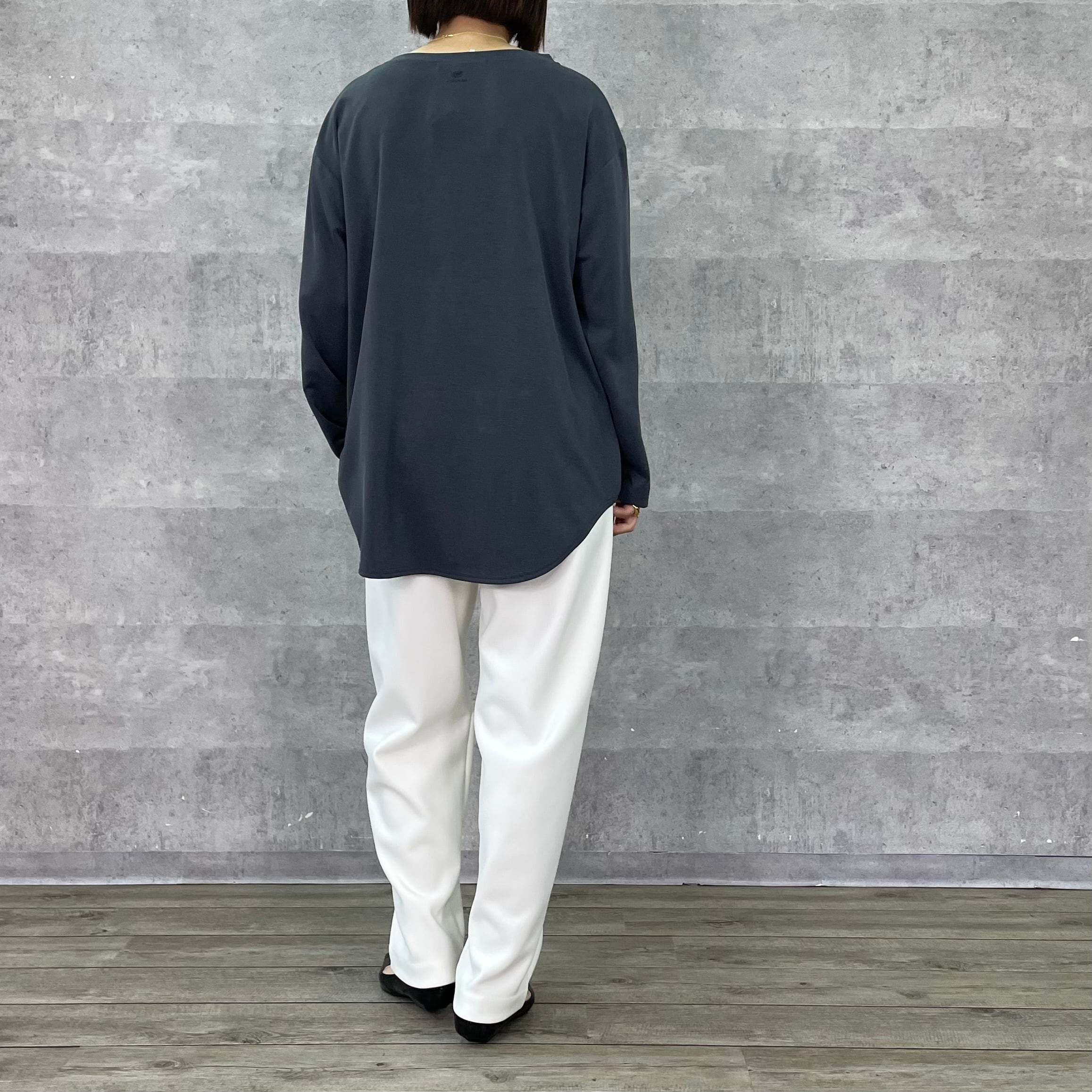 落ち感のあるしっとりとした質感のカットソー素材でリラックス感のあるストレスフリーな着用感です。