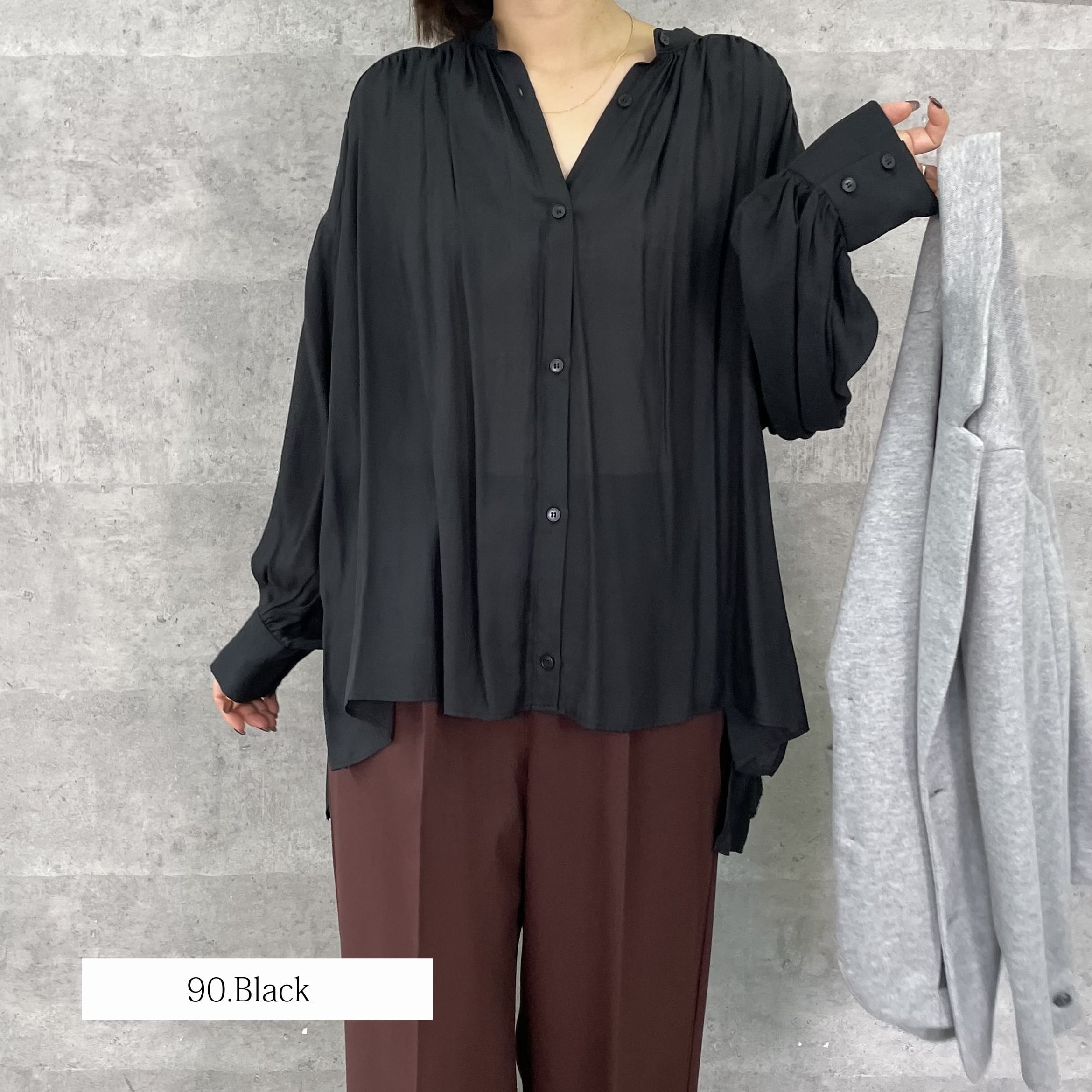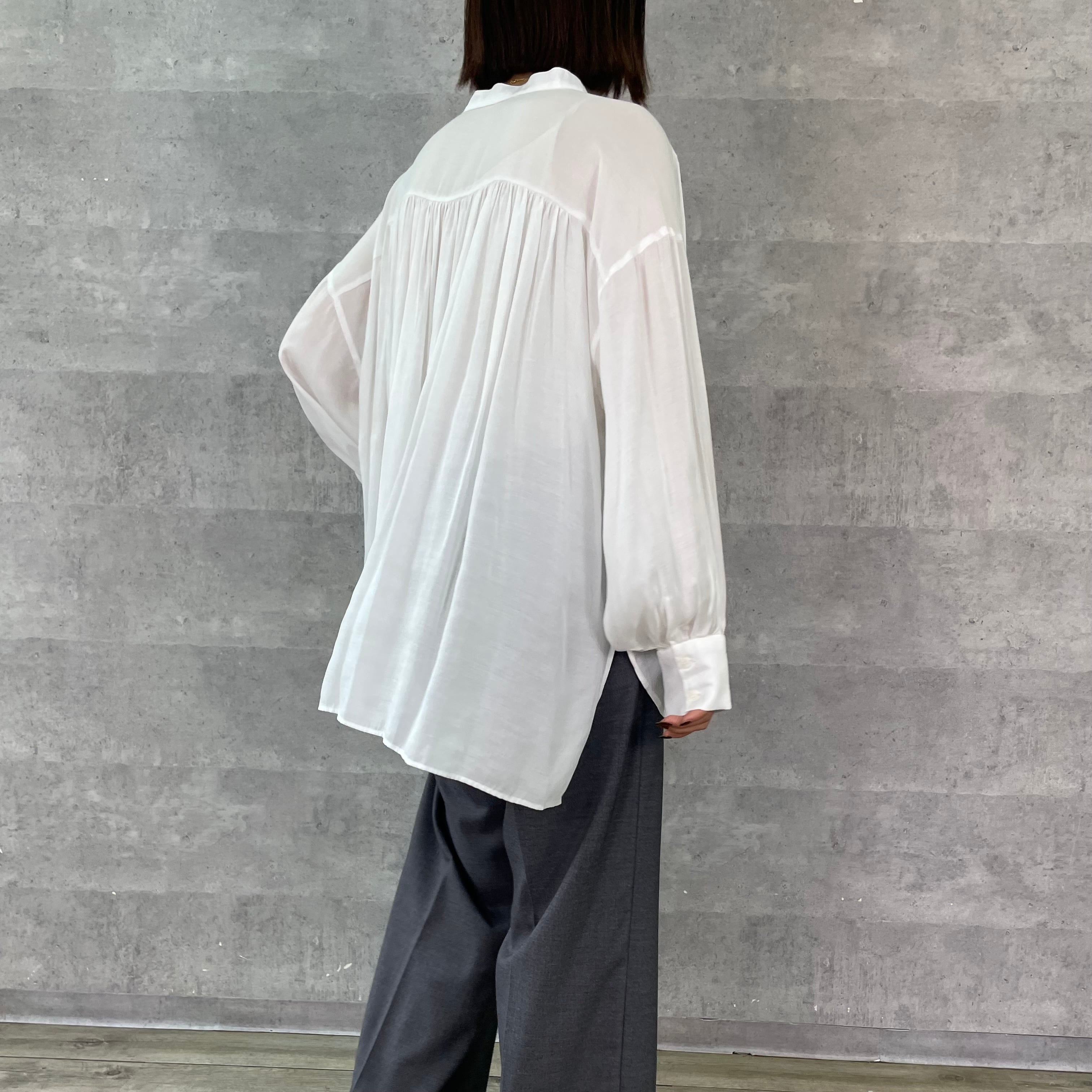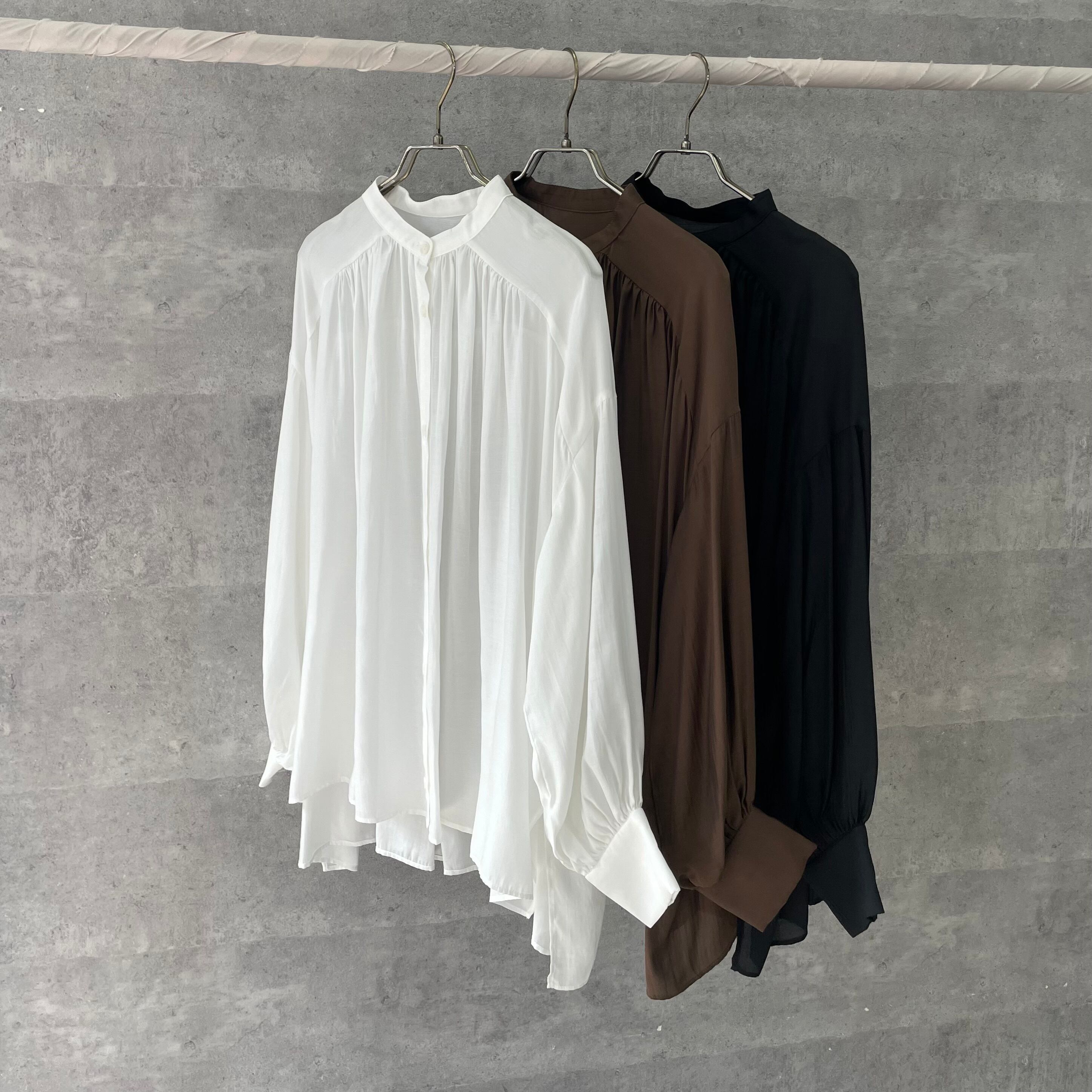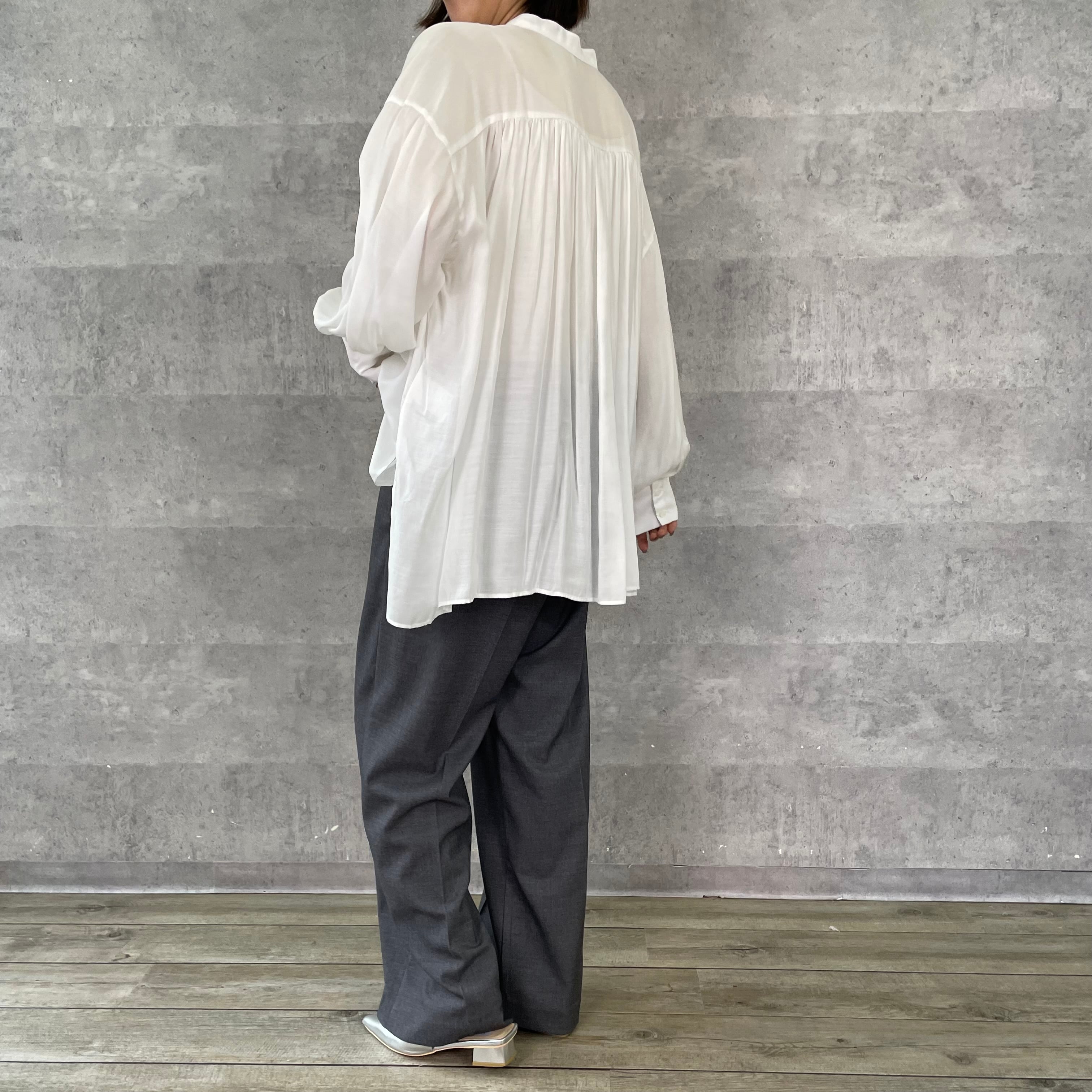 たっぷりとしたギャザーが動くとふわりとなびいて女性らしく軽やかなブラウス。