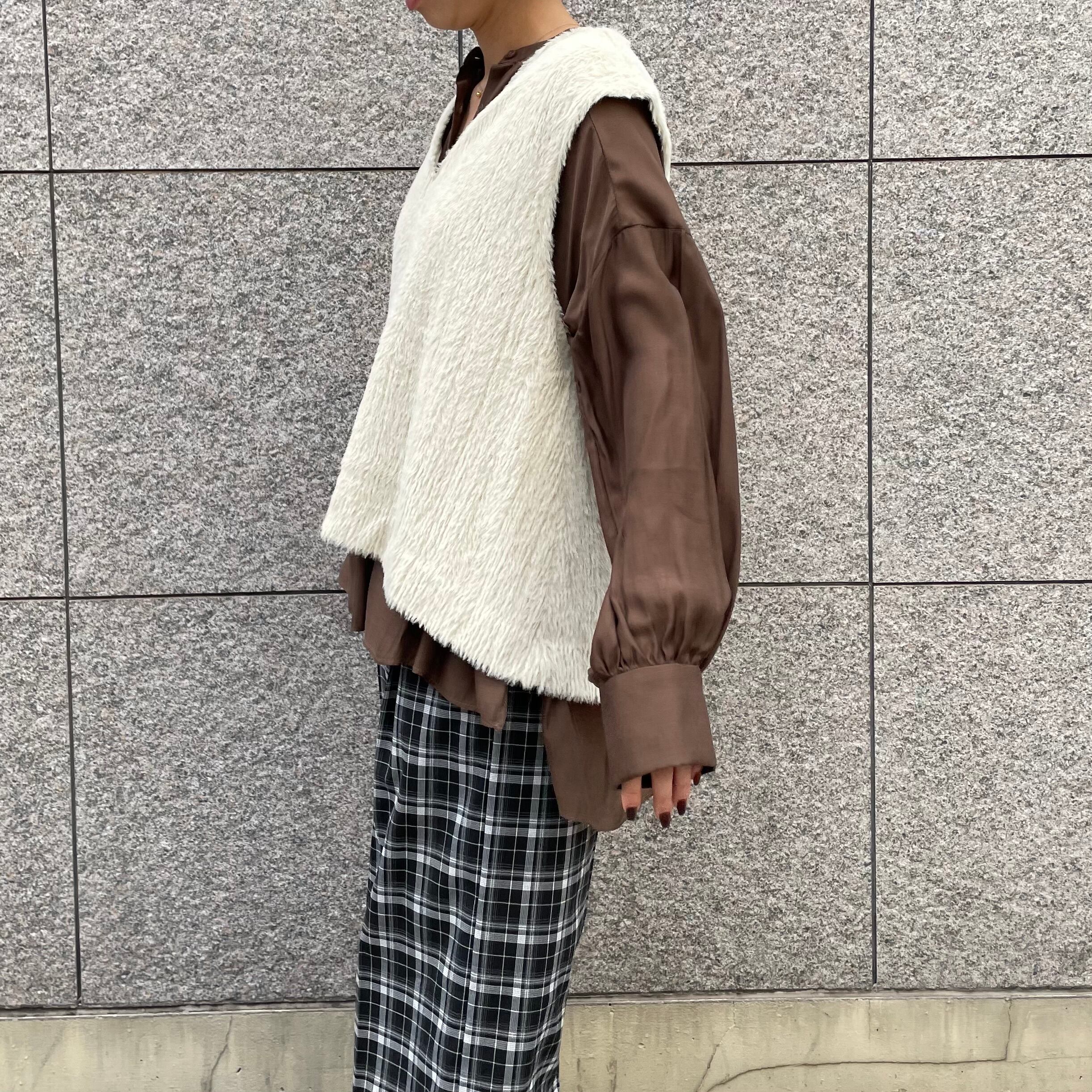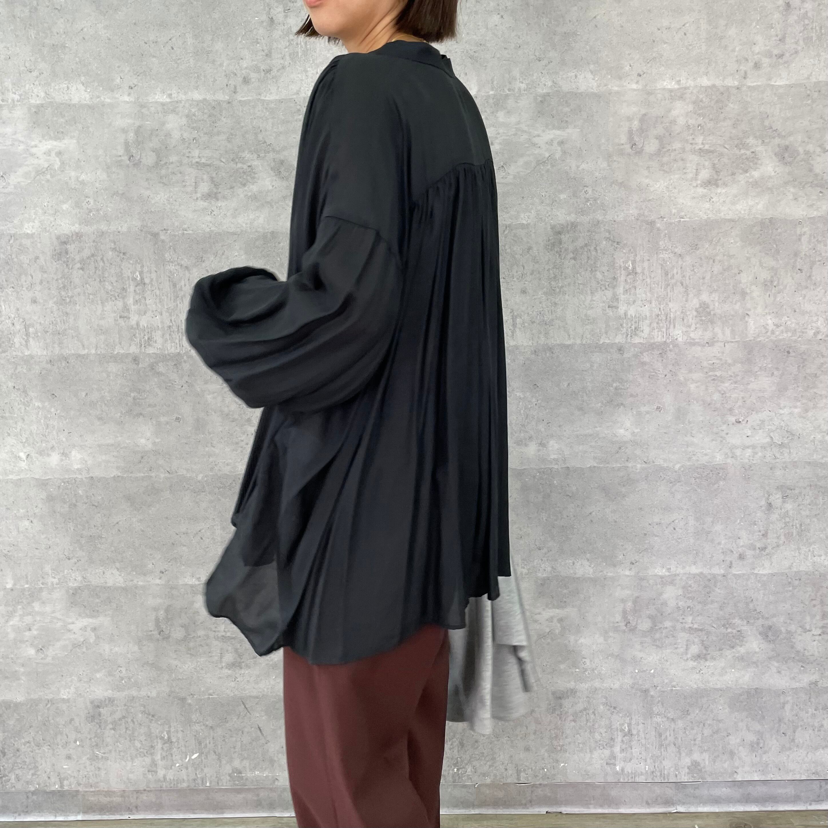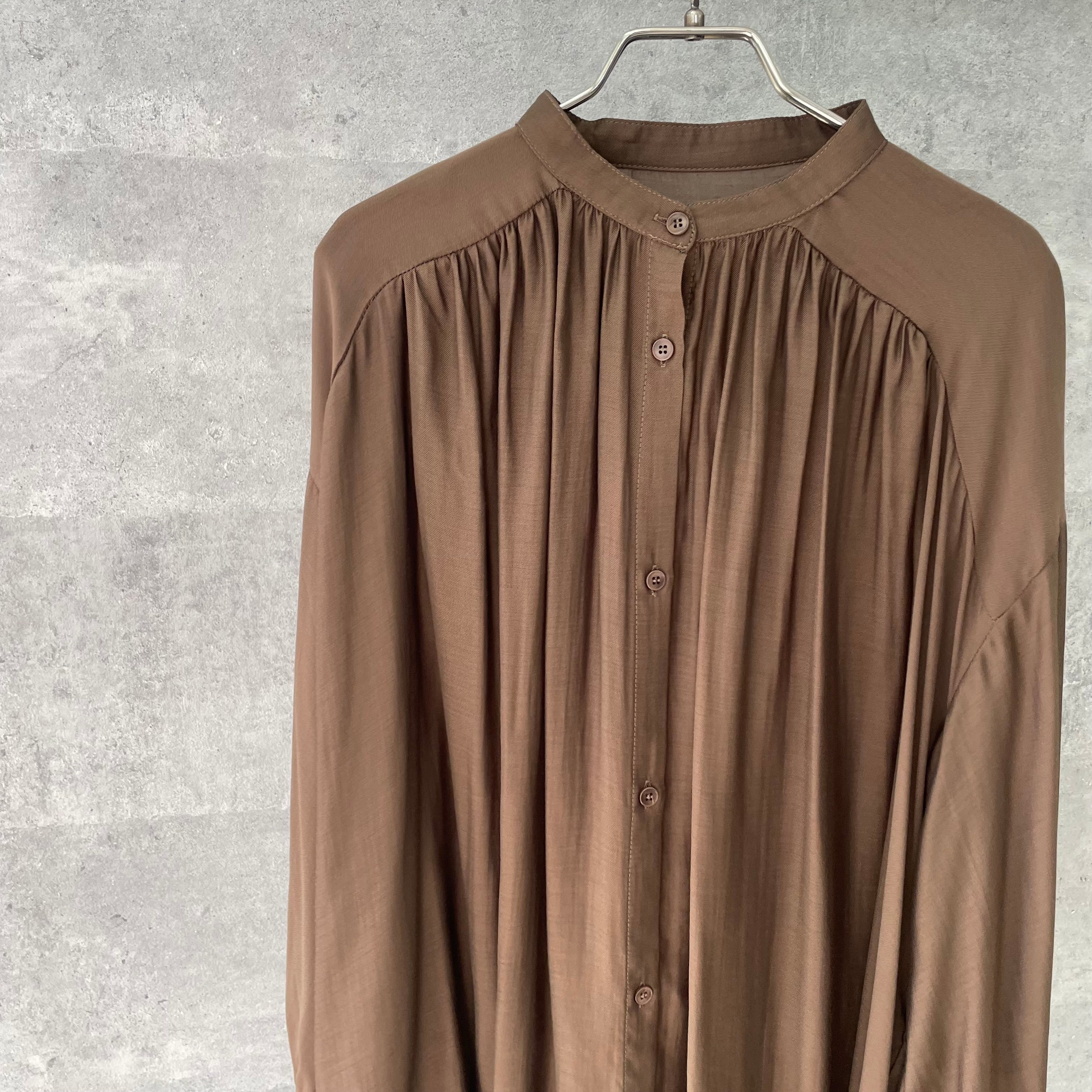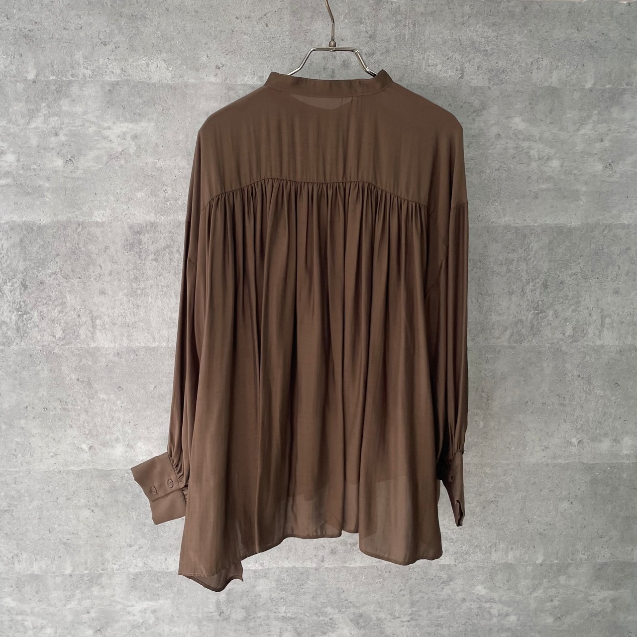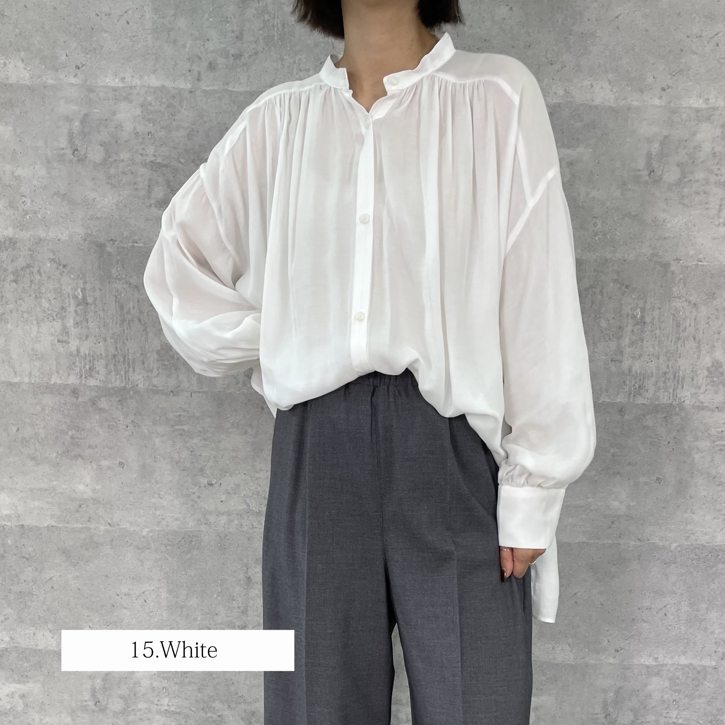 たっぷりとしたギャザーが動くとふわりとなびいて女性らしく軽やかなブラウス。