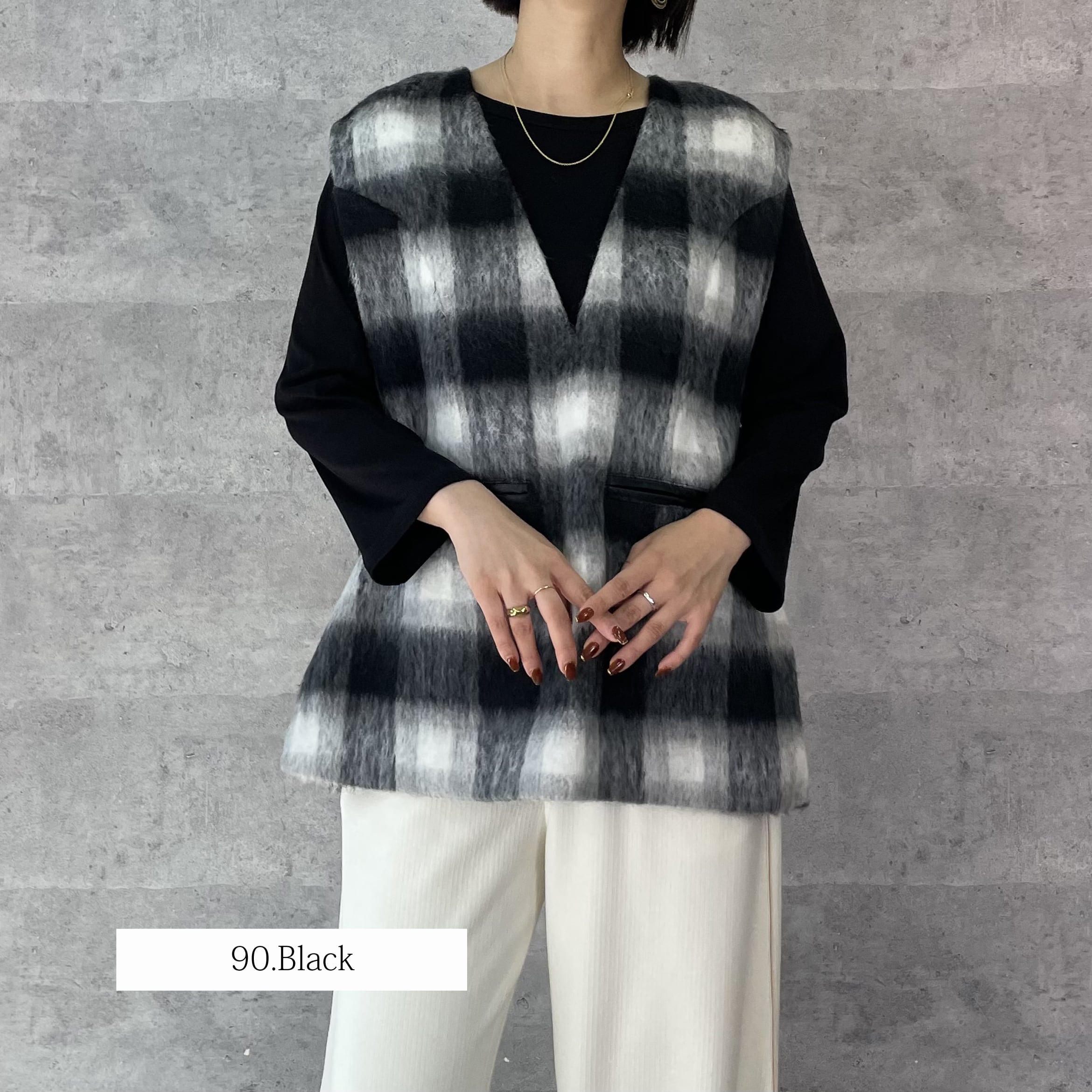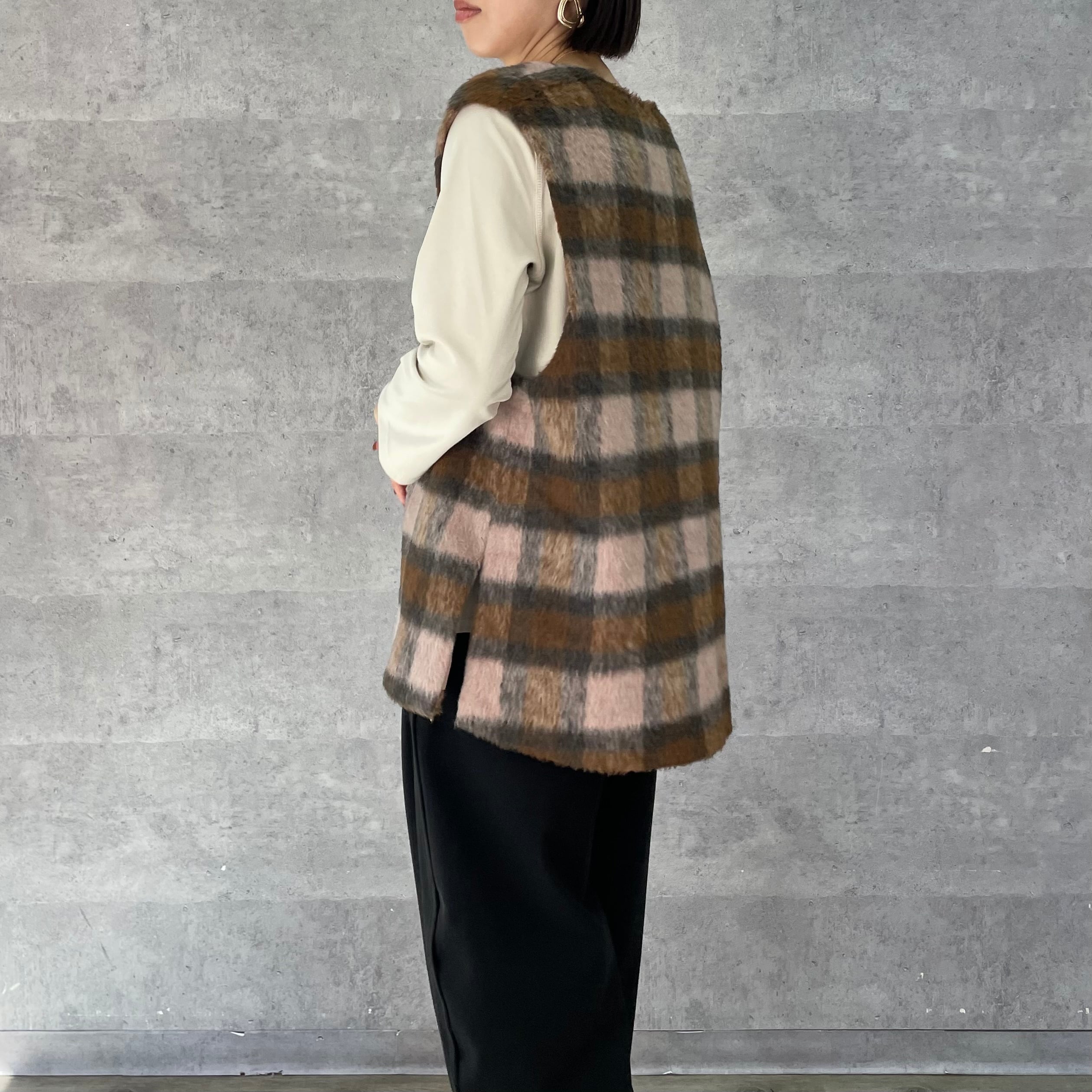 アイキャッチ―なシャギーチェックのベスト。