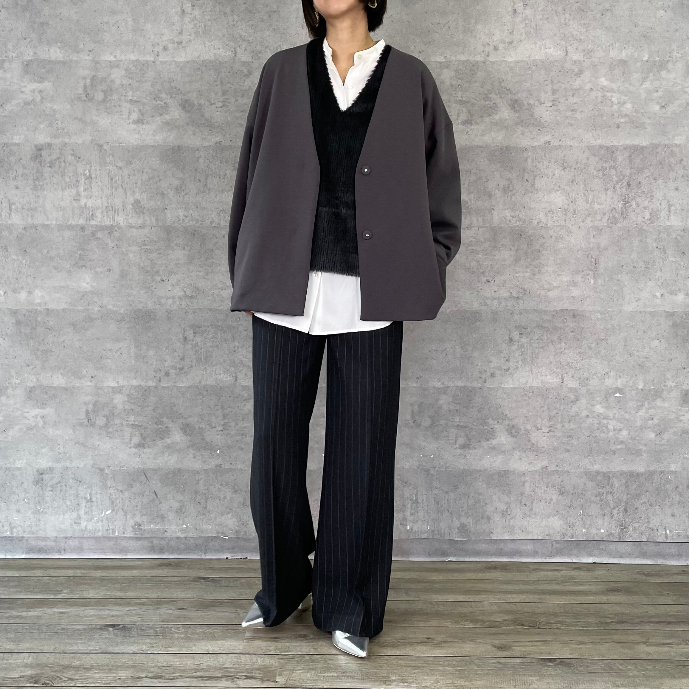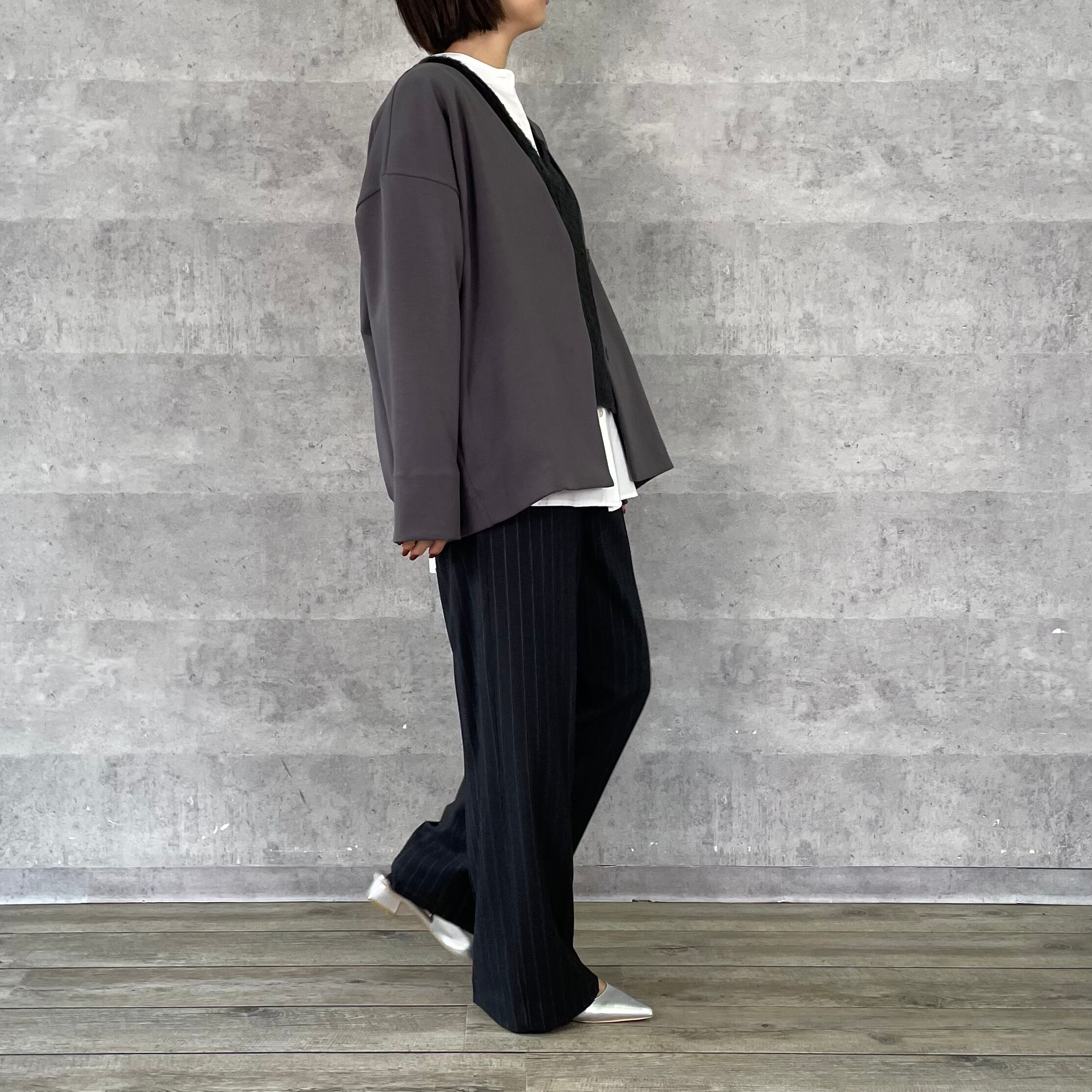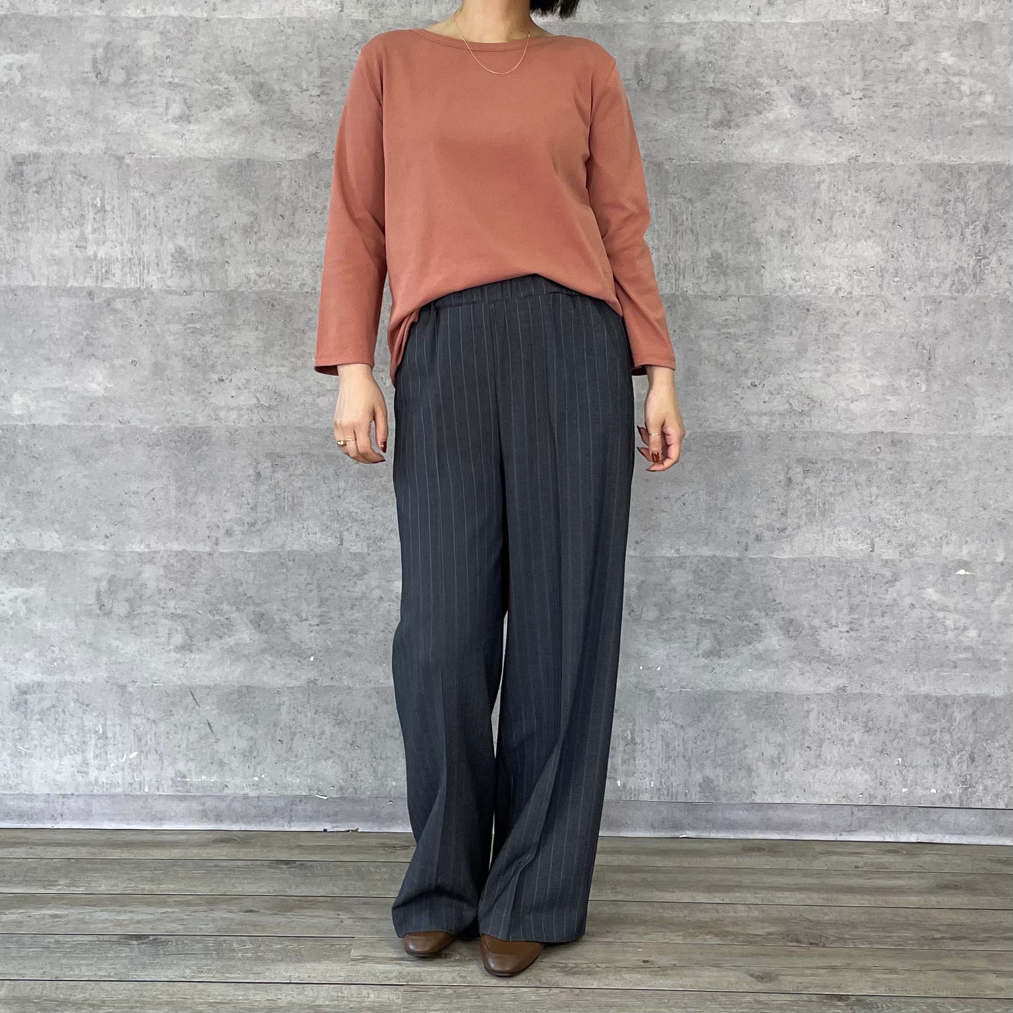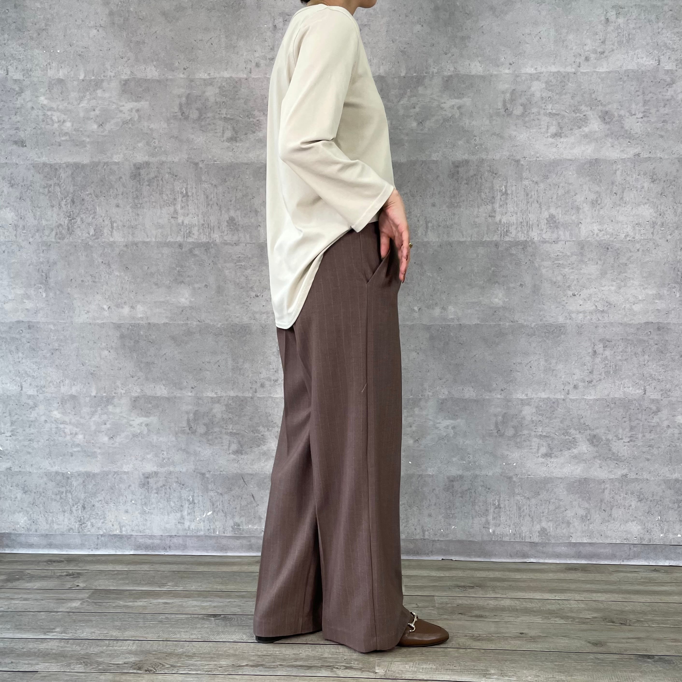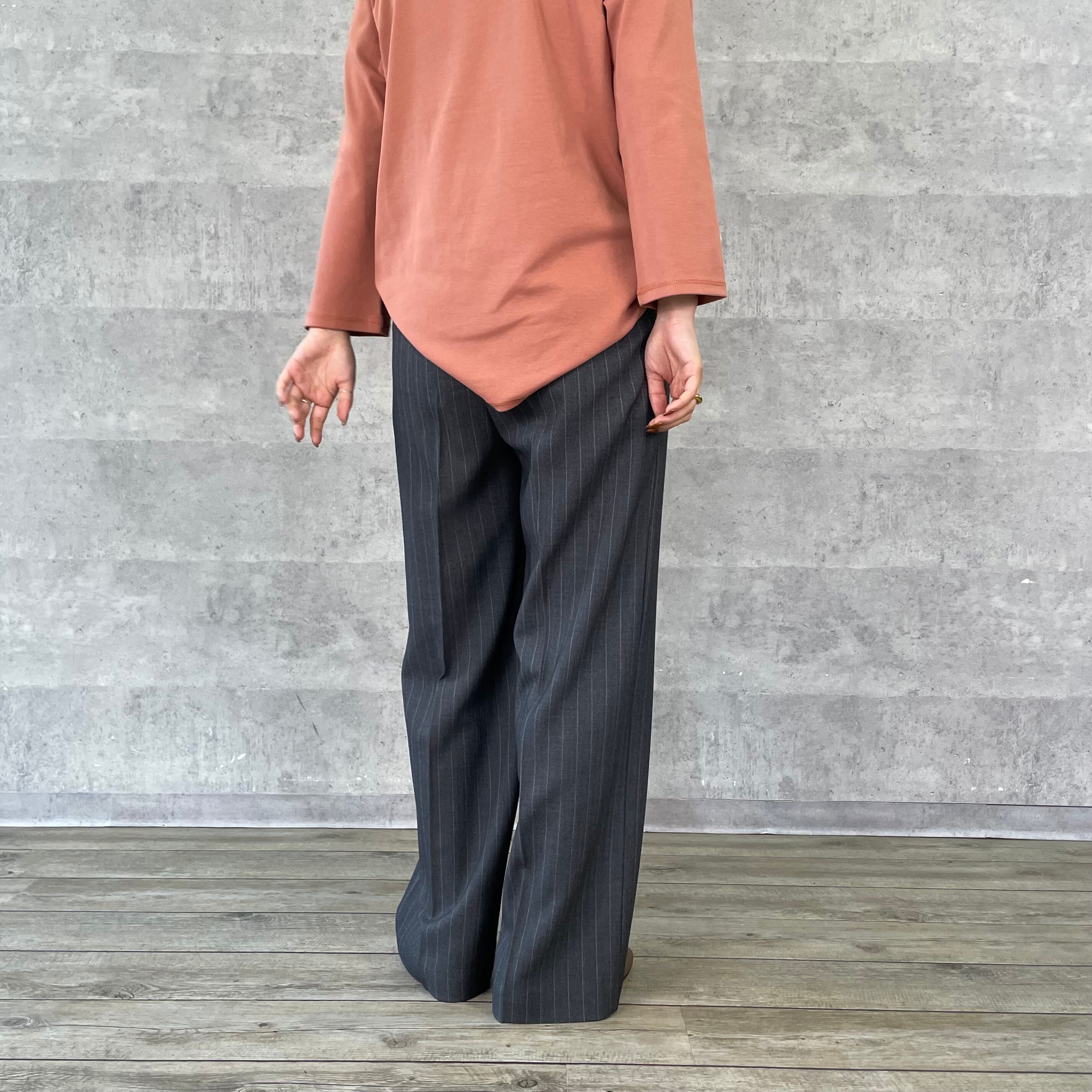 スッキリ見えるルーミーパンツの先染めストライプ柄タイプ
