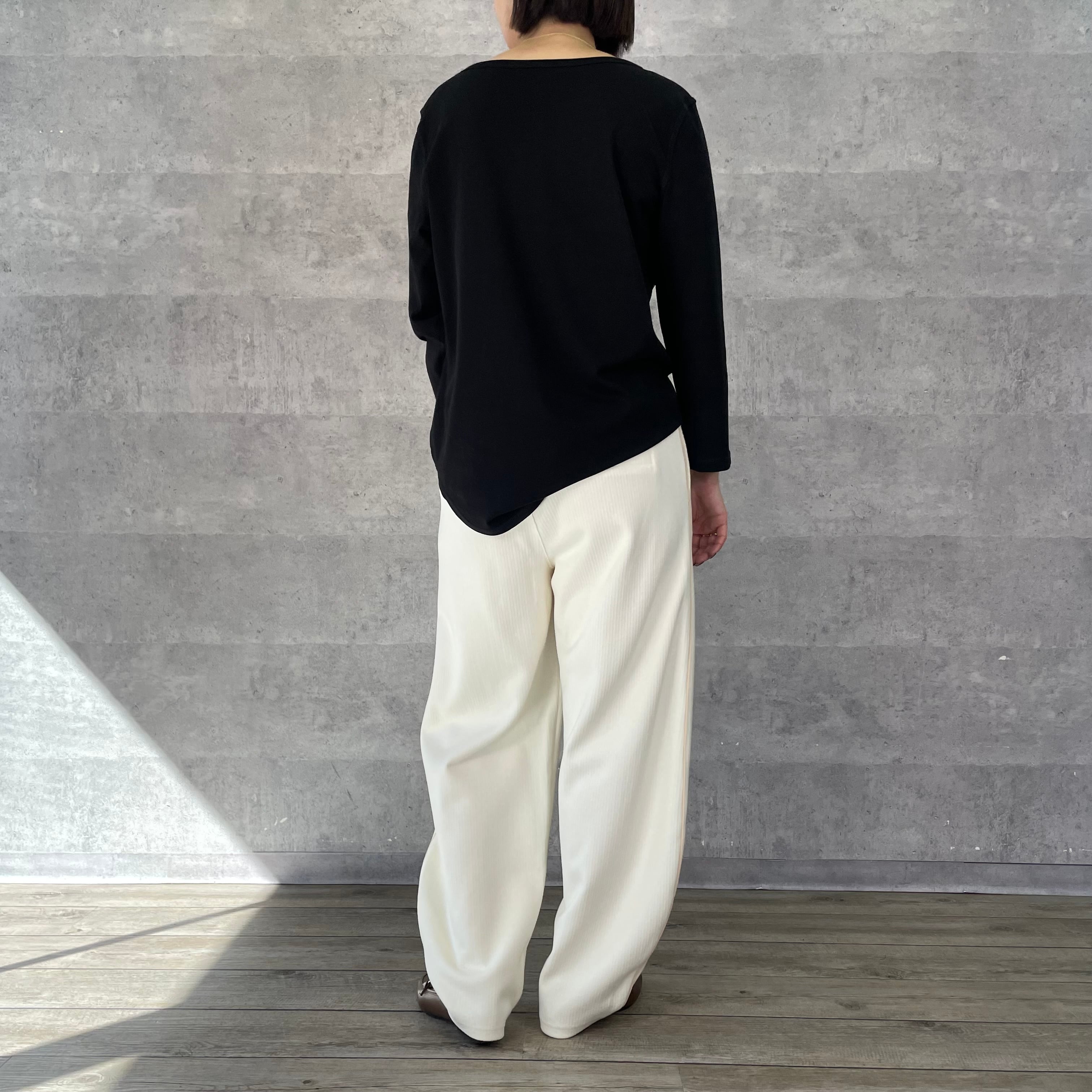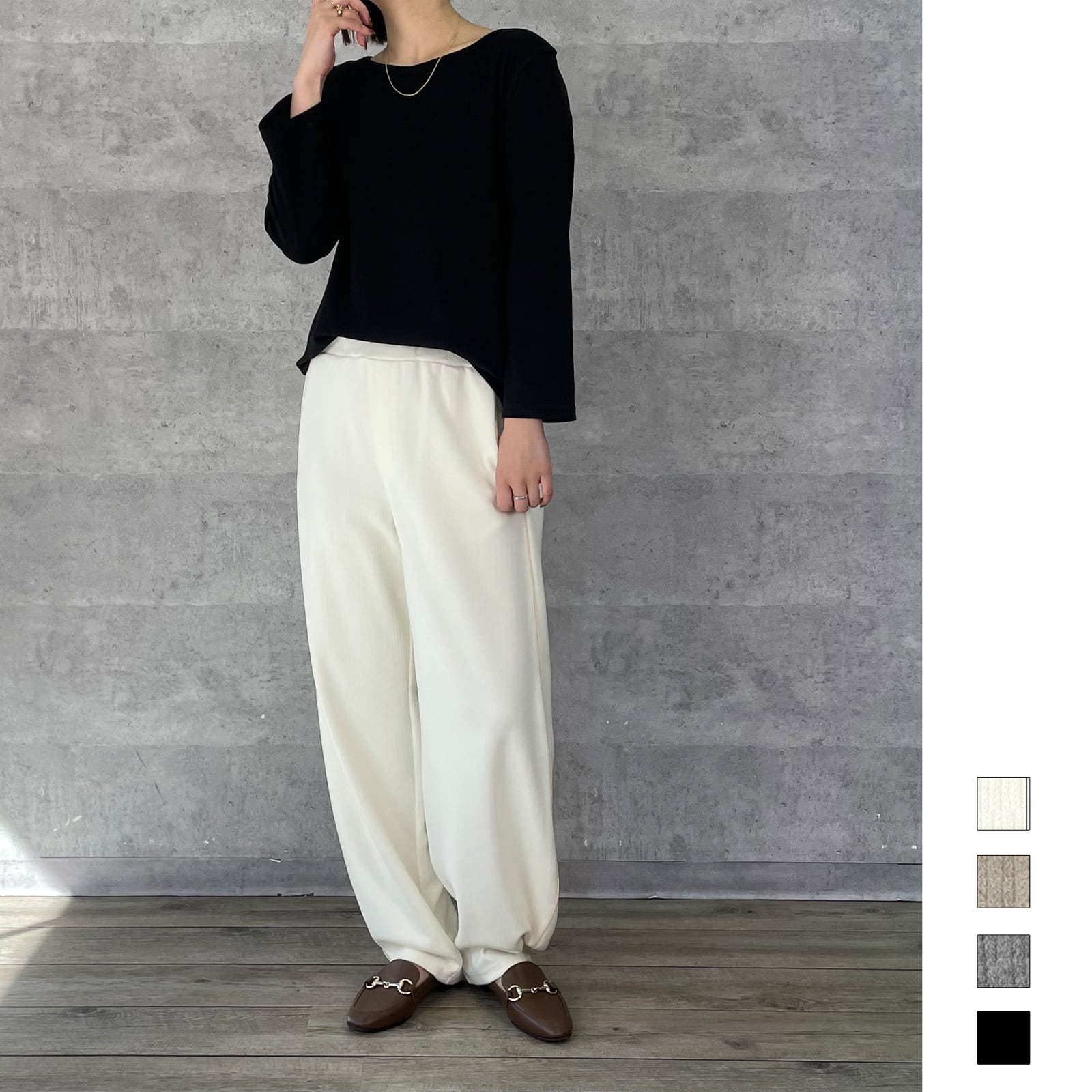 ウエストゴム仕様で、どんな体型の方にもフィットしやすくデイリーシーンに活躍する一本。