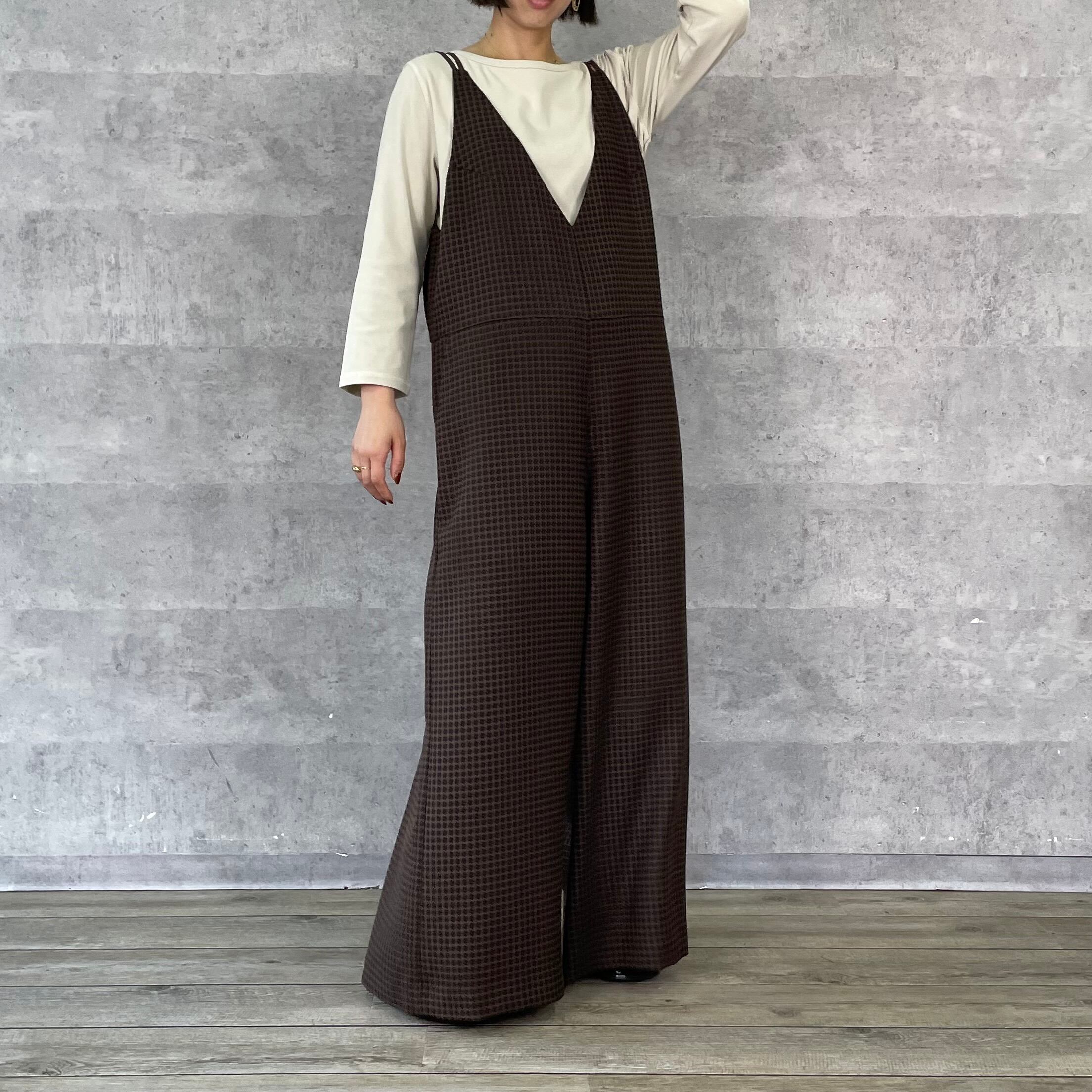 ほんのり光るラメ入りのツイード素材がクラシックで上品な雰囲気のサロペット。