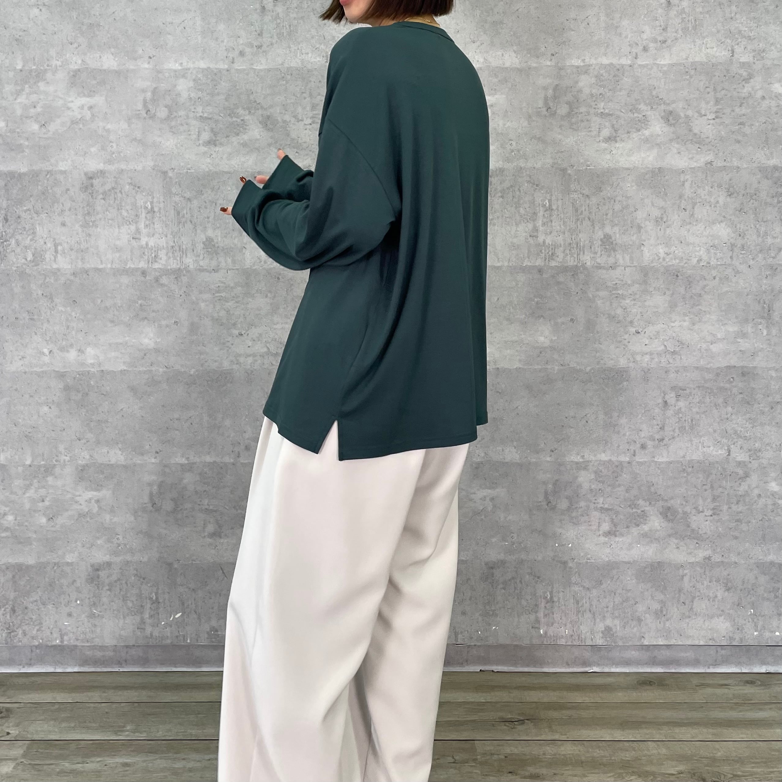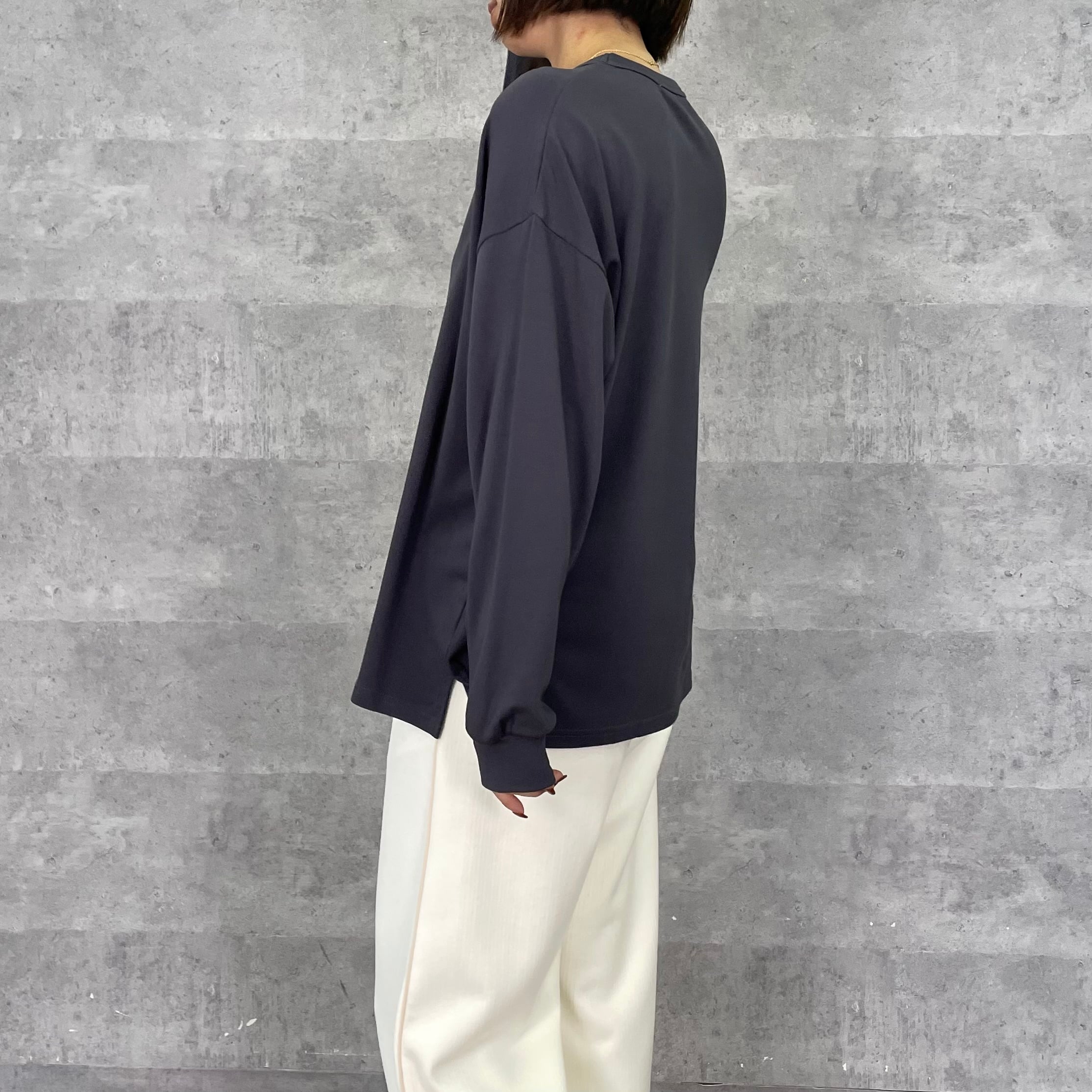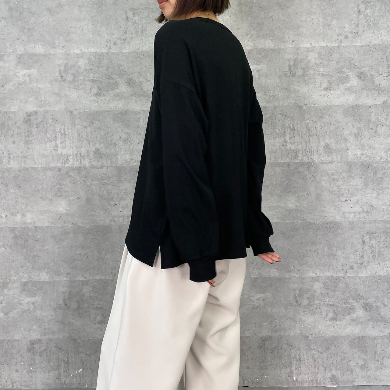 女性が着るとたっぷりとした分量感で体が泳ぐ絶妙なサイズ感が華奢見えします。