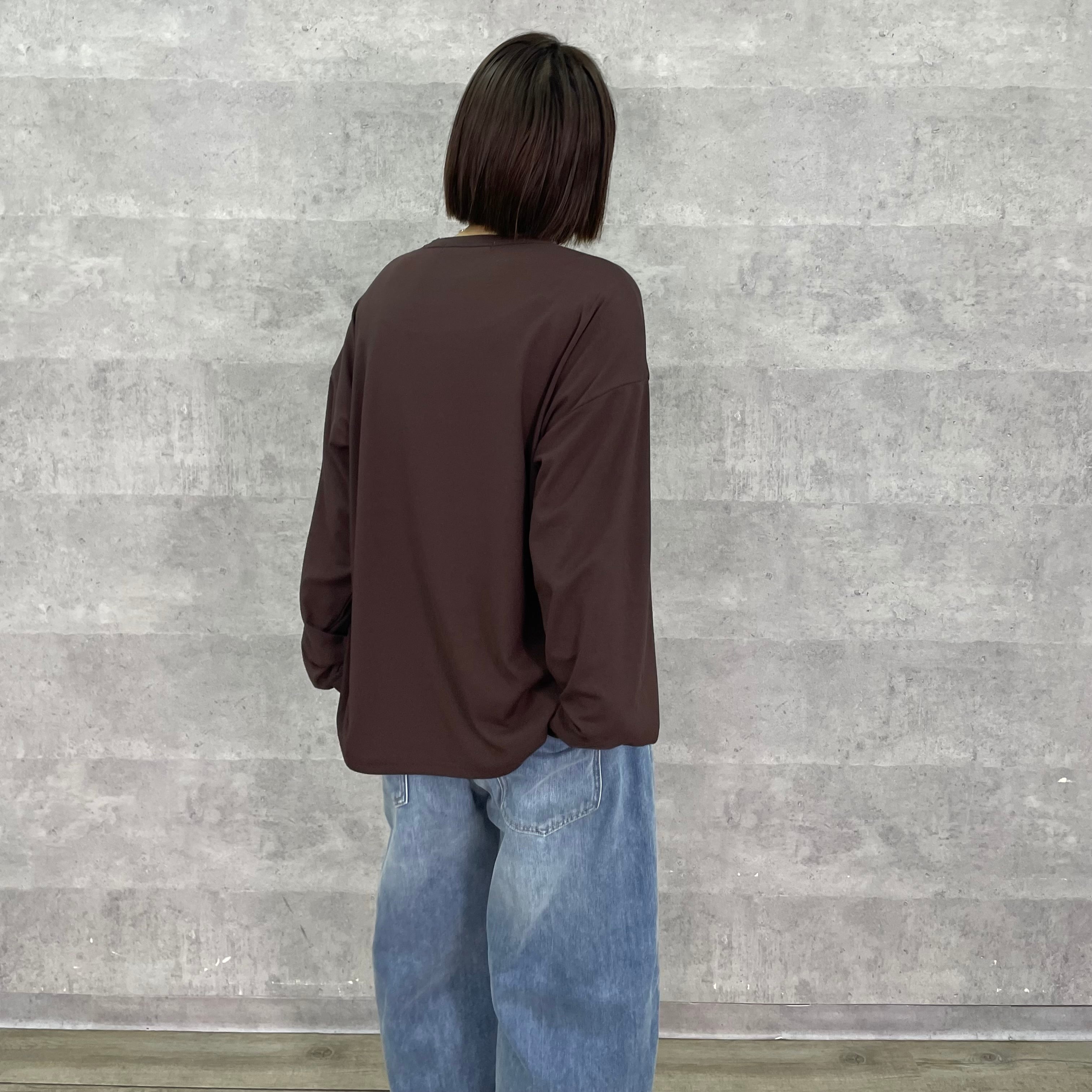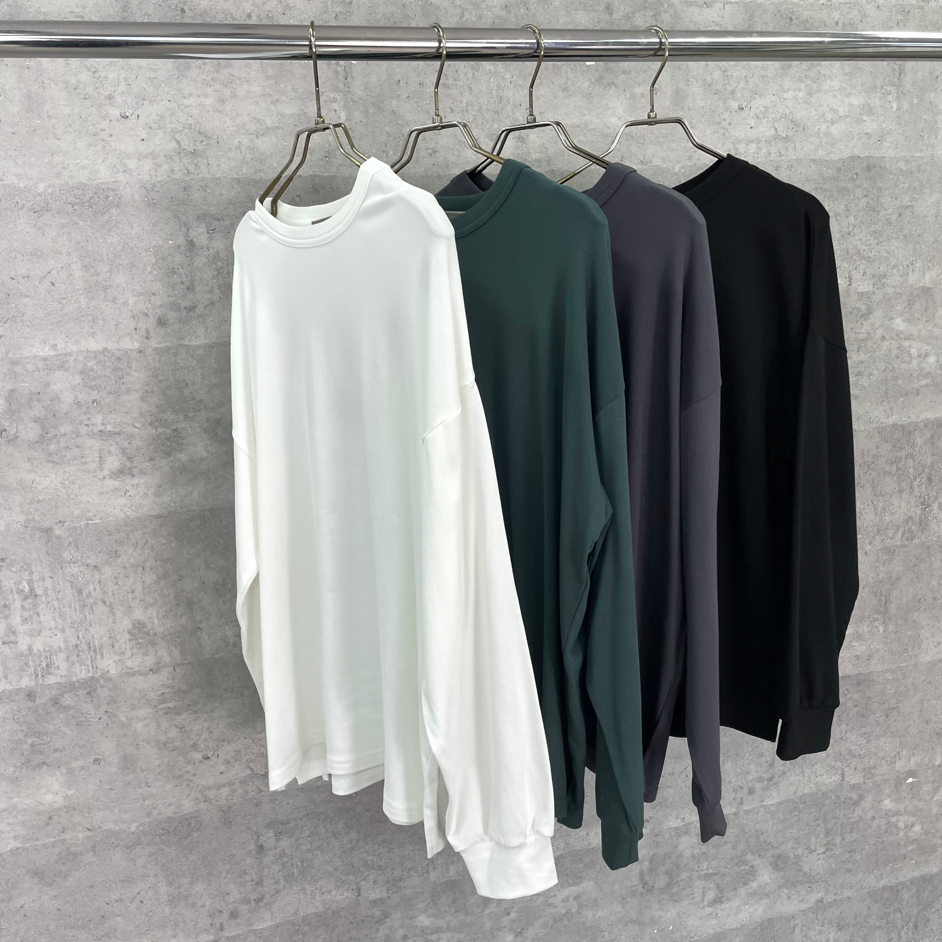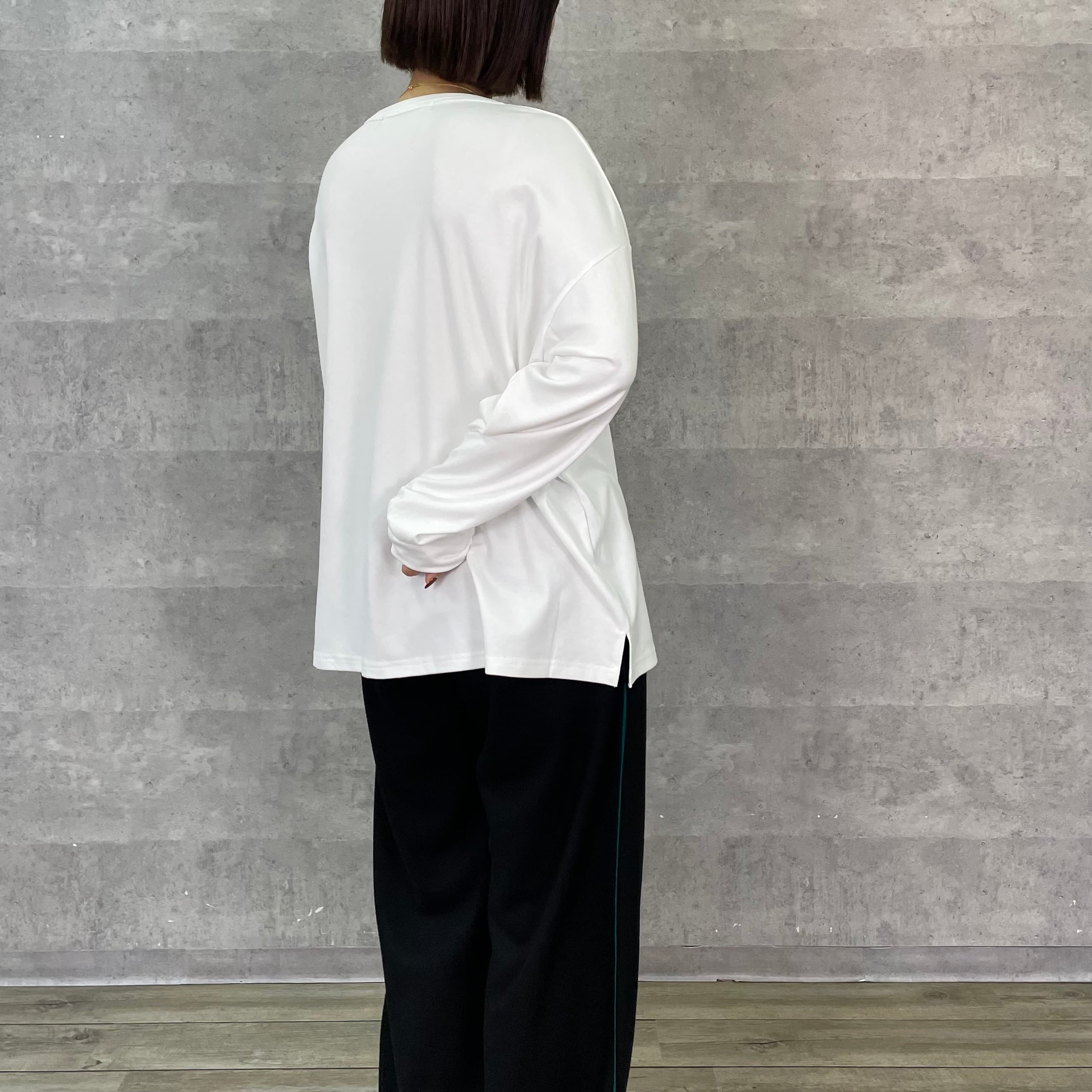 女性が着るとたっぷりとした分量感で体が泳ぐ絶妙なサイズ感が華奢見えします。