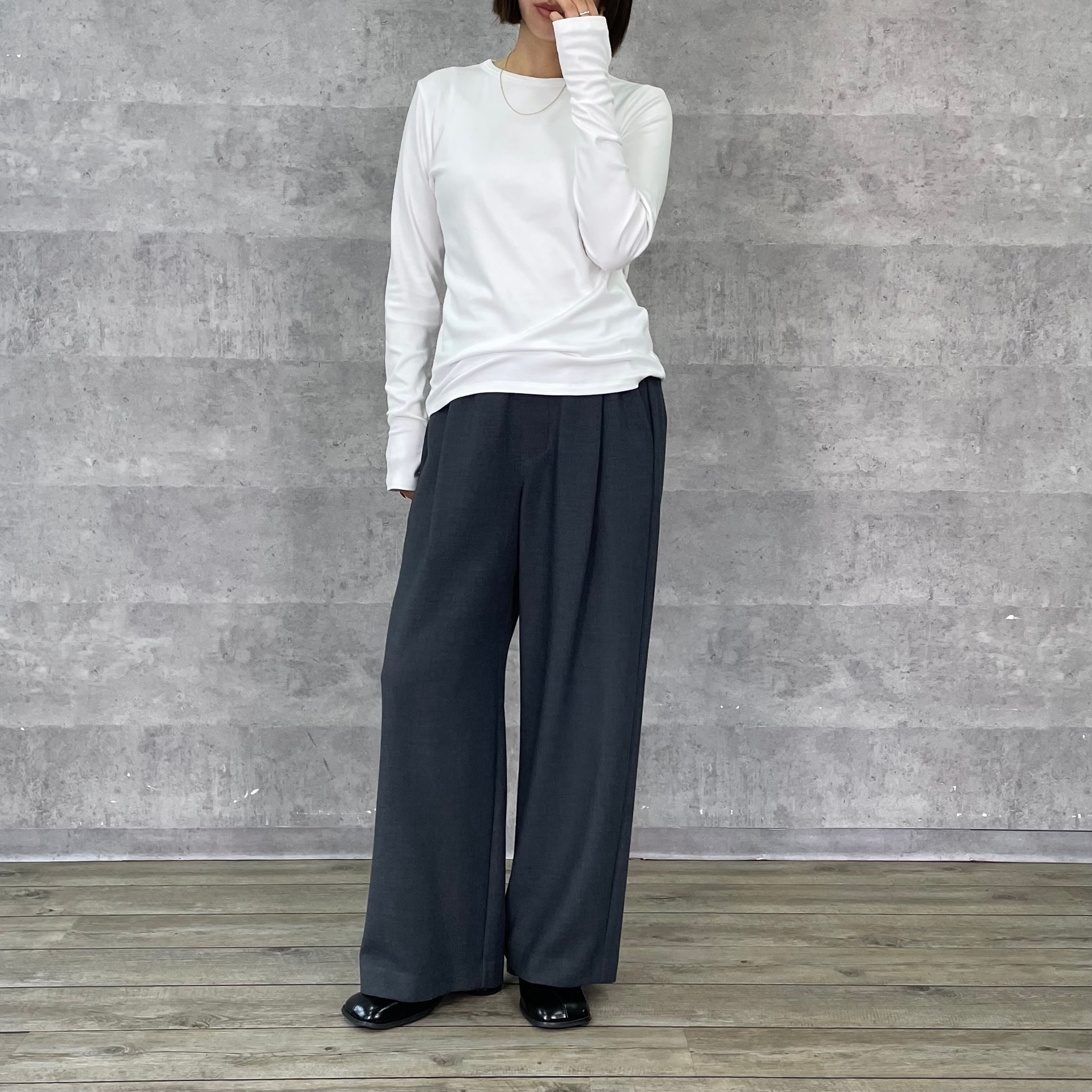 すっきりとしたサイズ感でもたつかないのでサロペットやジャンスカのインナーにもオススメです。