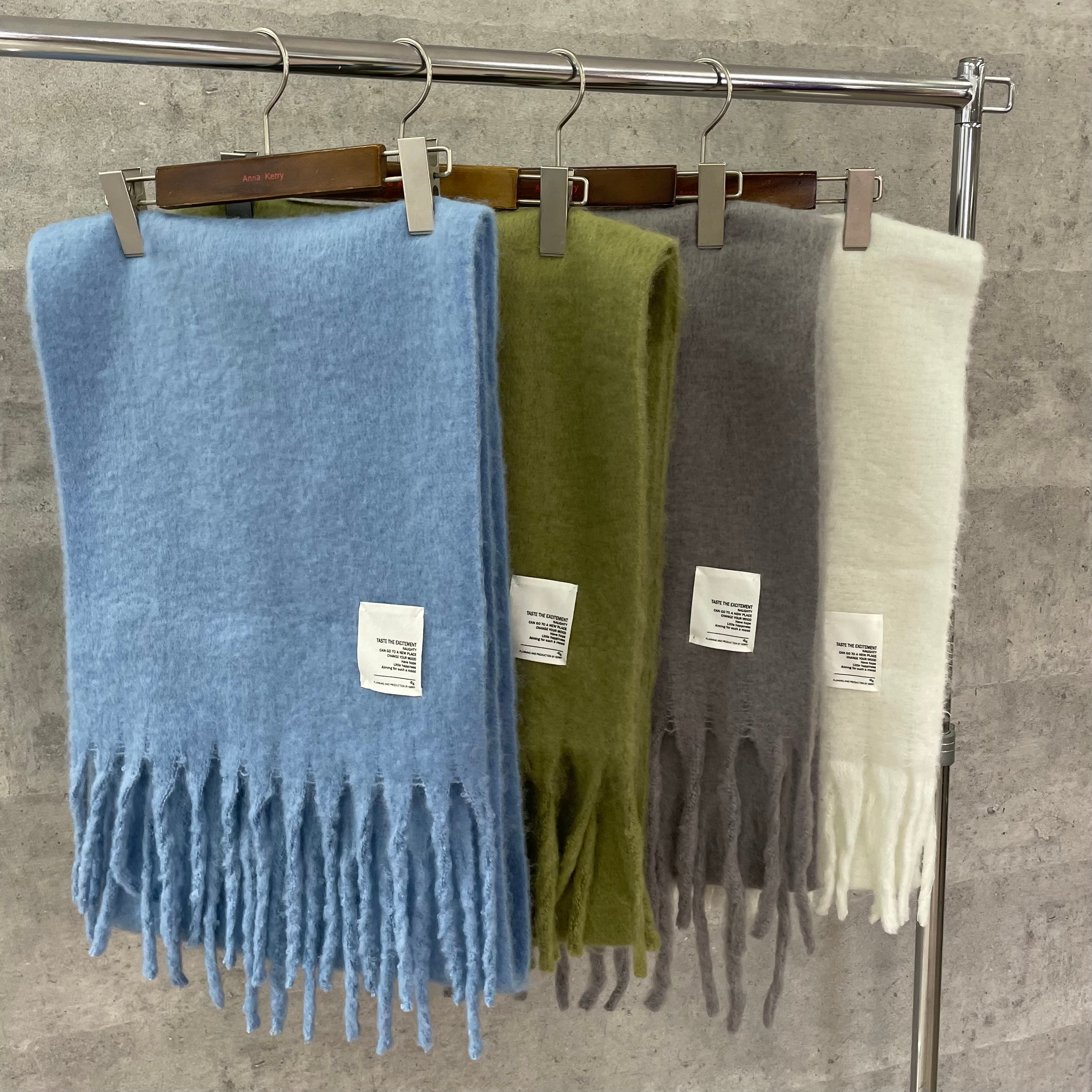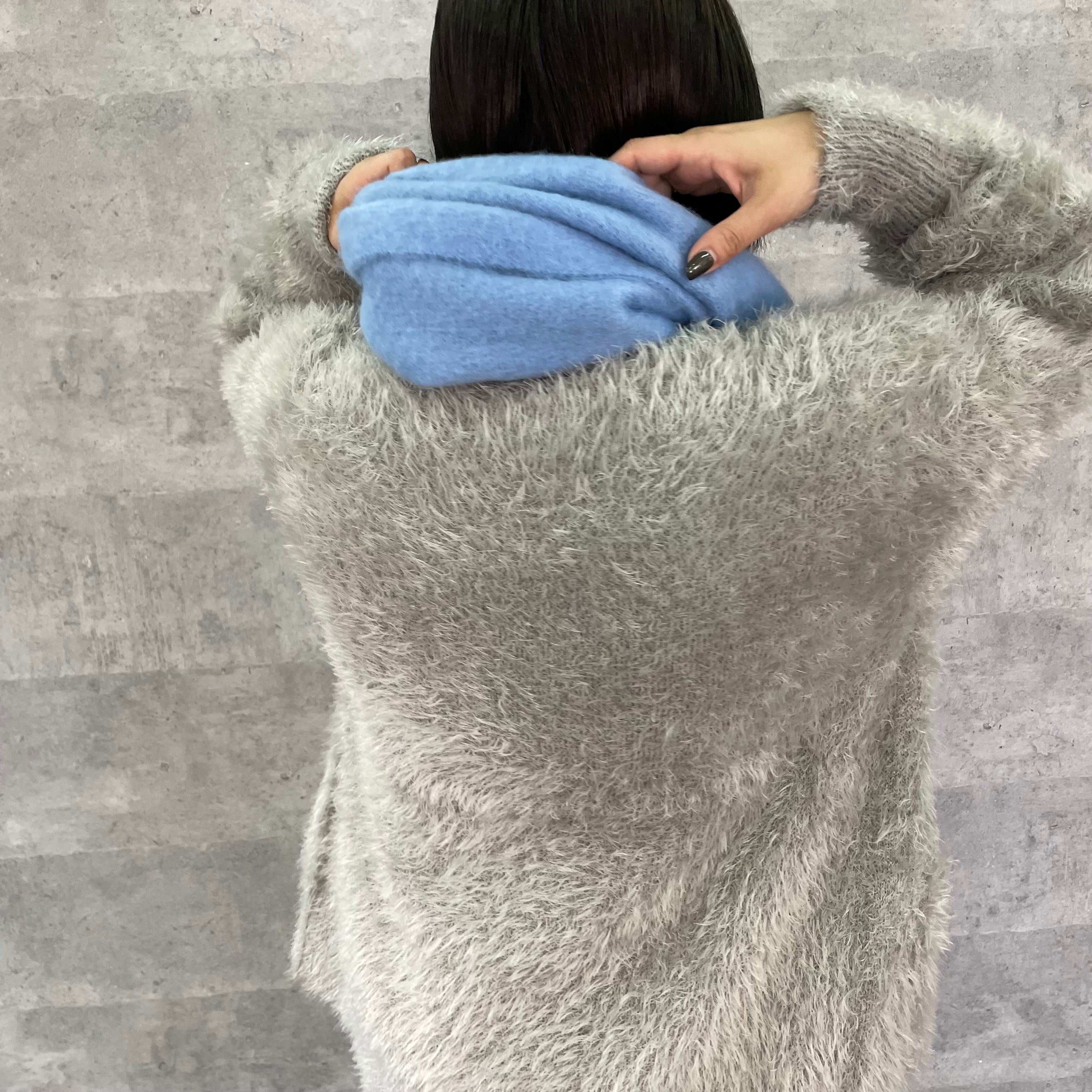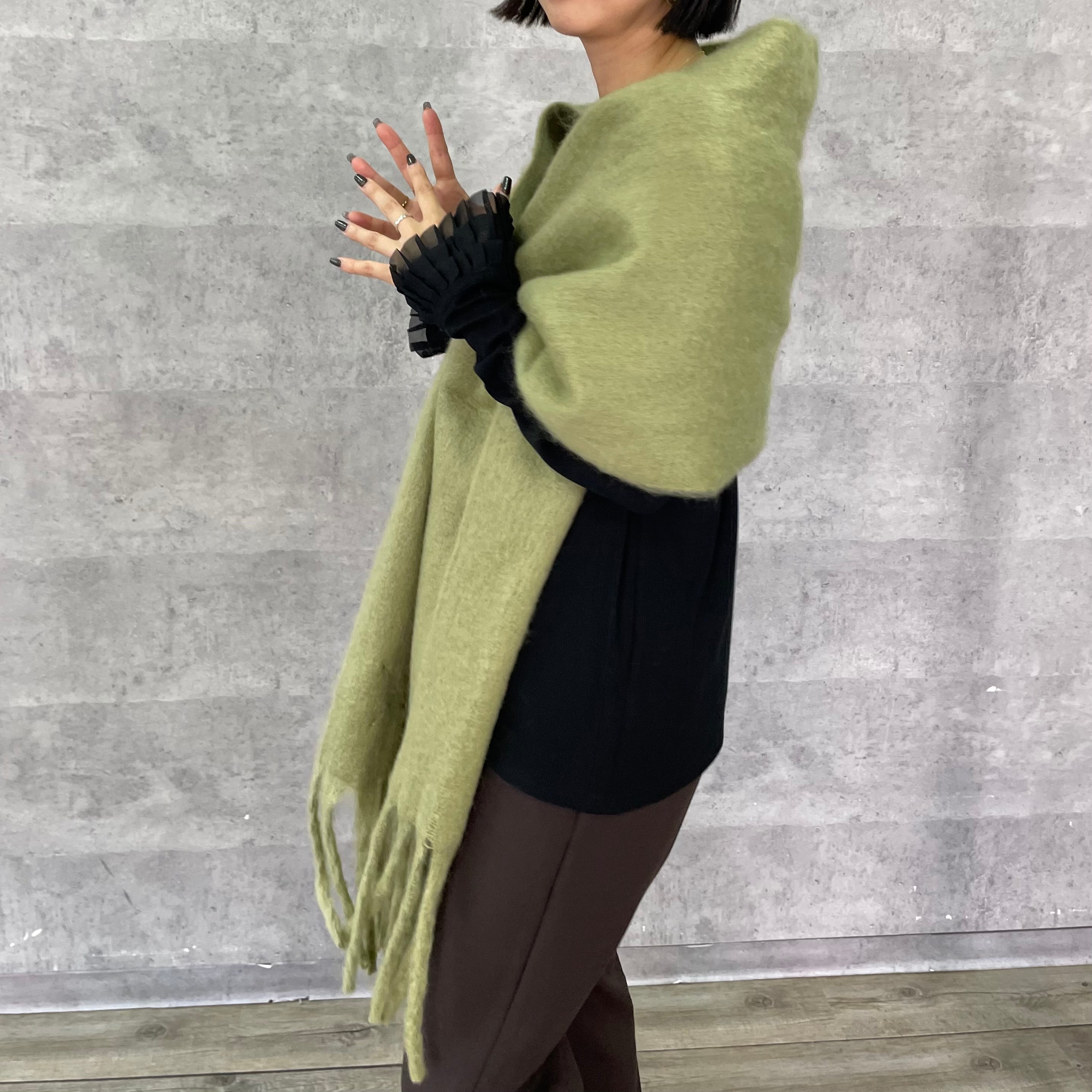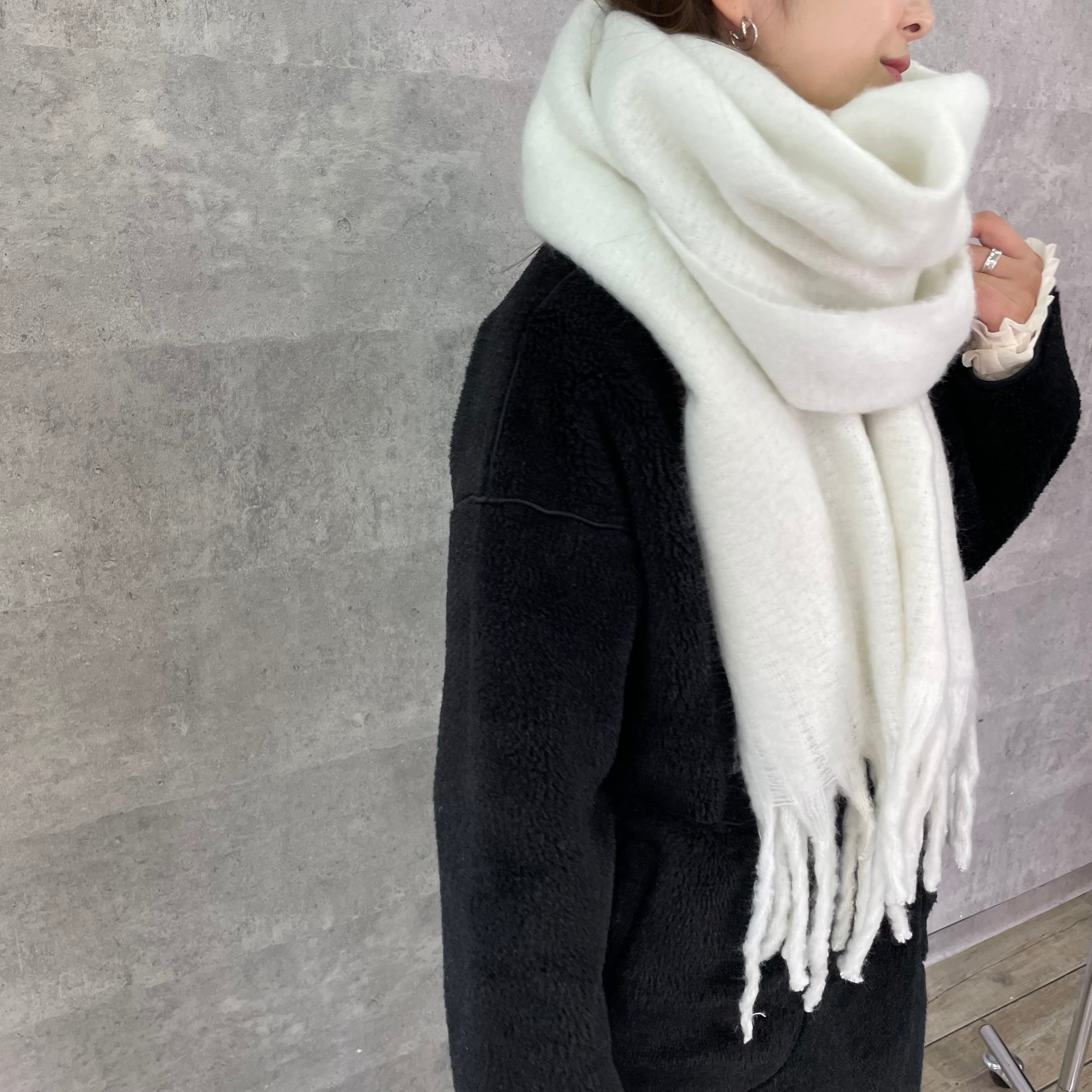 首元にたっぷりのボリュームが冬っぽくかわいいマフラー。