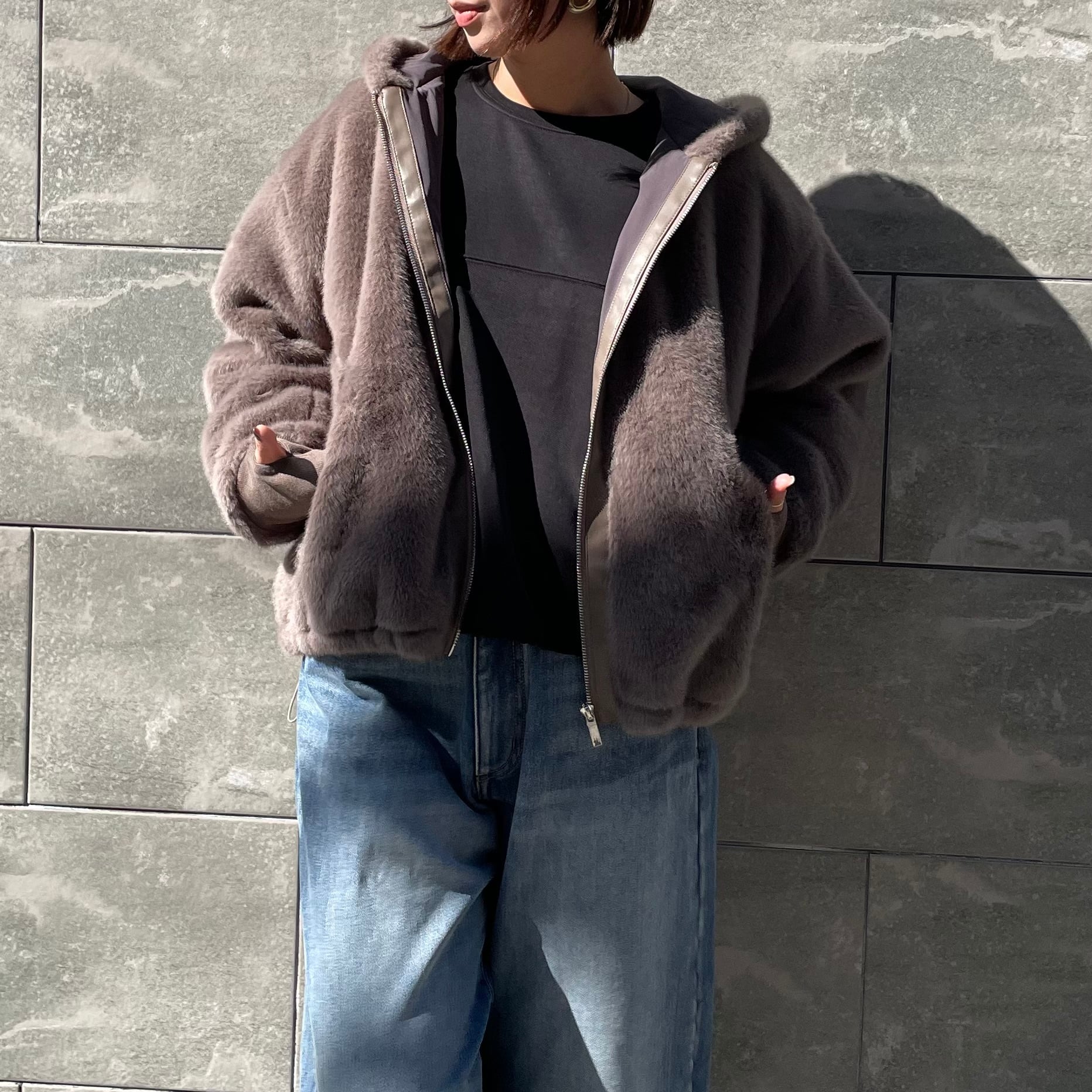 少し厚手のストーンウォッシュ風加工のトップス