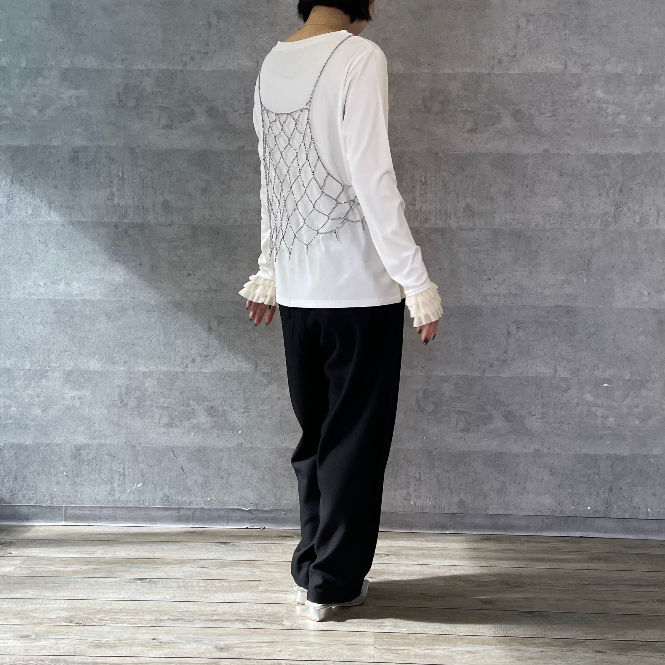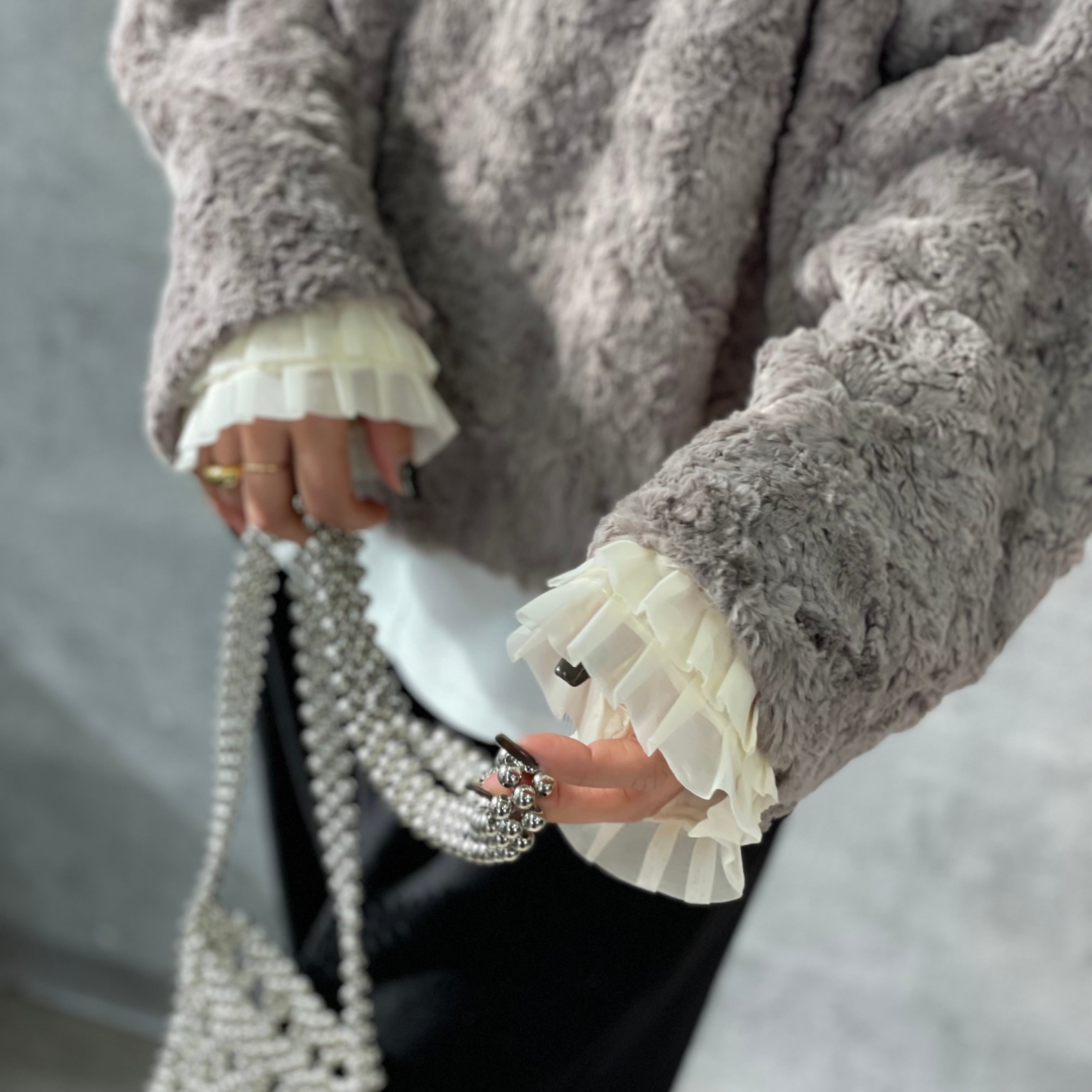お袖のフリルがかわいく、ぱっと目をひく一枚。