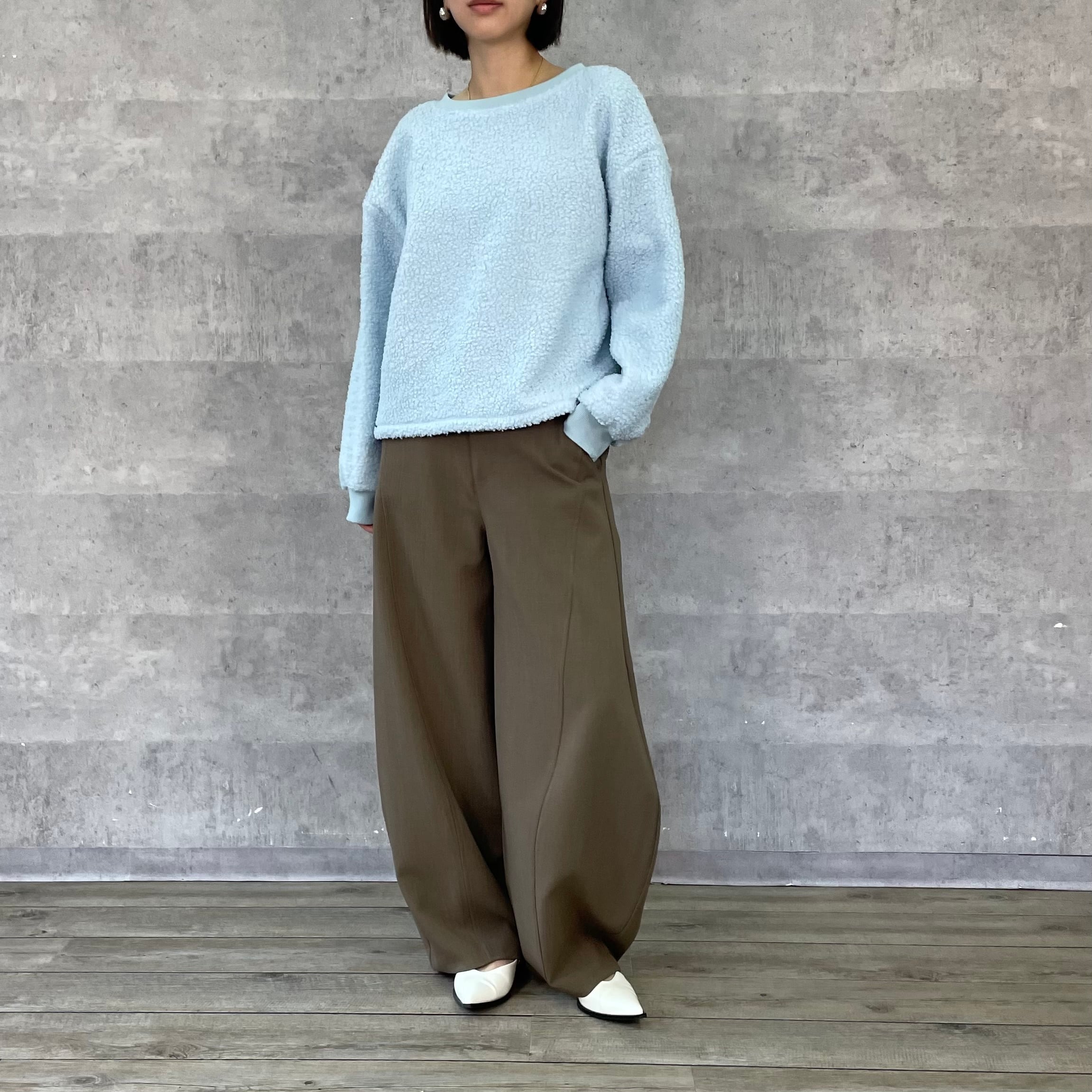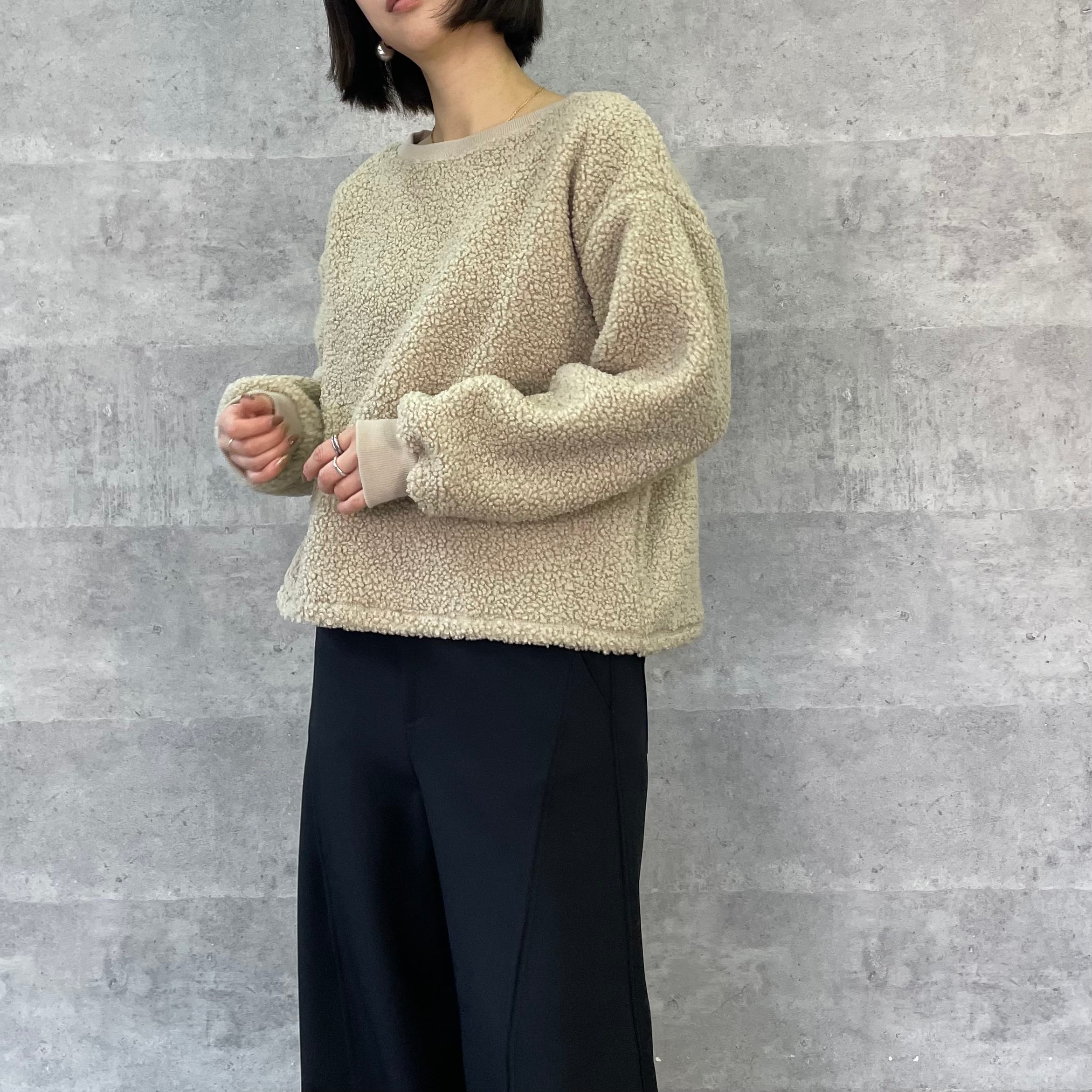 ボアの裏側が起毛加工されたあったかトップス