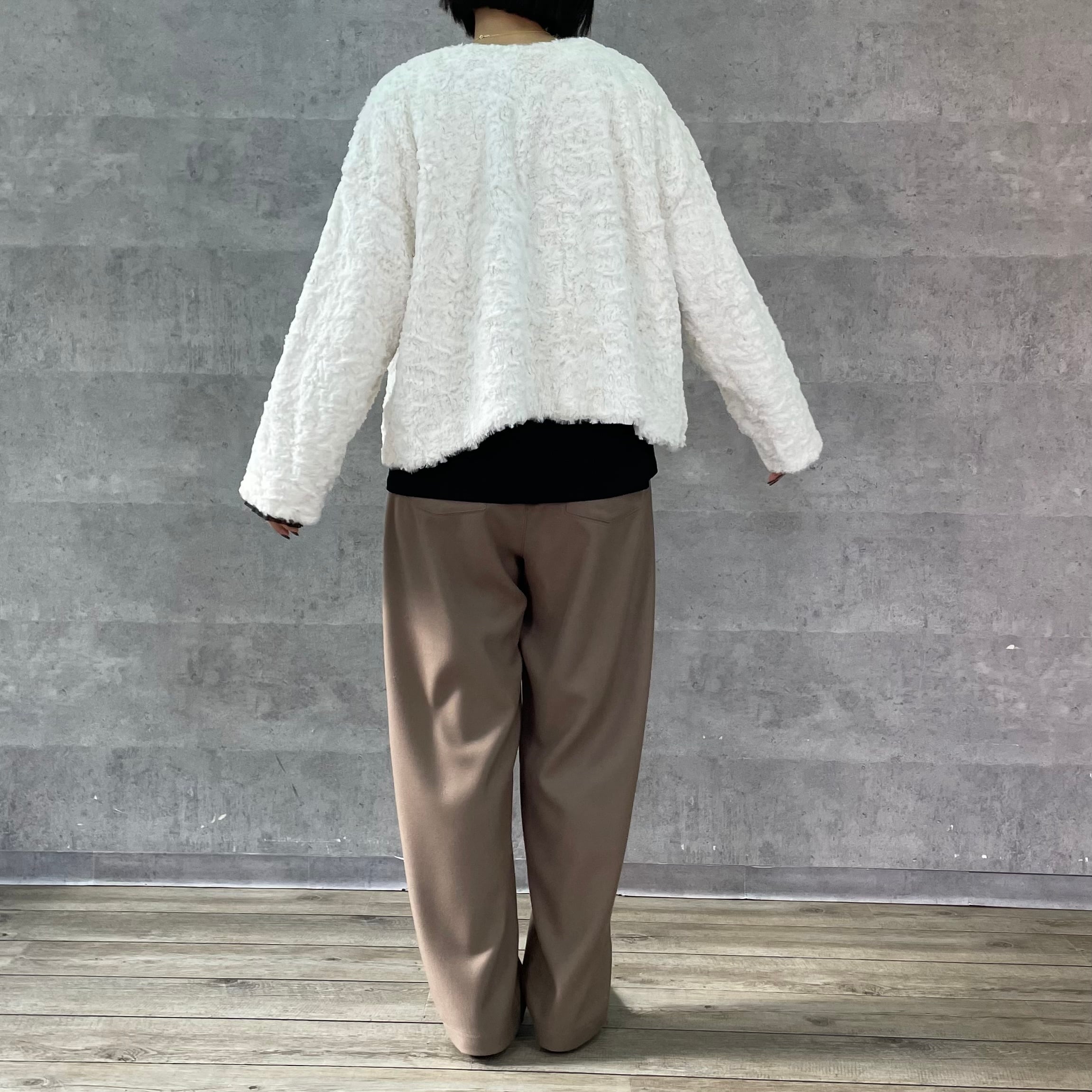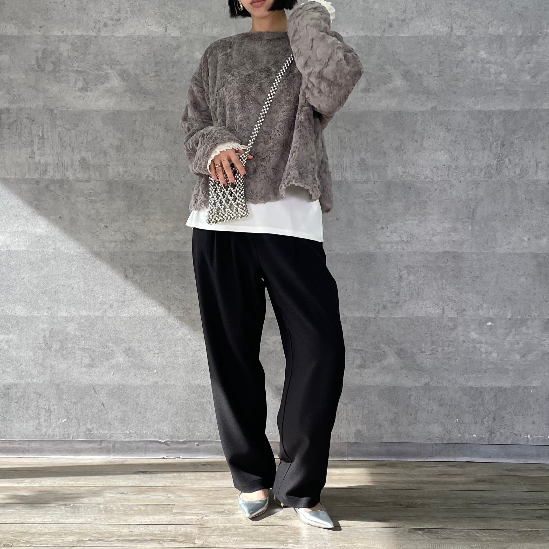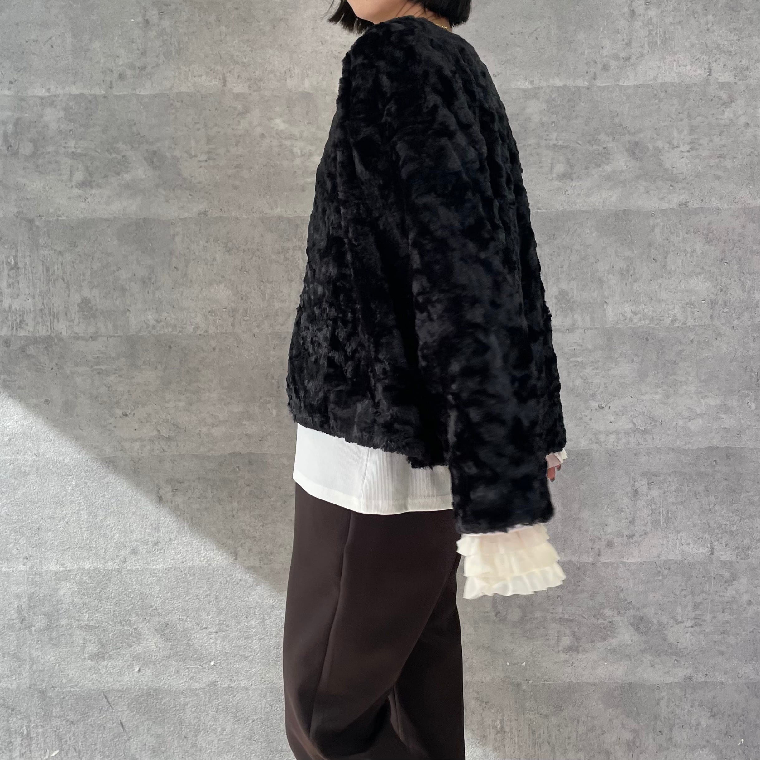 ふわふわのリッチなファーが女性らしく華やかな印象へ。