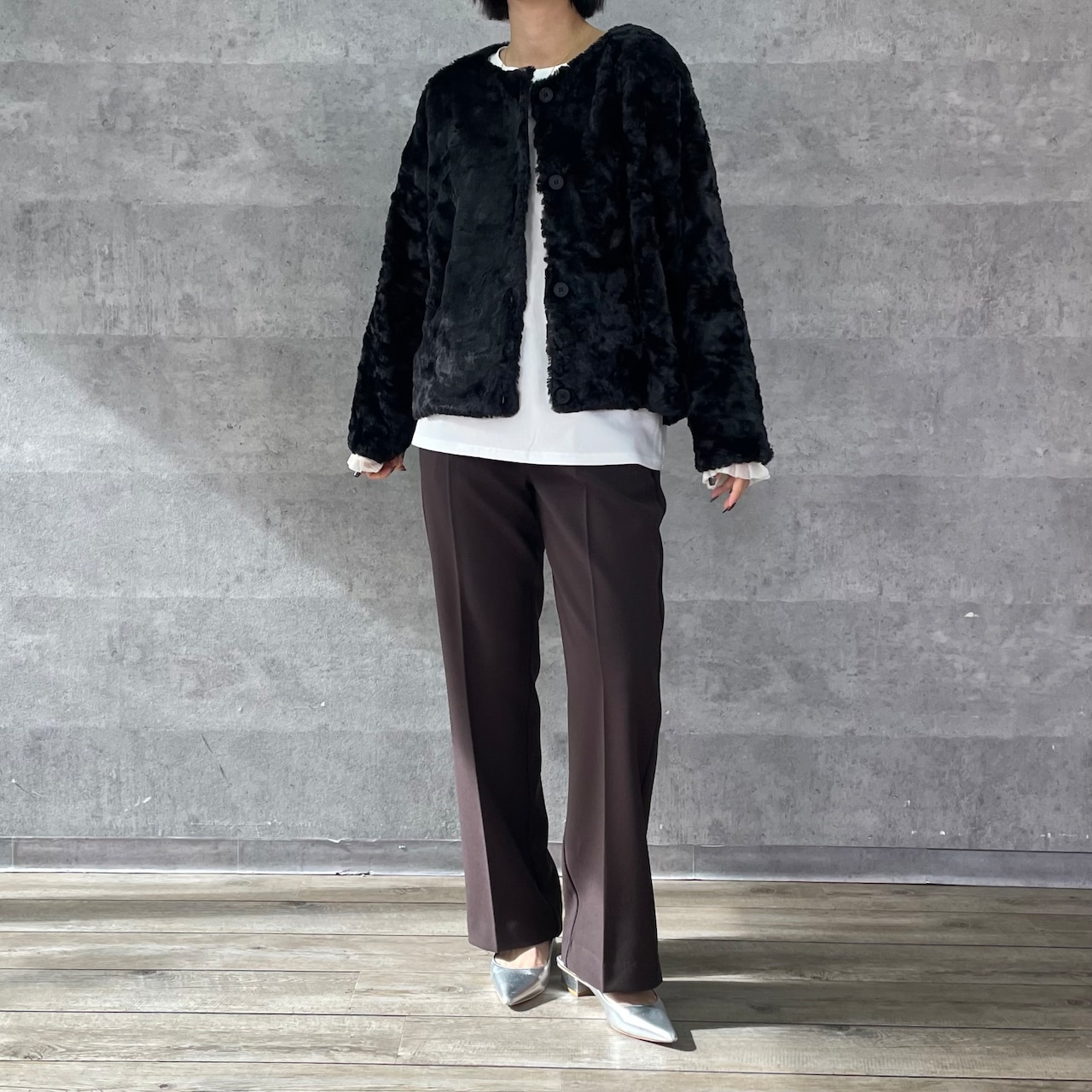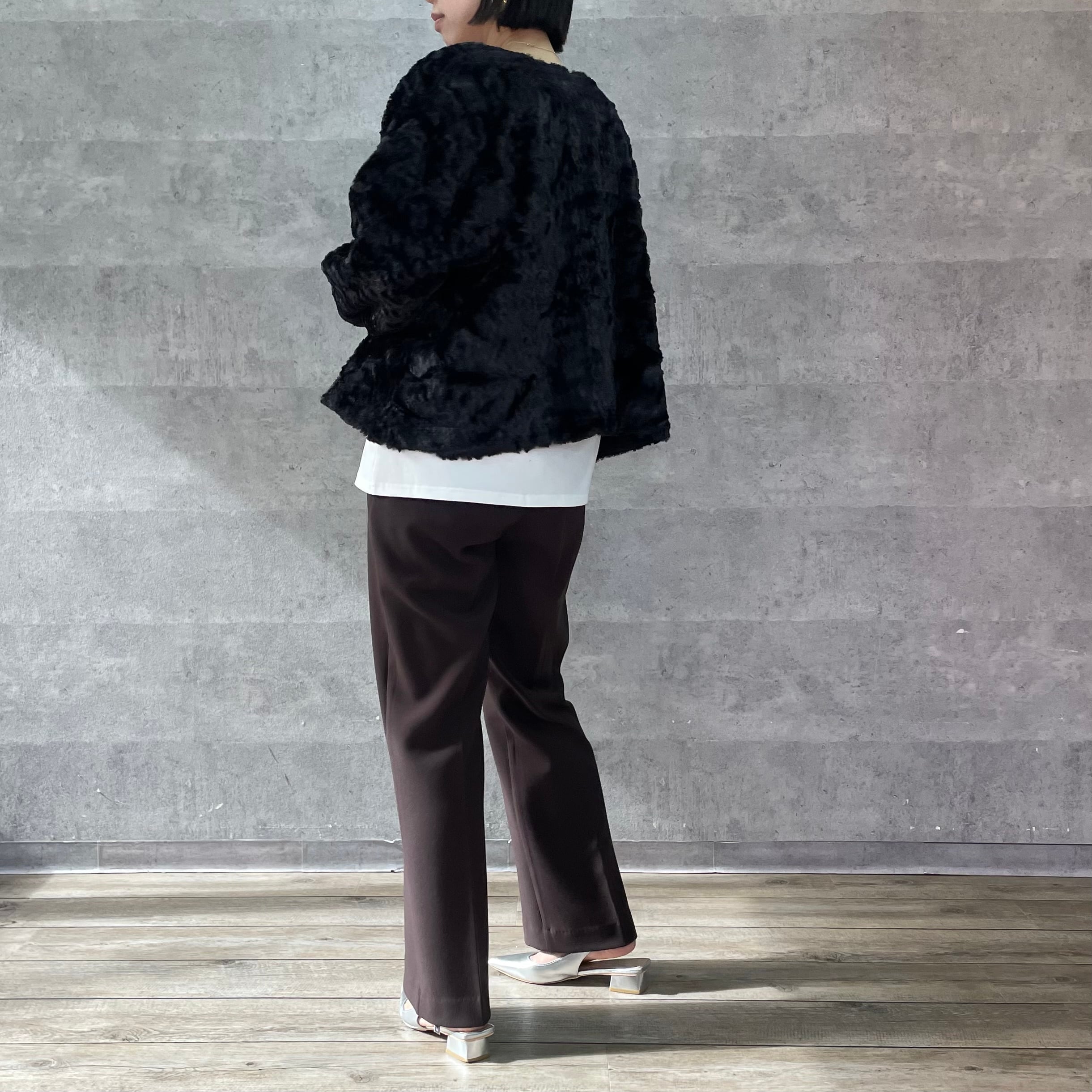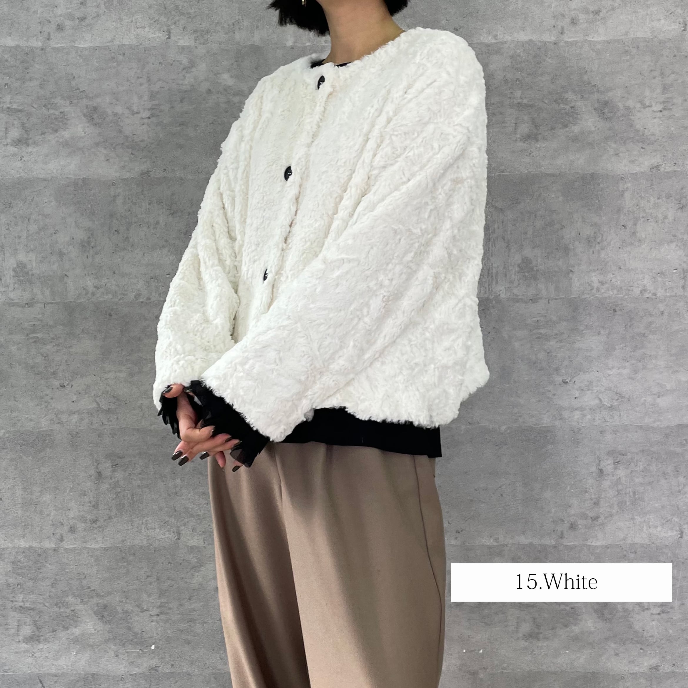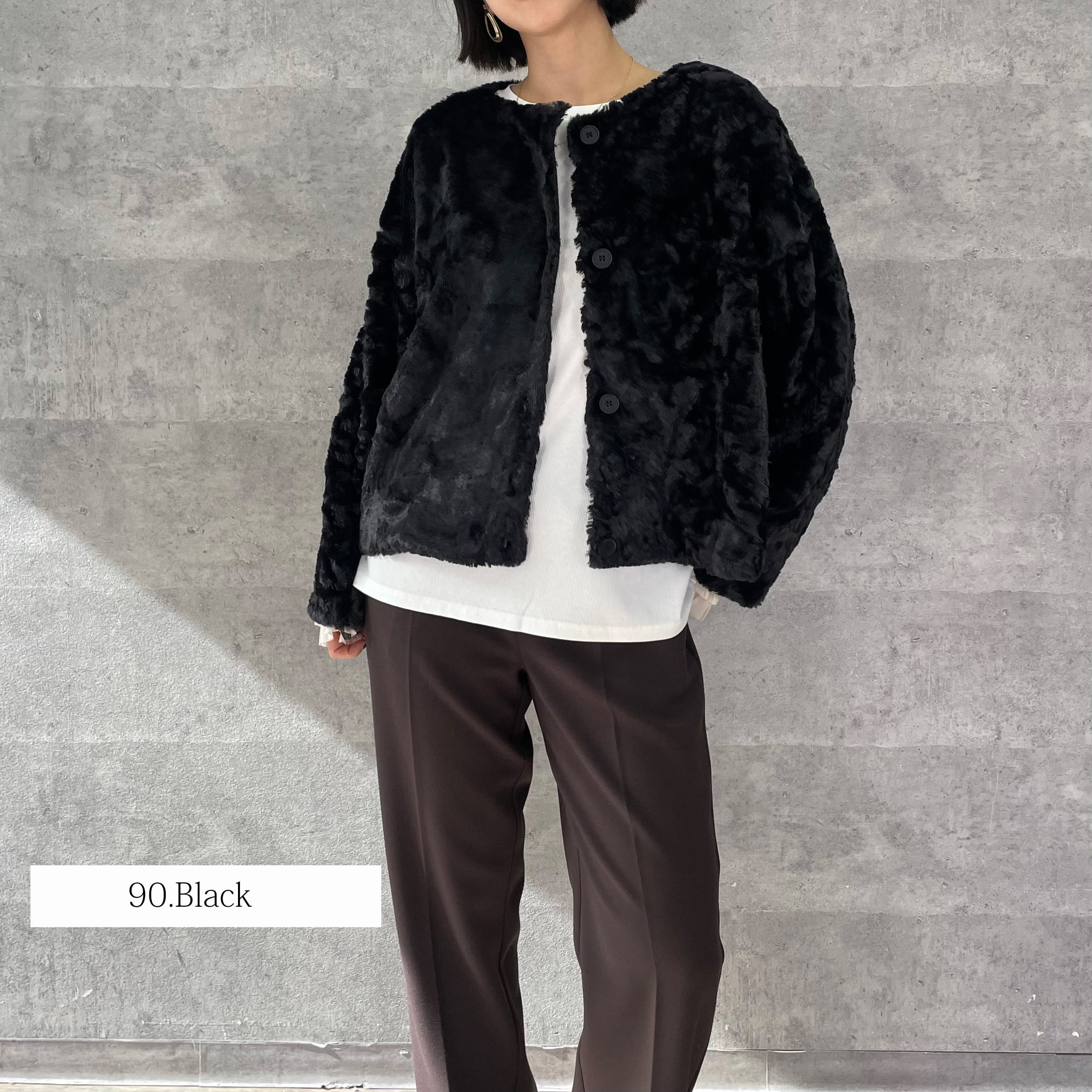 ふわふわのリッチなファーが女性らしく華やかな印象へ。