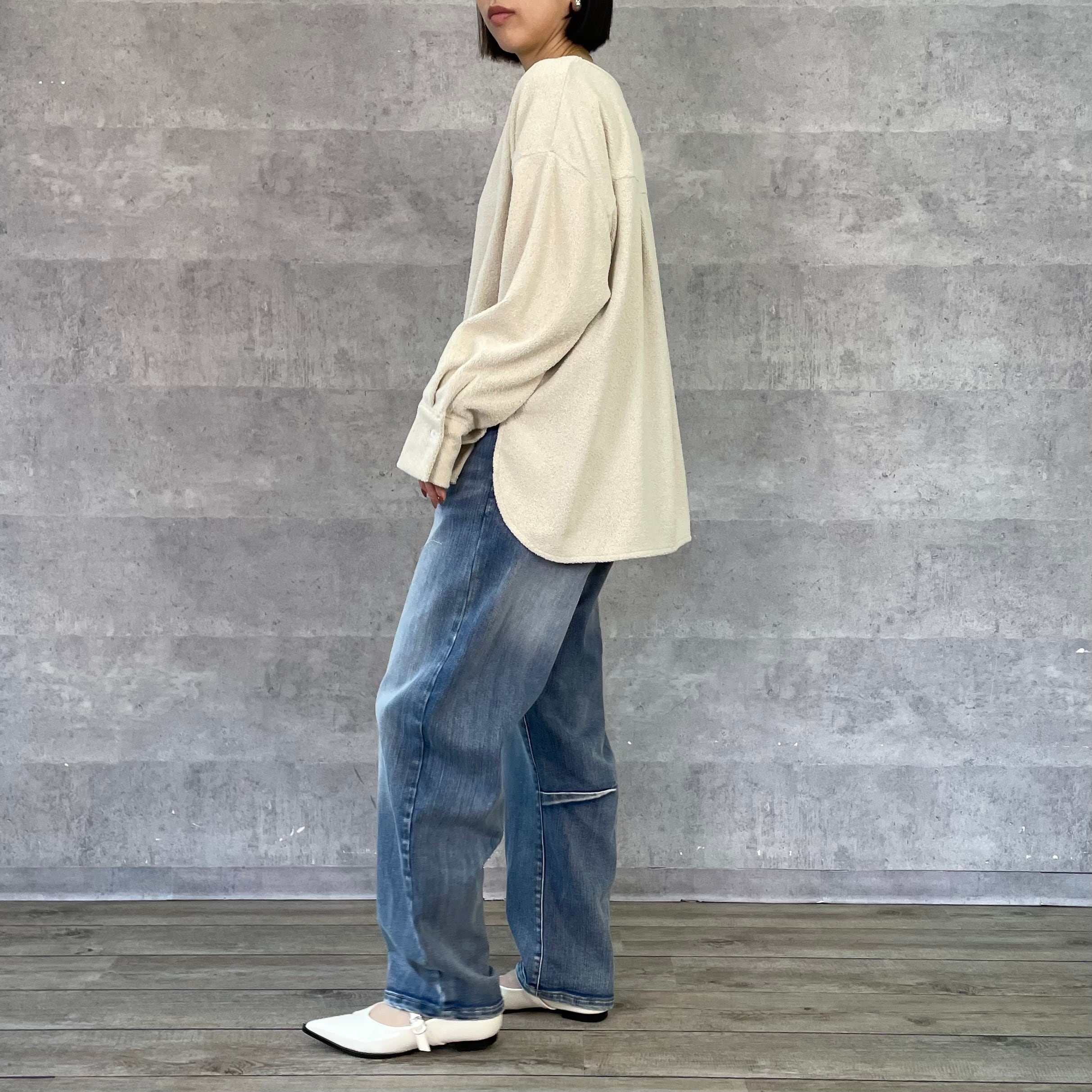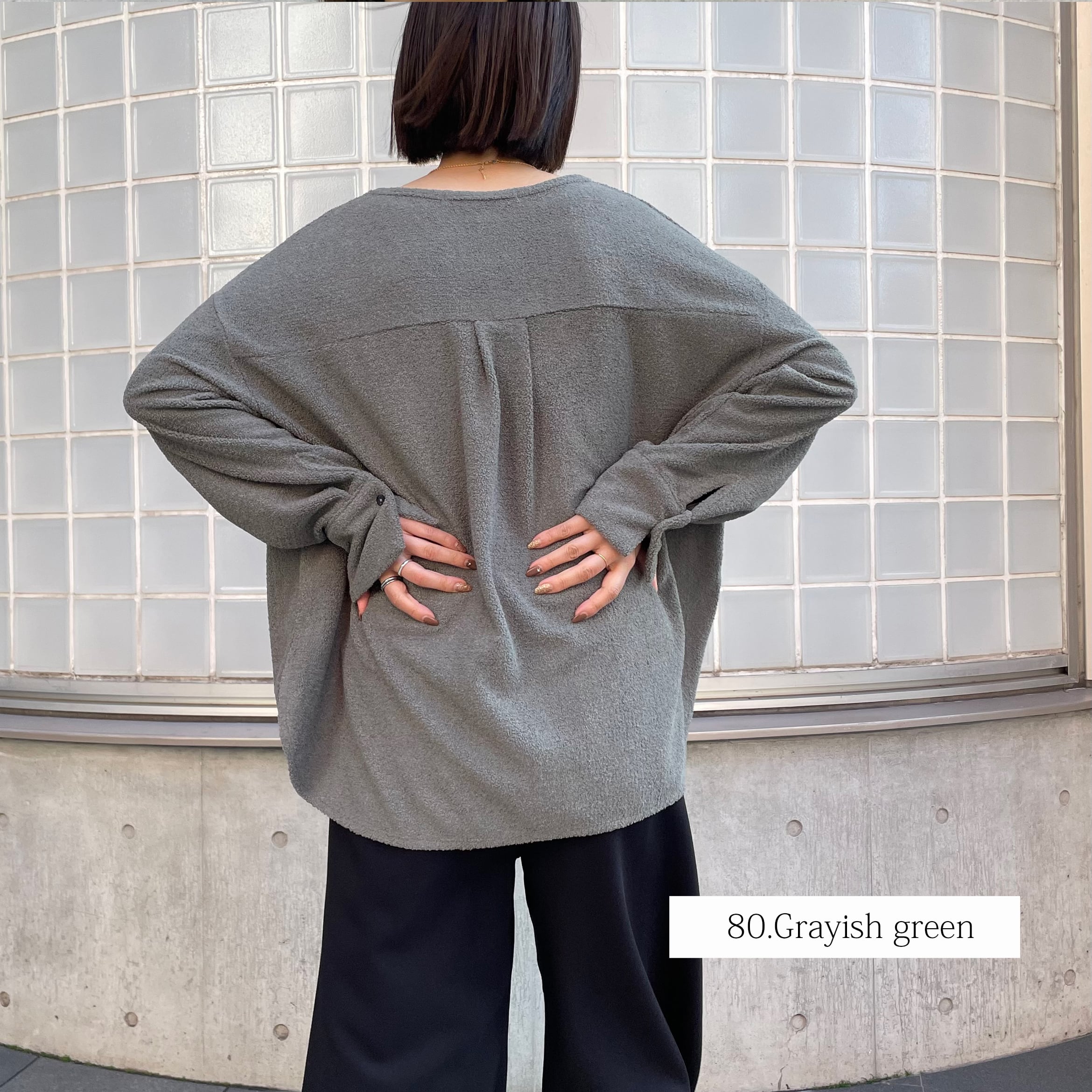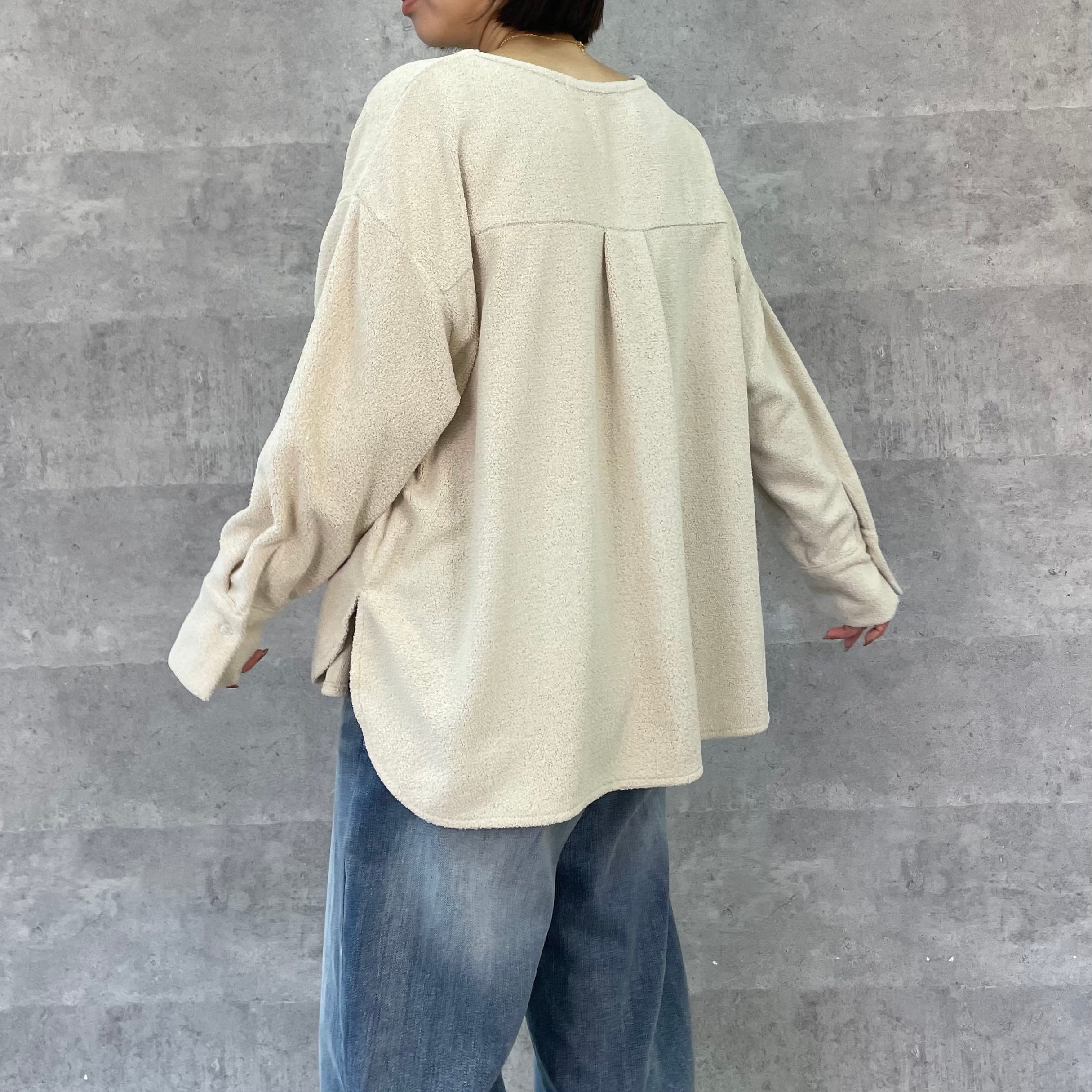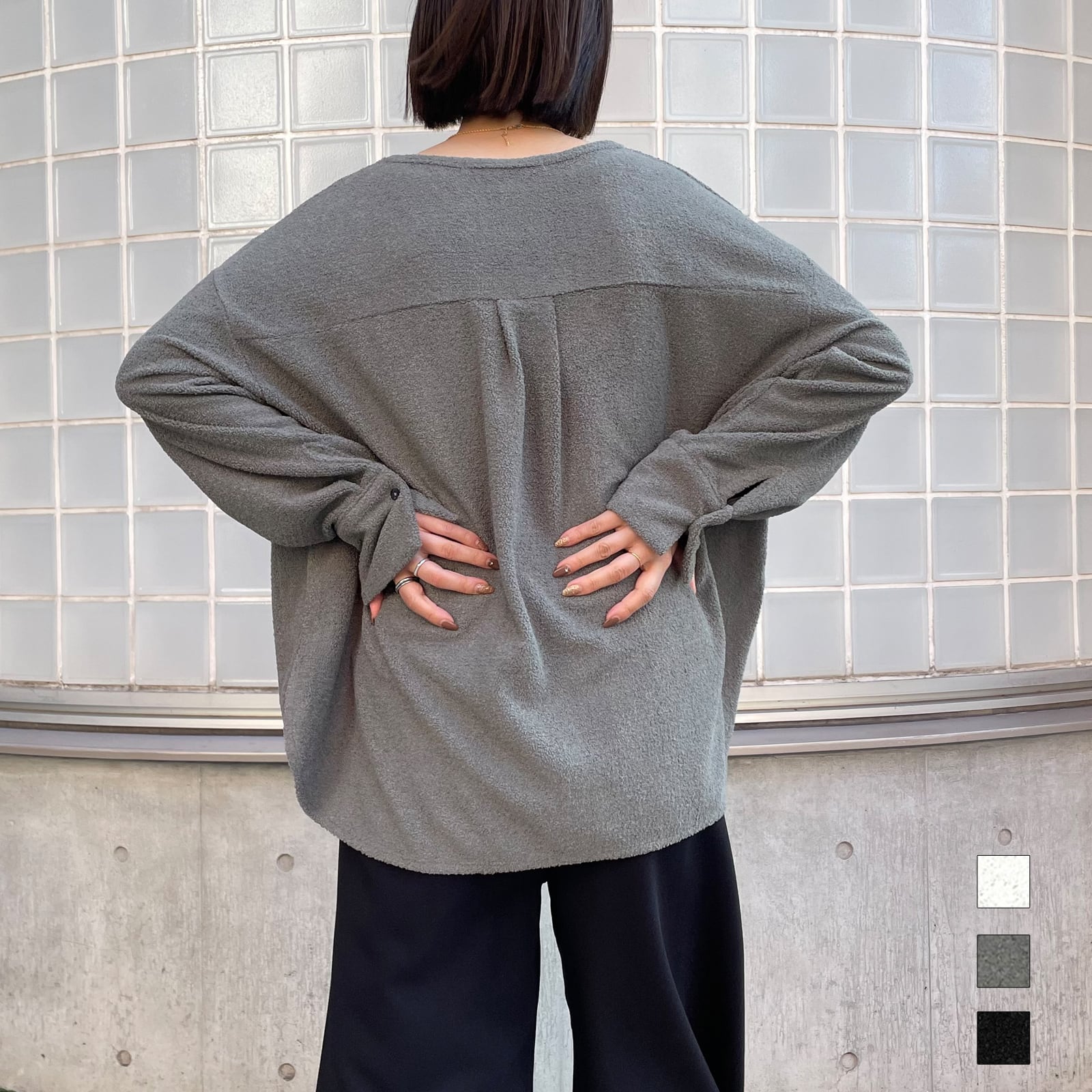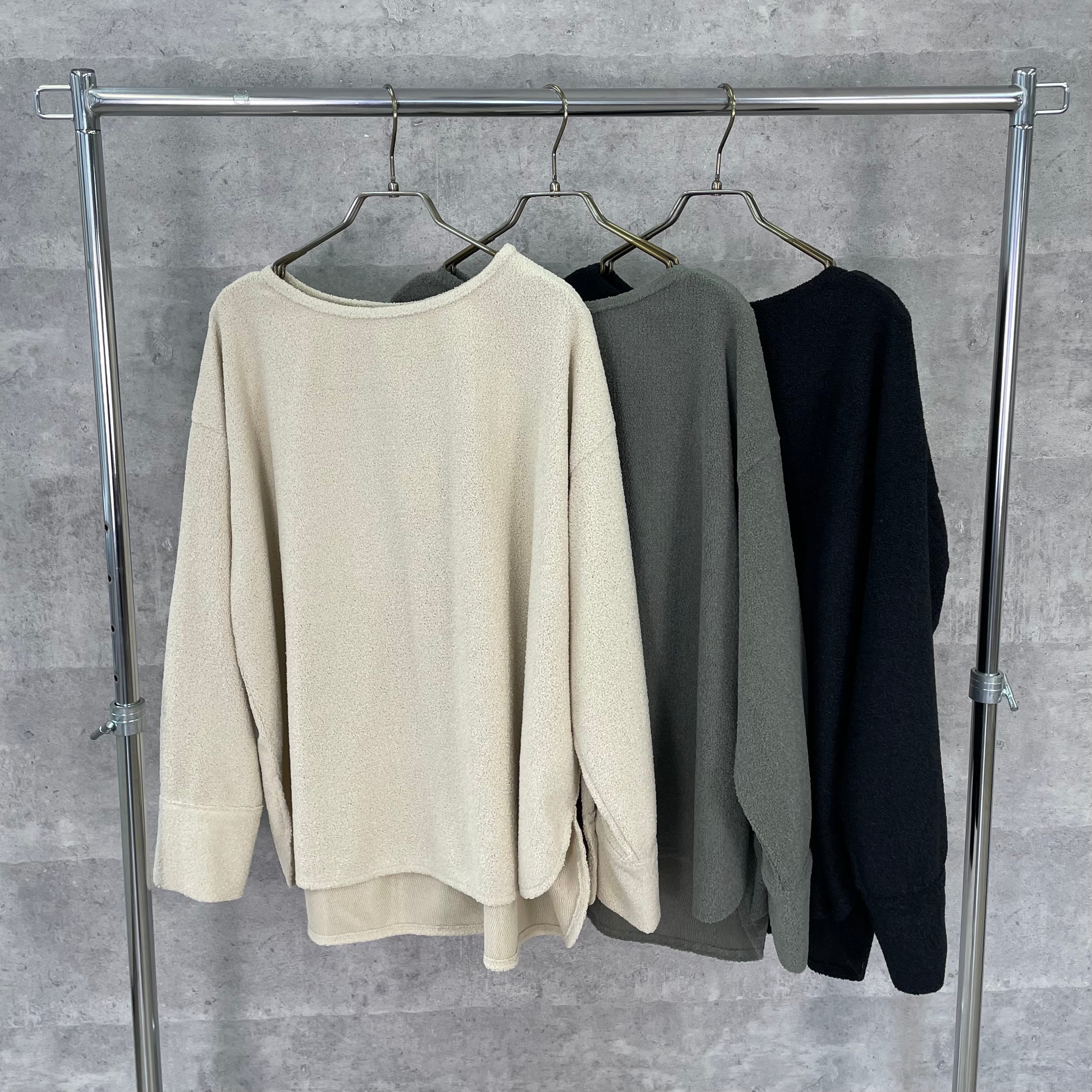 ループ起毛のふわふわな素材感がシーズンムードを高めてくれる暖かブラウス。