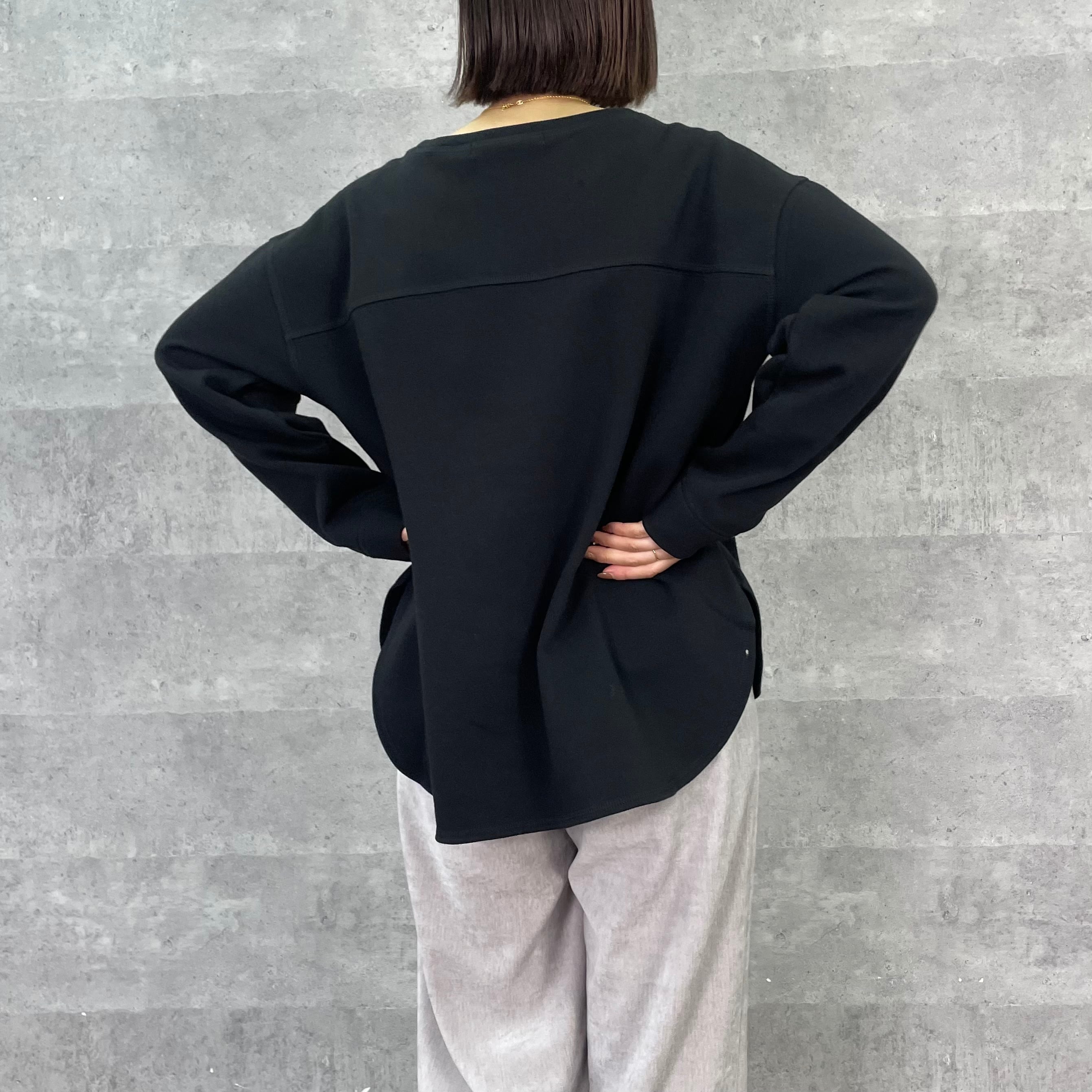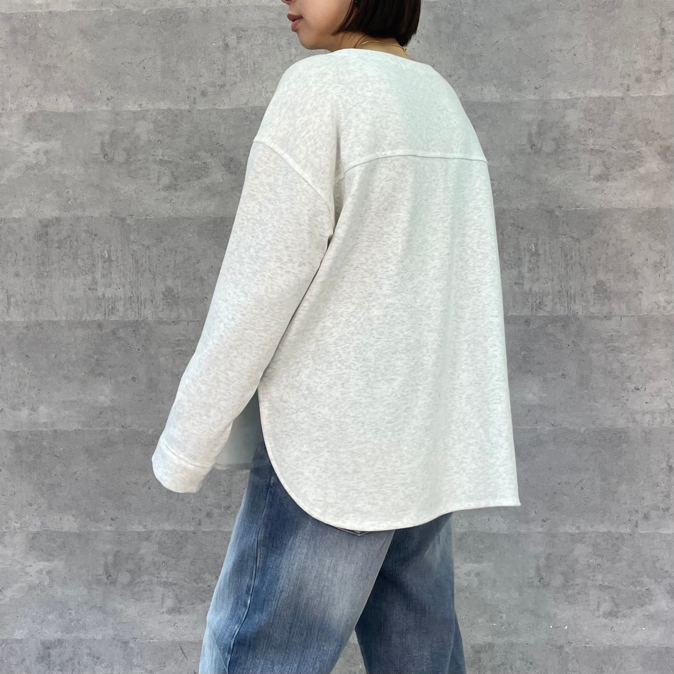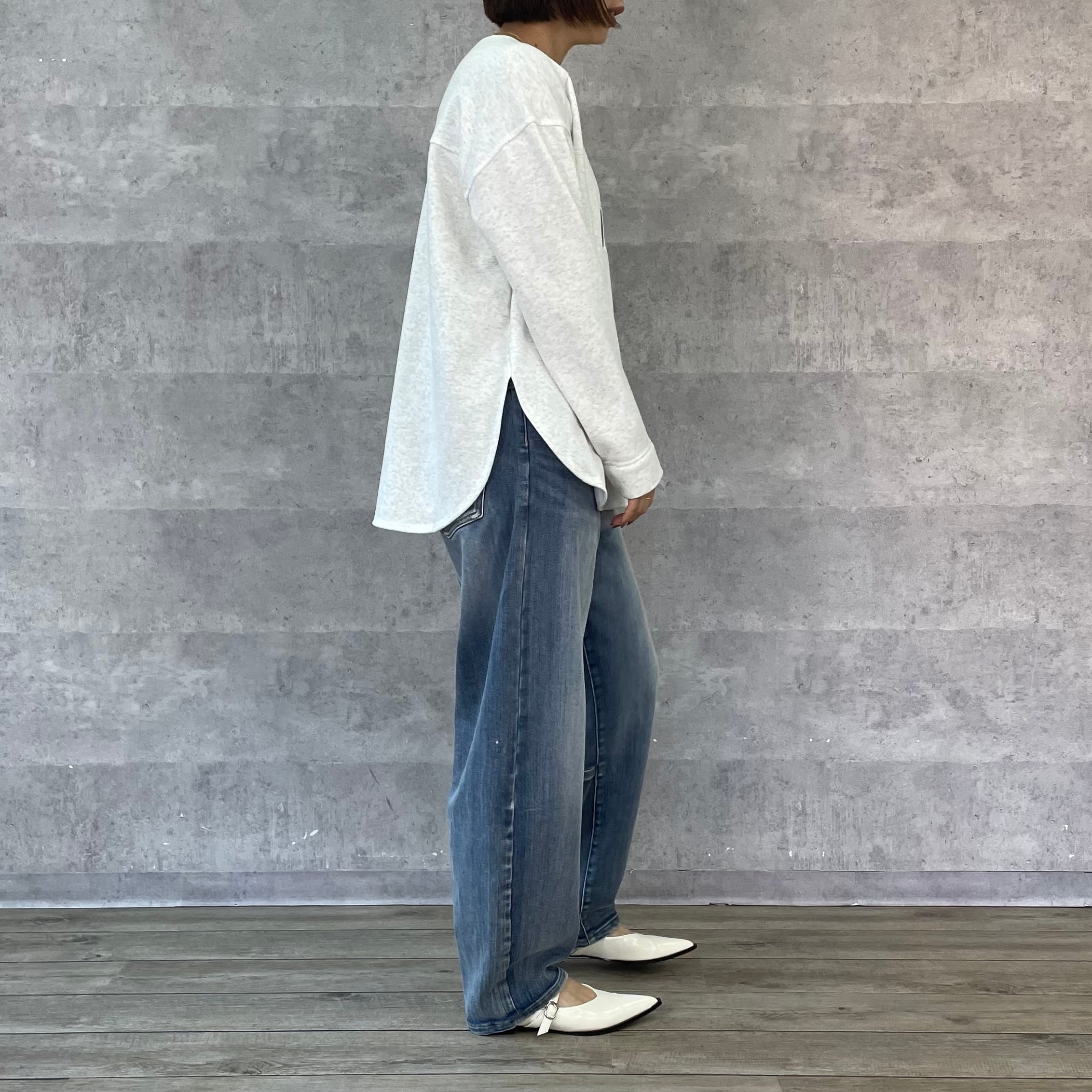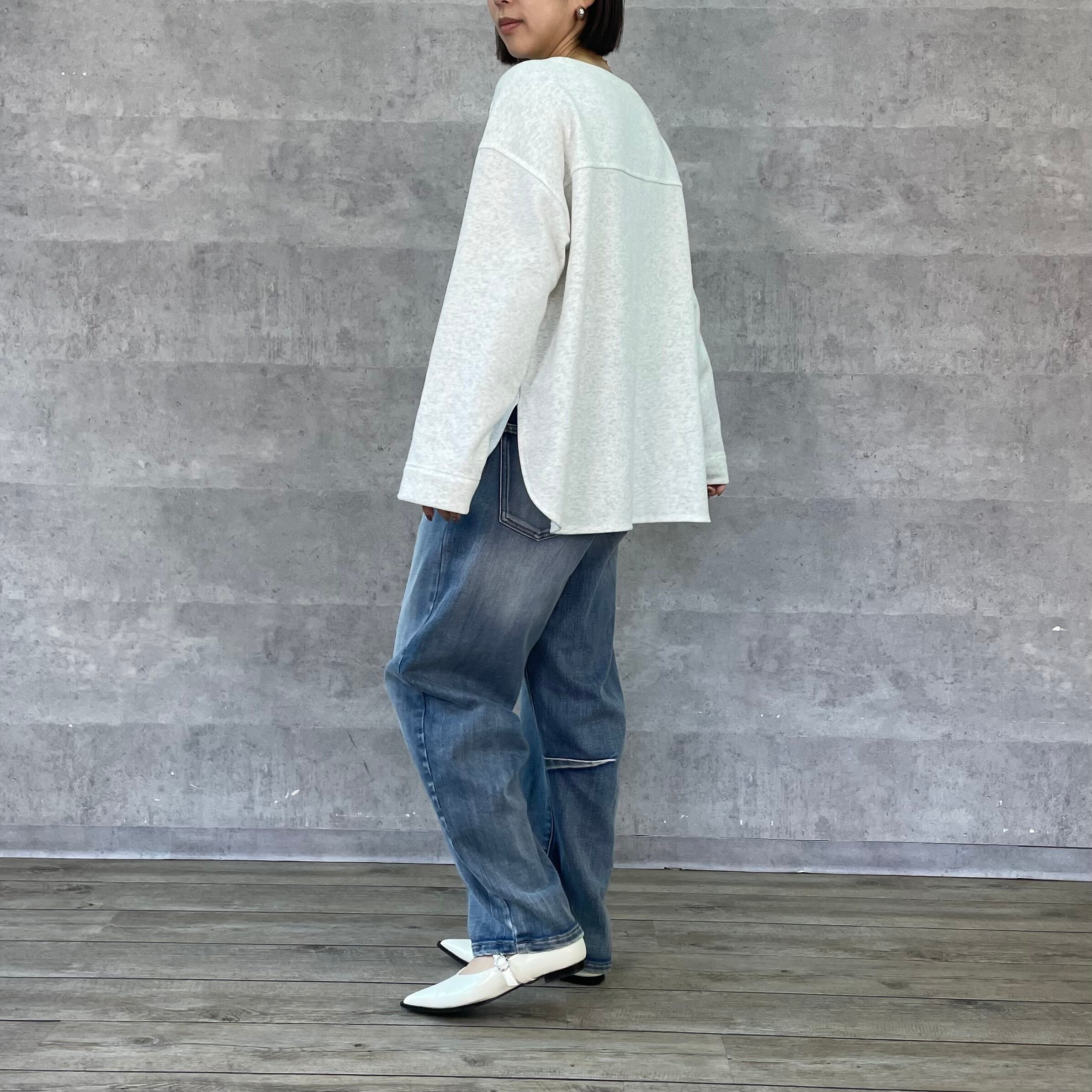 ゆったりとしたサイズ感なのでシャツやロンTとのレイヤードもスムーズです。