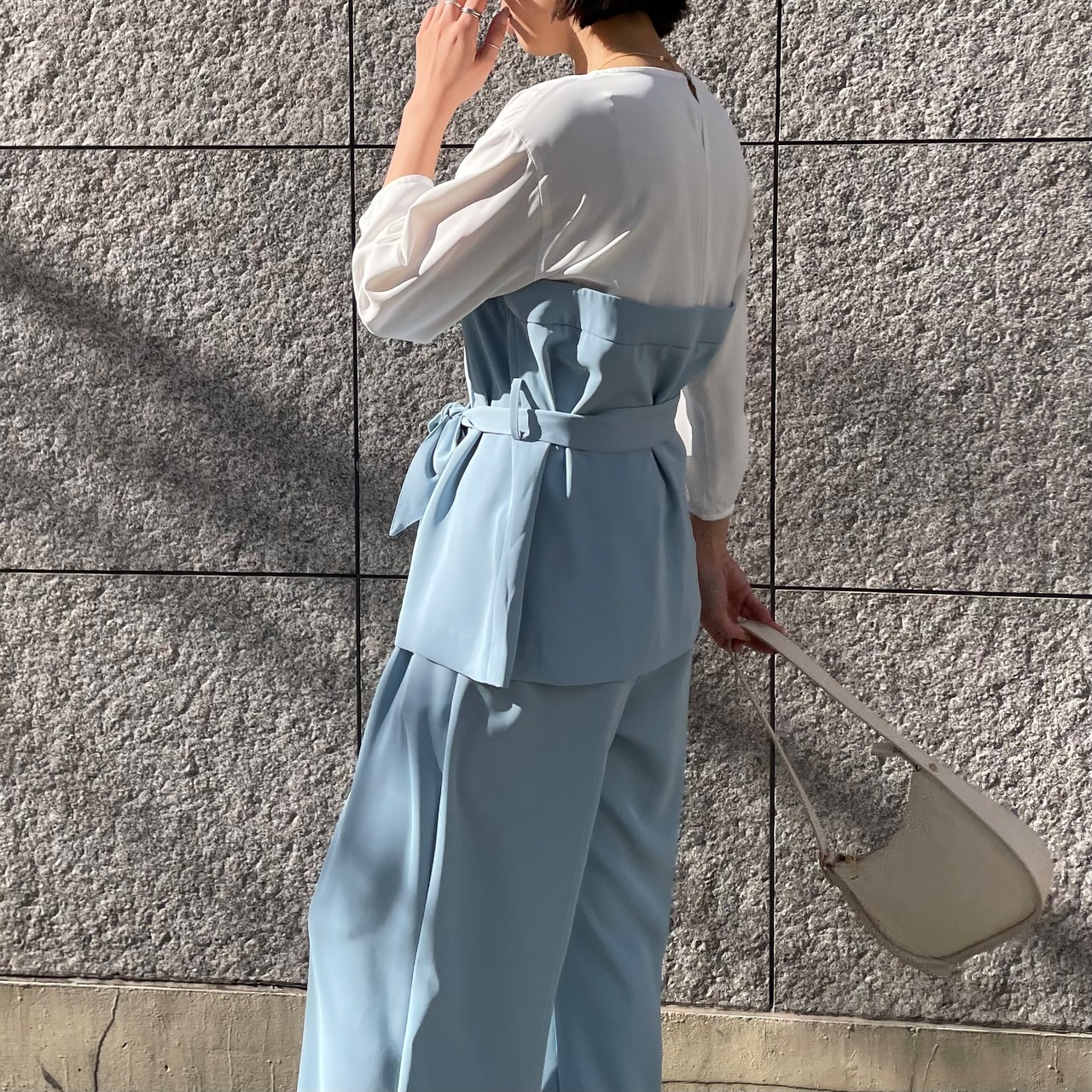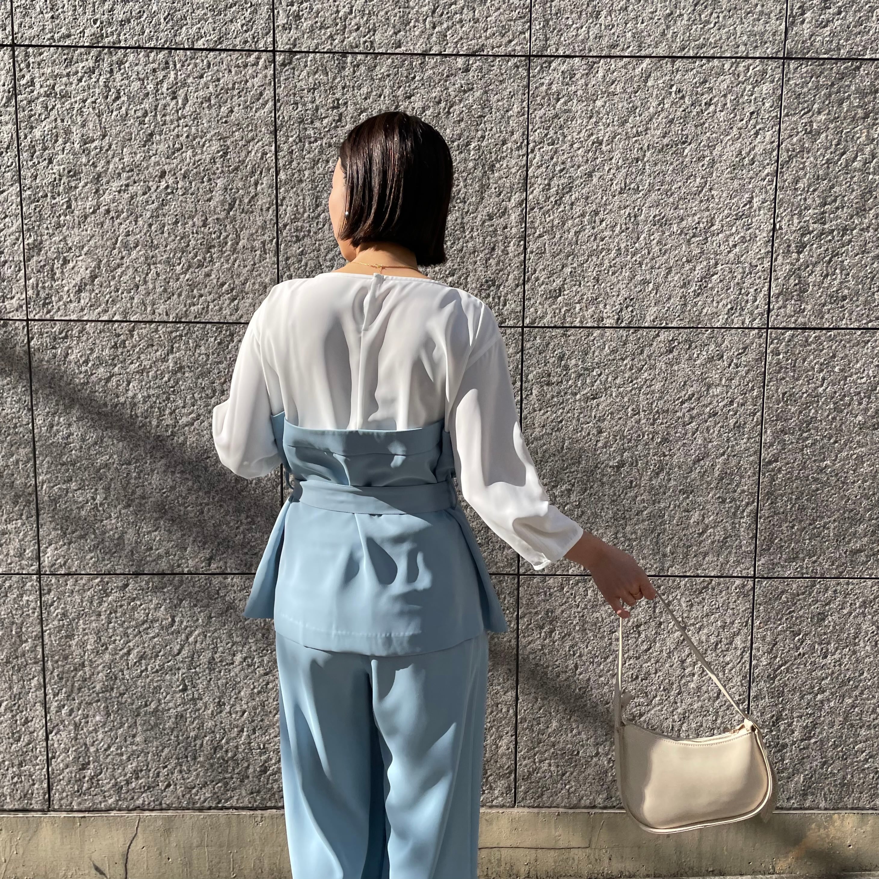 同素材のボトムと合わせてスーツとして着用がオススメです。