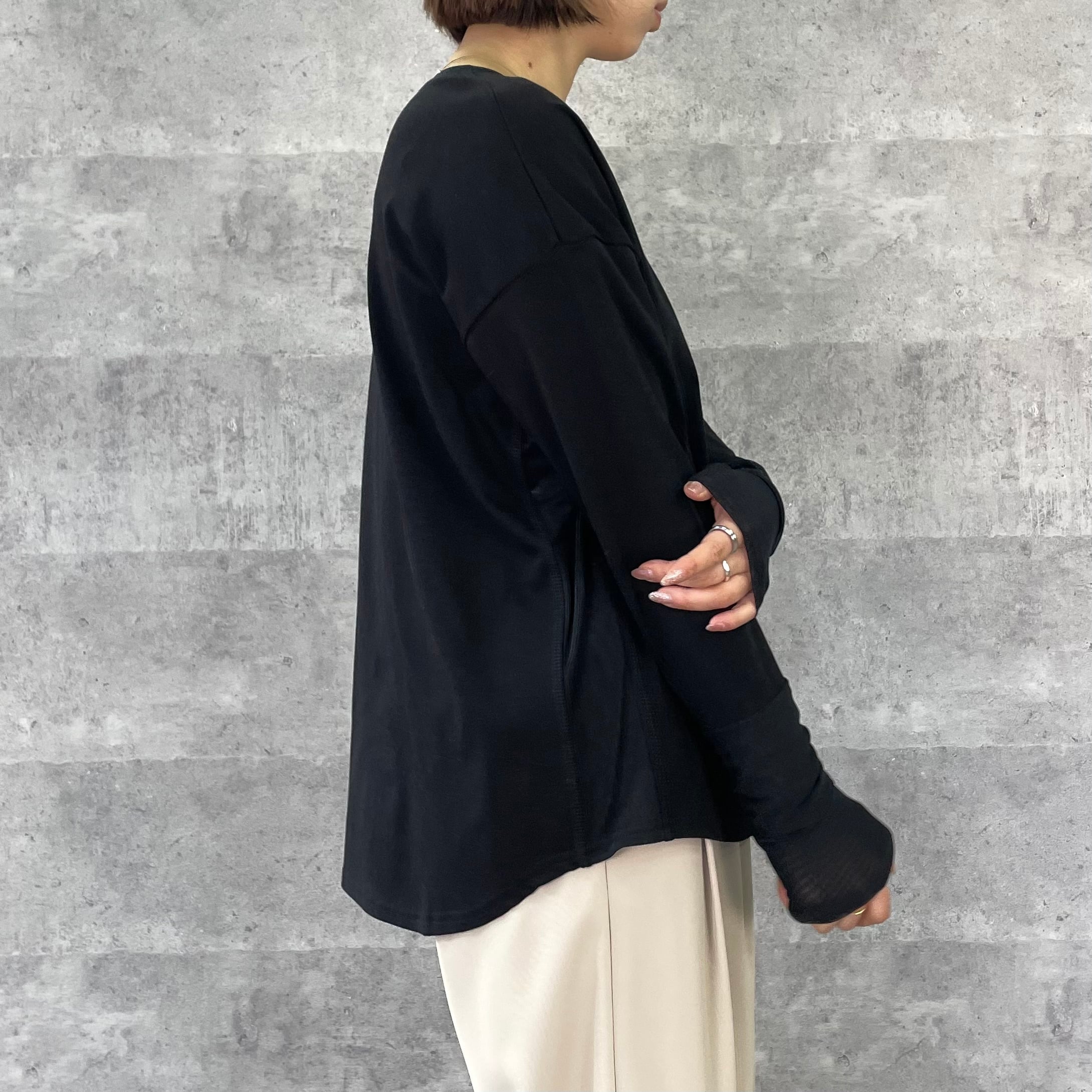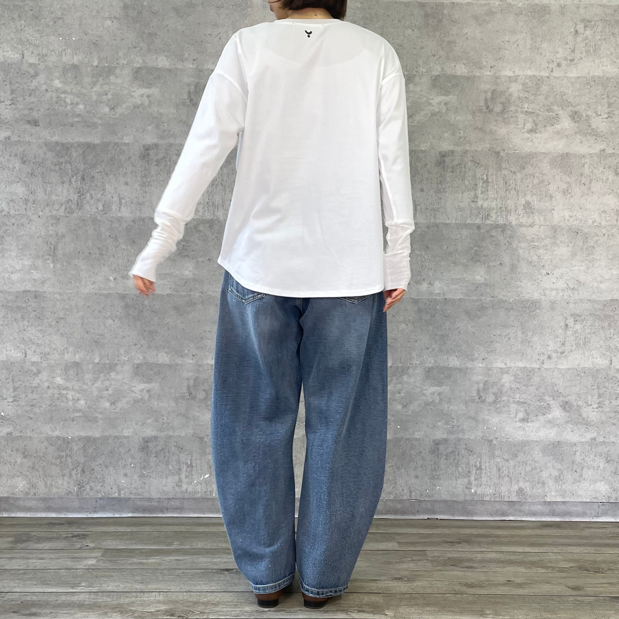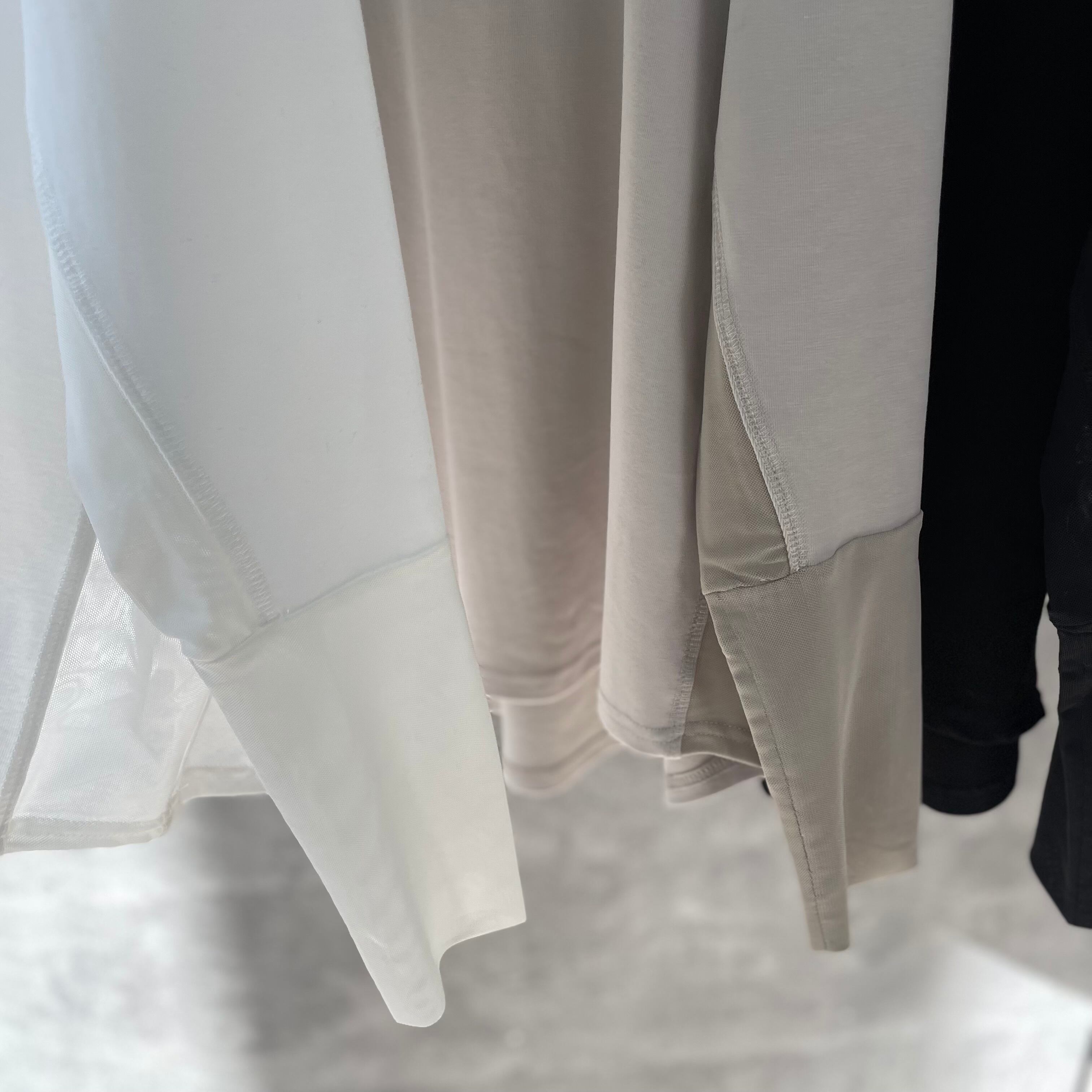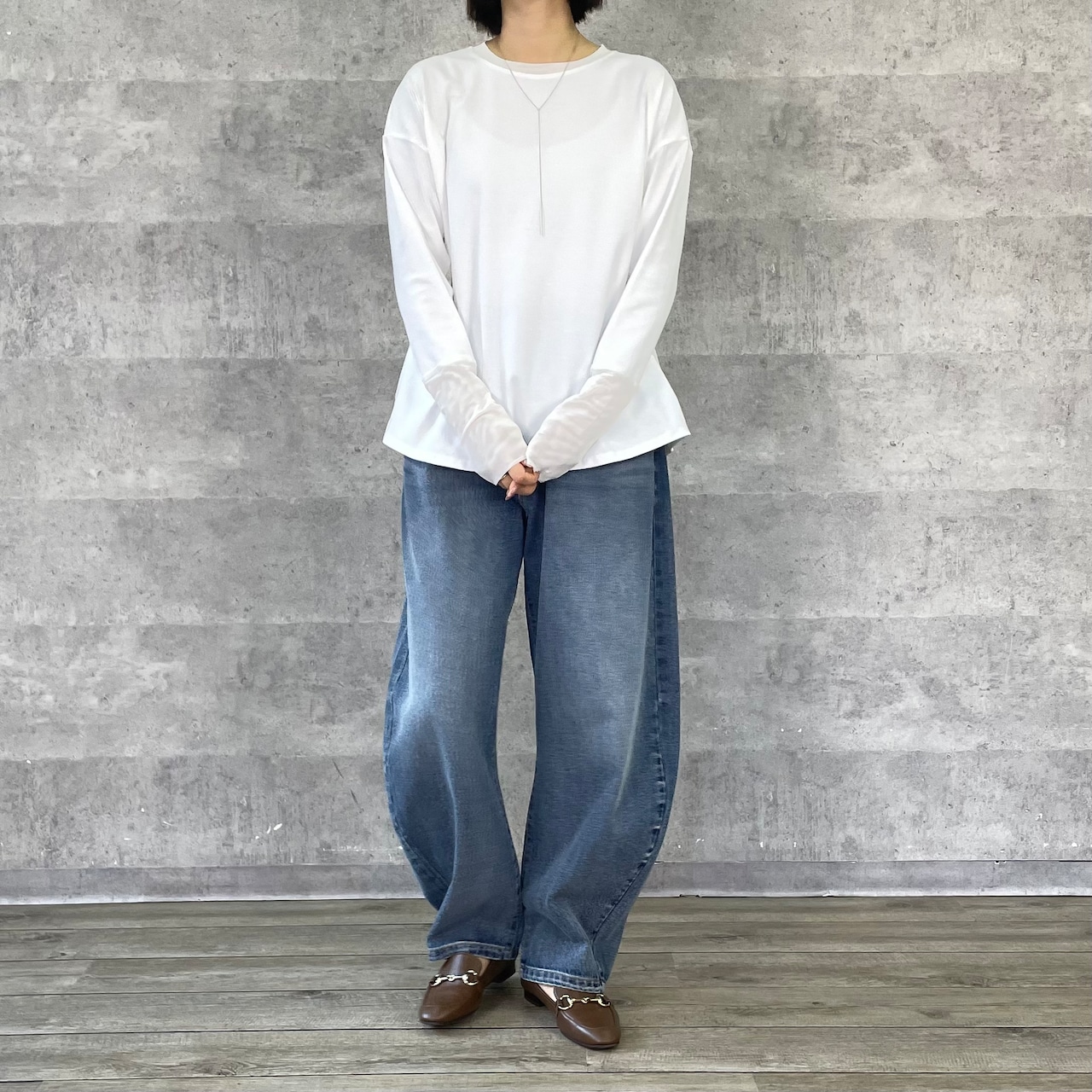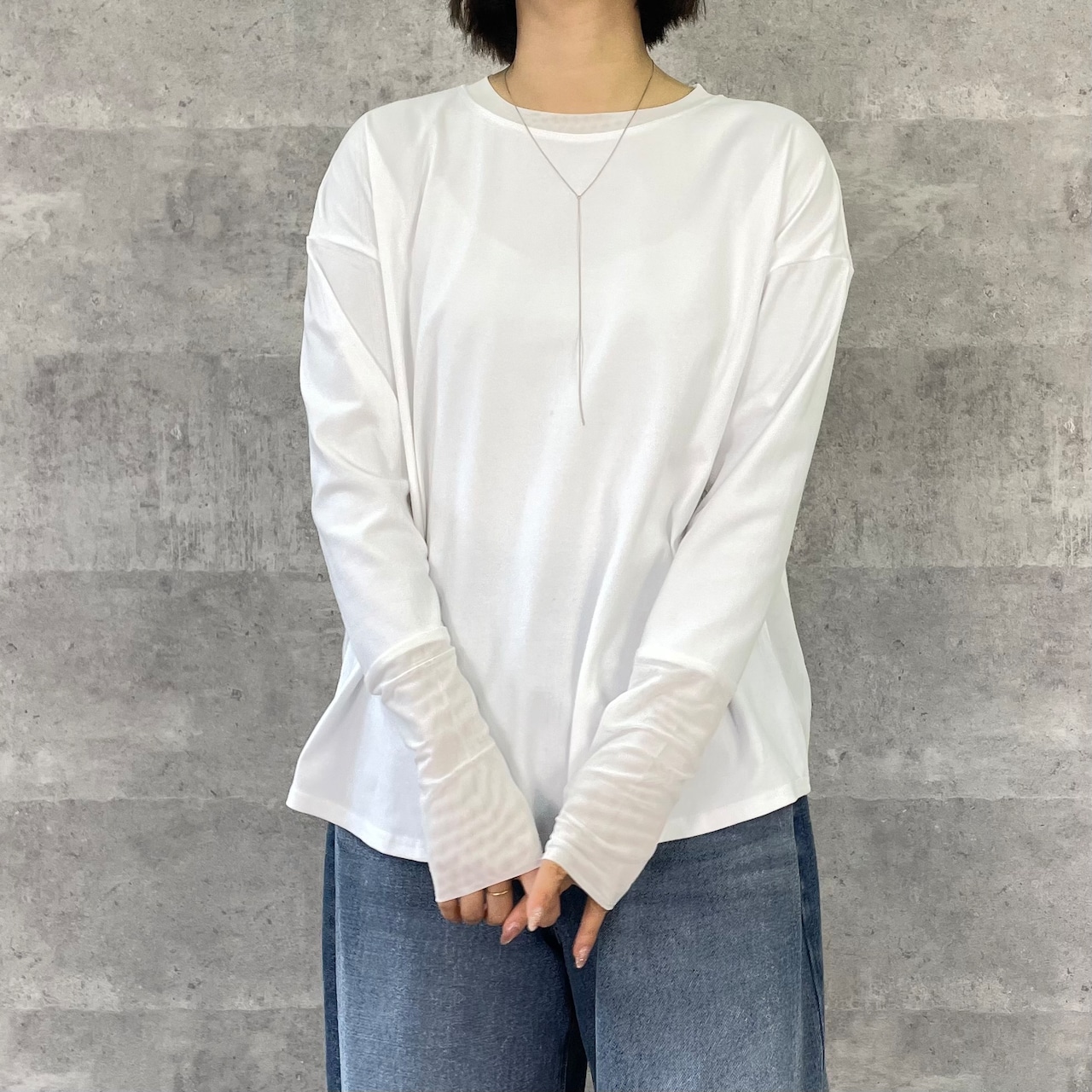 少しオーバーサイズなシルエットでインナーで着用しても1枚で着用しても