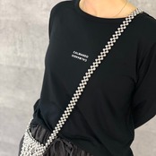 さりげないロゴと女性らしいカーヴィーなシルエットがこなれ見えするポイント。