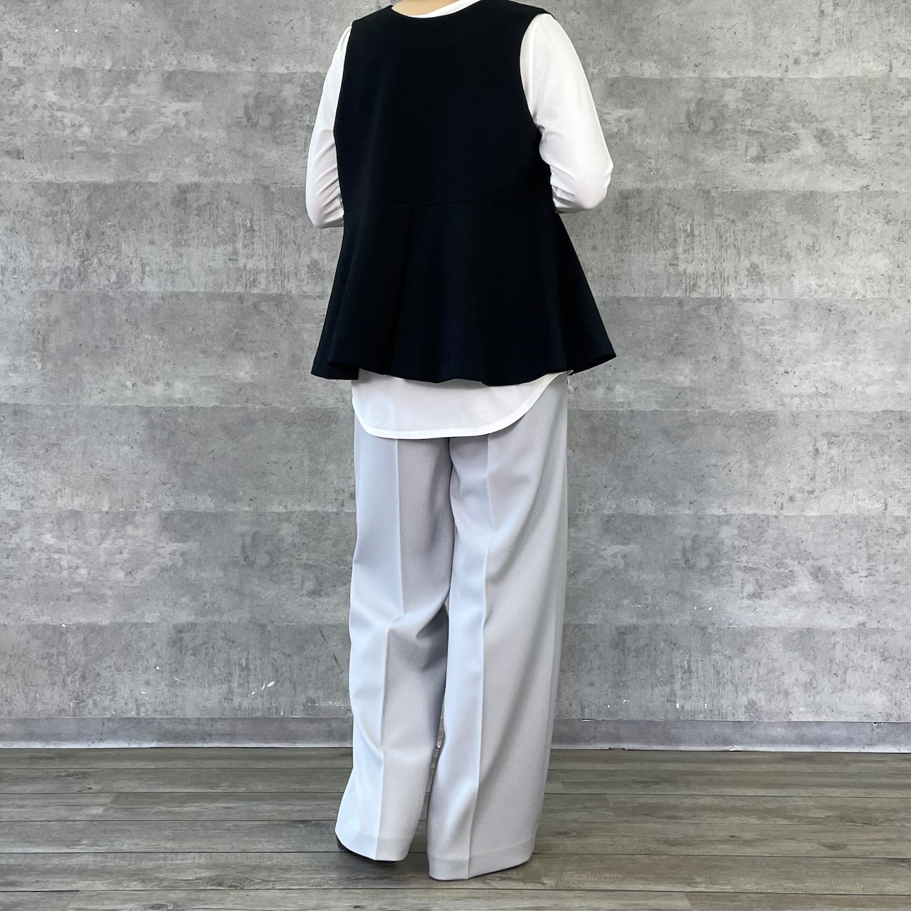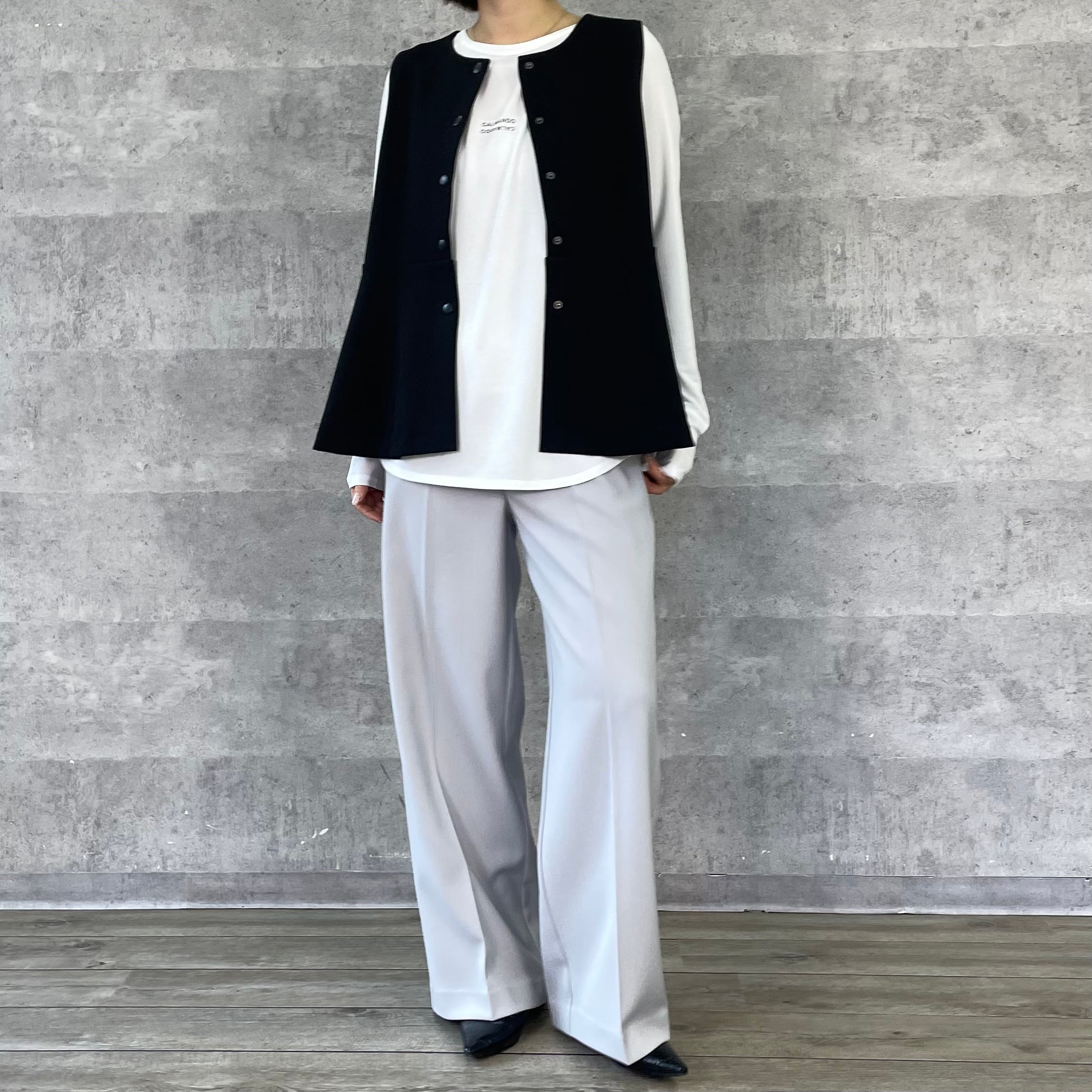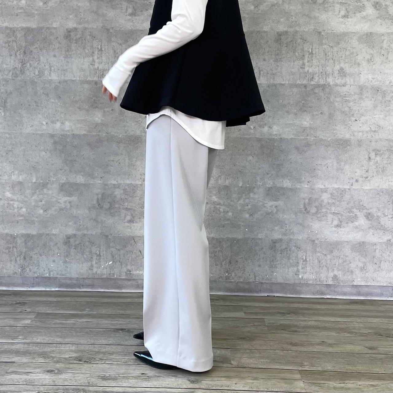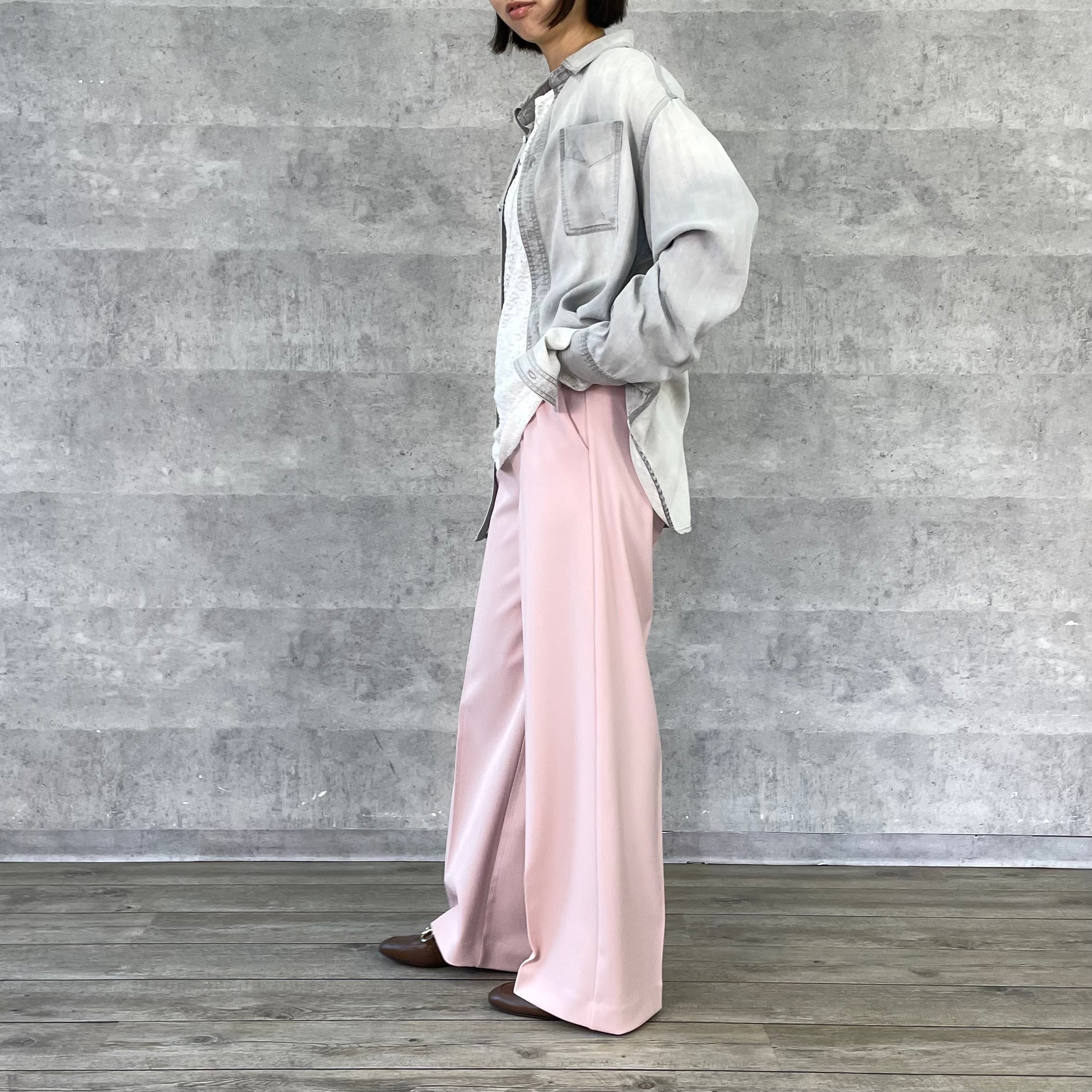 程よくワイドシルエットながらノータックで腰回りはすっきりと仕立てています