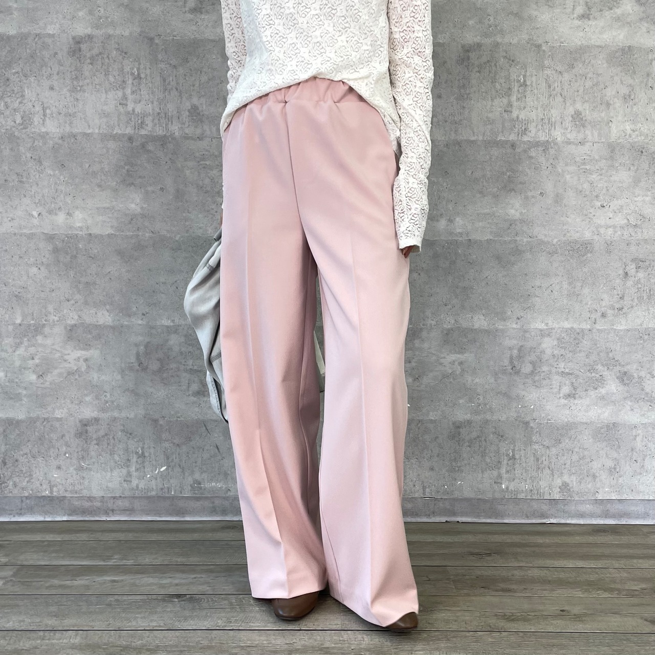 春らしいきれいなカラー展開のルーミーパンツ