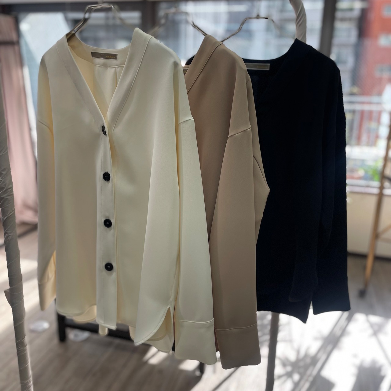 高見えする上品な素材感で普段使いからオフィスシーンまで幅広く活躍するカーディガンデザインのブラウス。