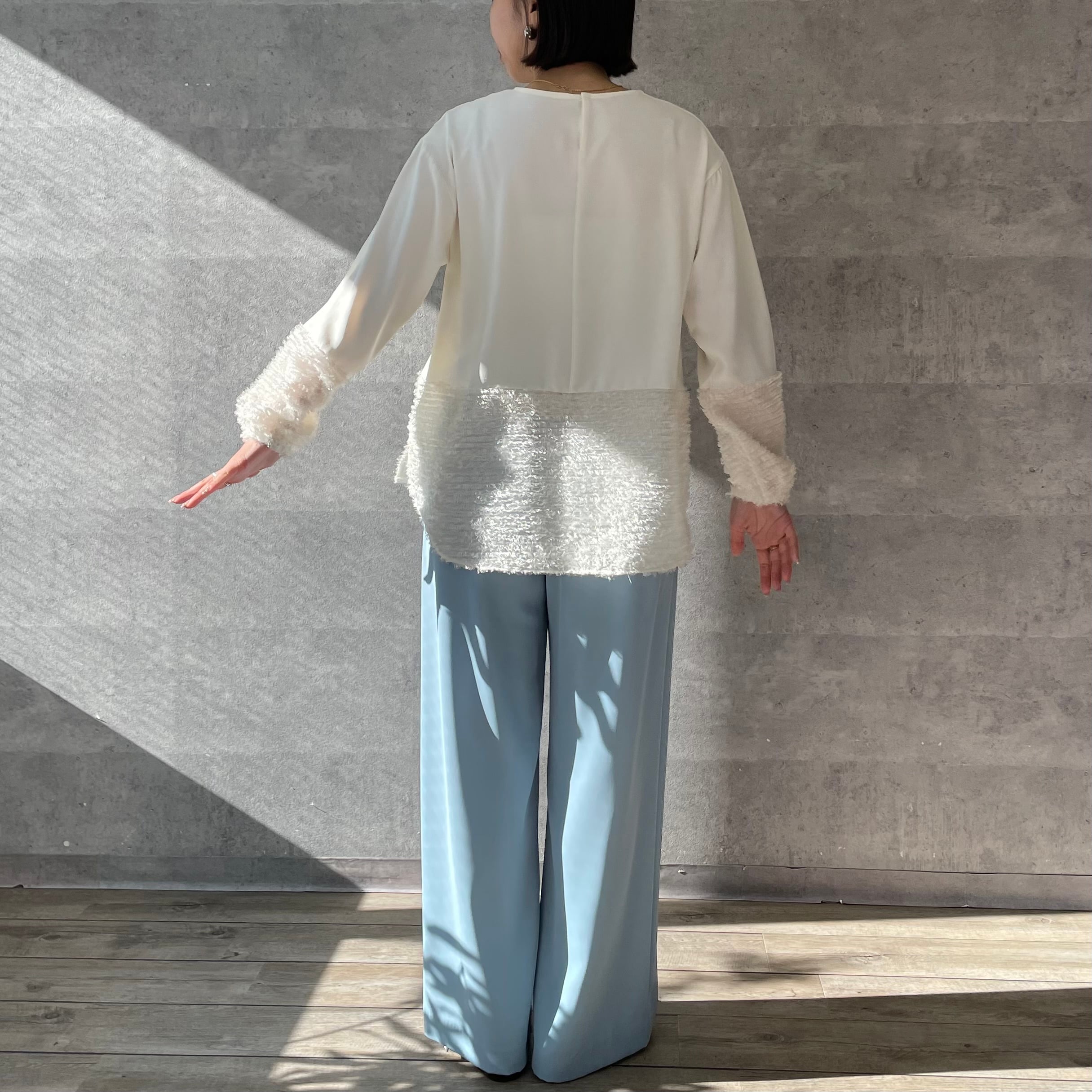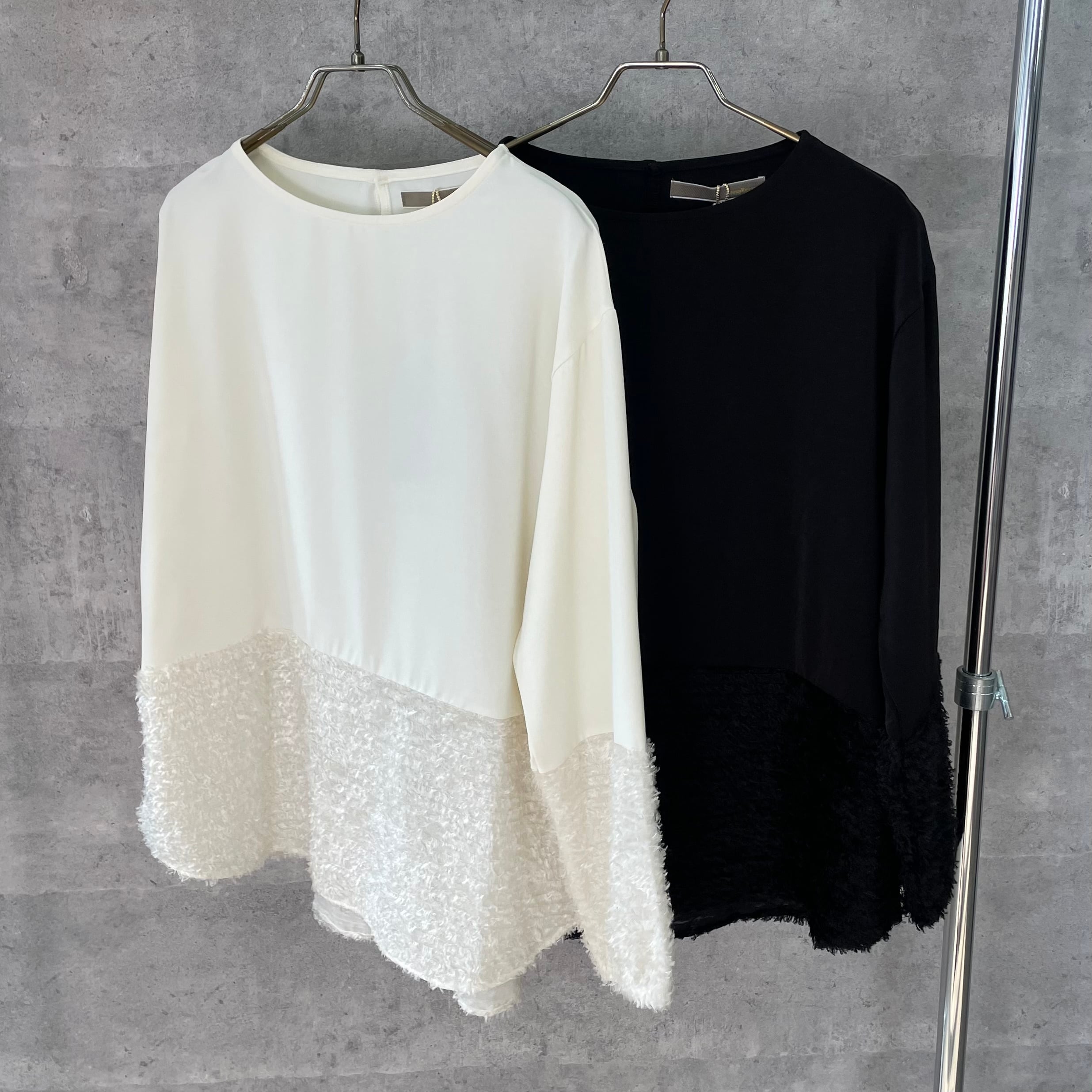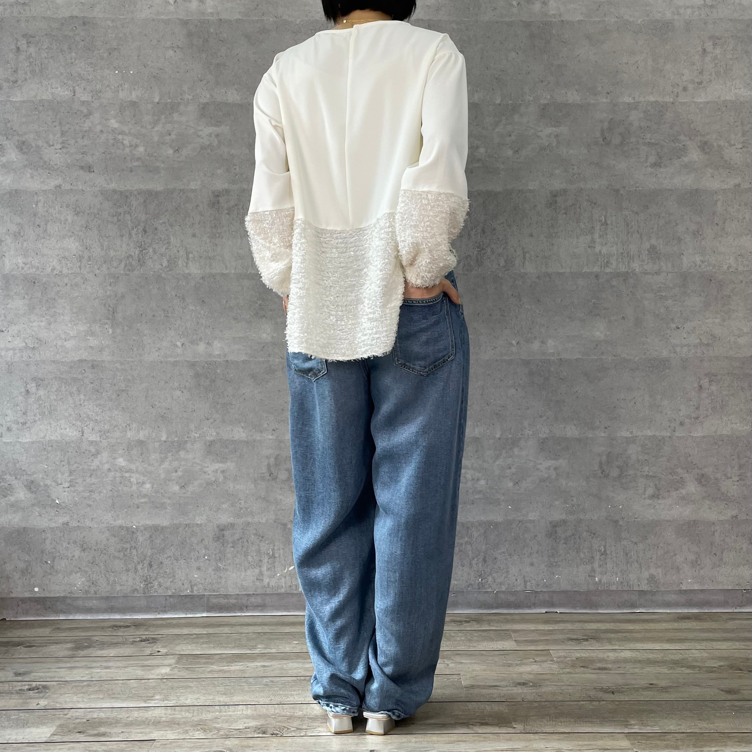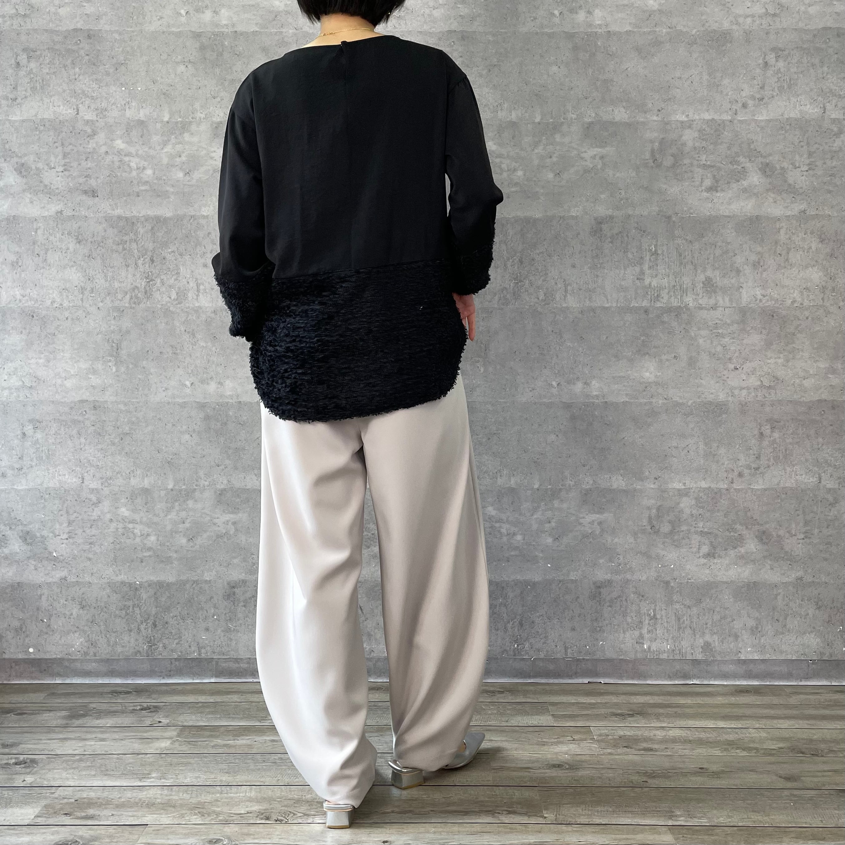 デシンと毛足のあるジャガードの切替ブラウス