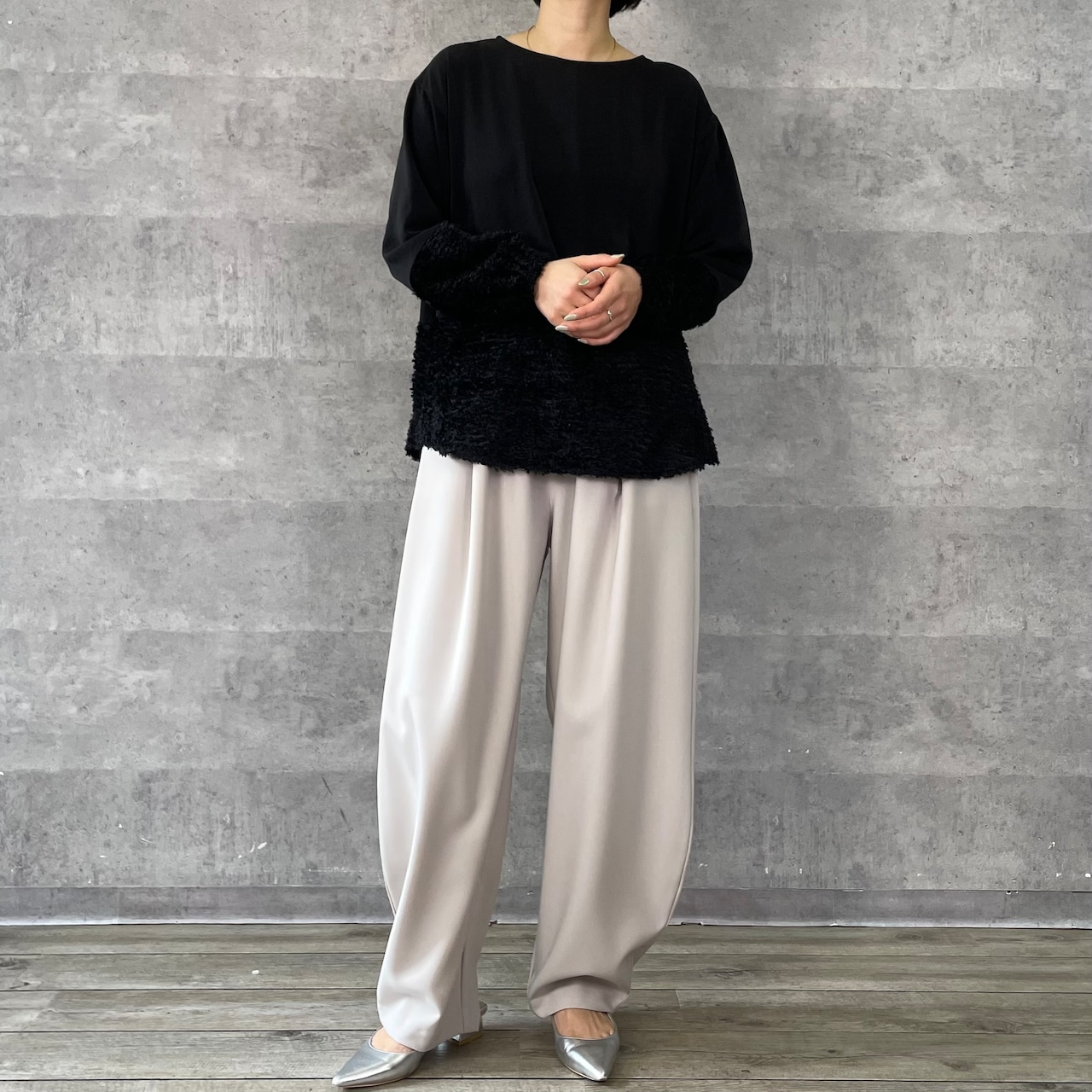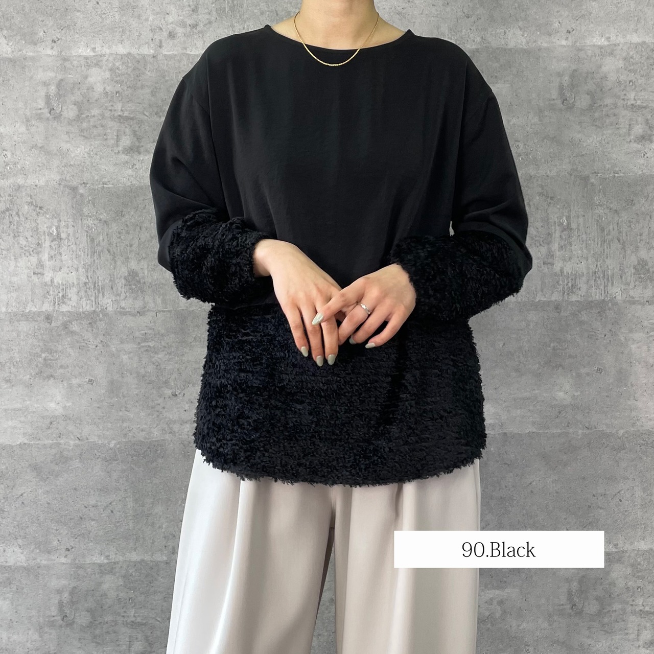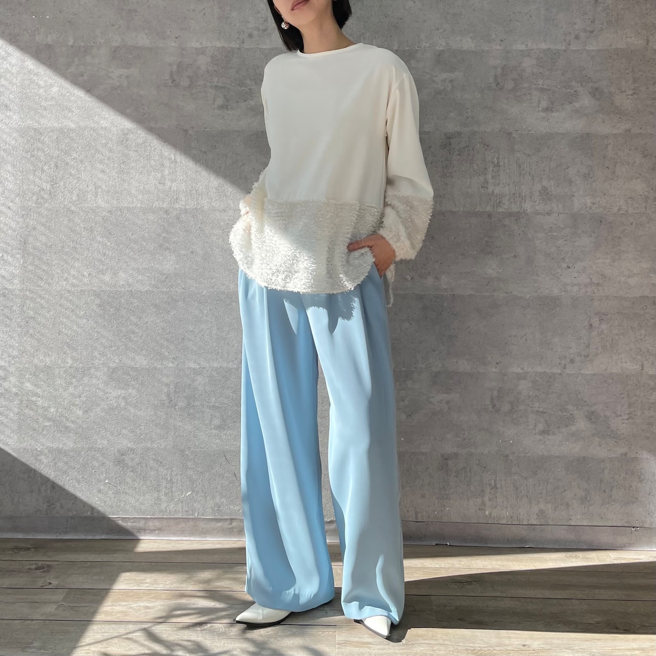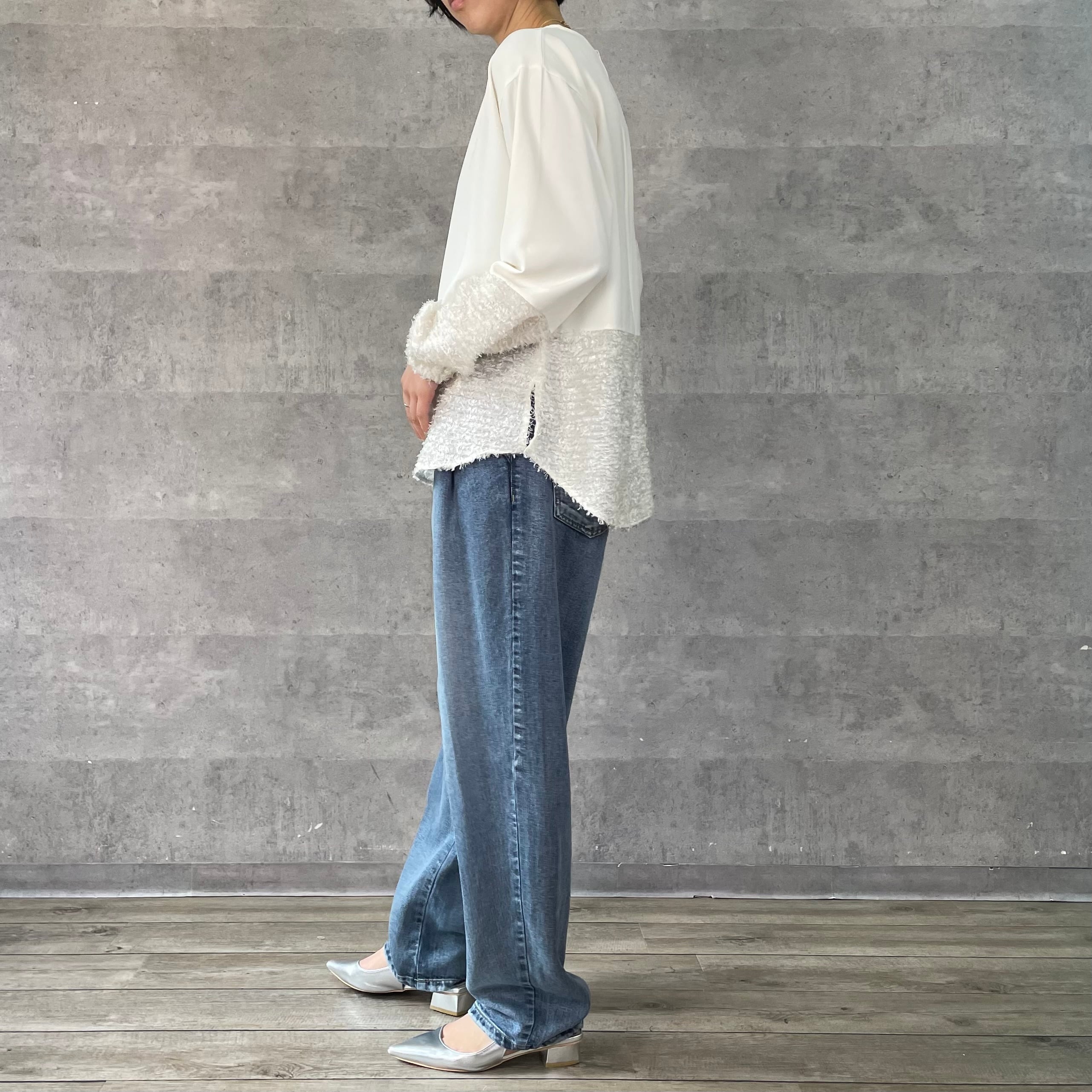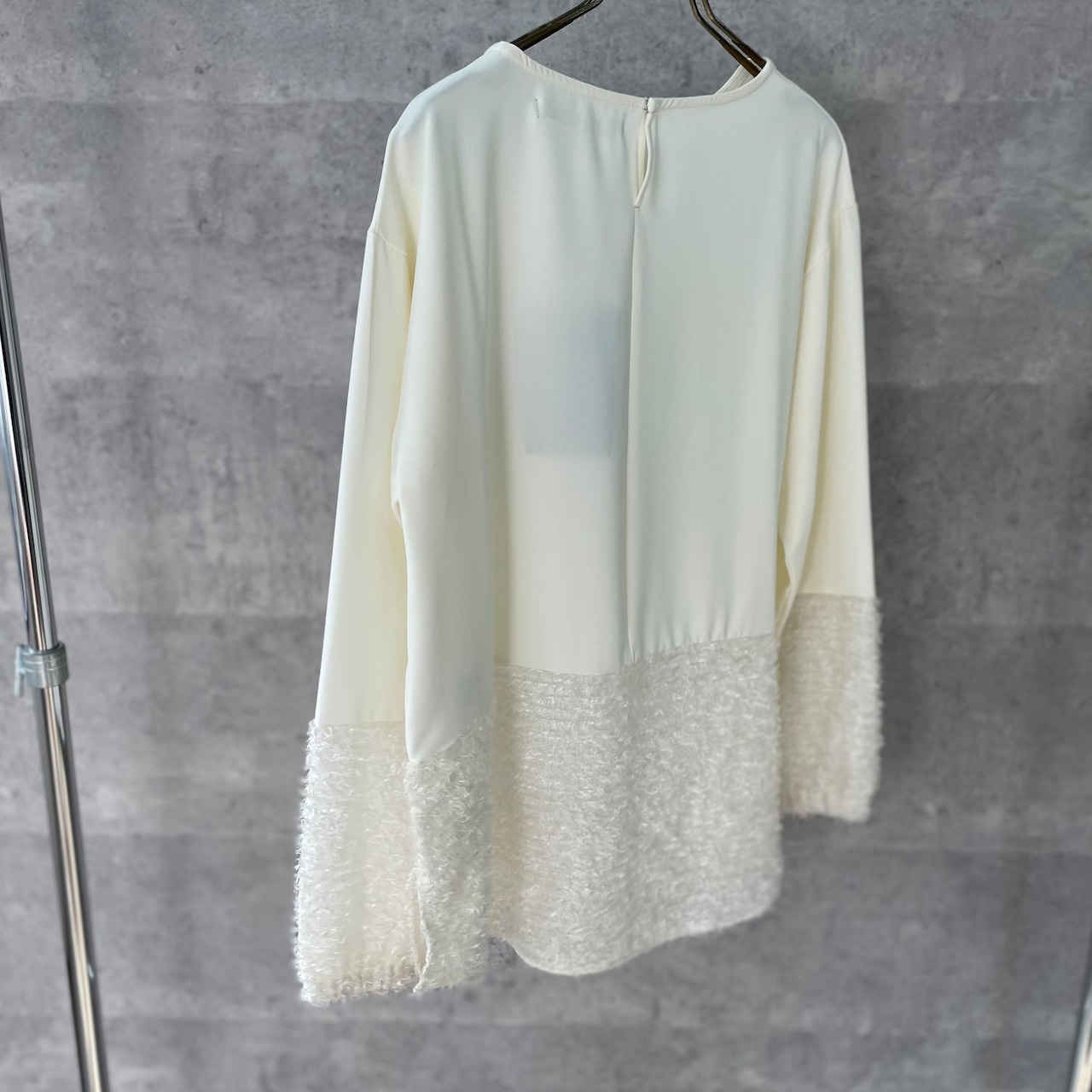 デシンと毛足のあるジャガードの切替ブラウス