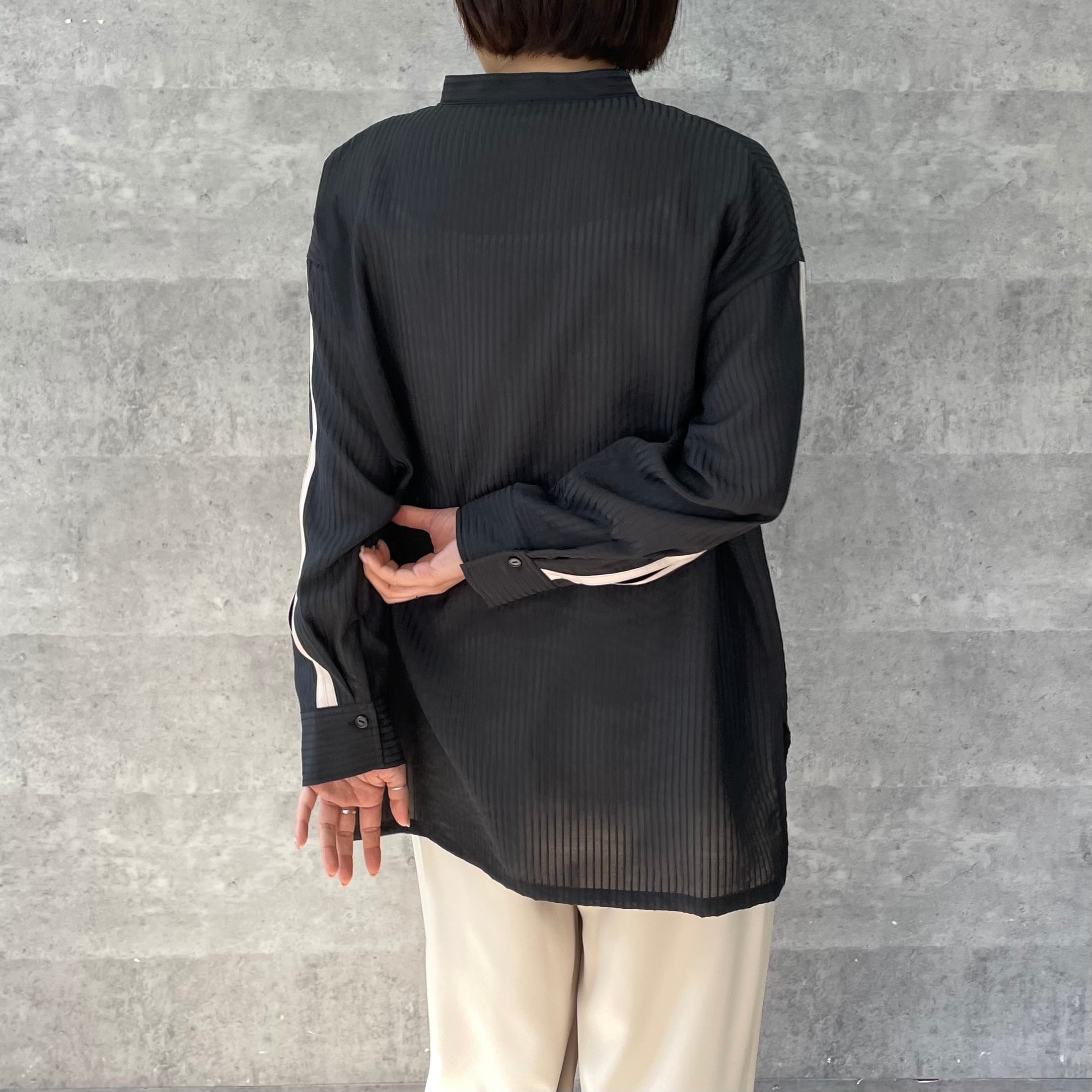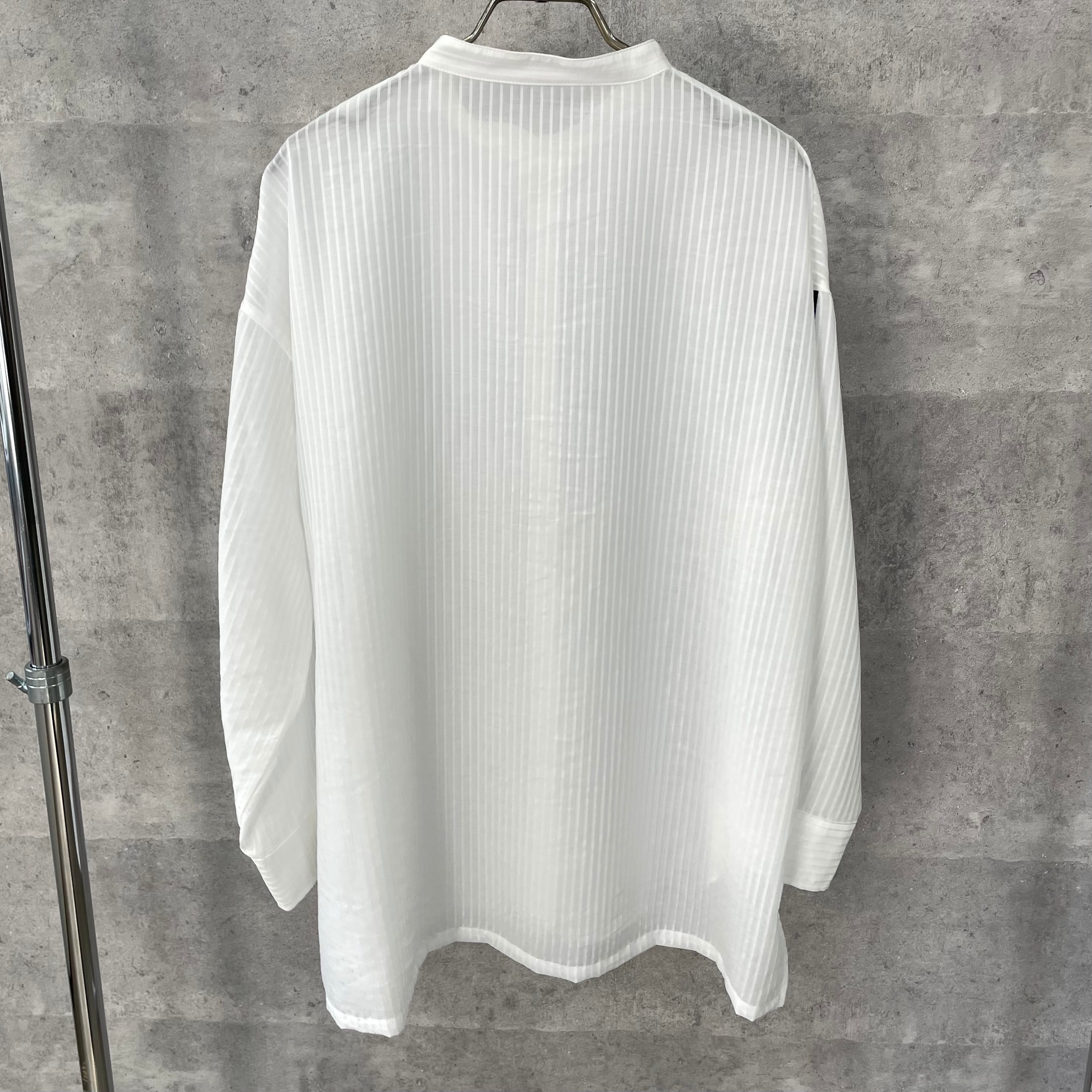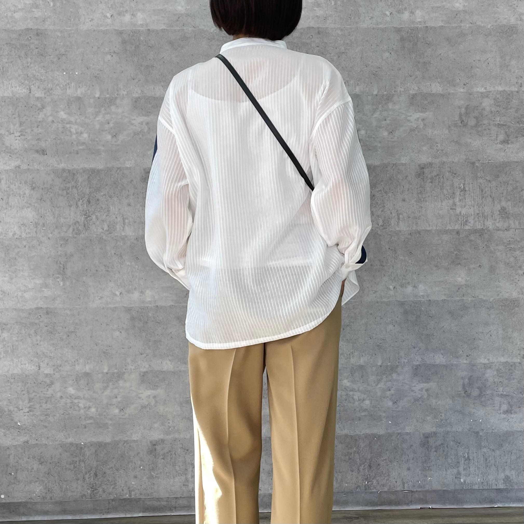 ジャガード織りでストライプ柄が施された少し透け感のある素材が涼しげなシャツ