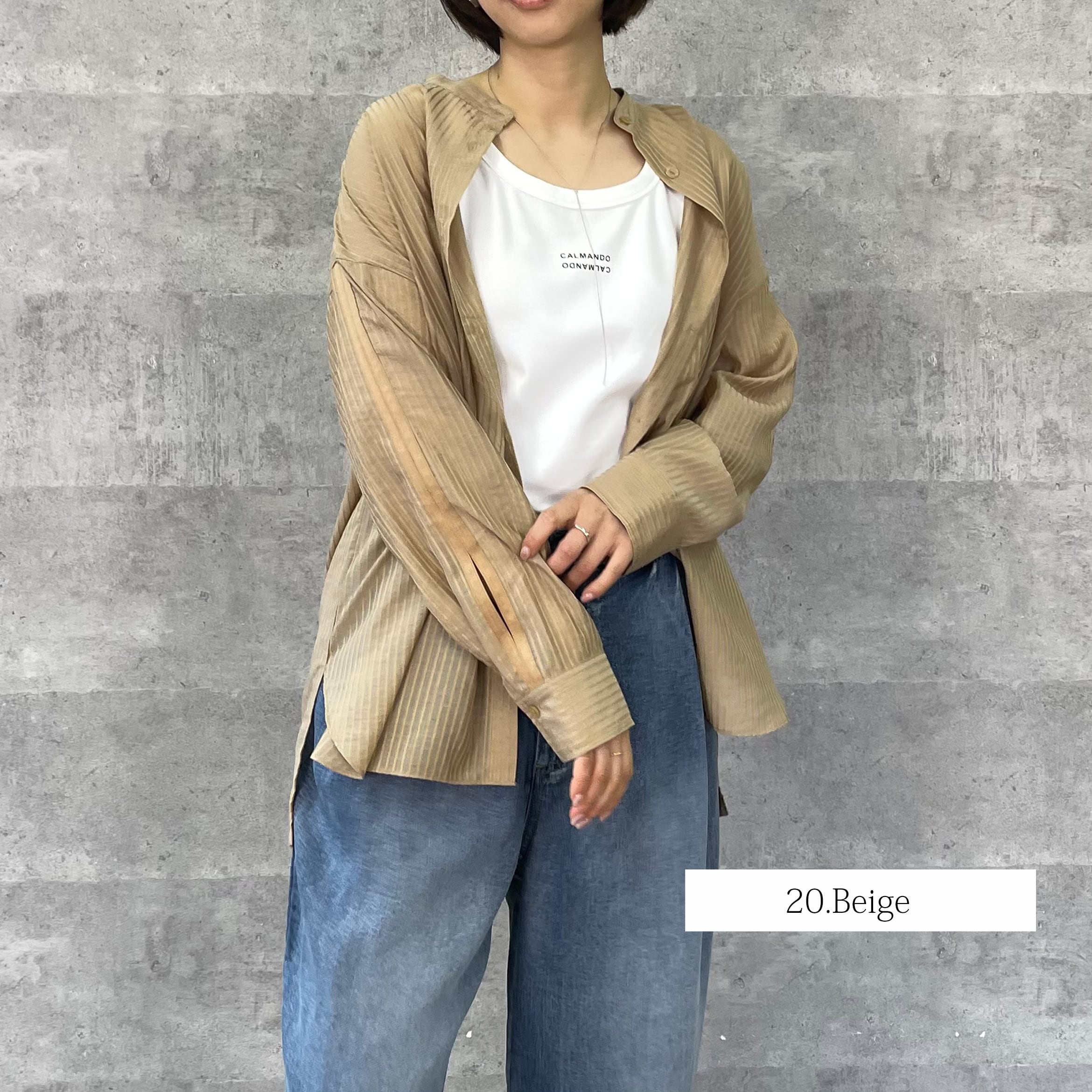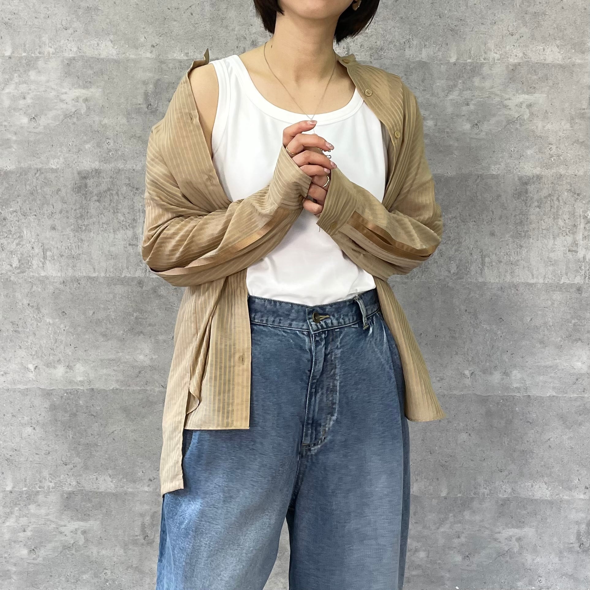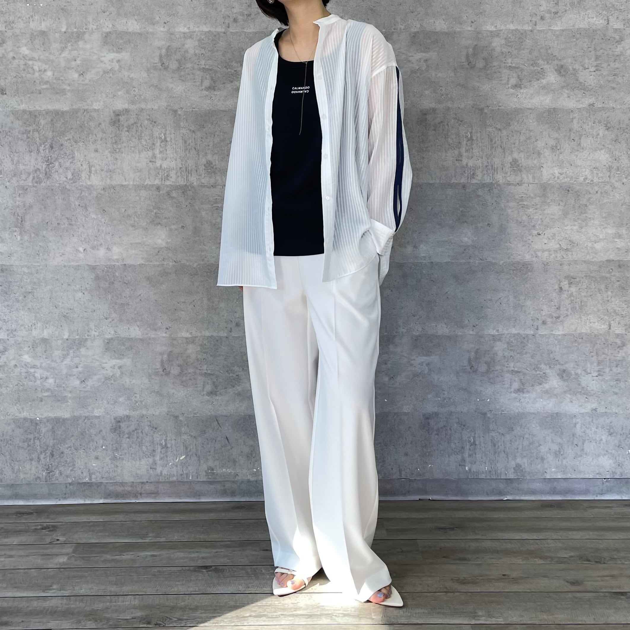 ジャガード織りでストライプ柄が施された少し透け感のある素材が涼しげなシャツ