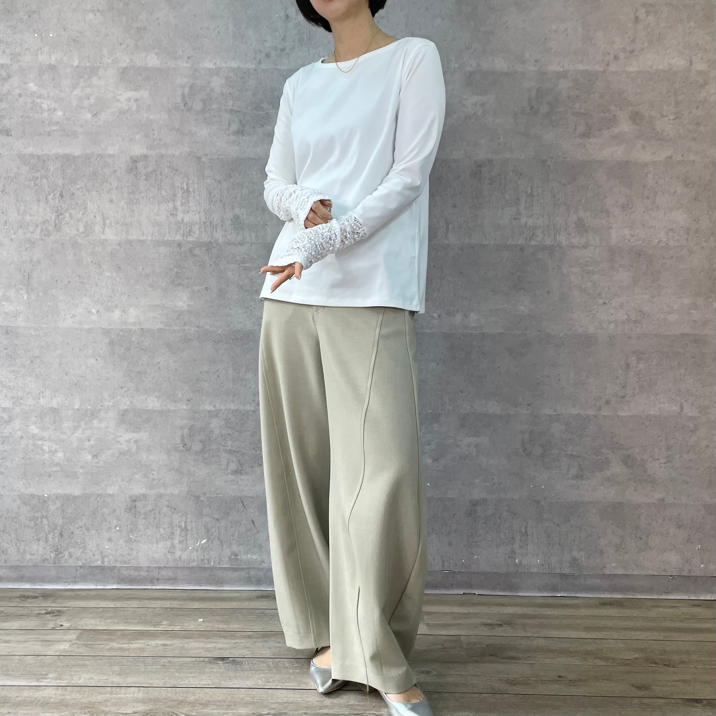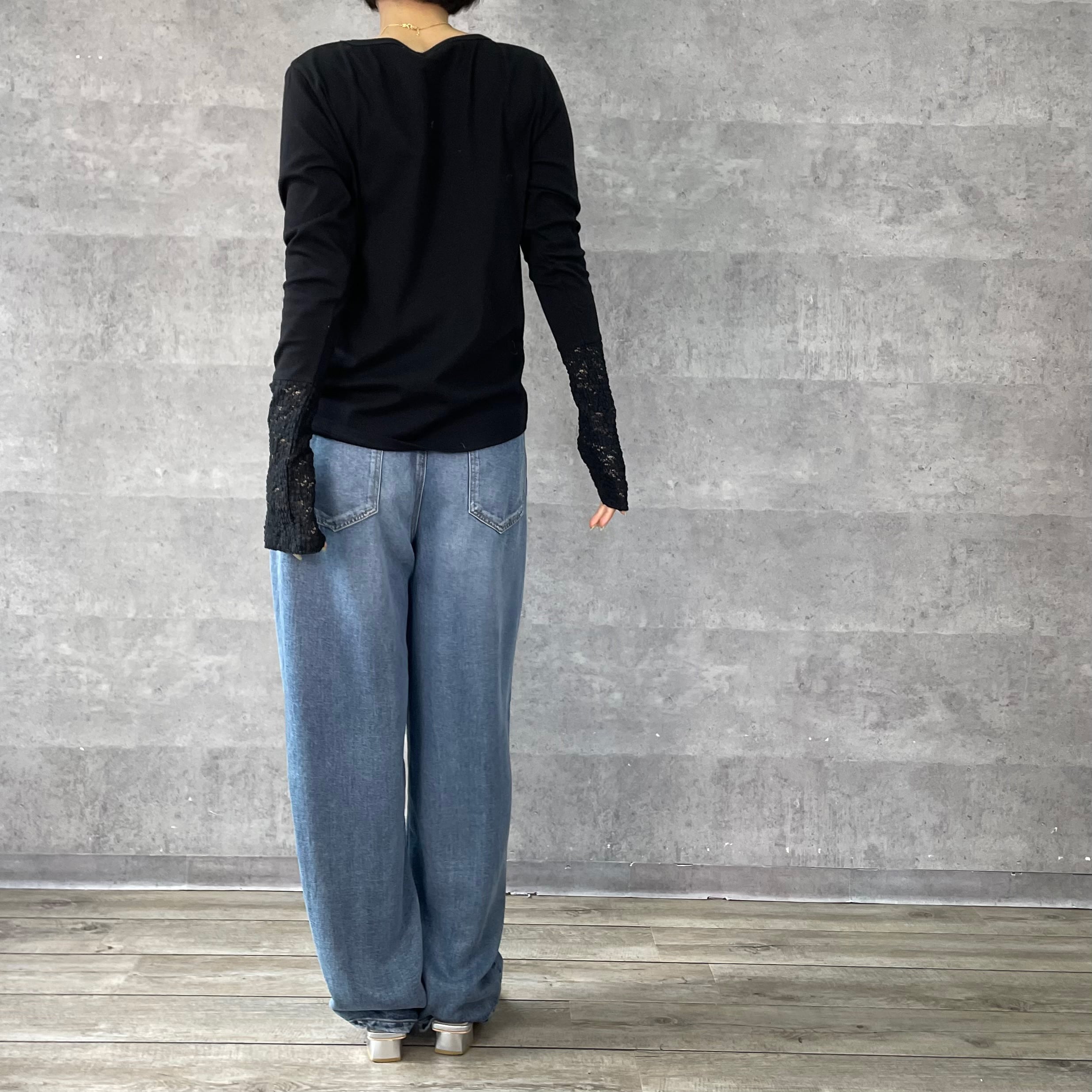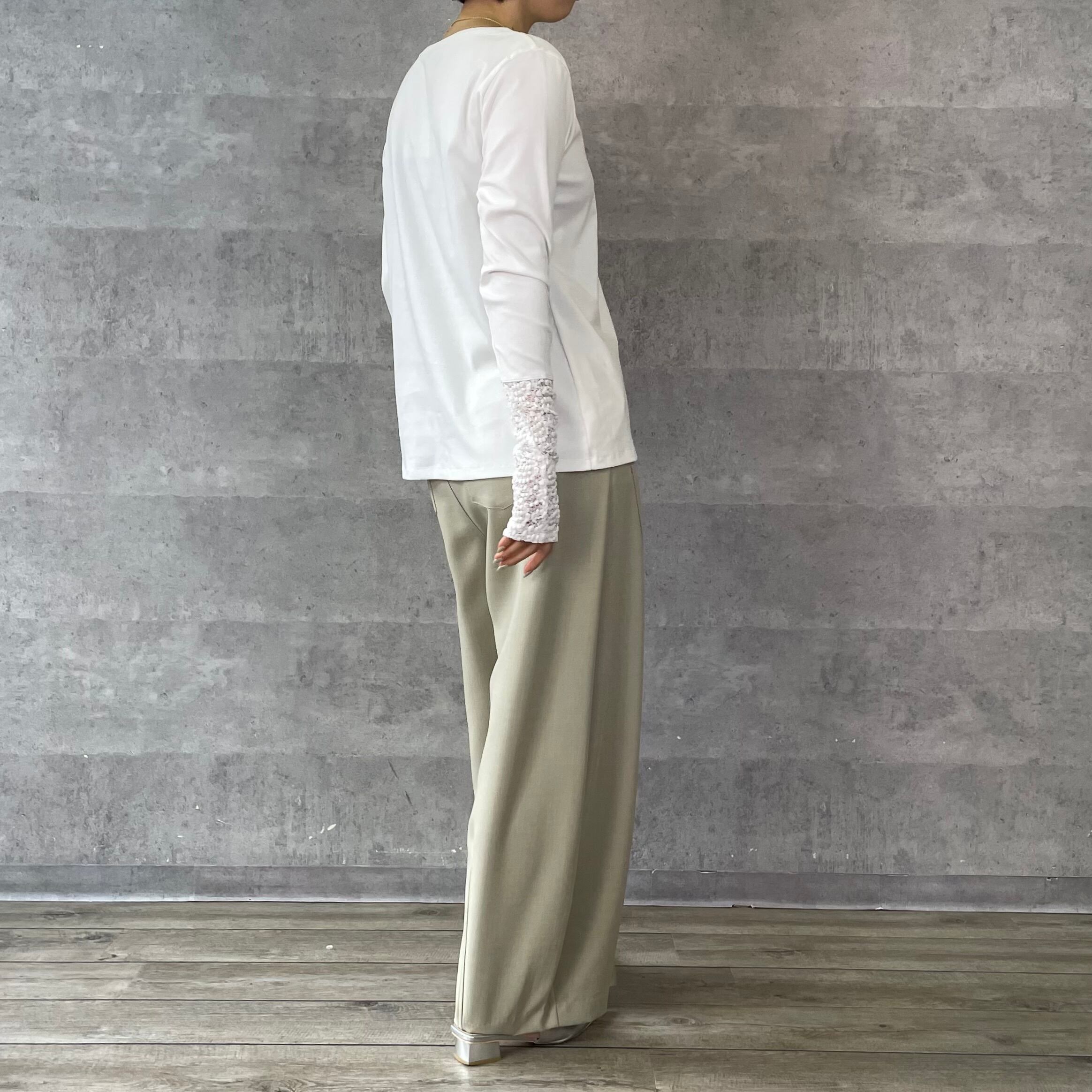 すっきりとしたシルエットと袖口のレース切替が女性らしく抜け感をプラスします。