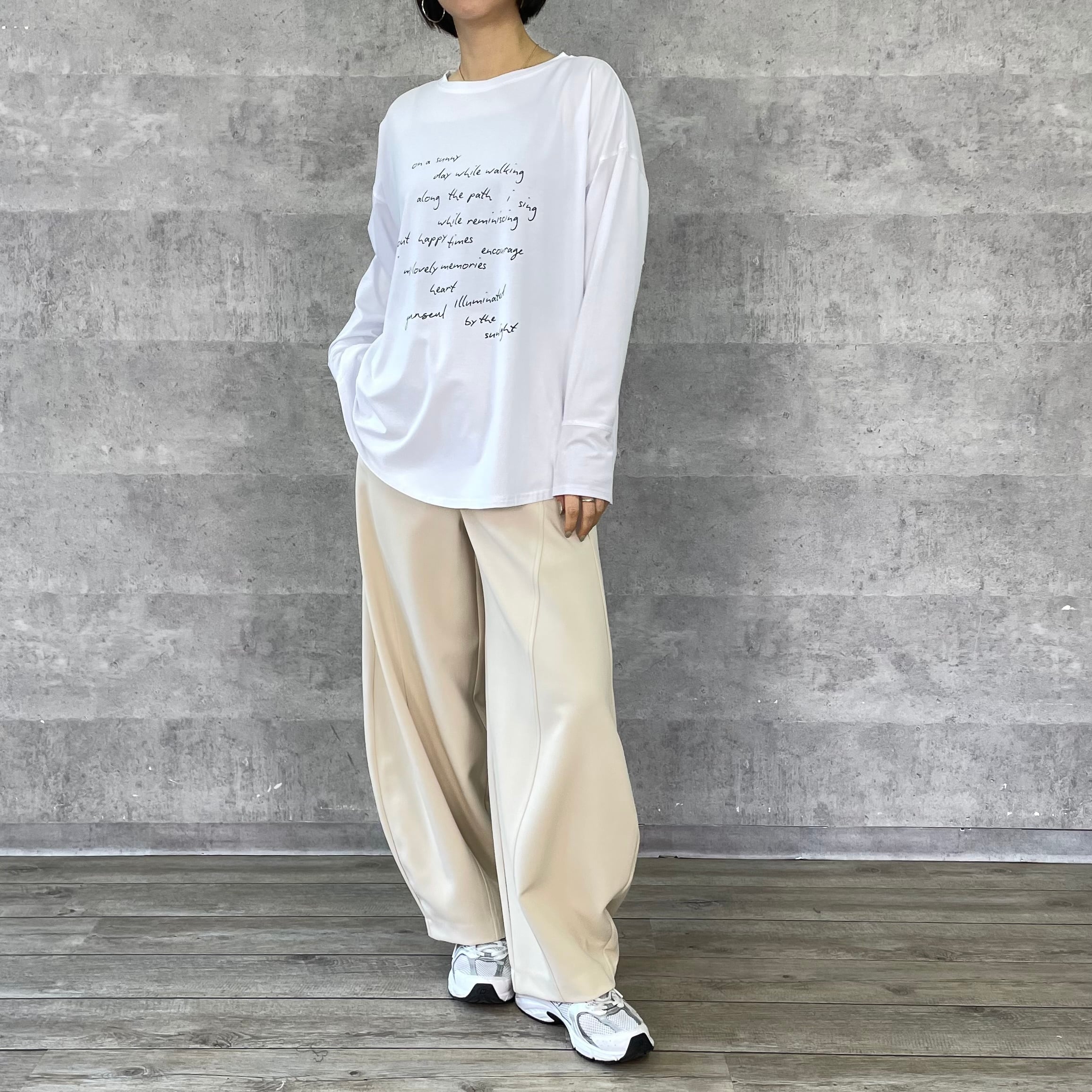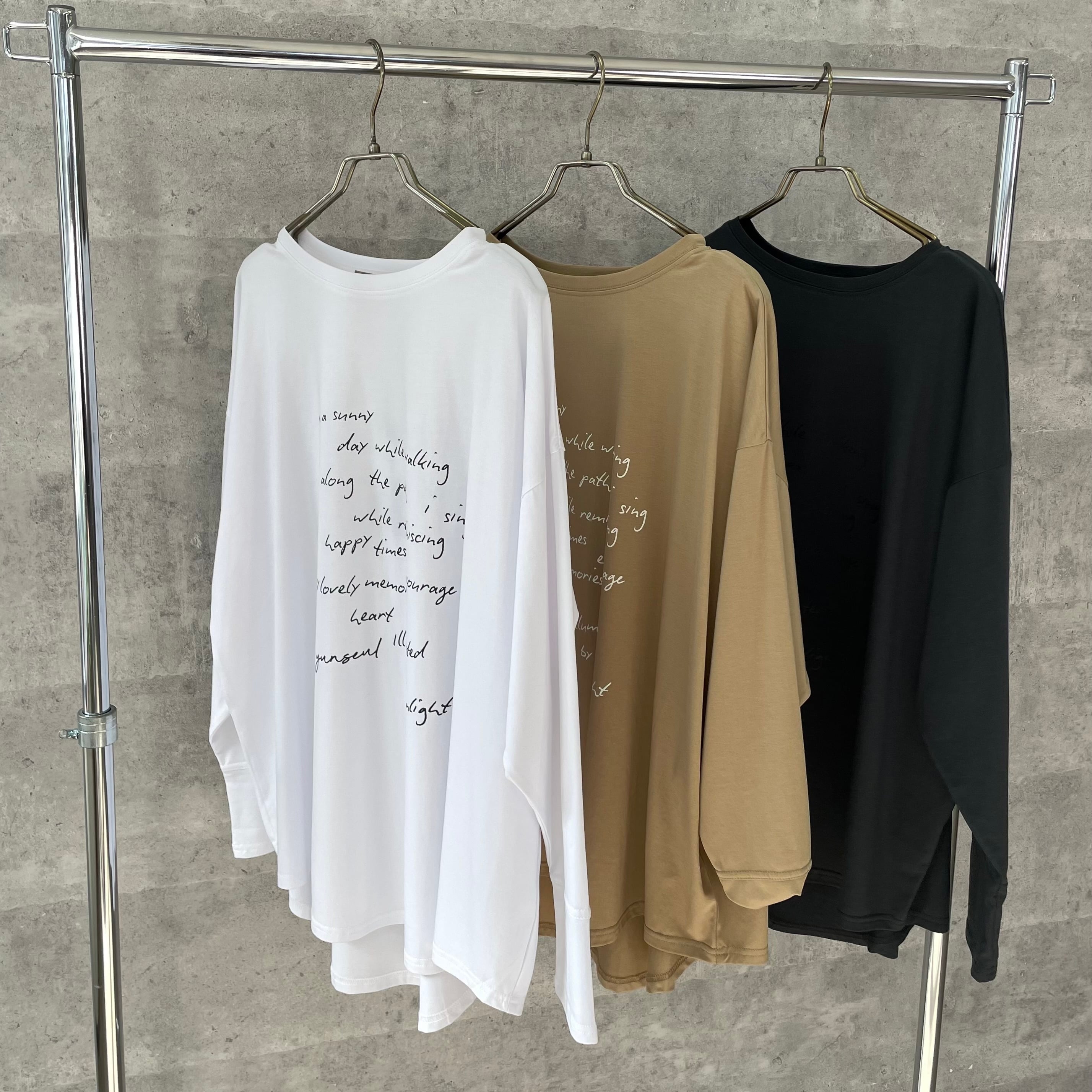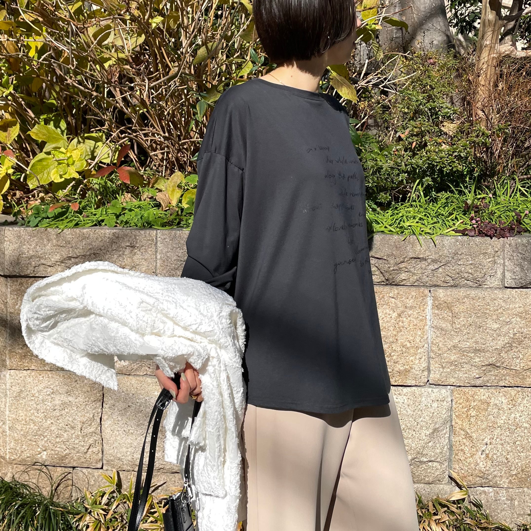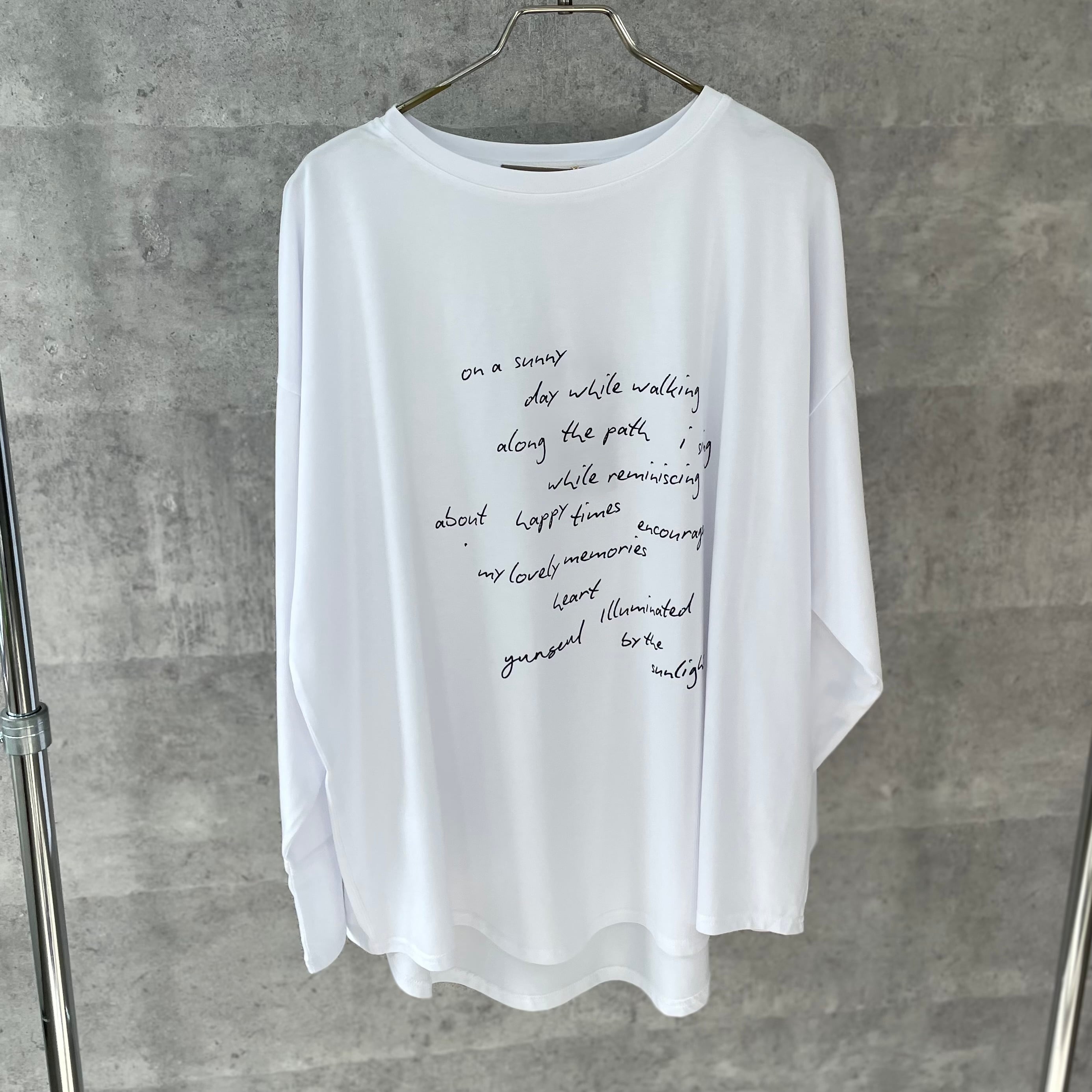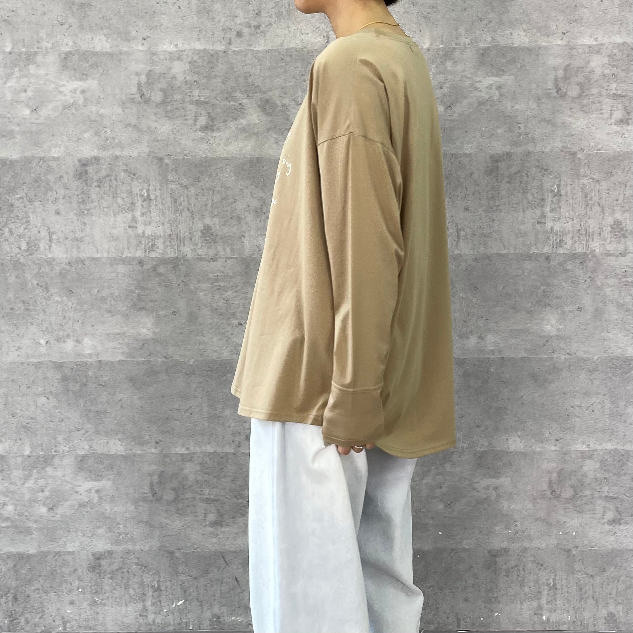 ゆったりルーズなシルエットに手書き風のロゴプリントを施したリラックス感のあるロンT