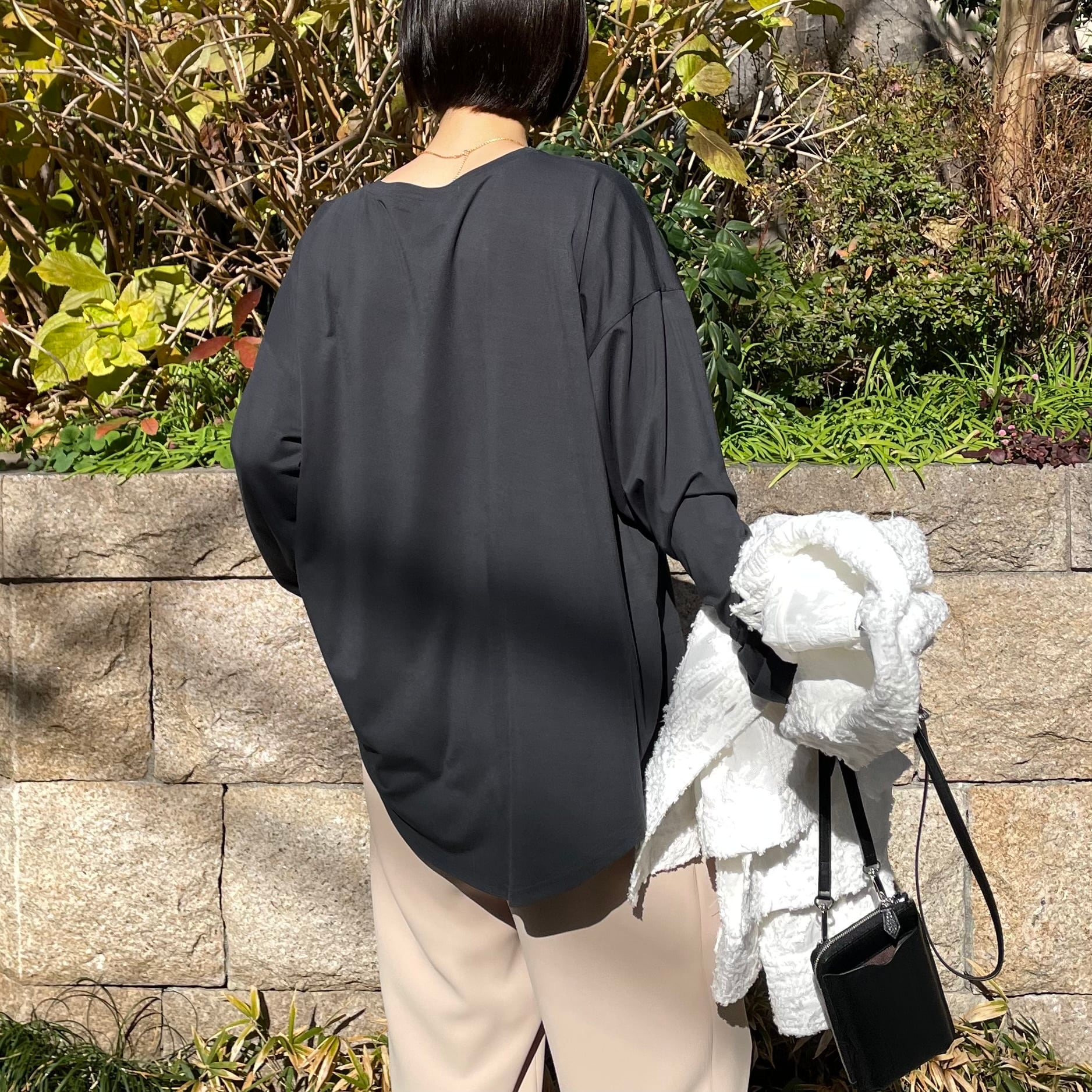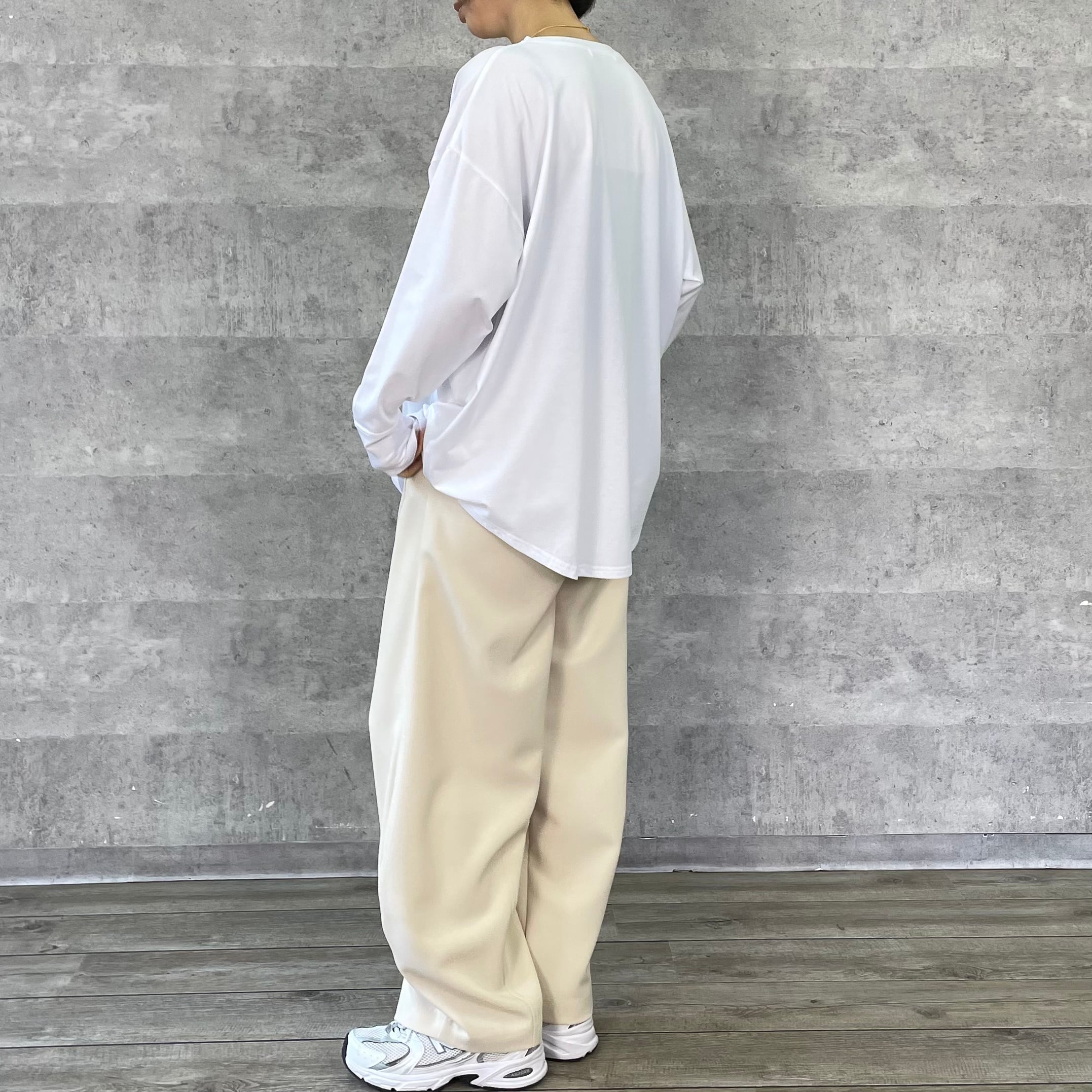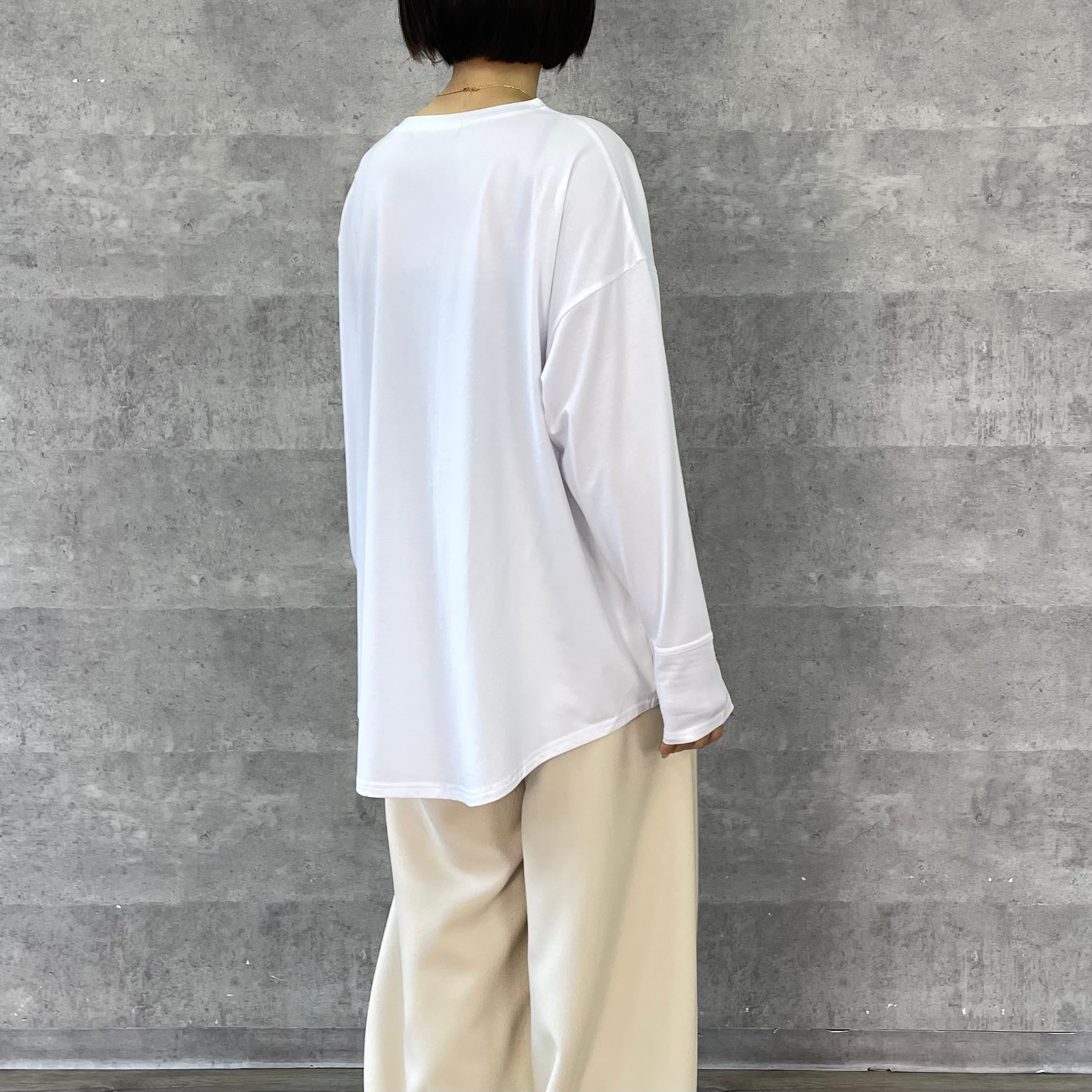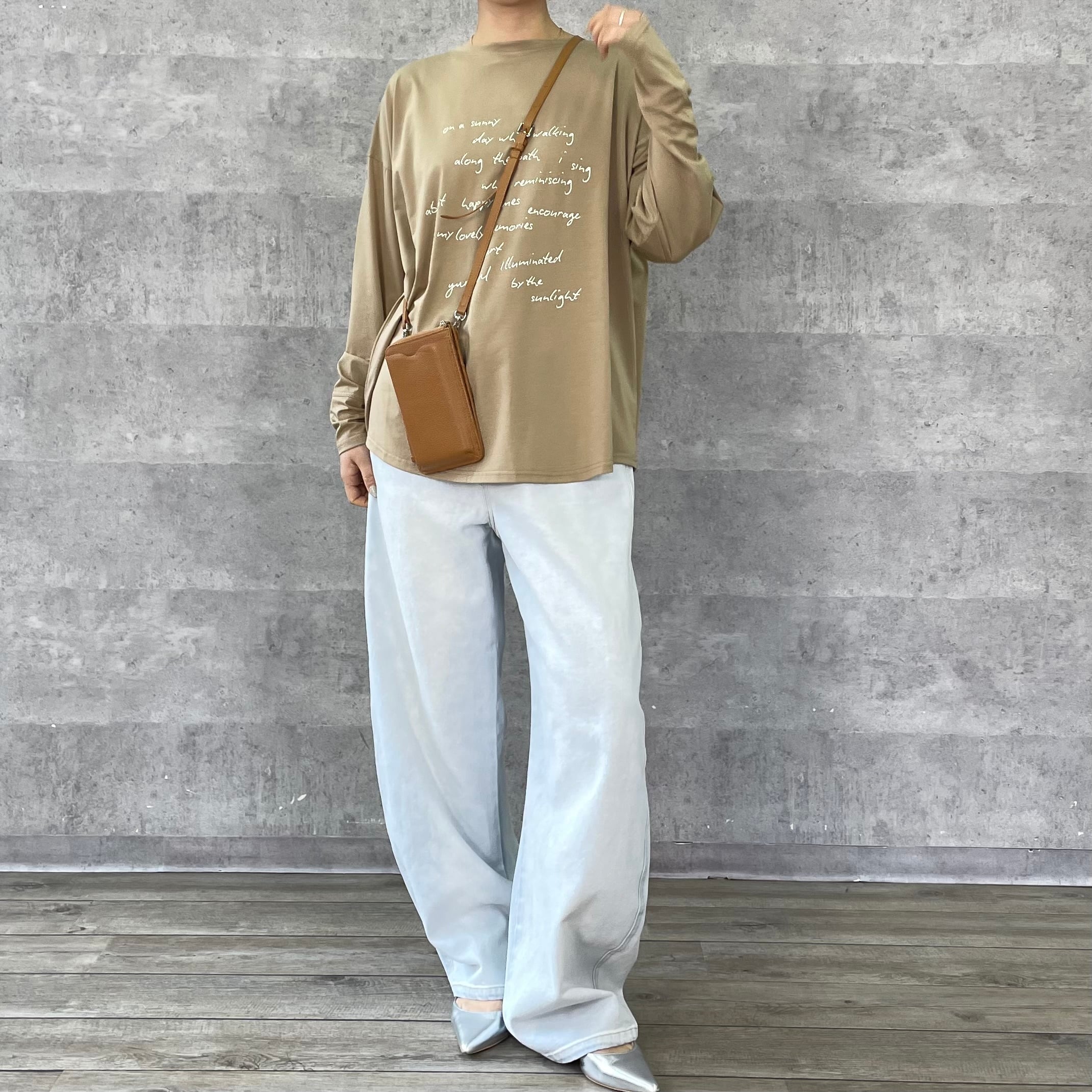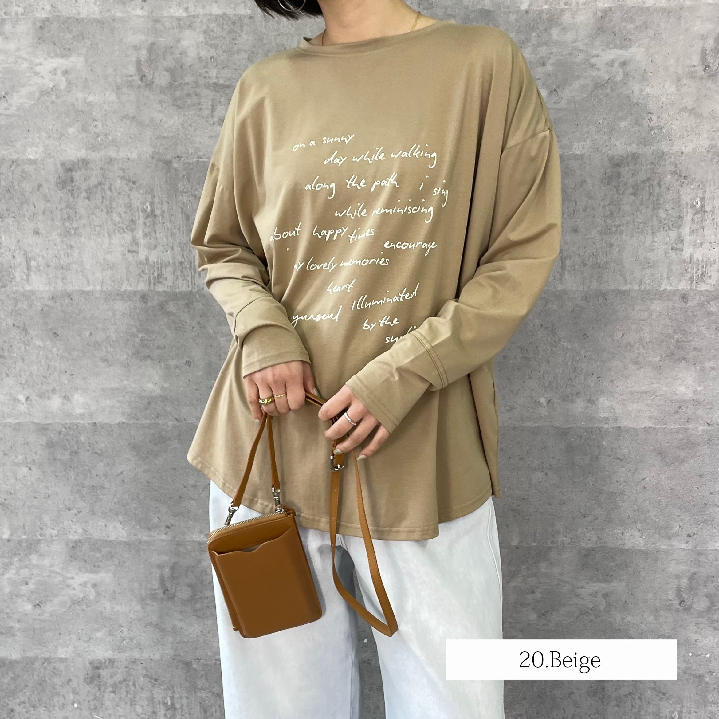 ゆったりルーズなシルエットに手書き風のロゴプリントを施したリラックス感のあるロンT