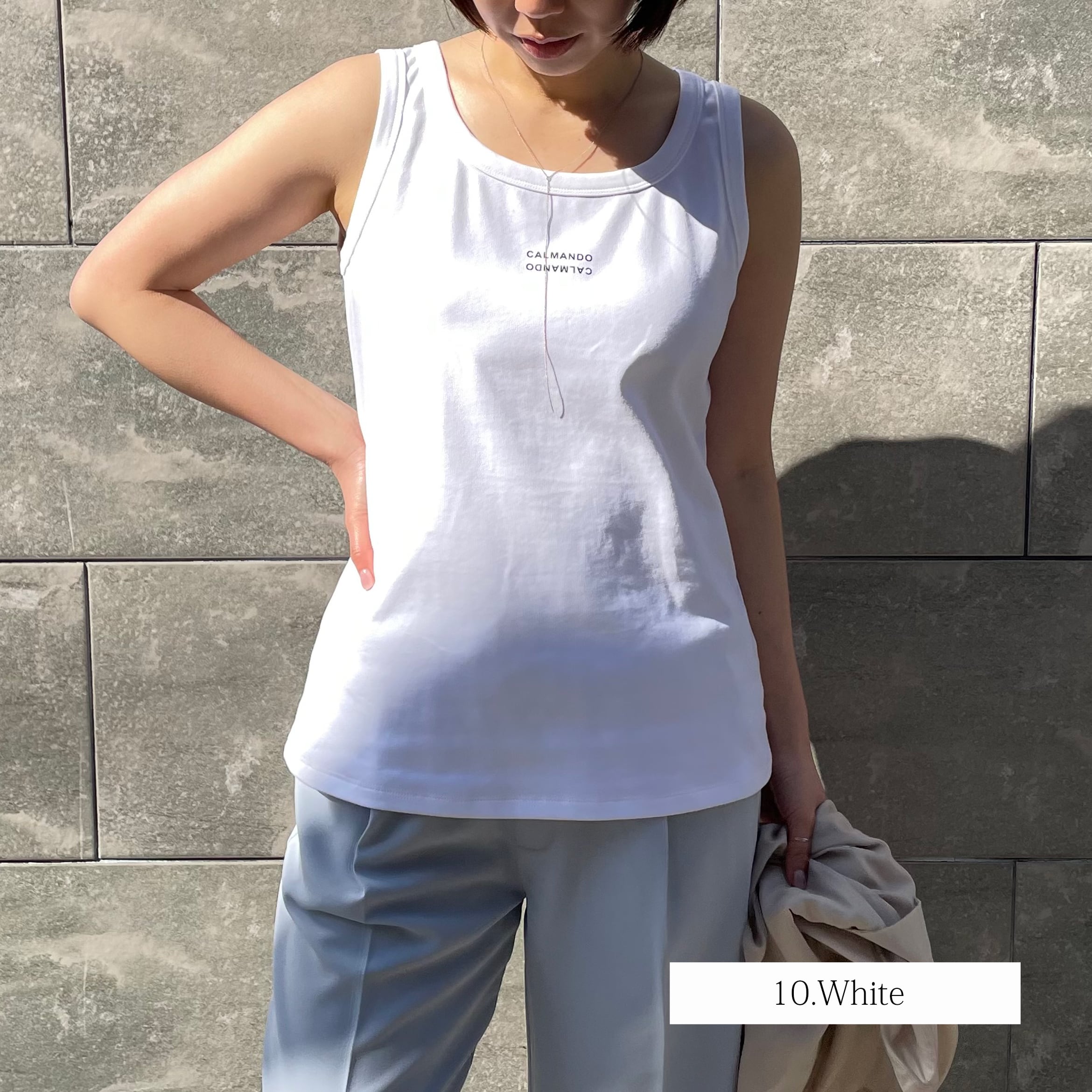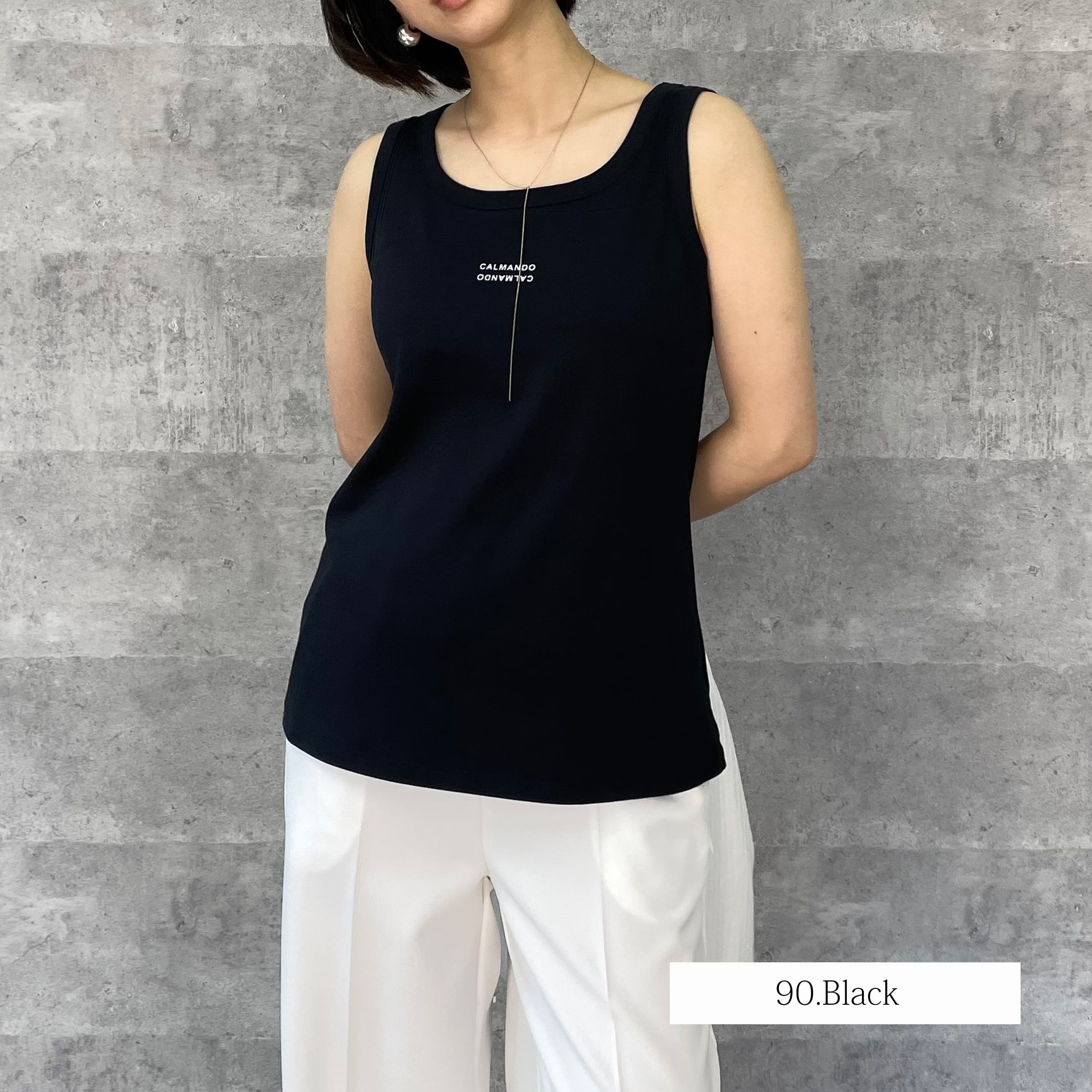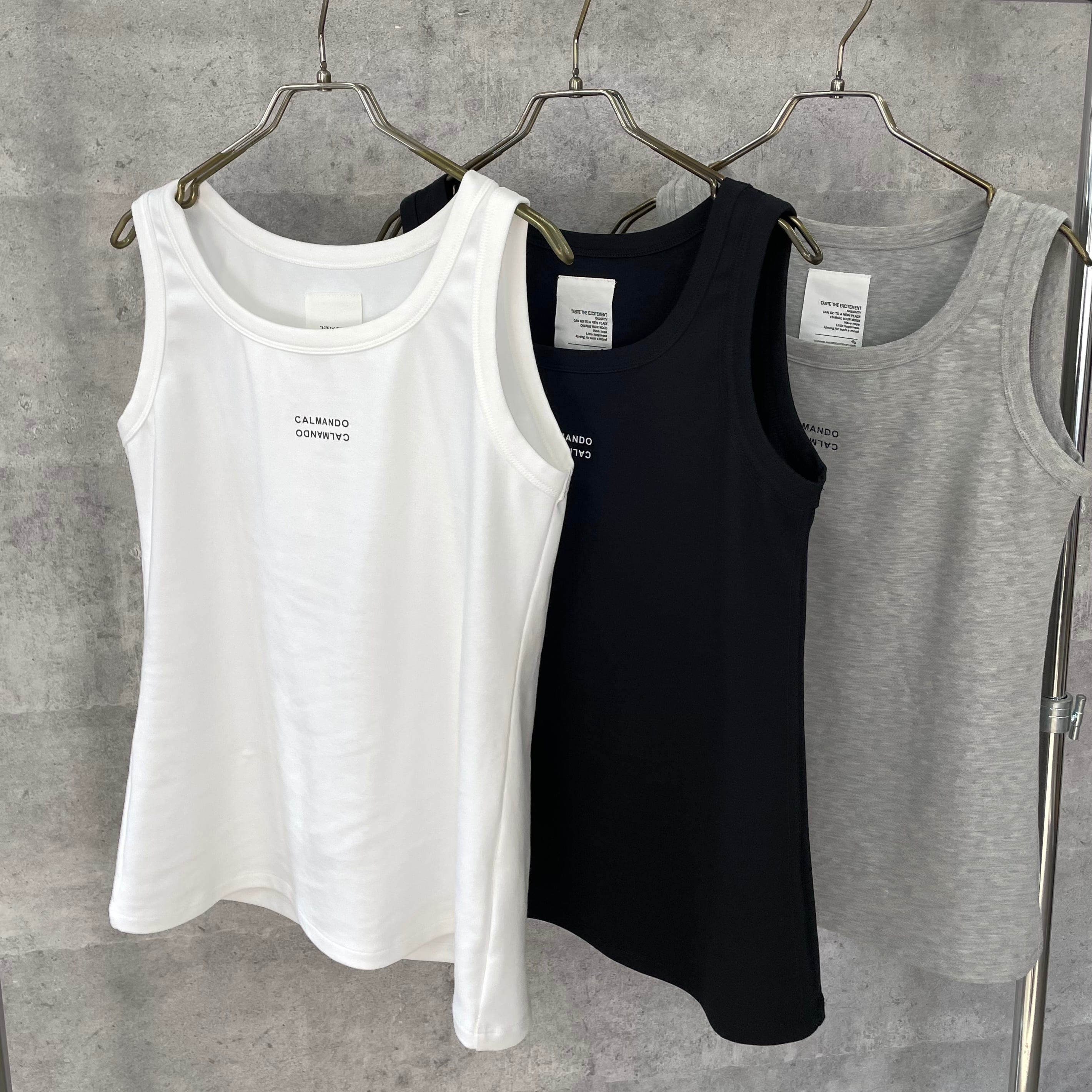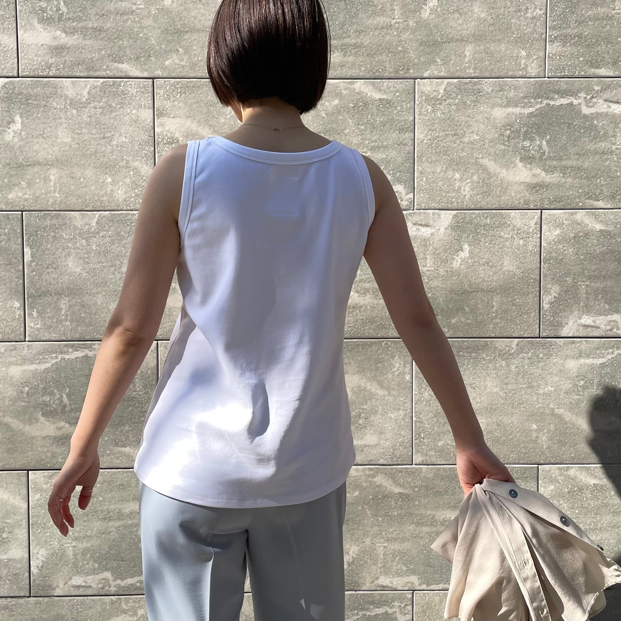 大人なミニロゴがさりげなくポイントになるミニマルデザインのタンクトップ。