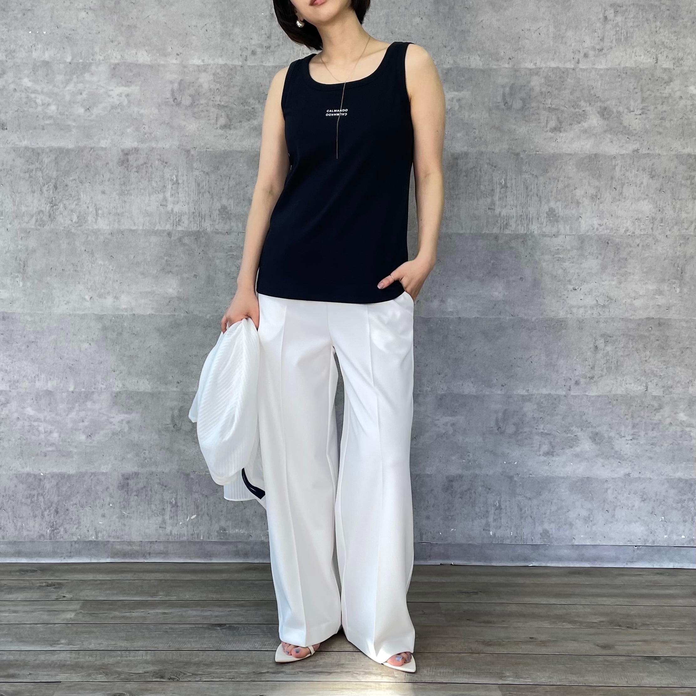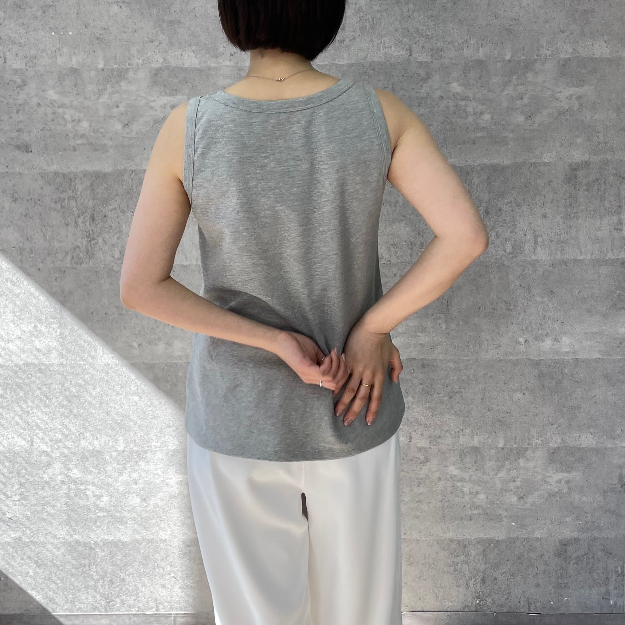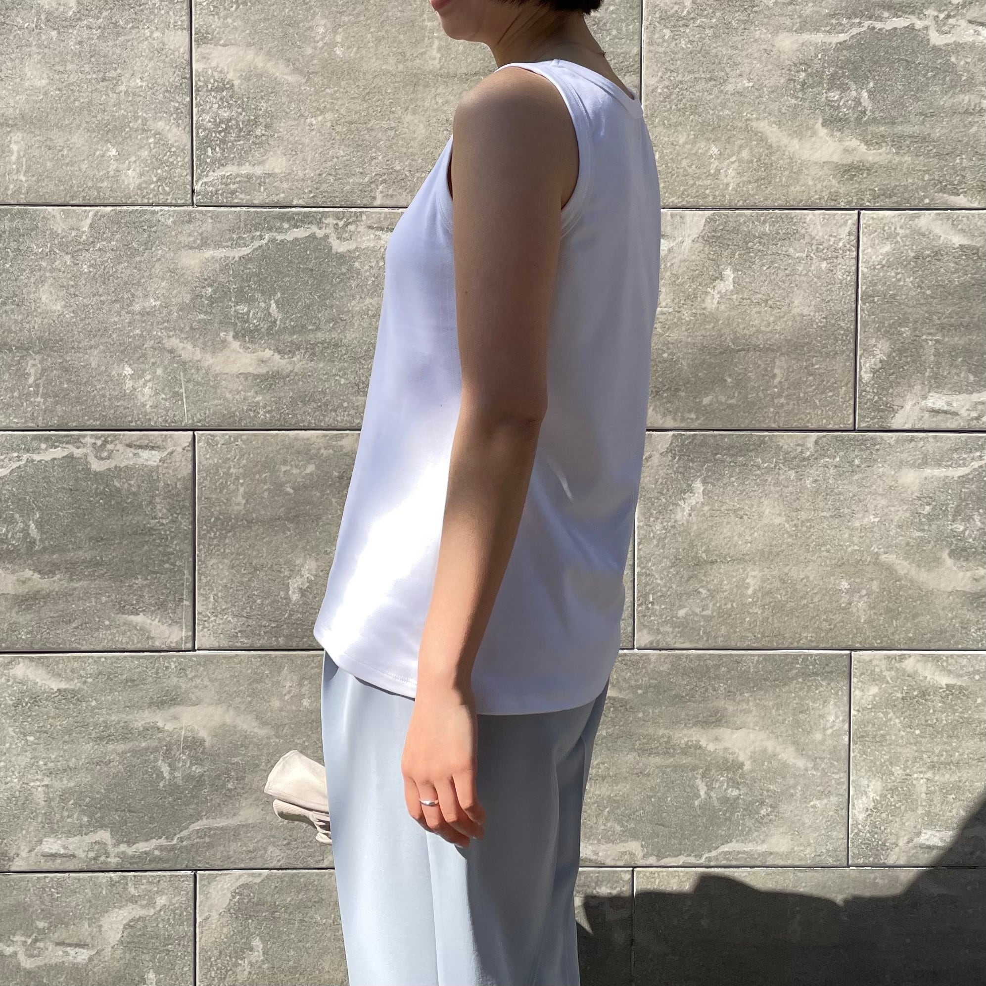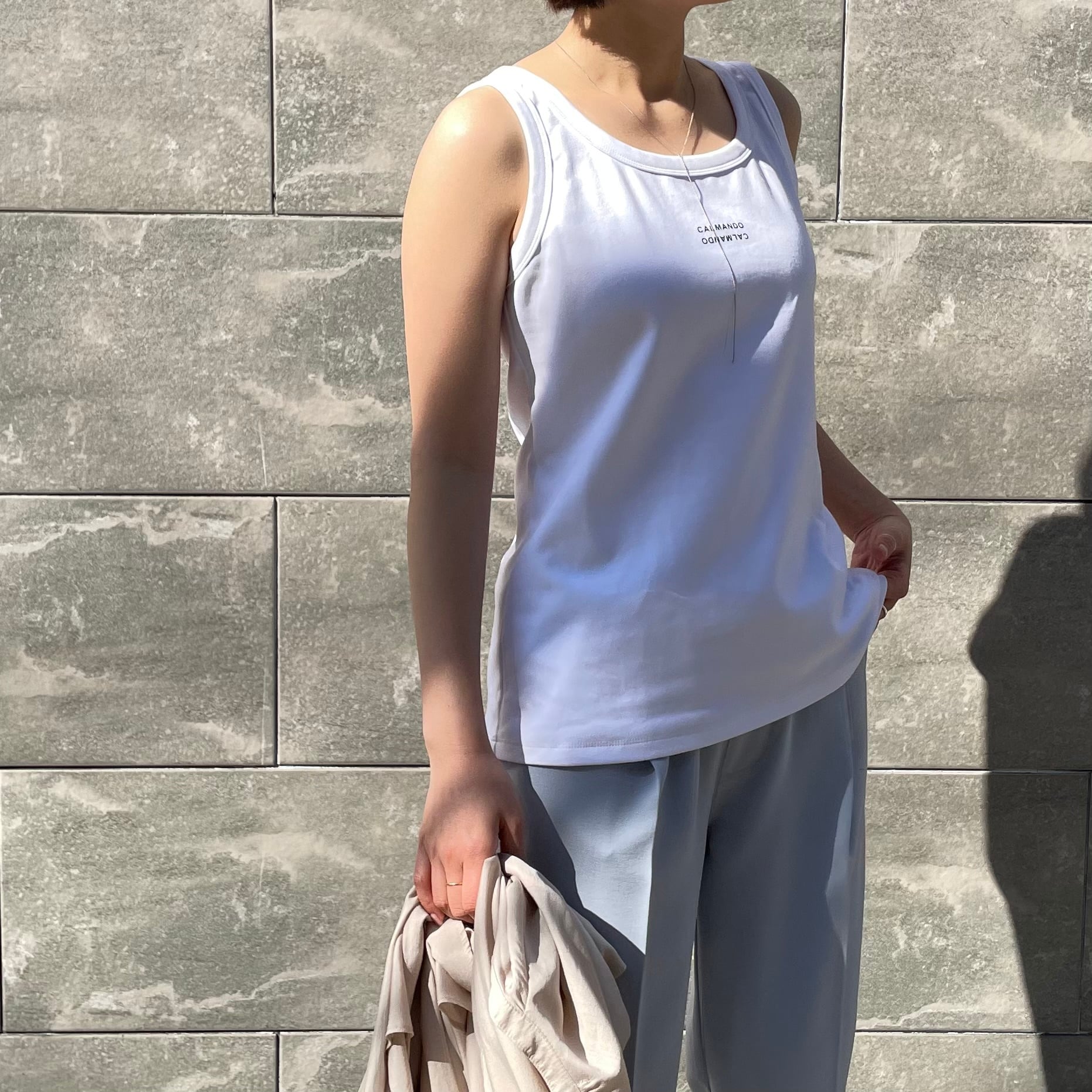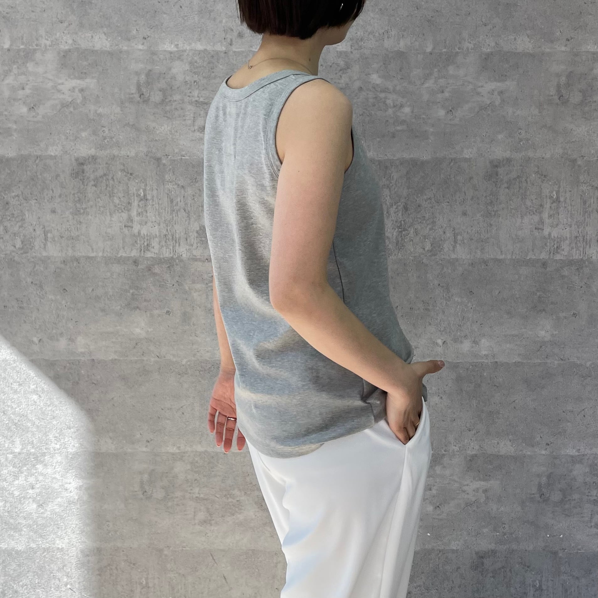 大人なミニロゴがさりげなくポイントになるミニマルデザインのタンクトップ。