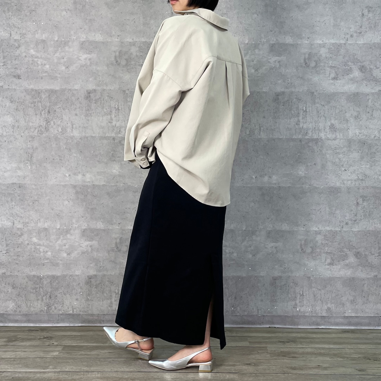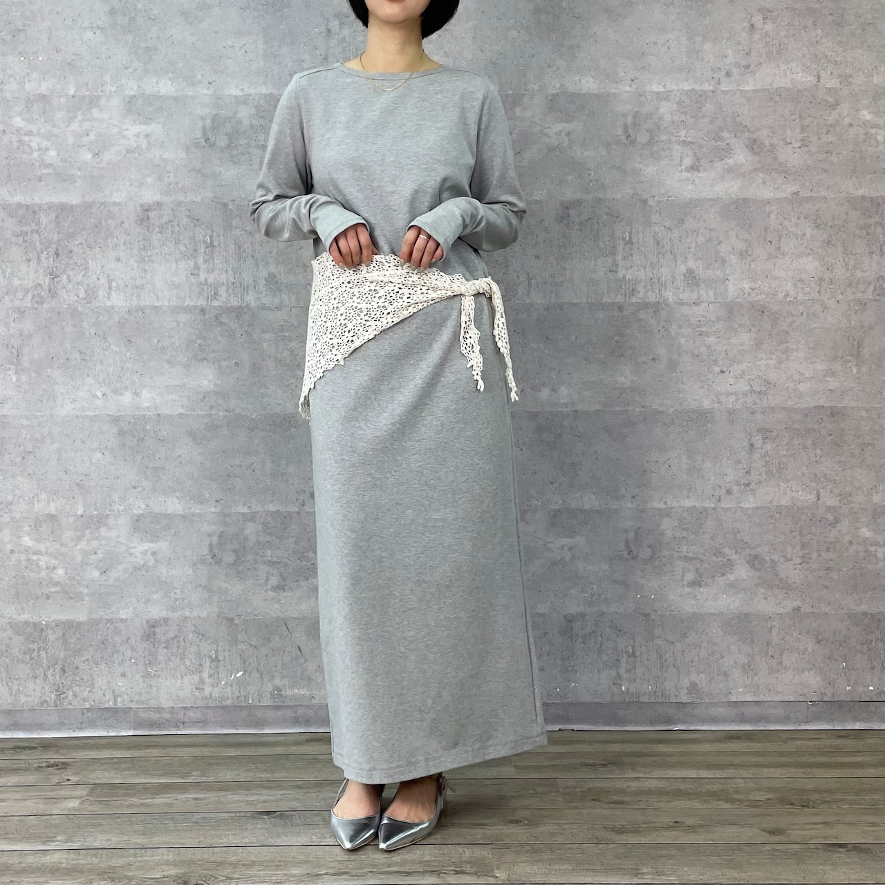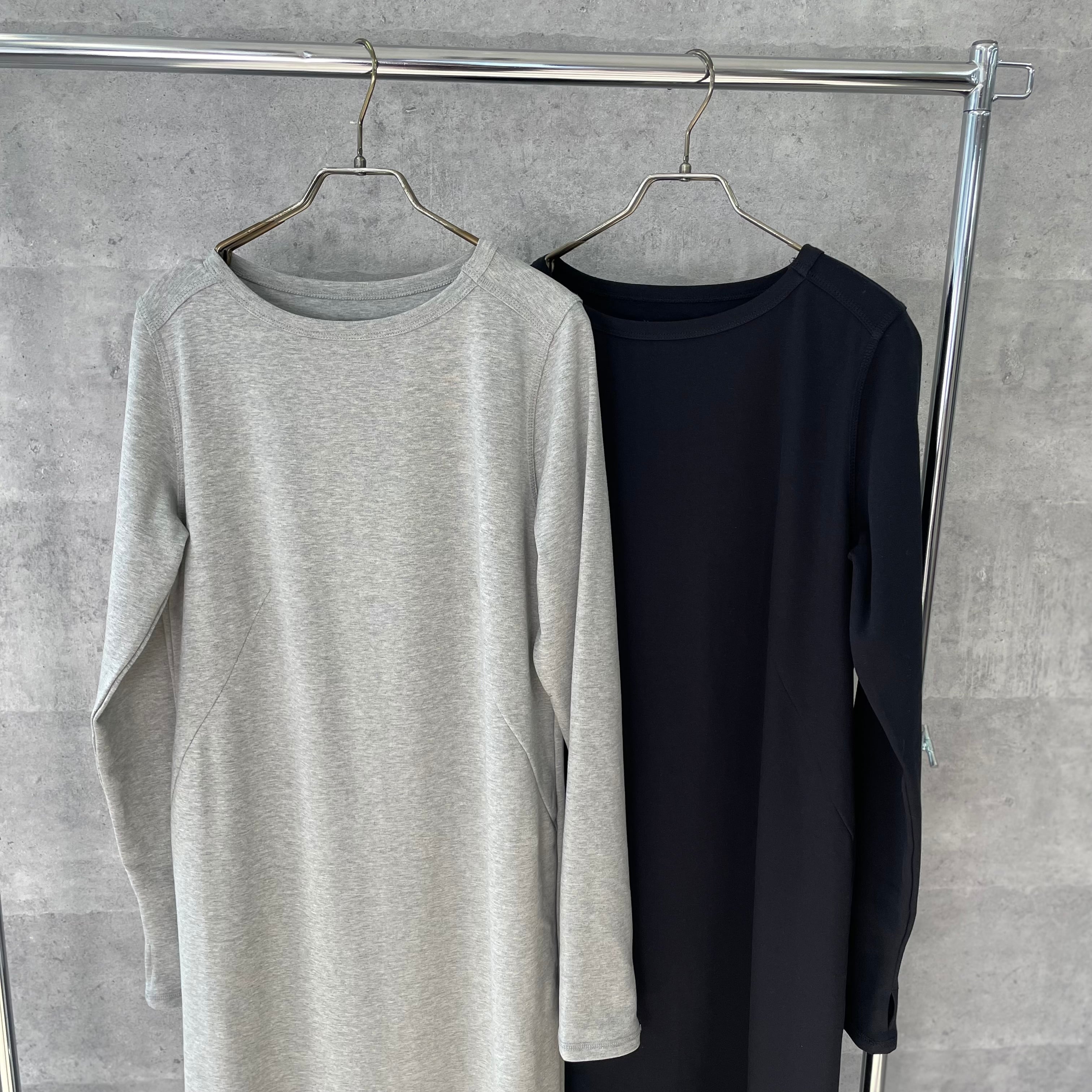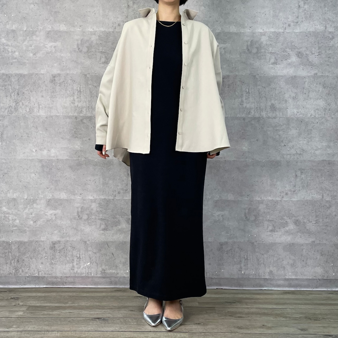 程良い肉感あるカットソー素材で体のラインを拾いにくく、Iラインシルエットが華奢に着映えします。