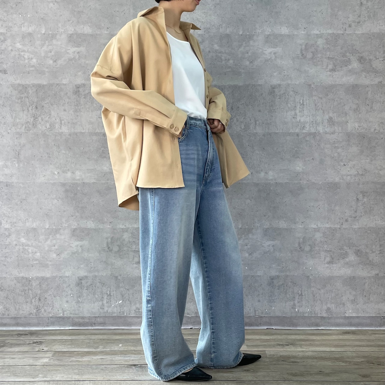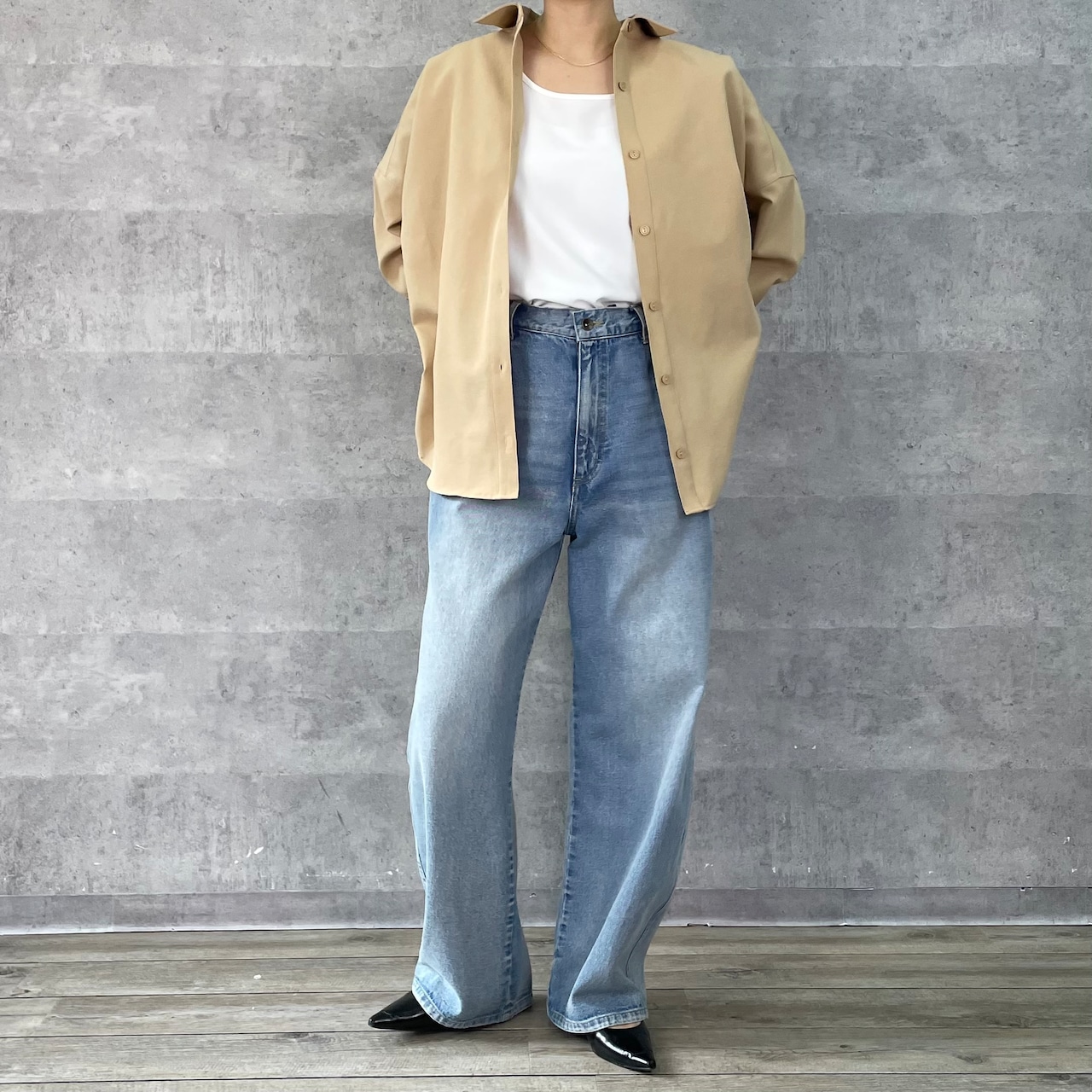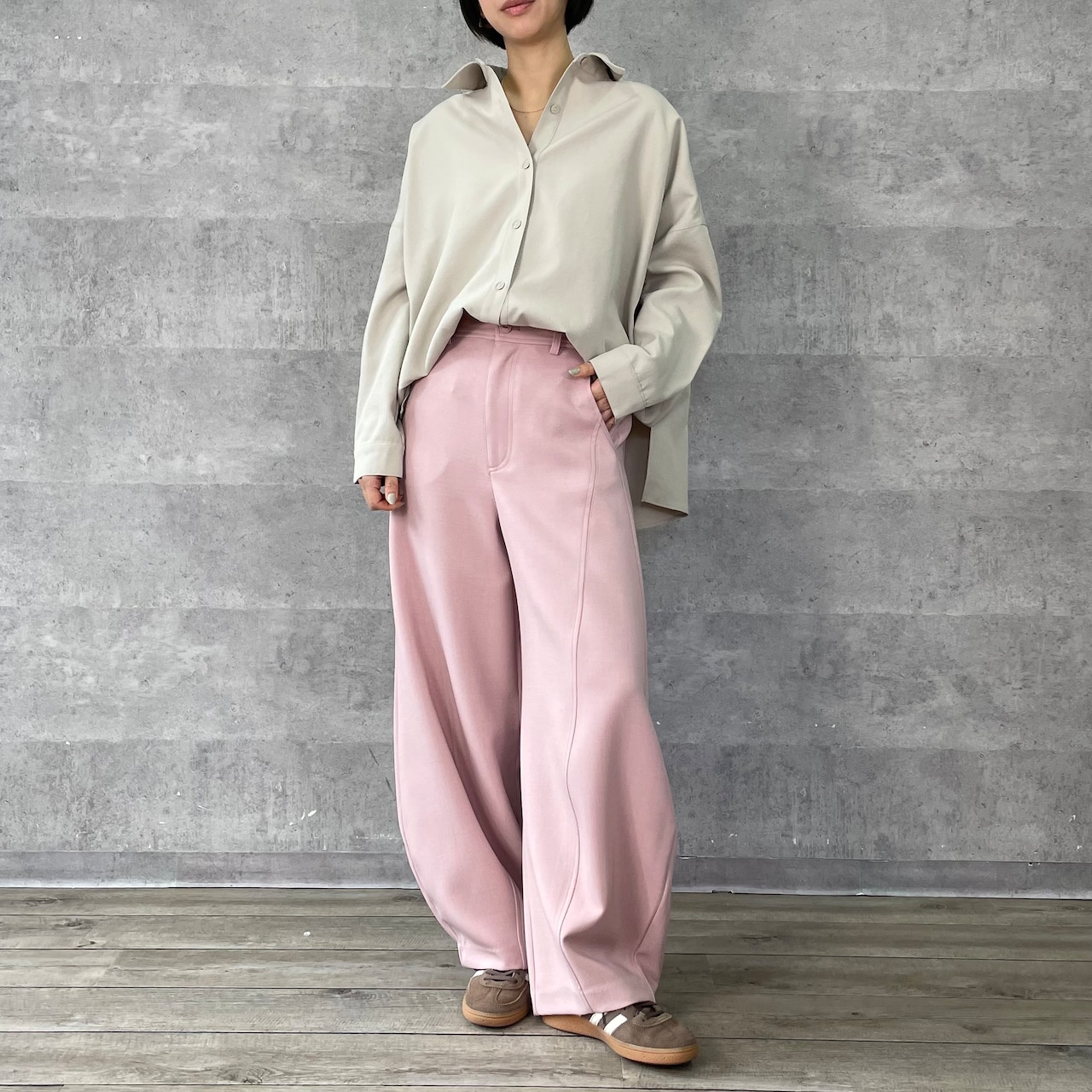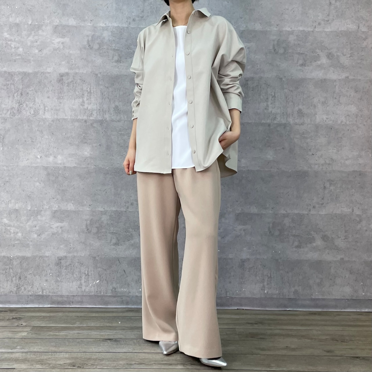 きれいめ素材で作っているのでフェミニンMIXのスタイリングもおすすめです
