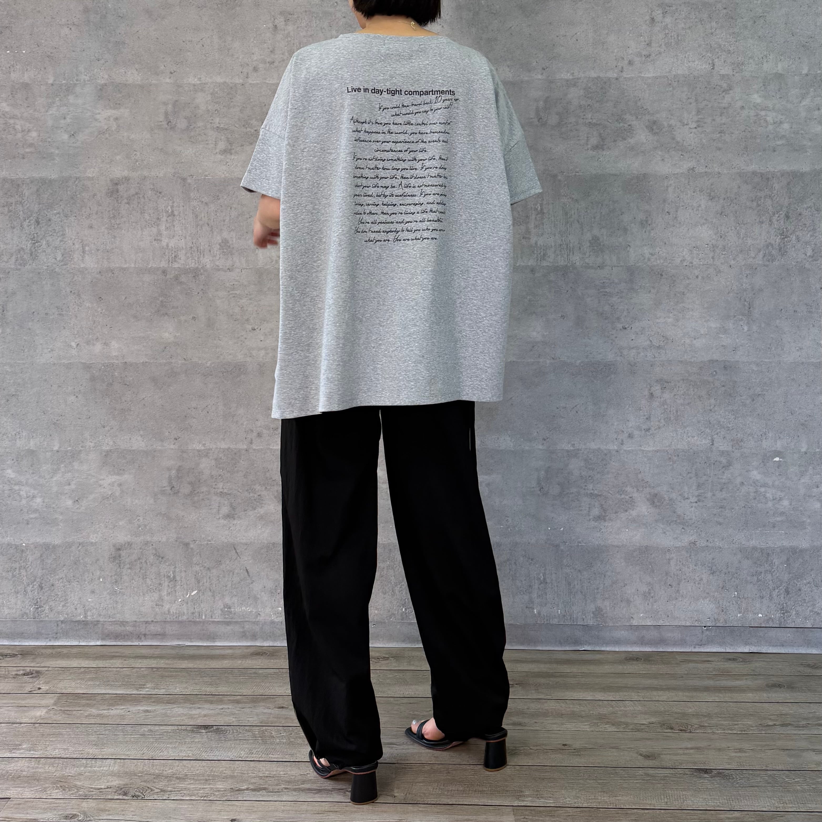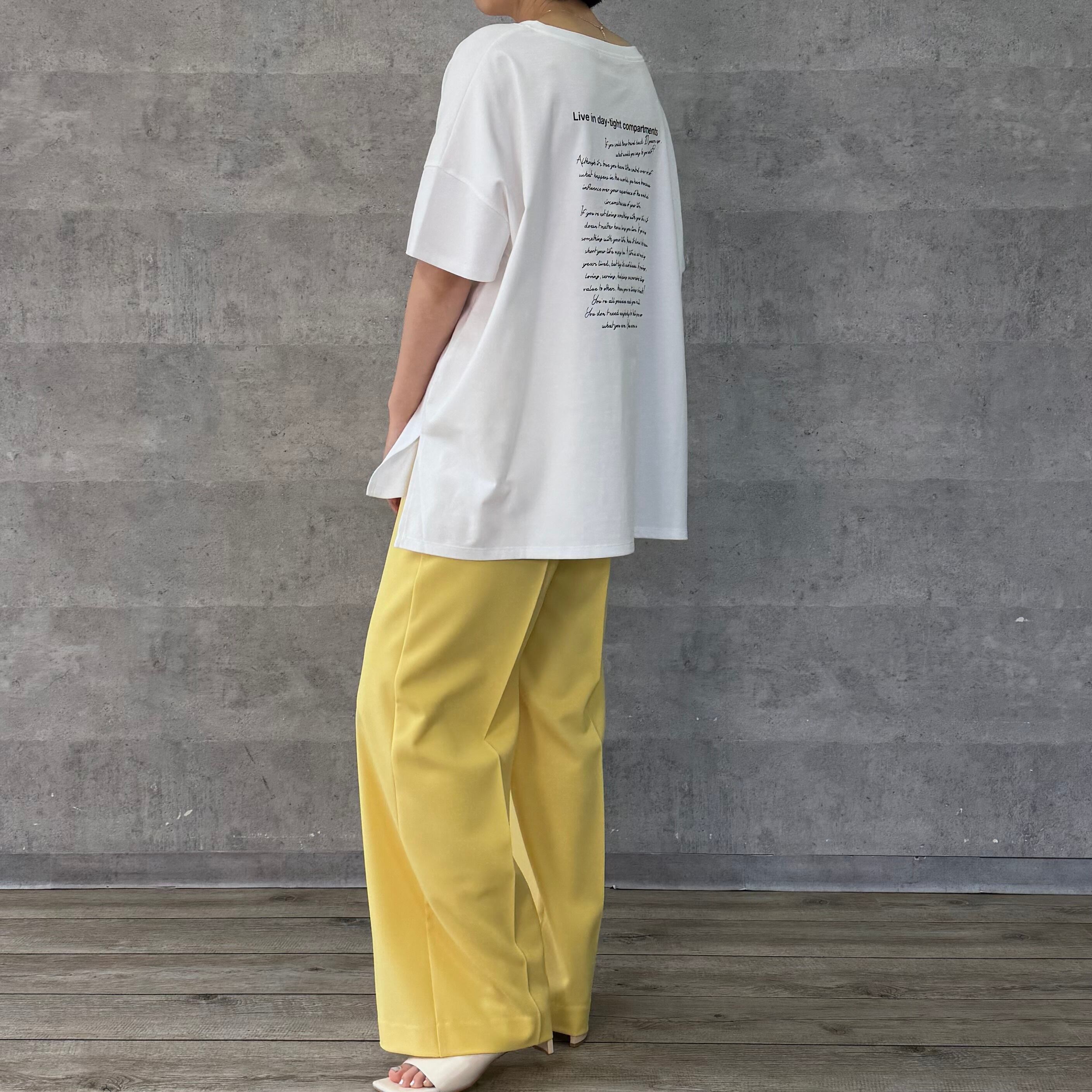 前後に施したロゴプリントが目をひくTシャツ。