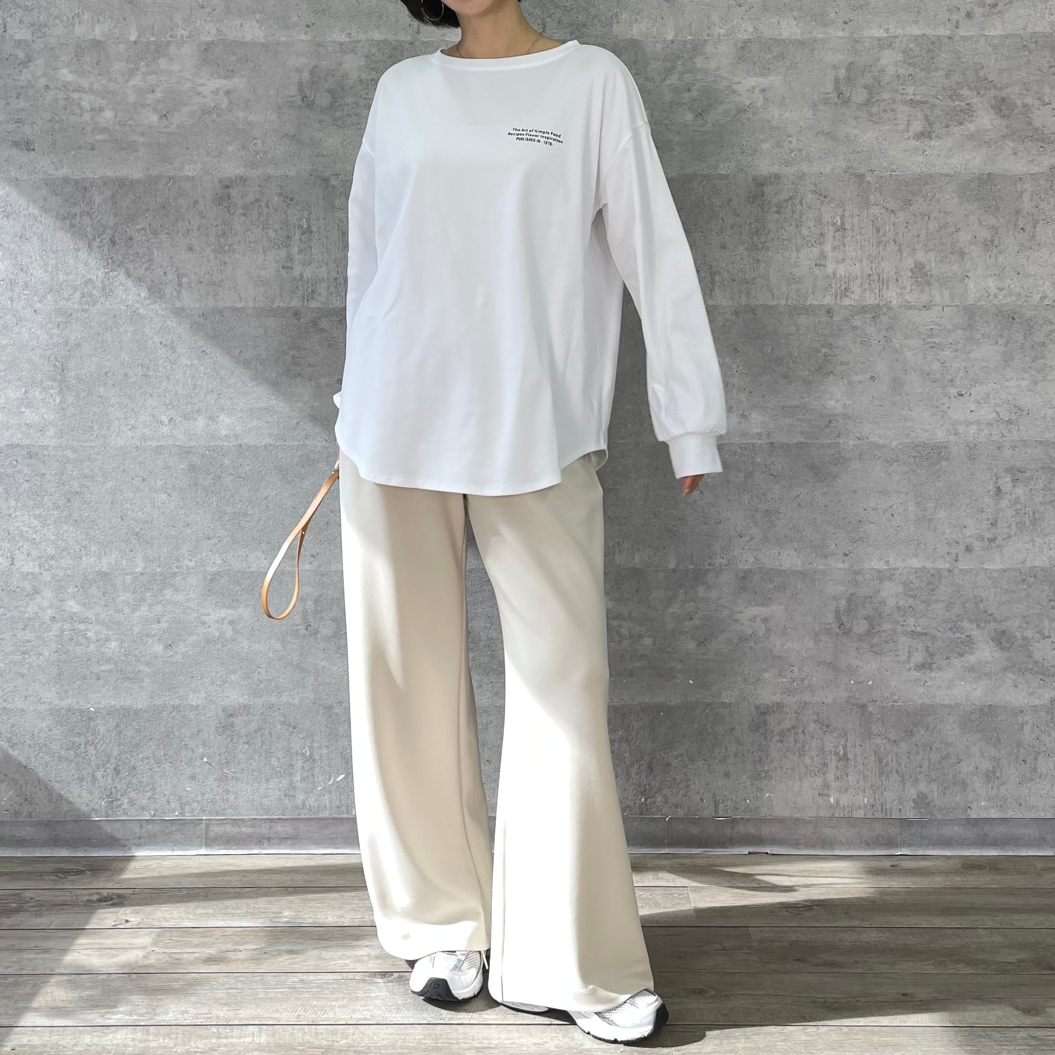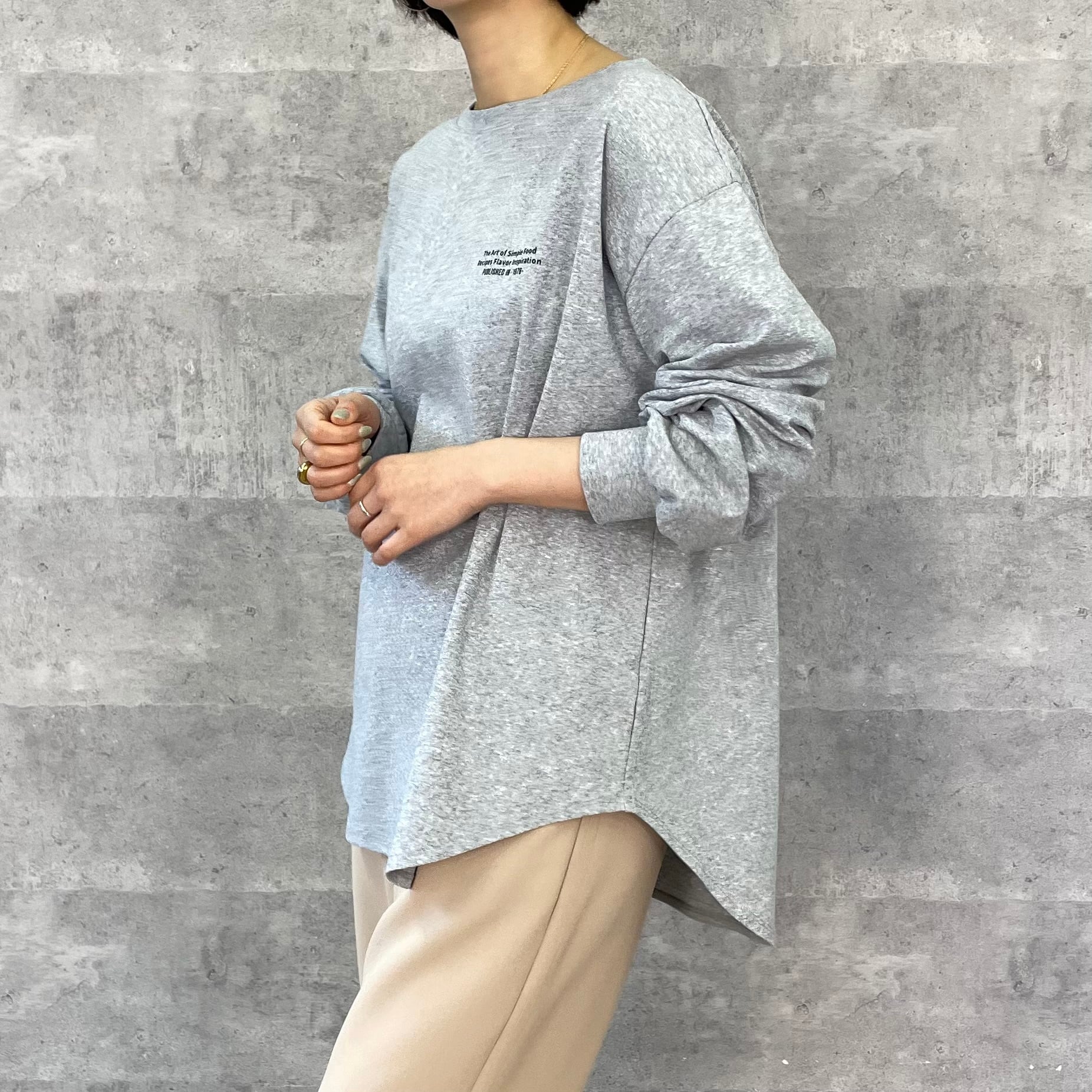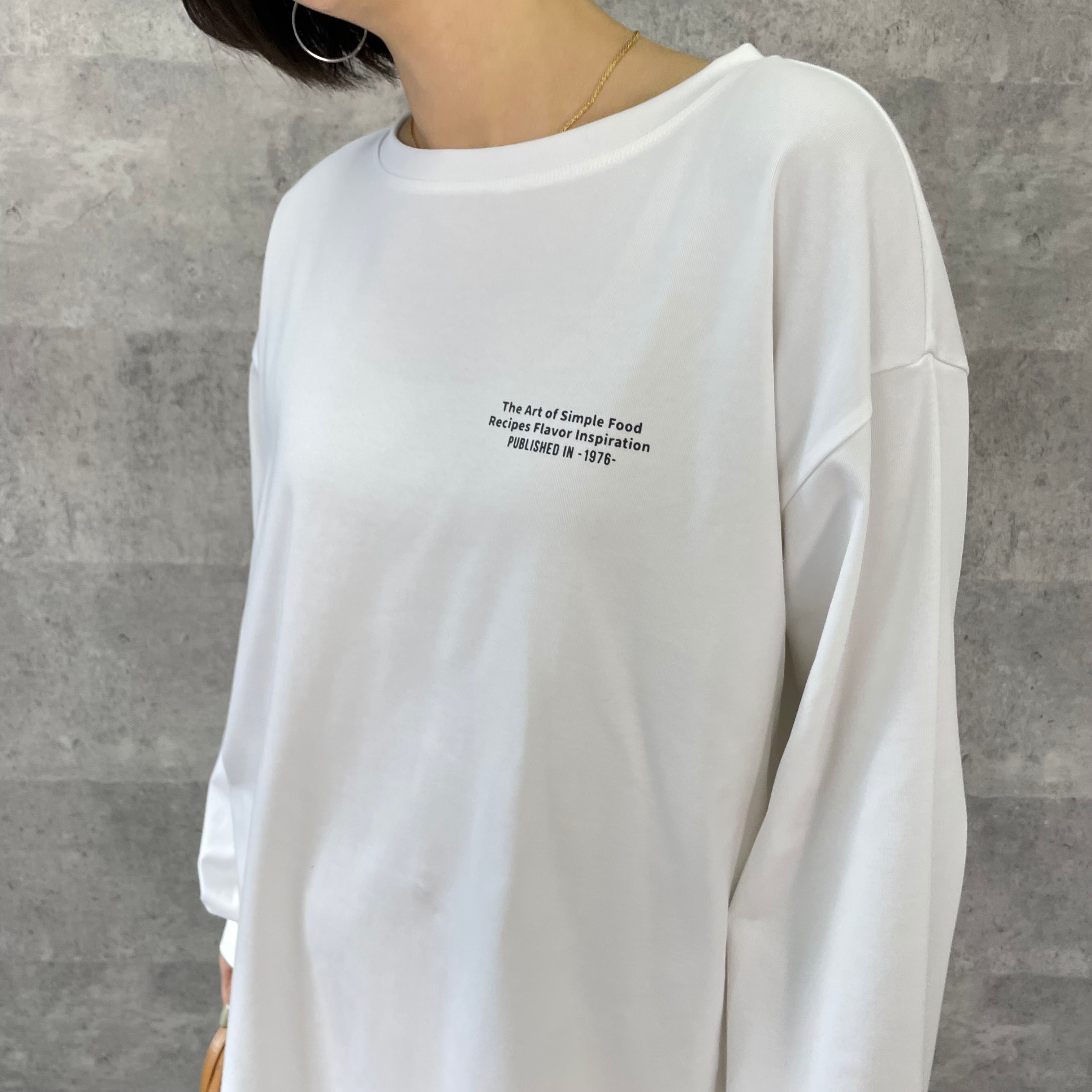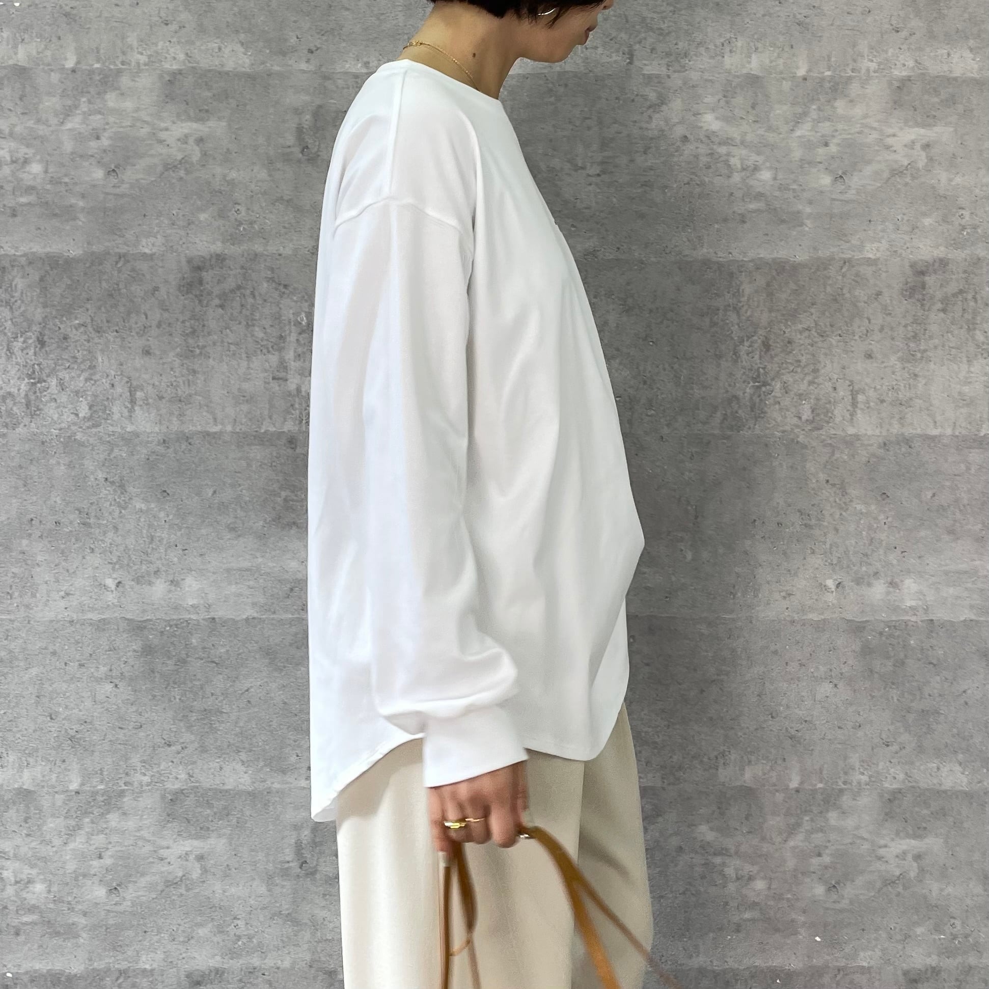 左胸に施したロゴプリントが今っぽい旬なデザインのロンT。