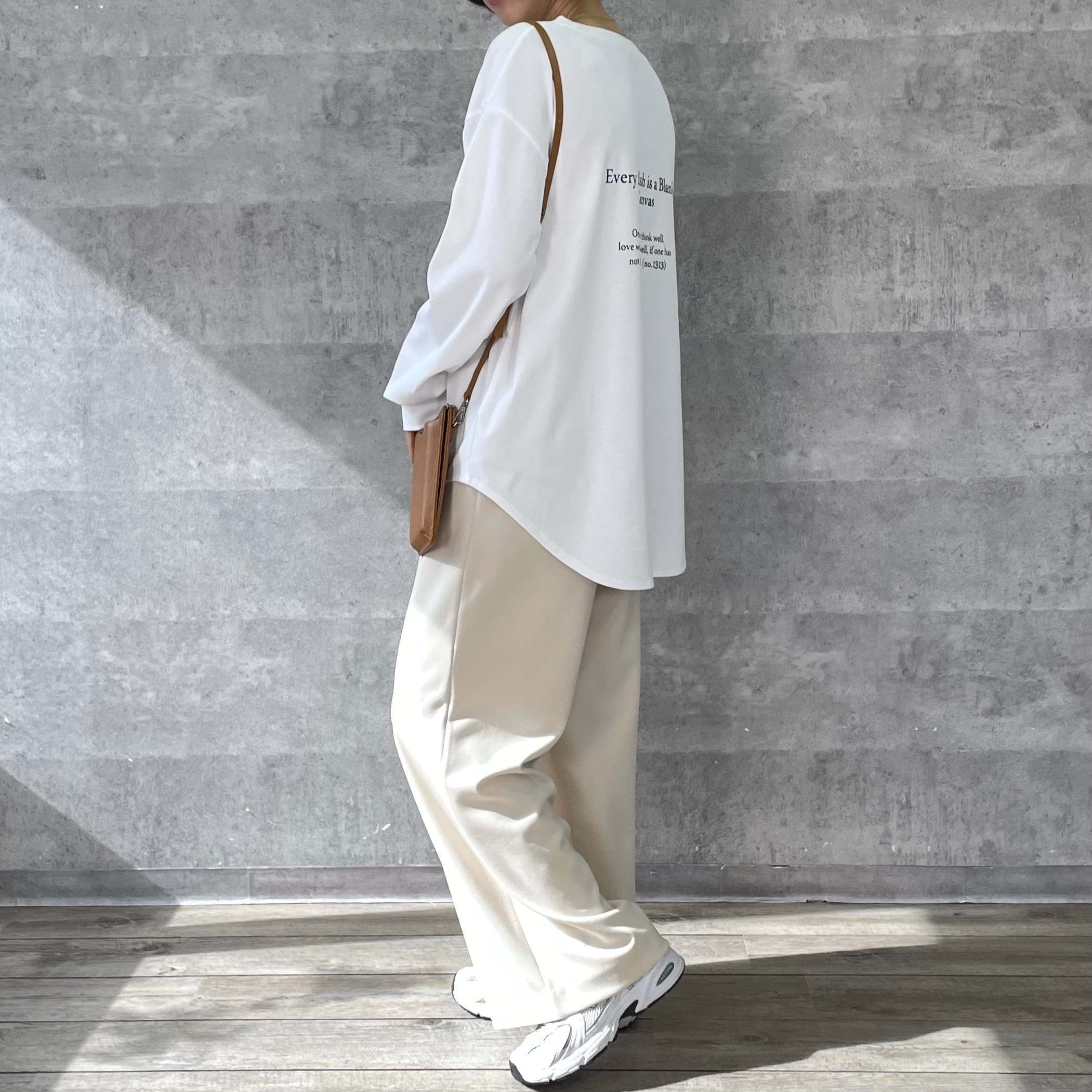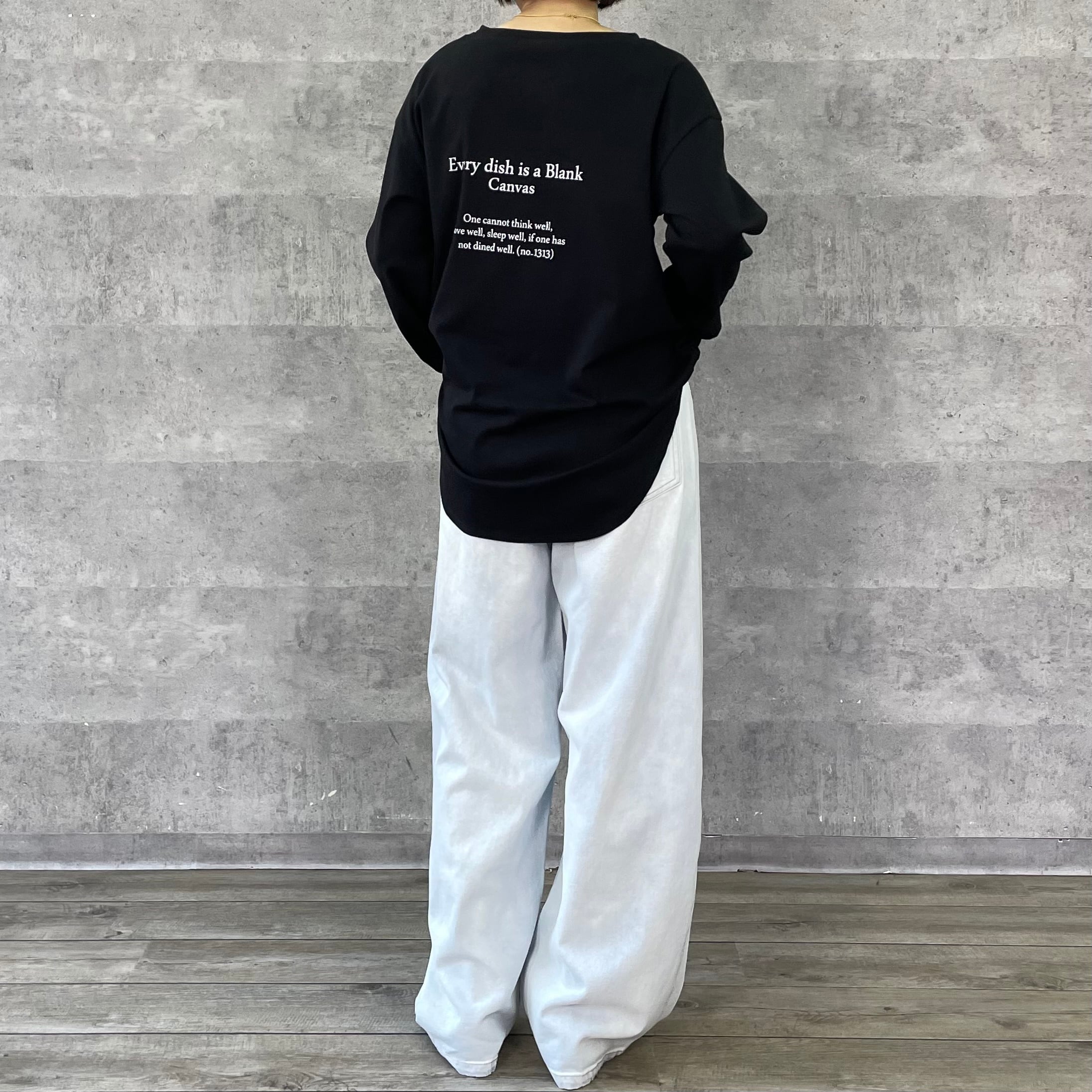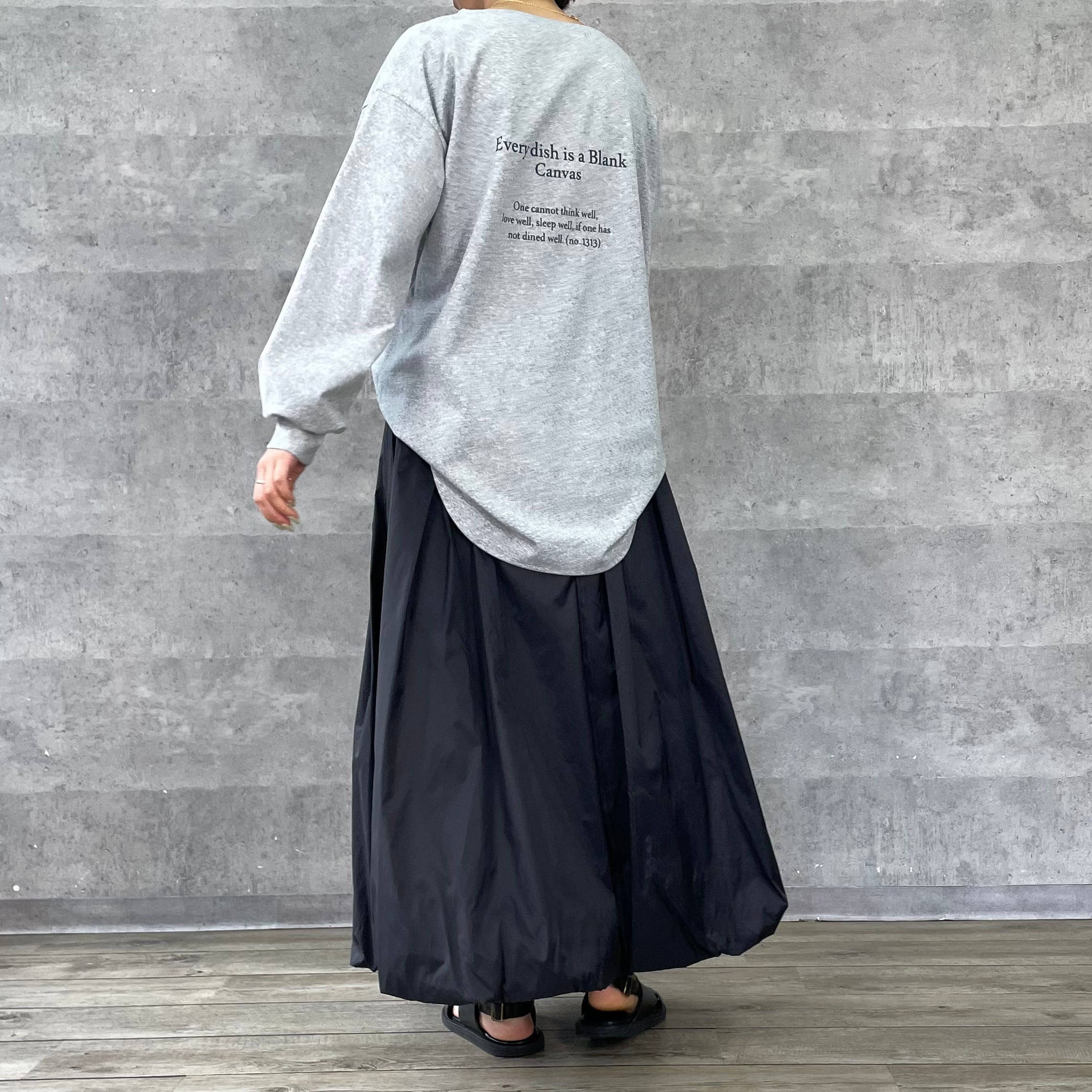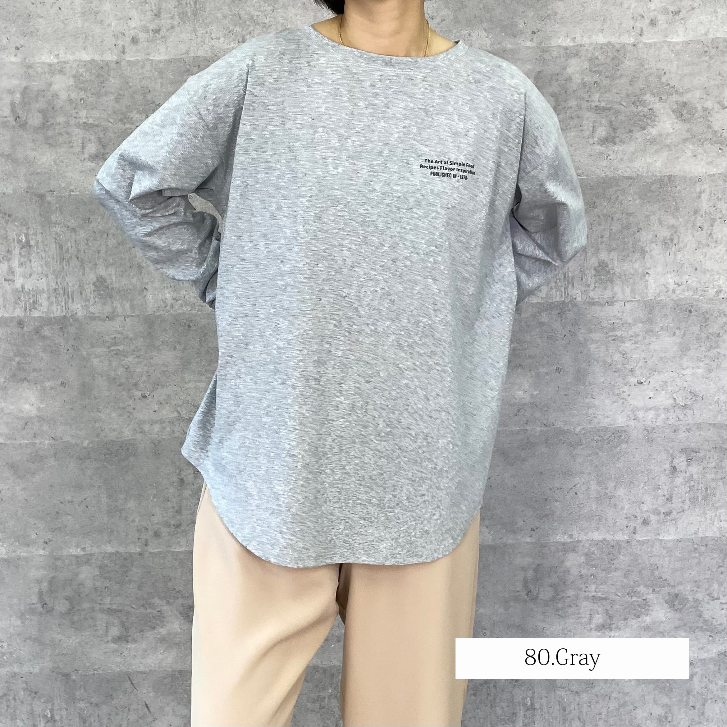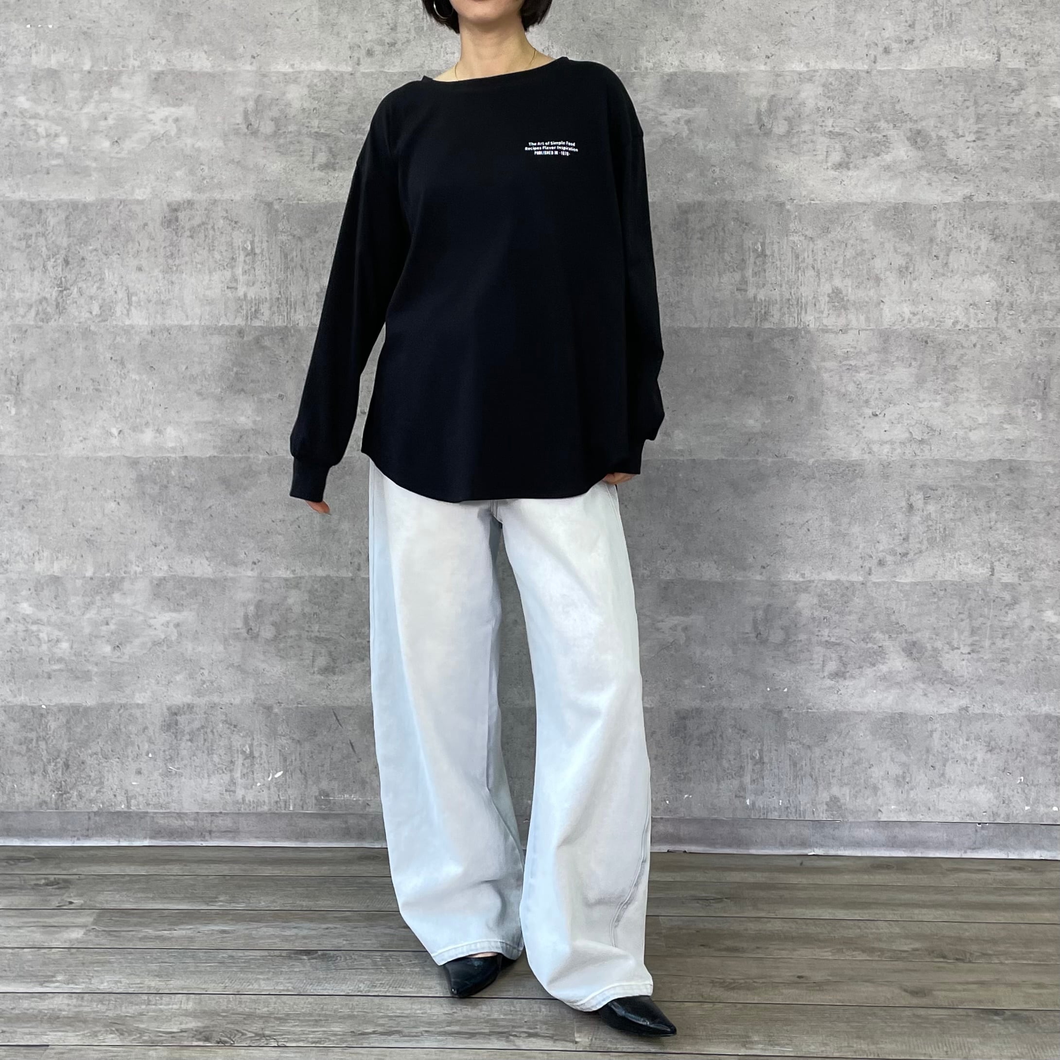 左胸に施したロゴプリントが今っぽい旬なデザインのロンT。
