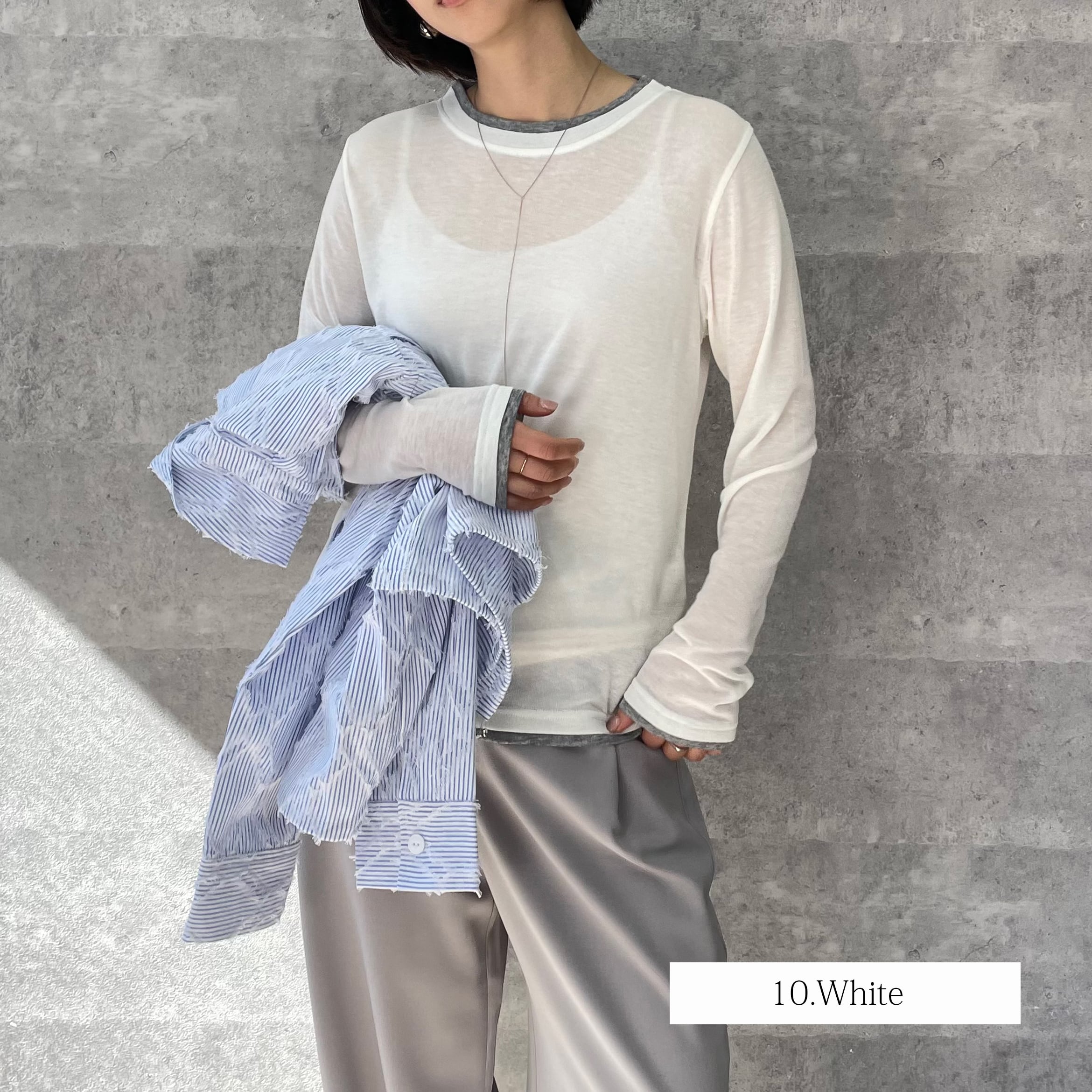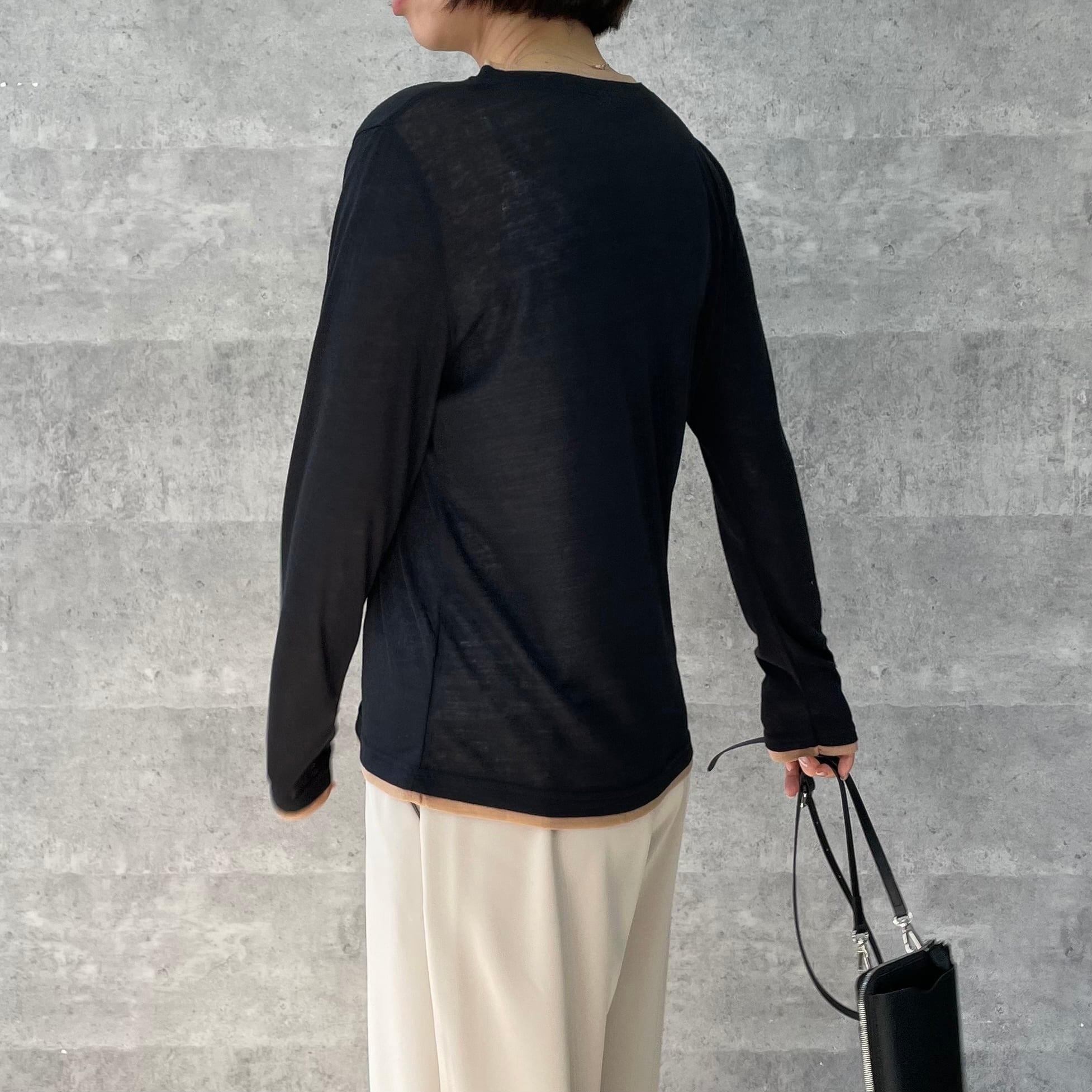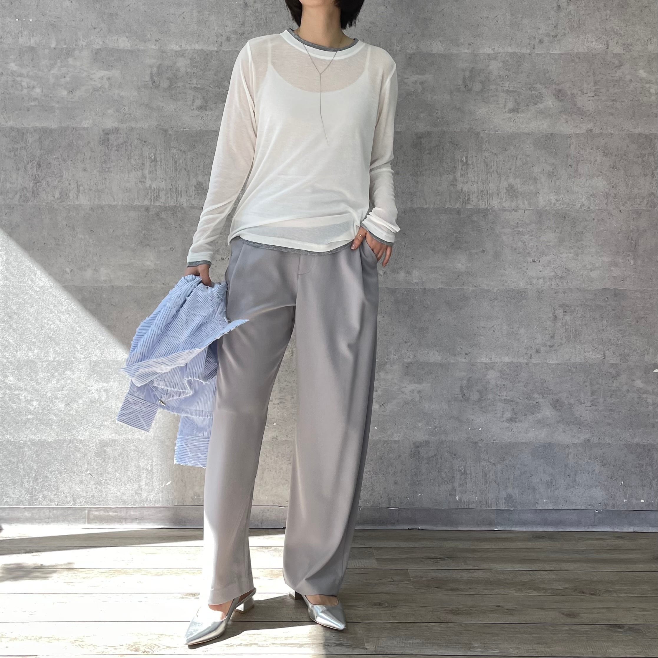 透け感のあるリブ地素材がトレンド感あるロンT