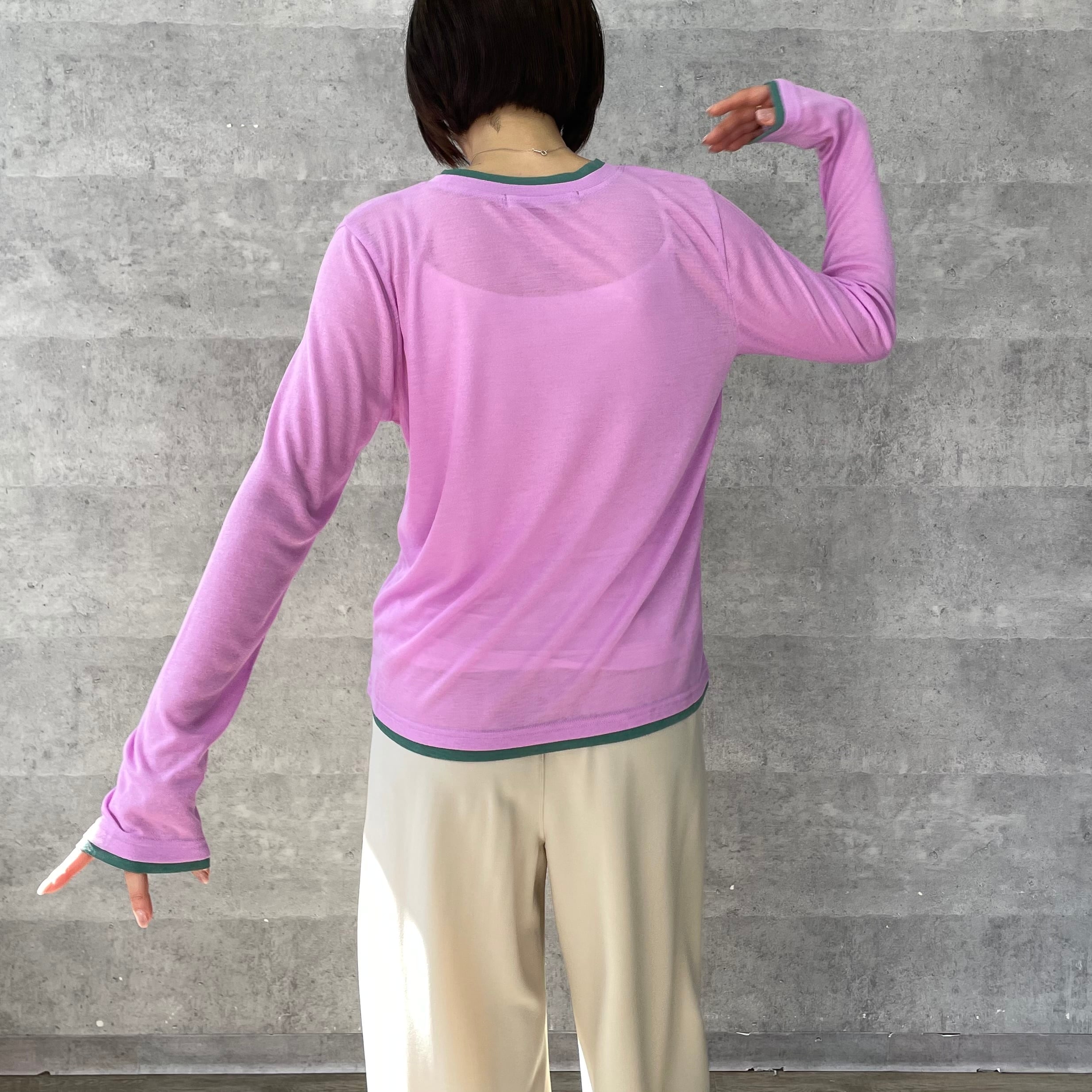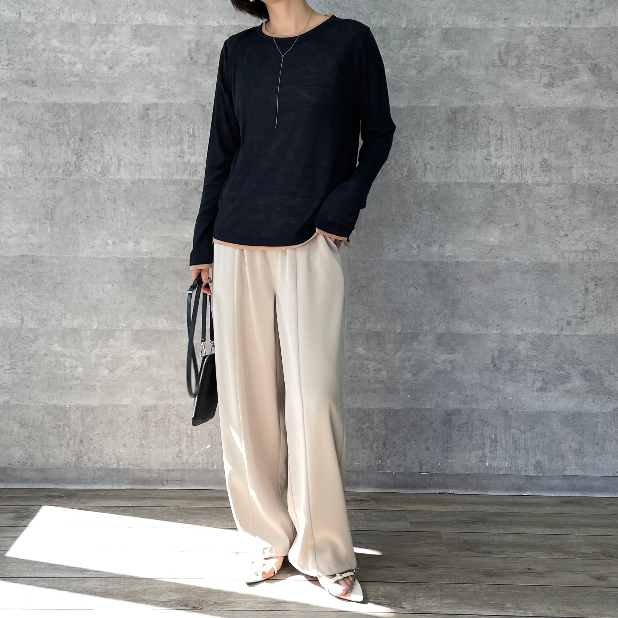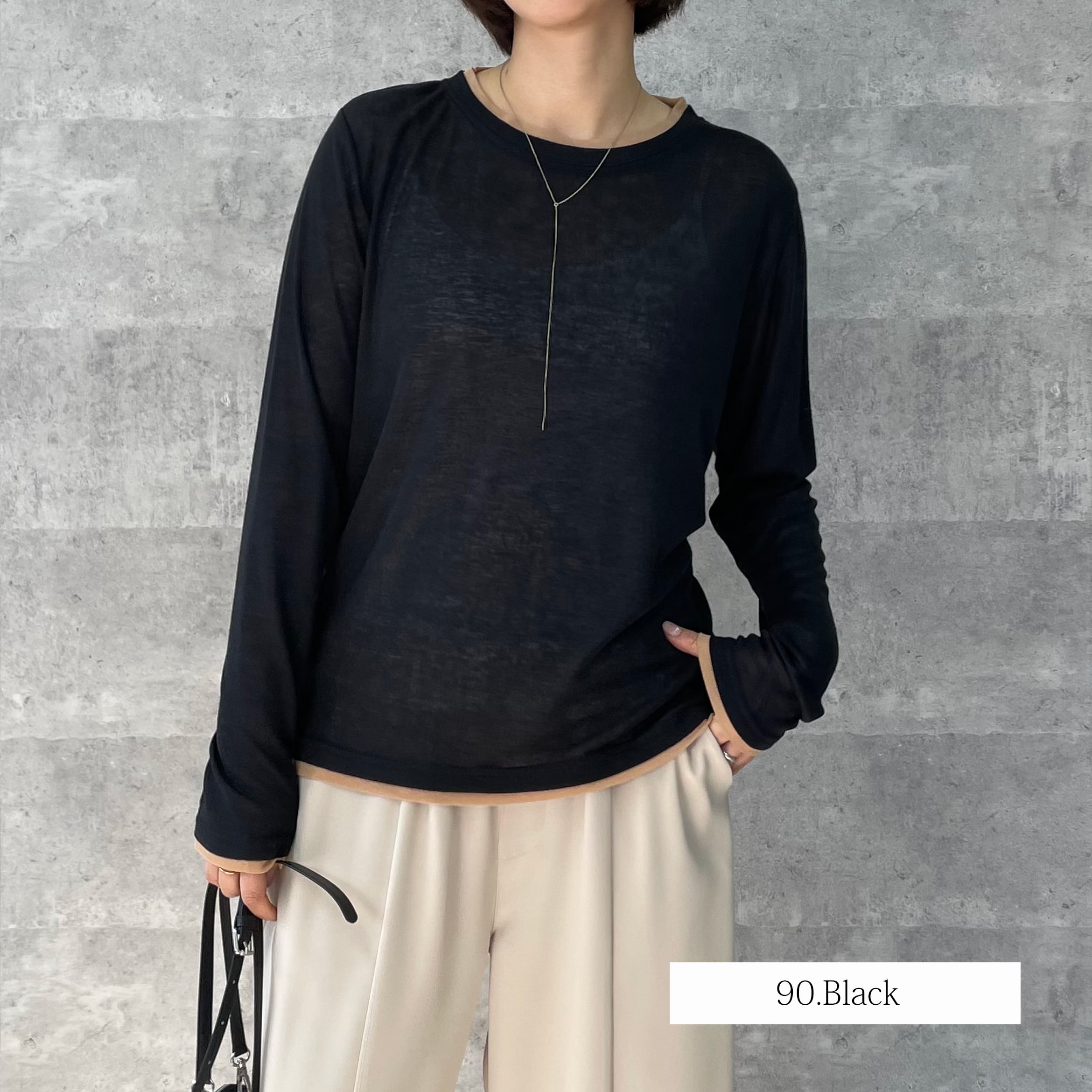 透け感のあるリブ地素材がトレンド感あるロンT
