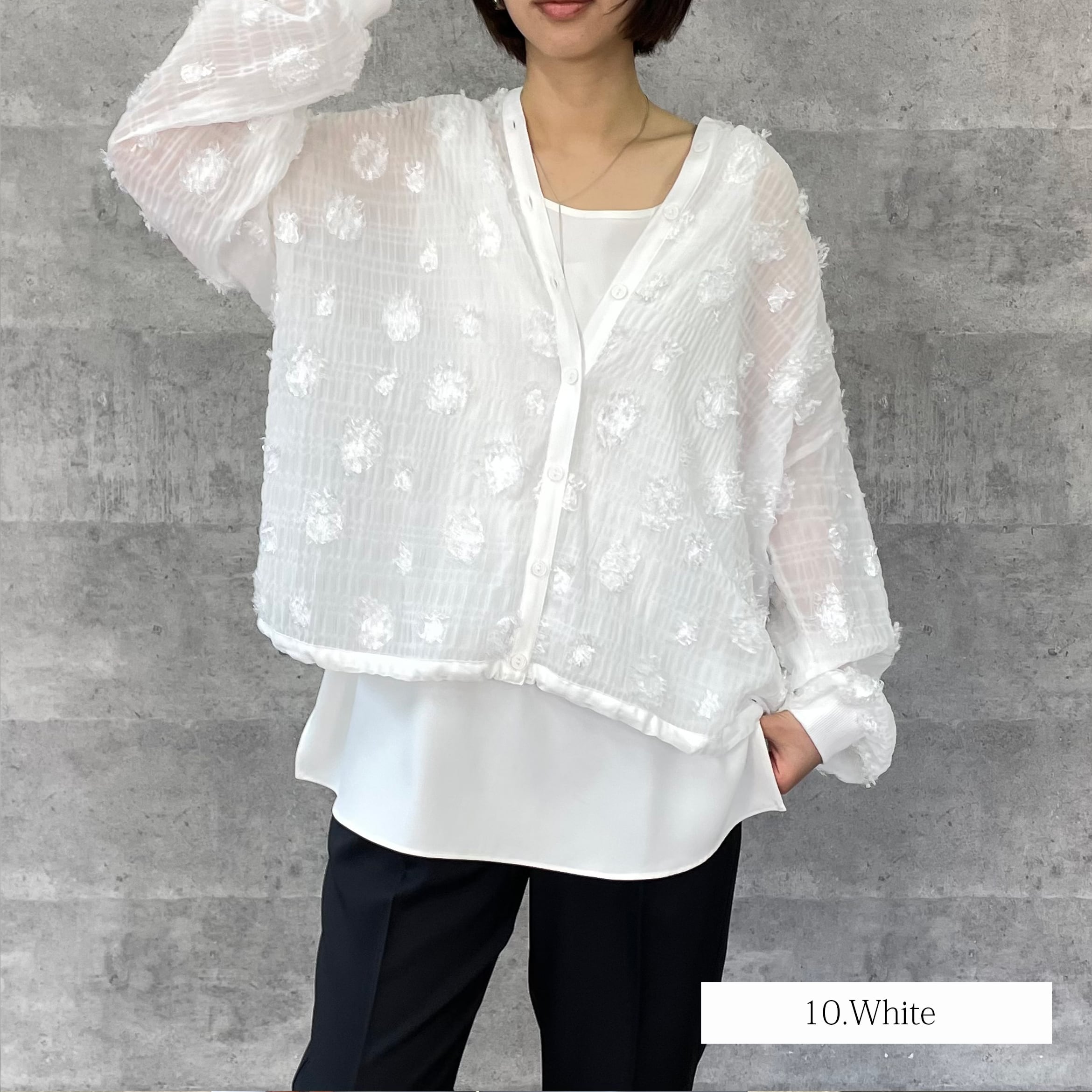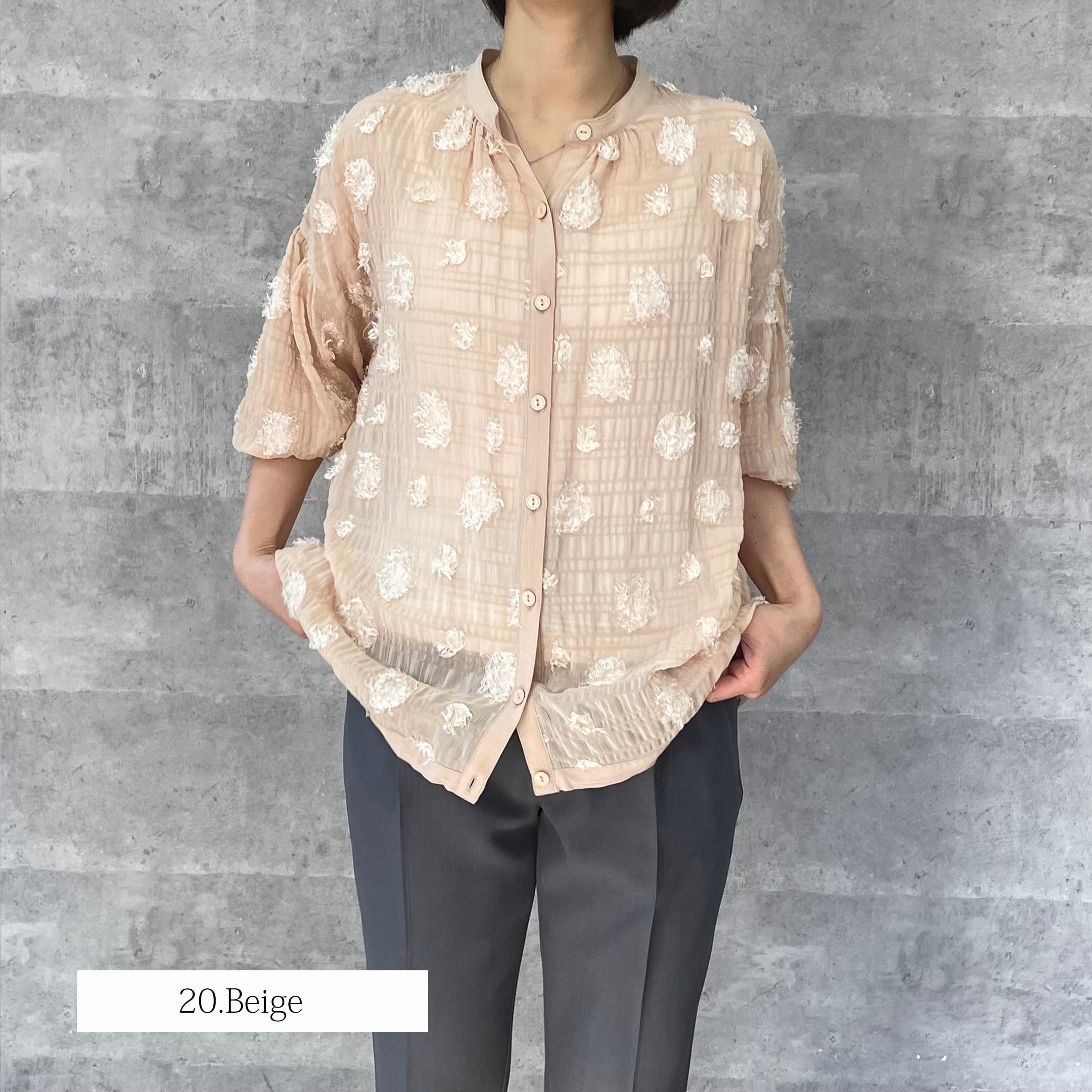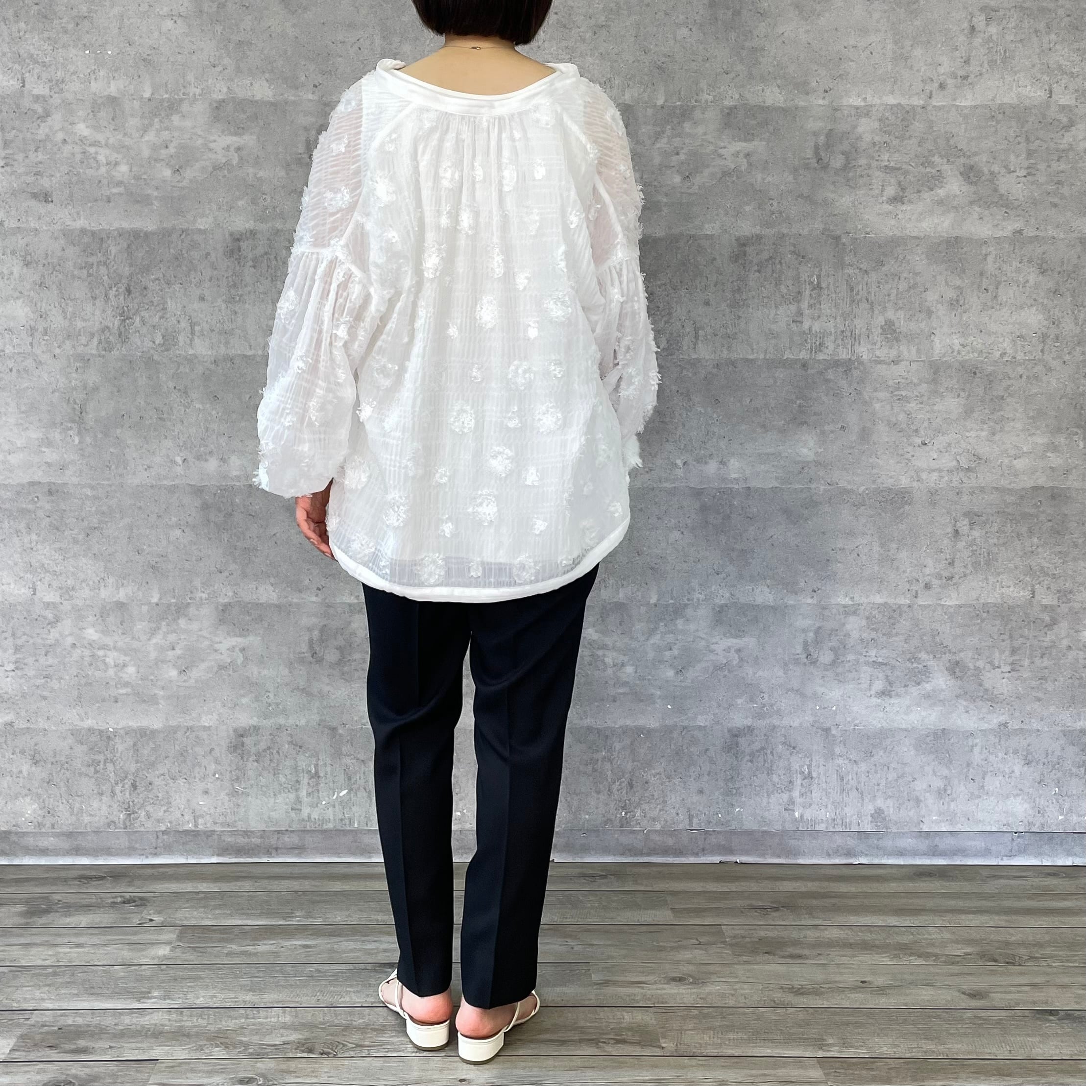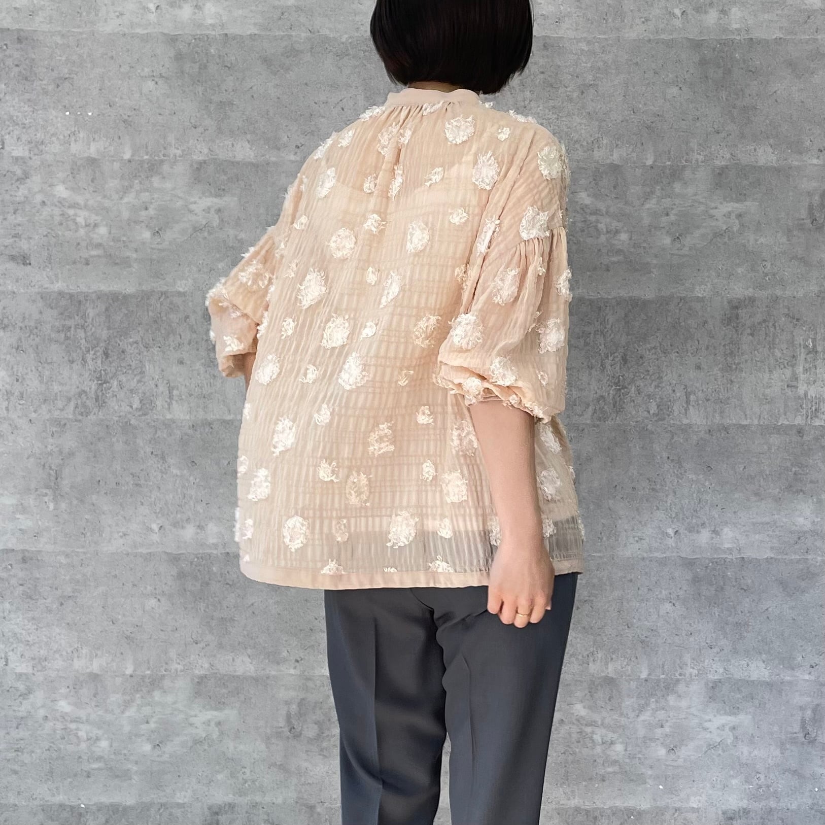 ドット柄のシアージャガード生地のブラウスです