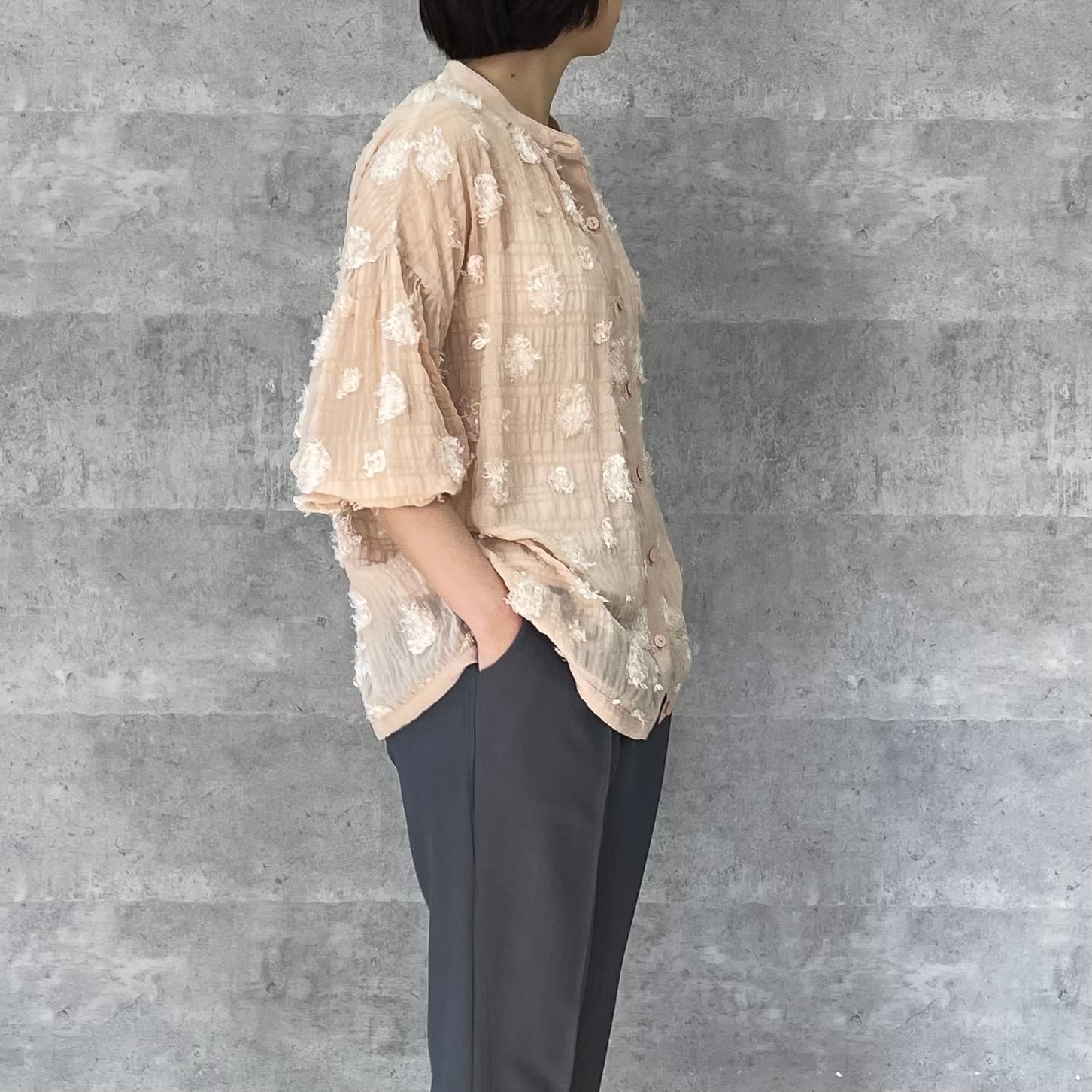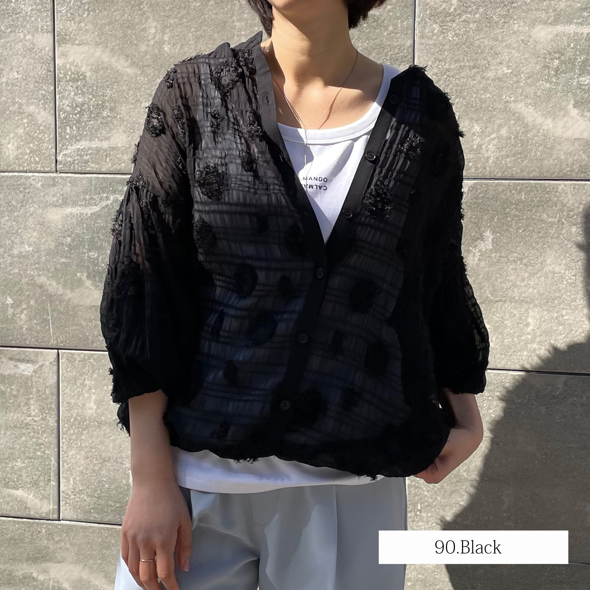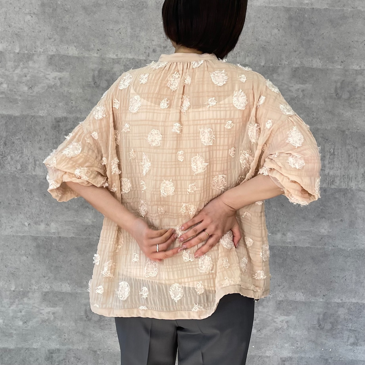 ドット柄のシアージャガード生地のブラウスです